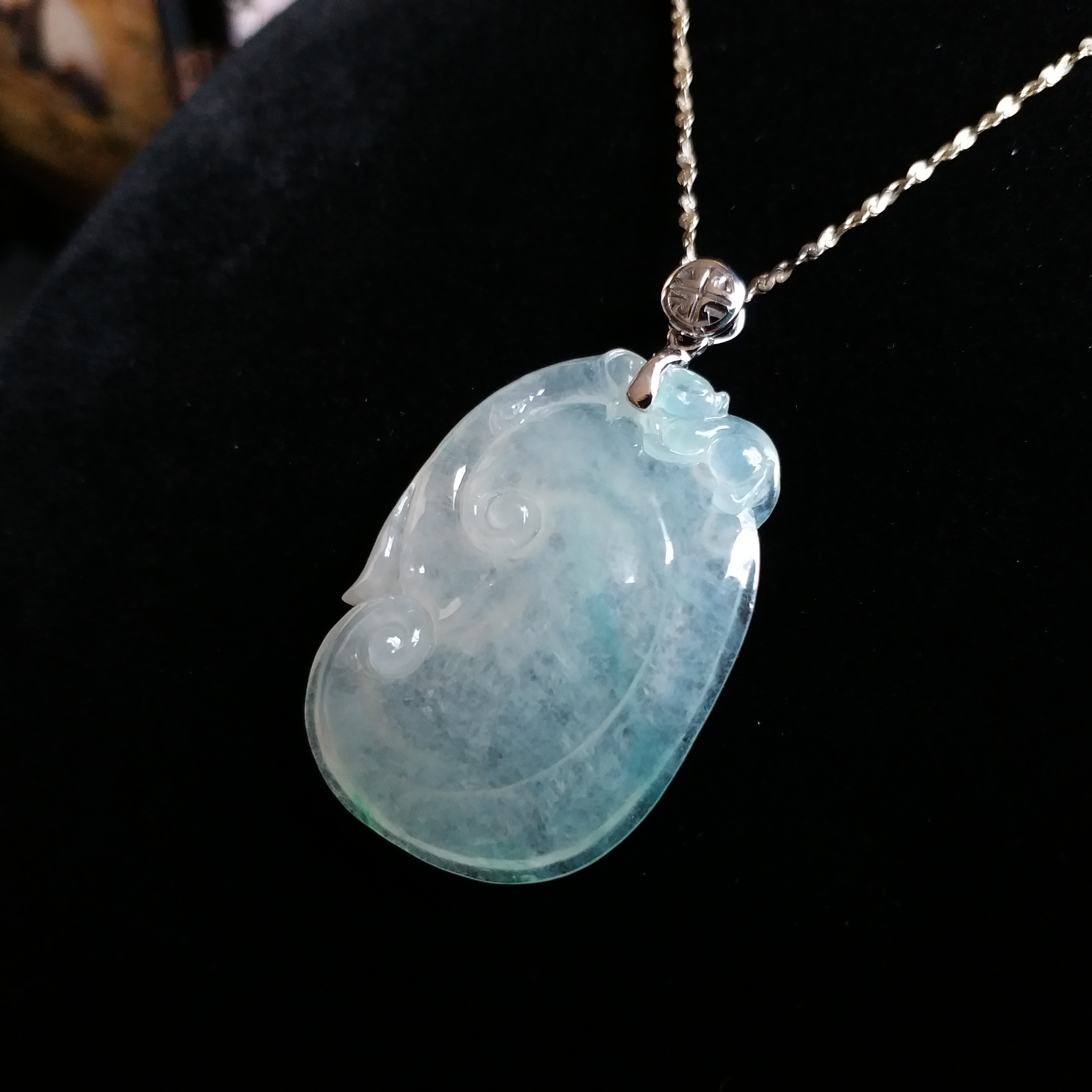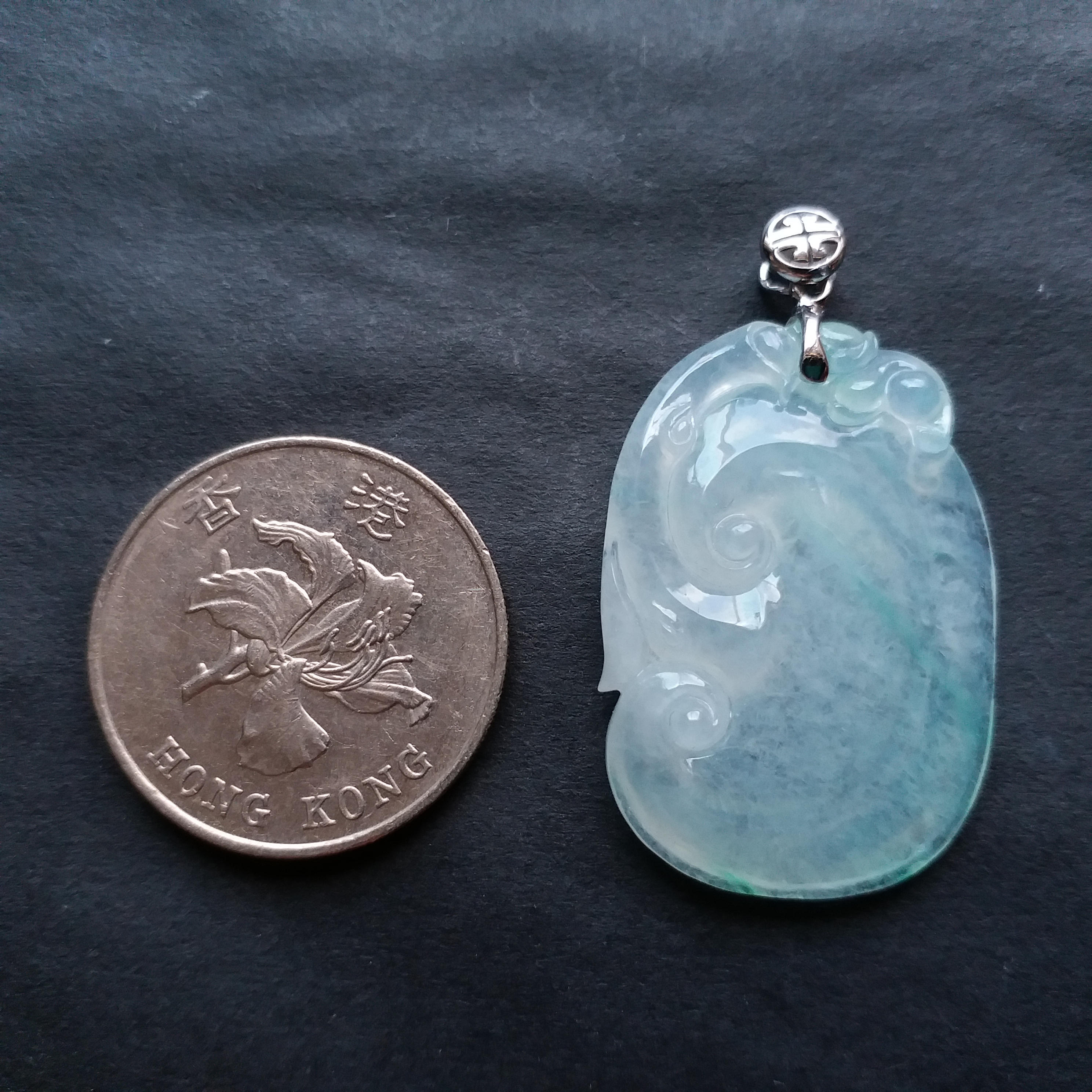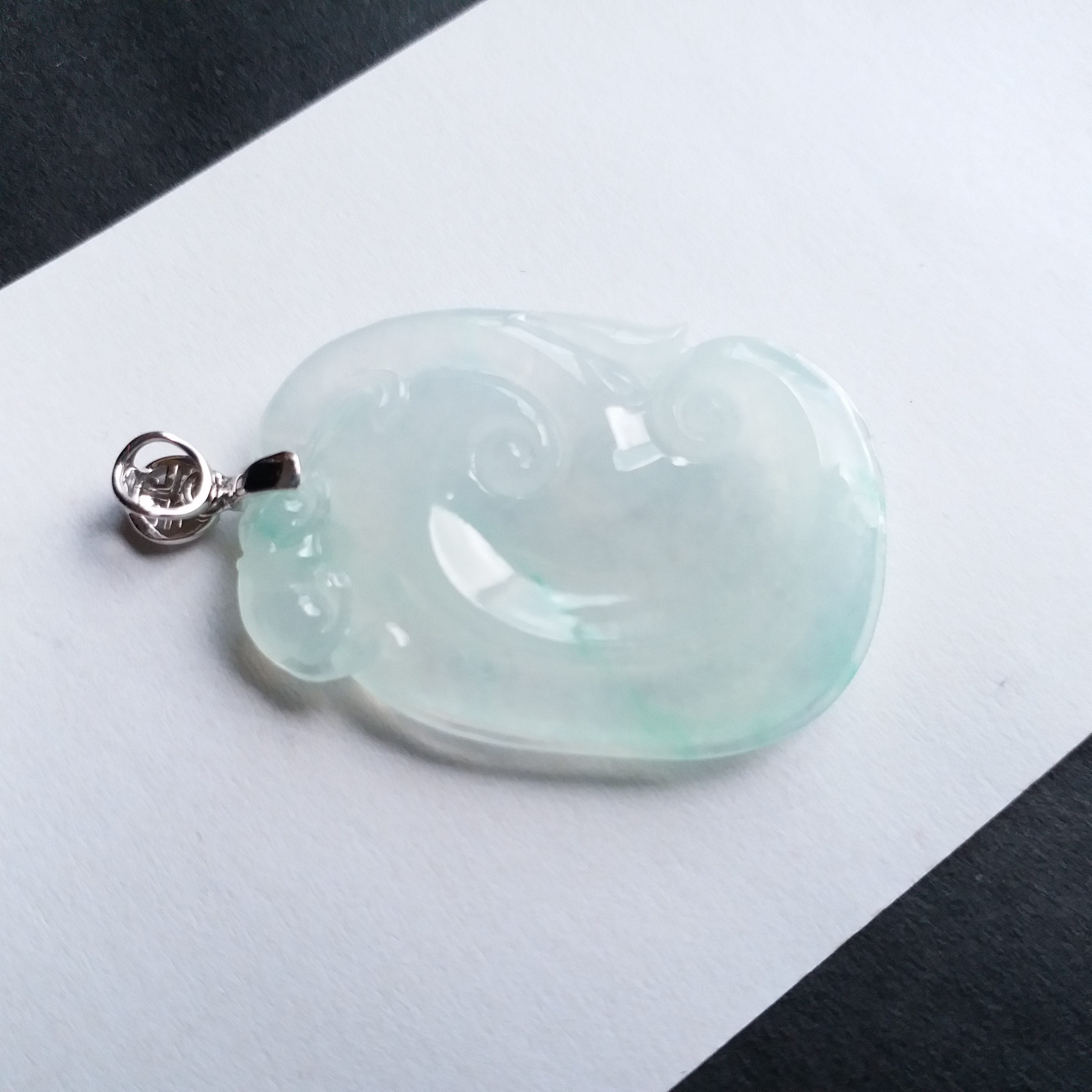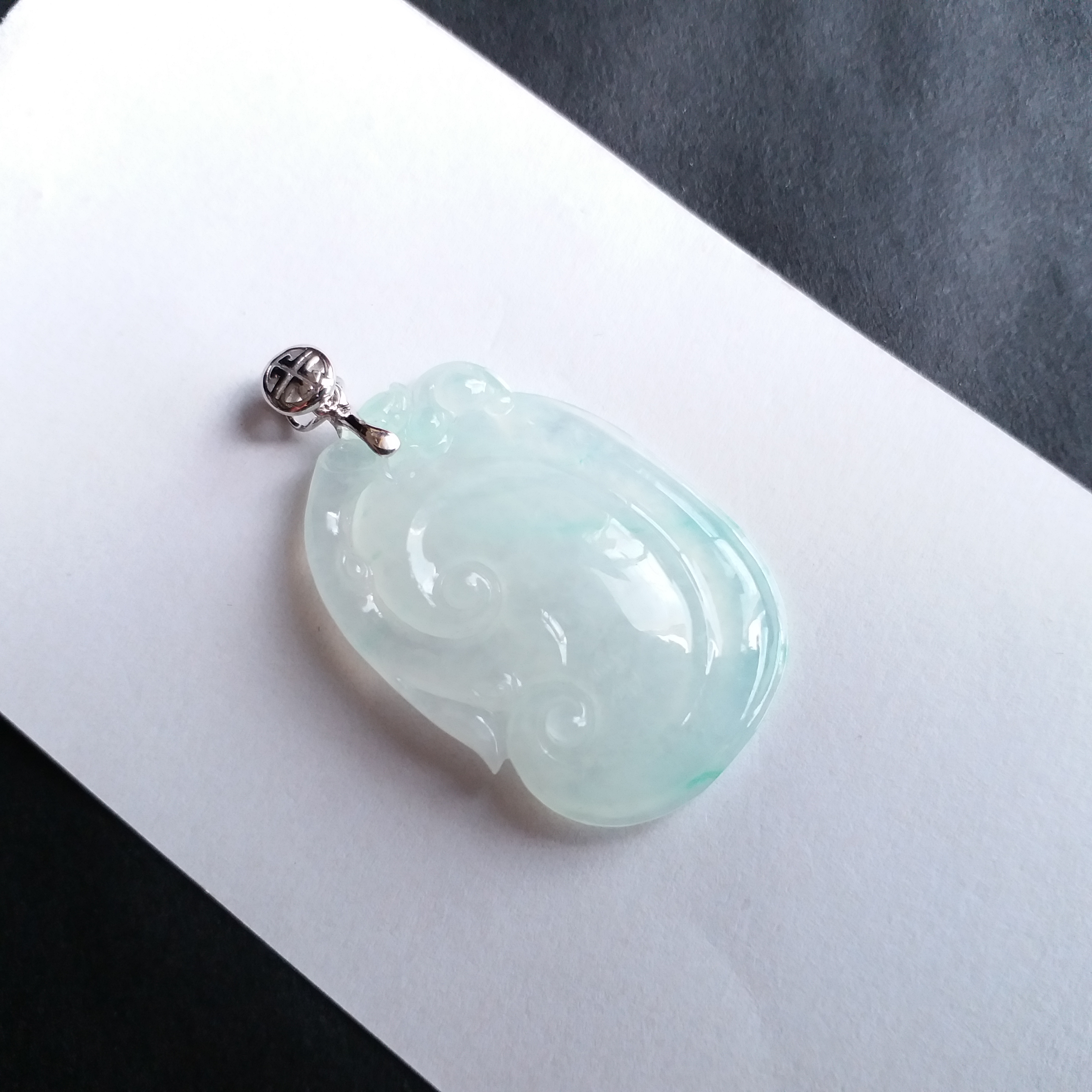 • 冰種飄綠如意+18K金扣吊墜, 天然翡翠A玉, 緬甸玉, Jade, Jadeite