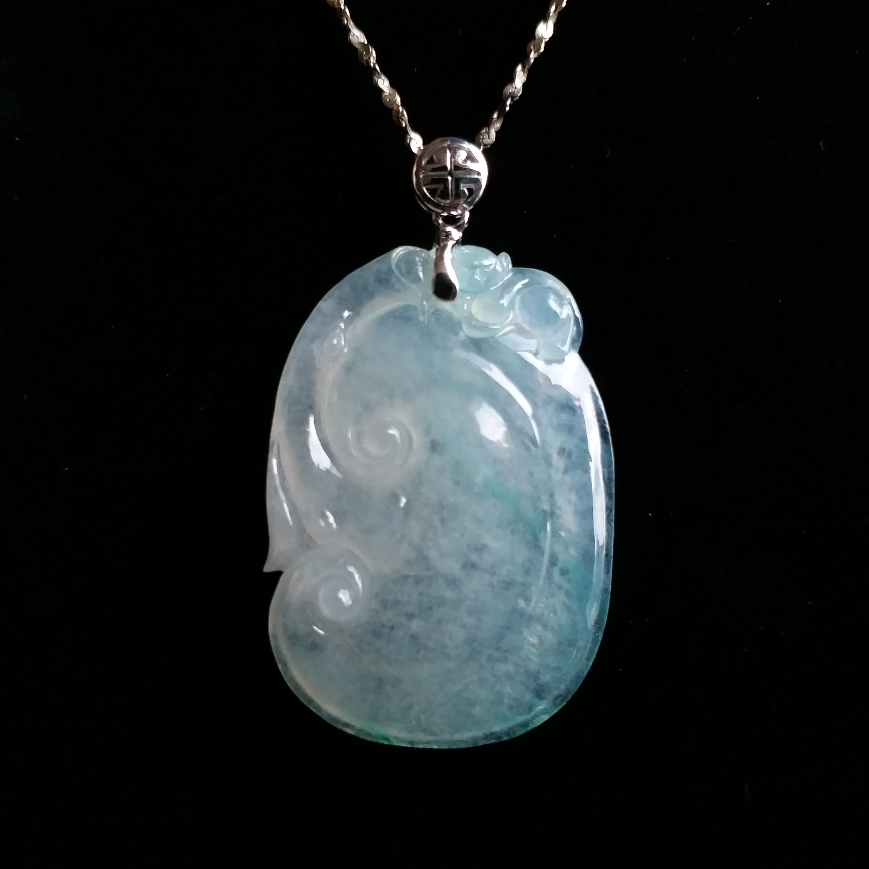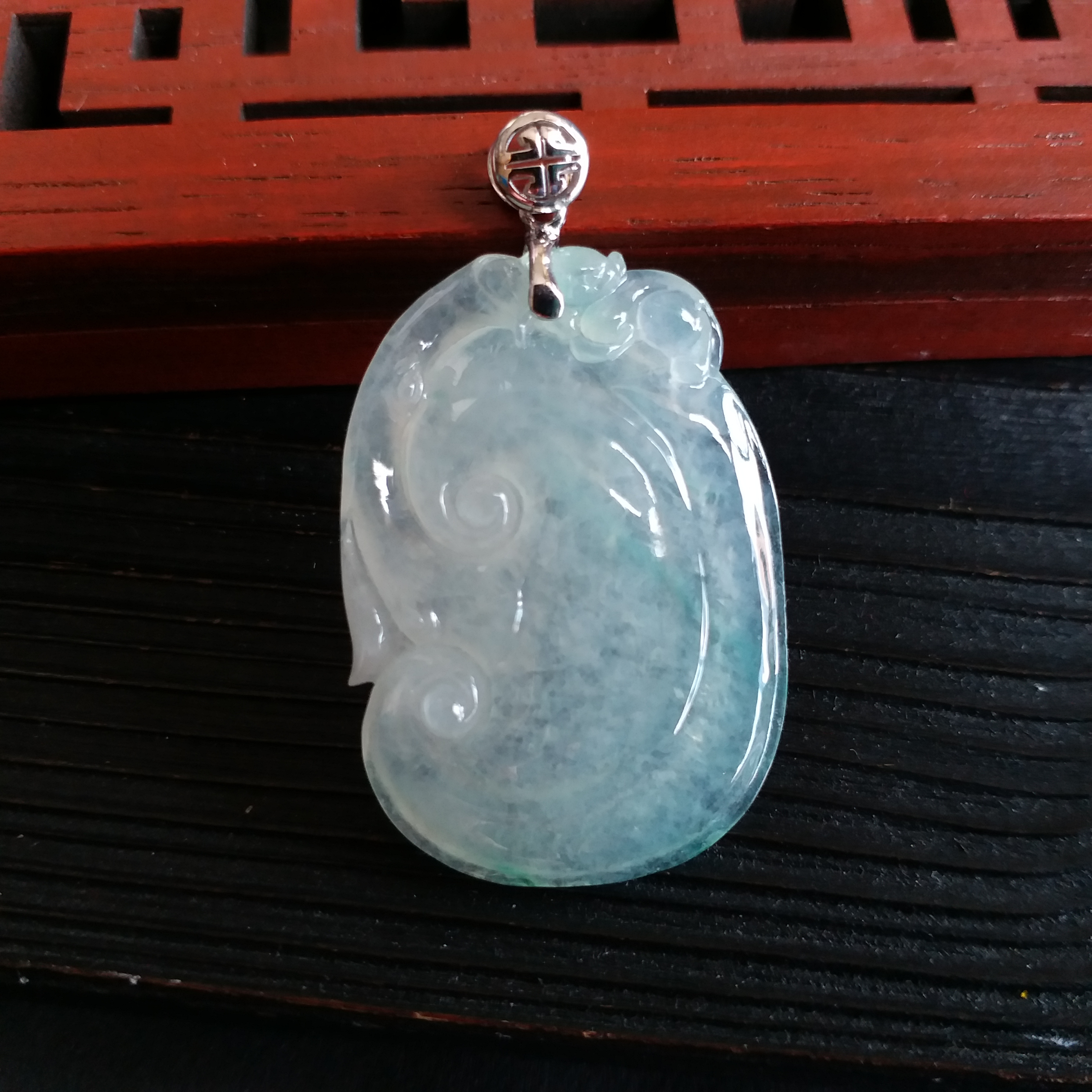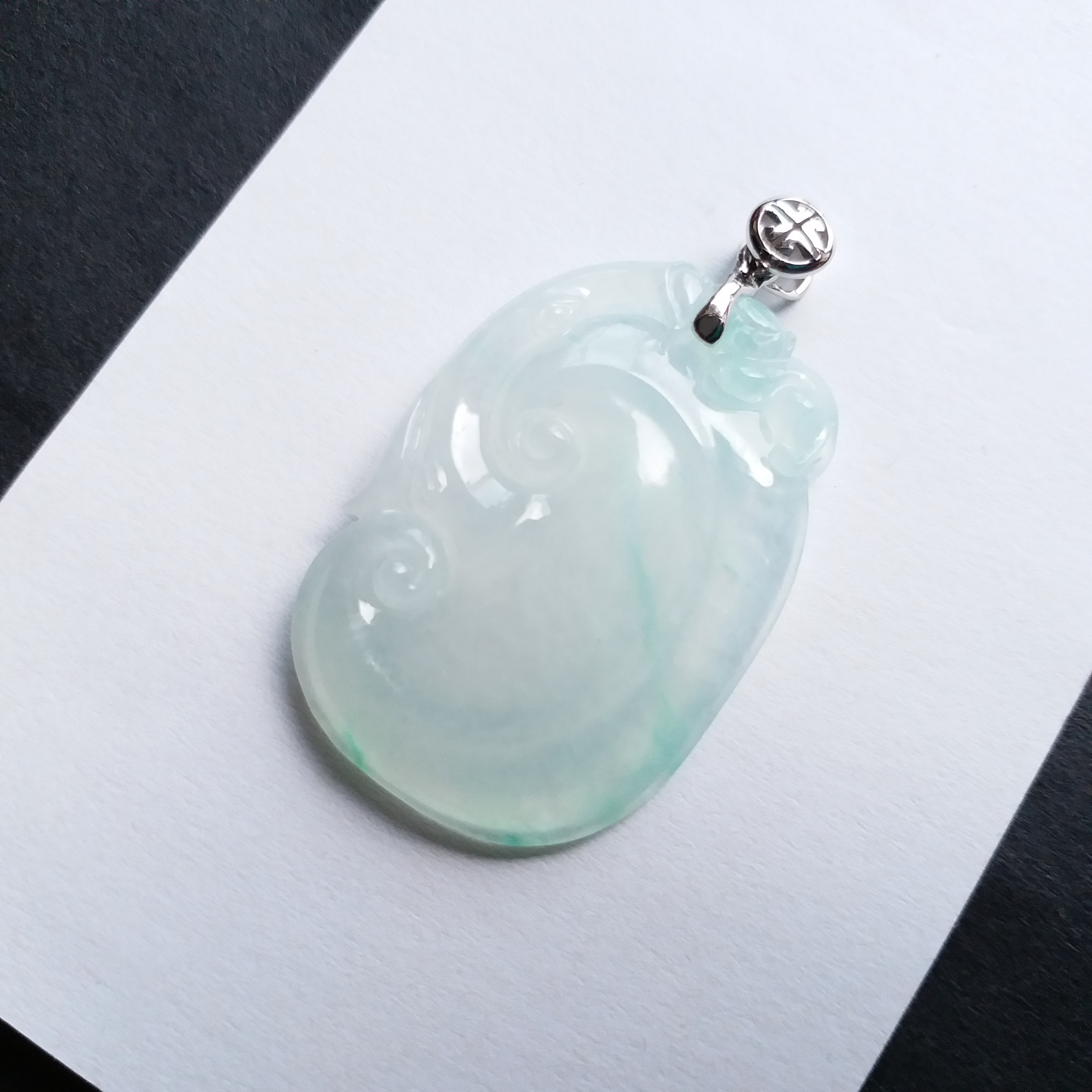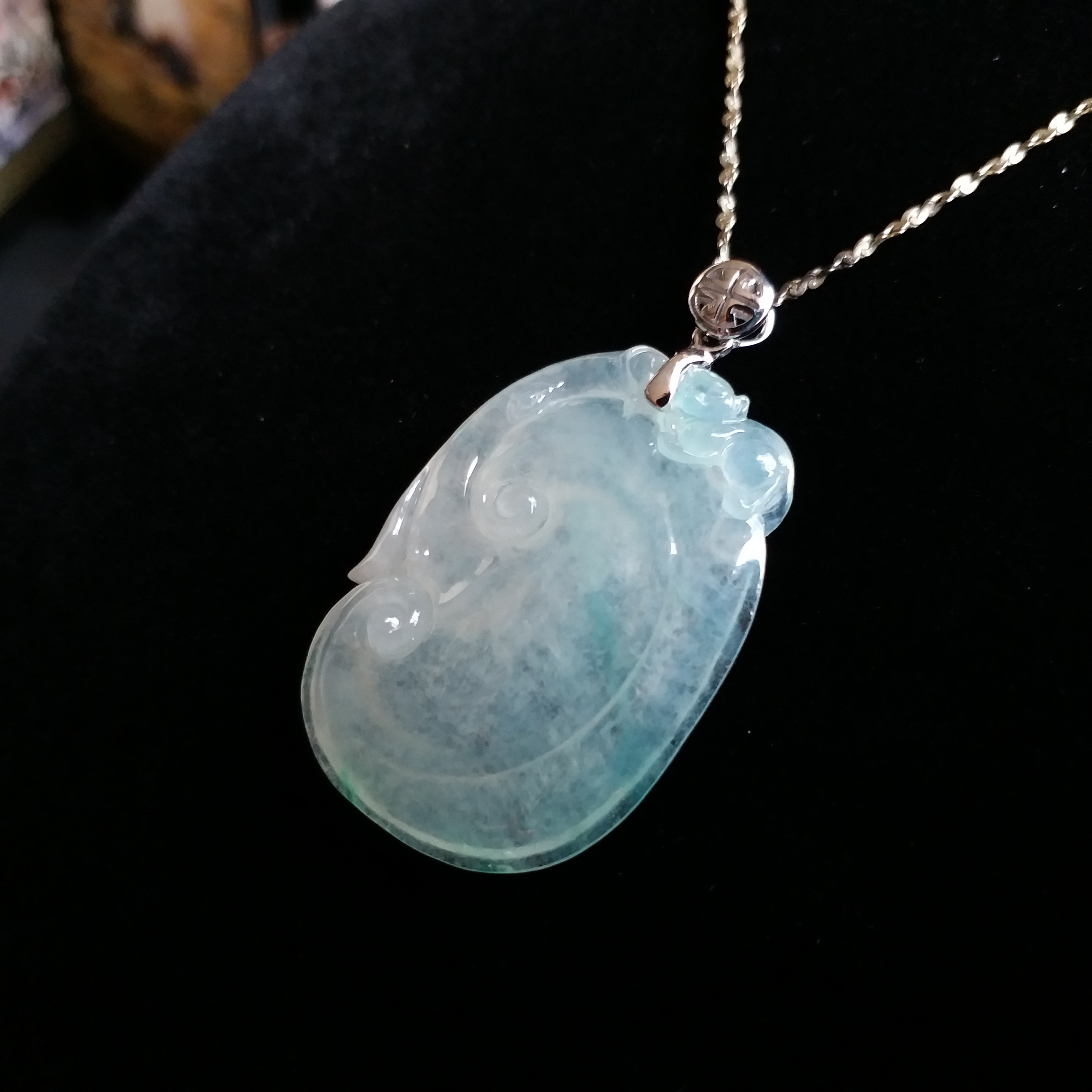 • 冰種飄綠如意+18K金扣吊墜, 天然翡翠A玉, 緬甸玉, Jade, Jadeite