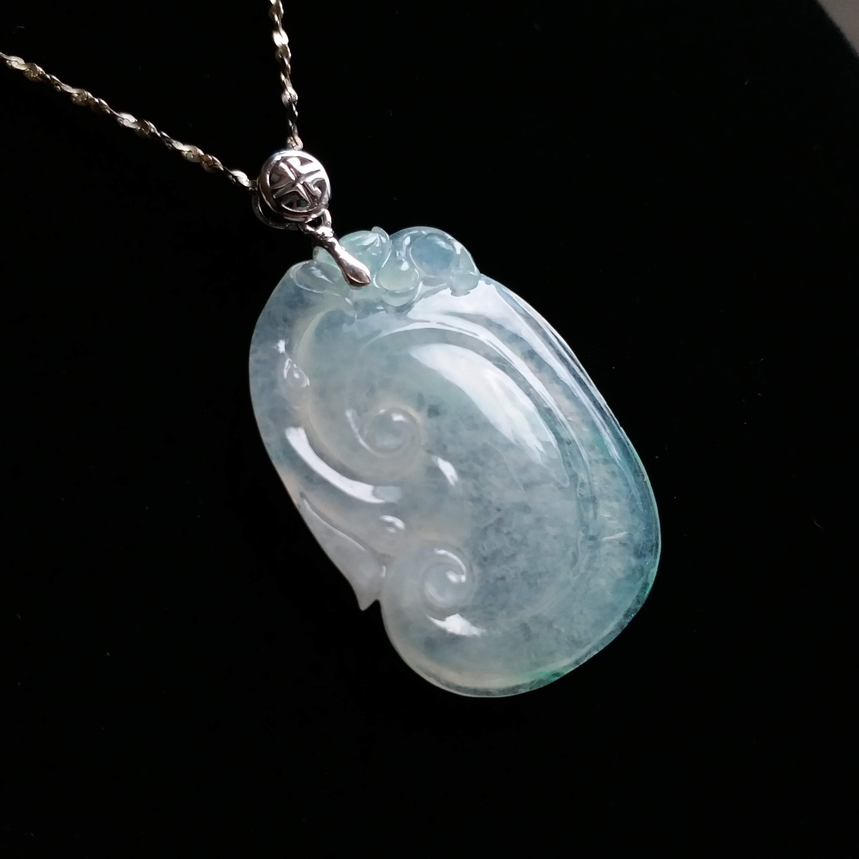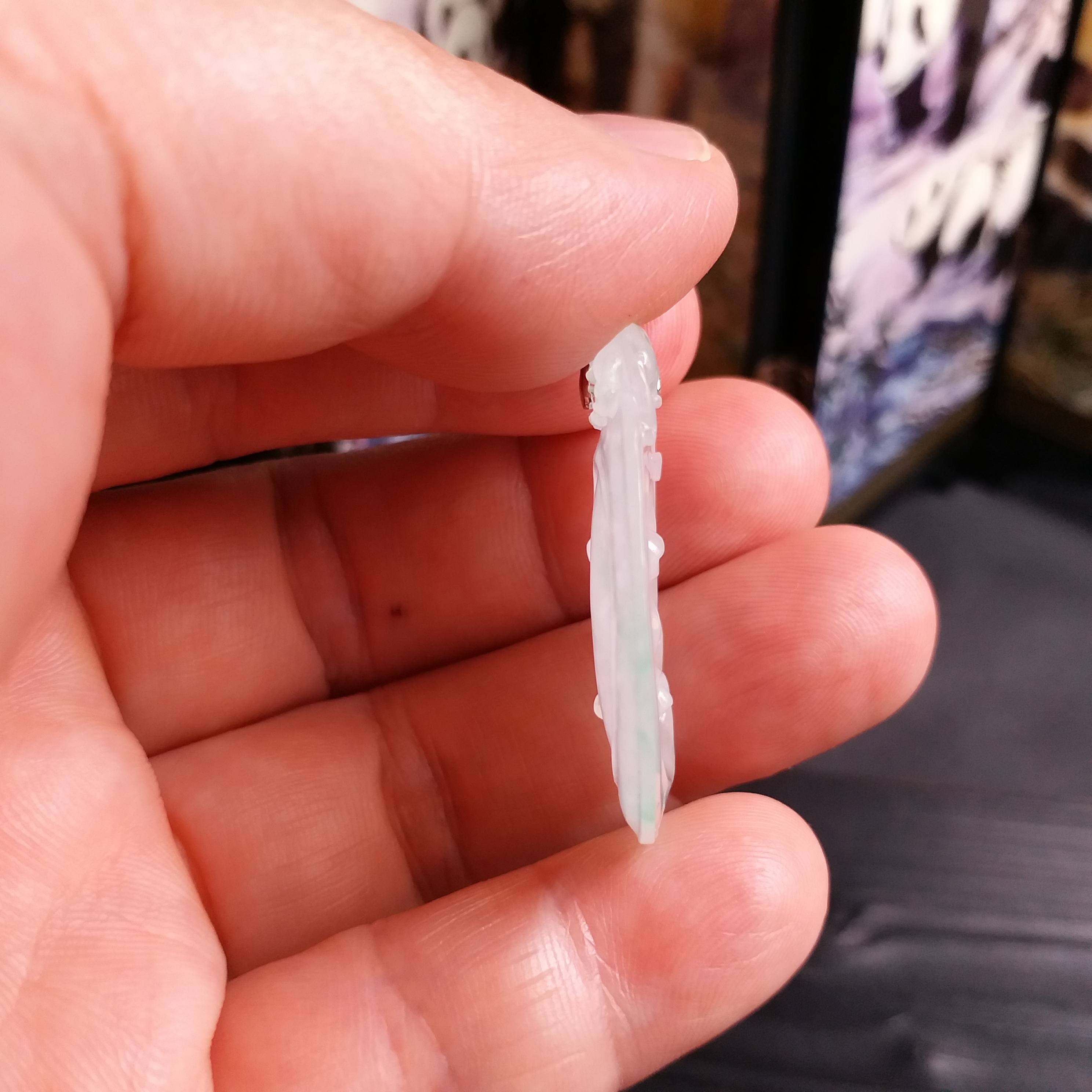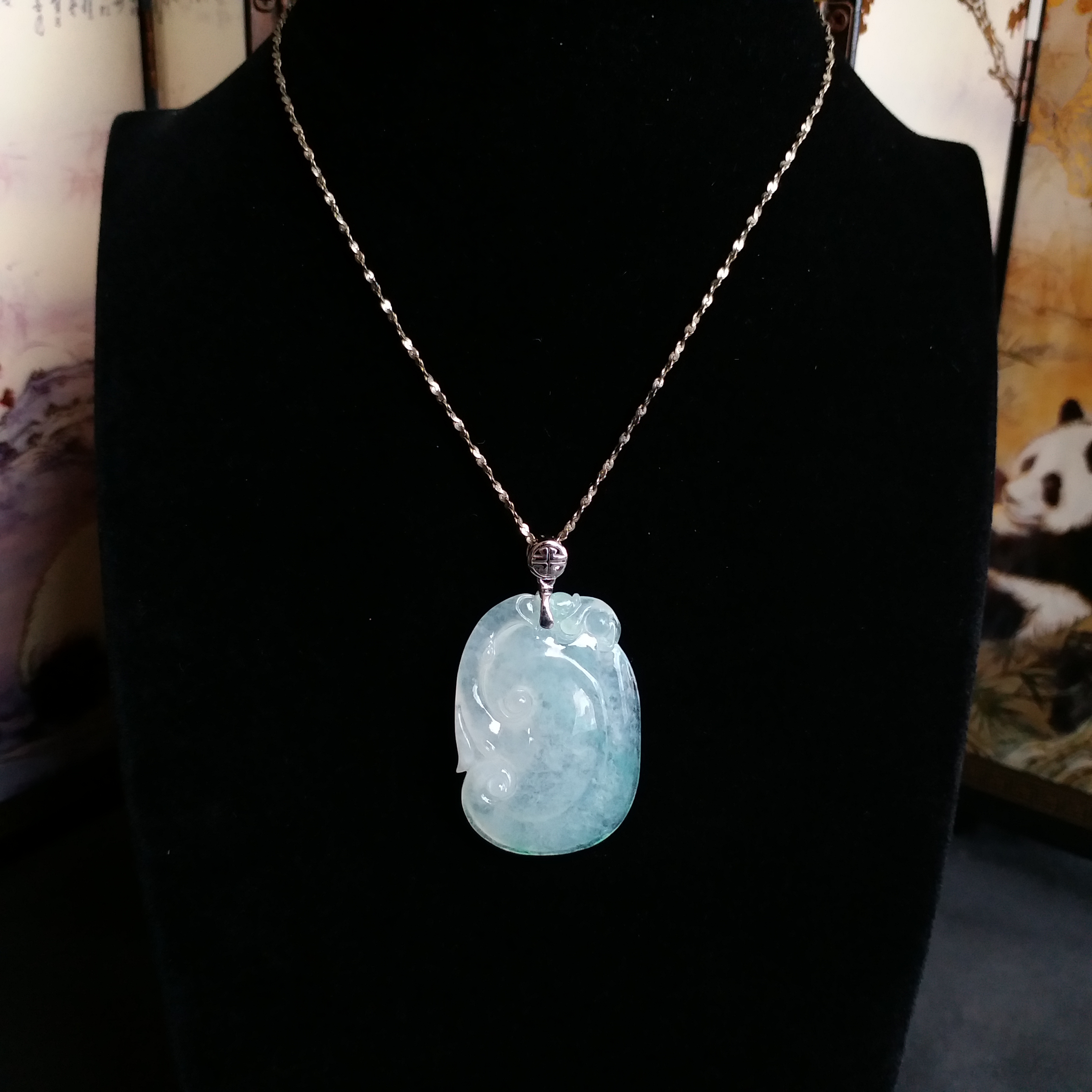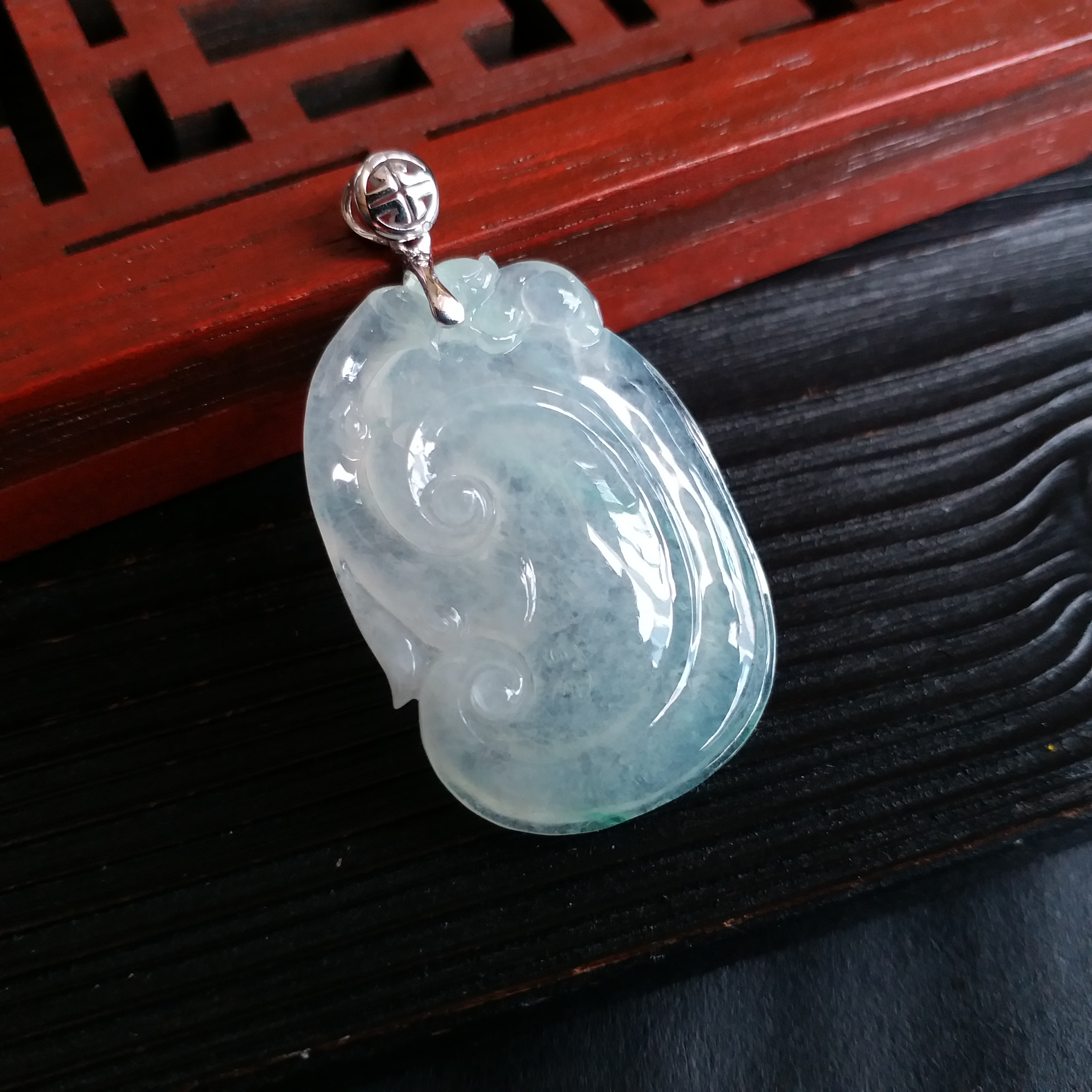 • 冰種飄綠如意+18K金扣吊墜, 天然翡翠A玉, 緬甸玉, Jade, Jadeite