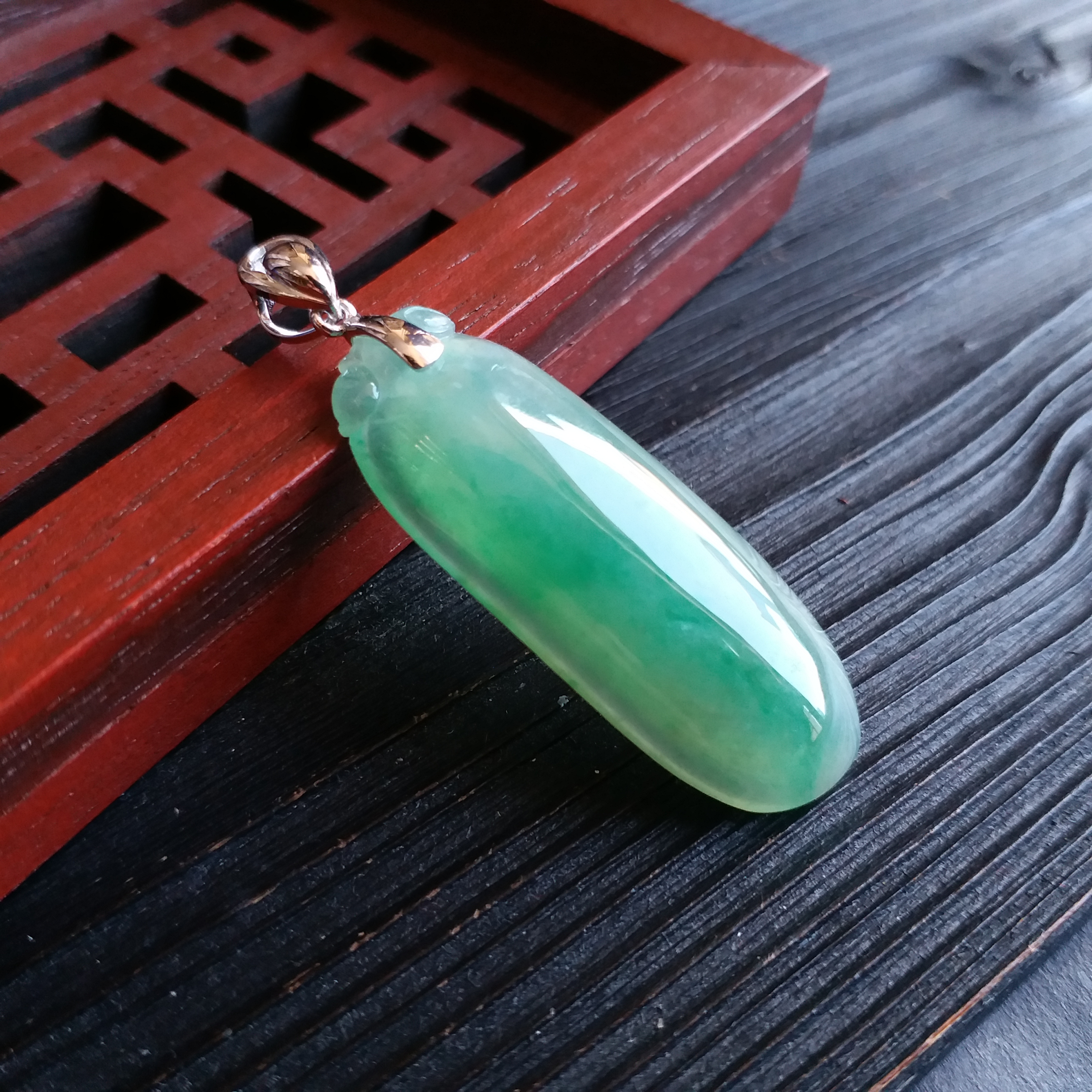J1583 冰種飄綠福瓜+18K金扣吊墜