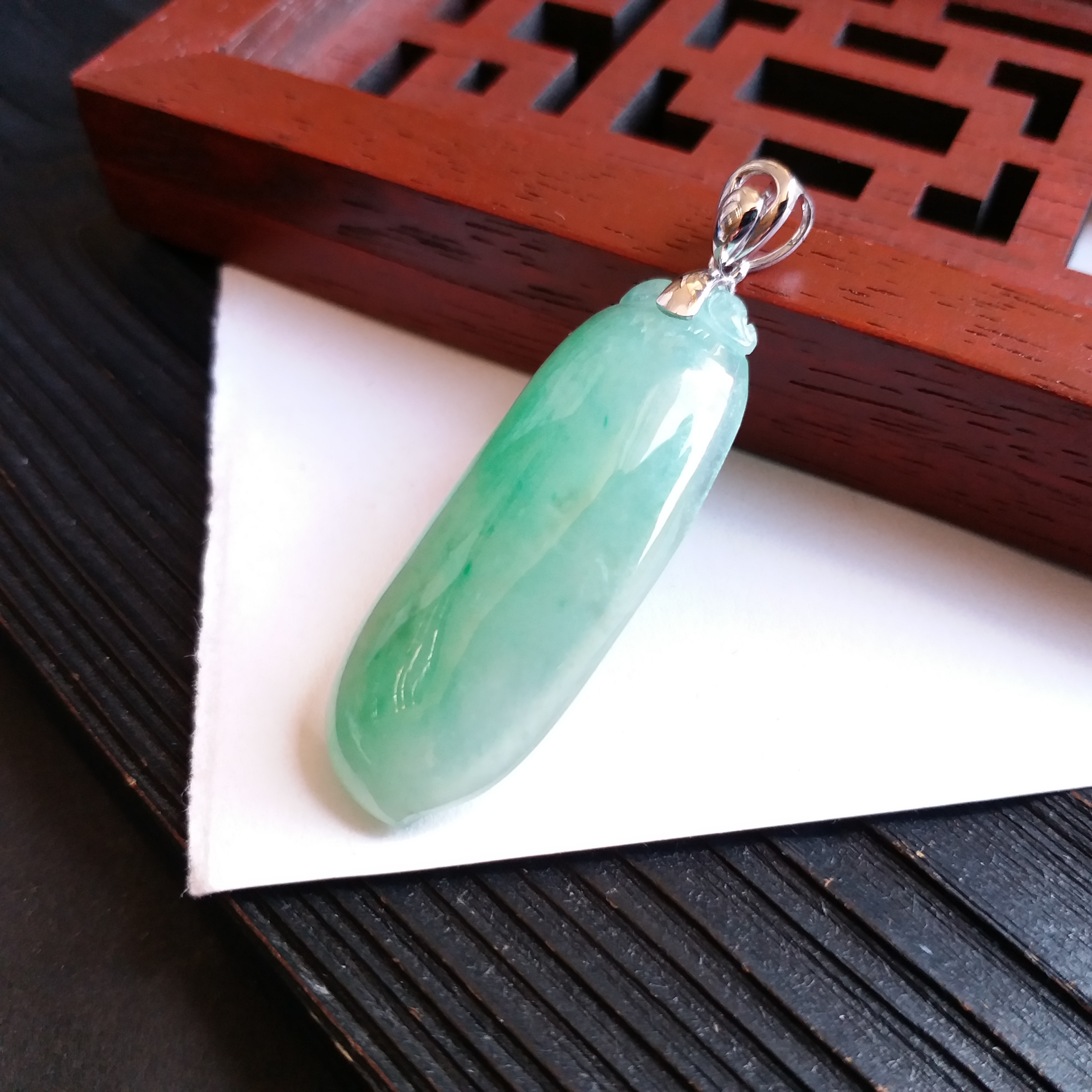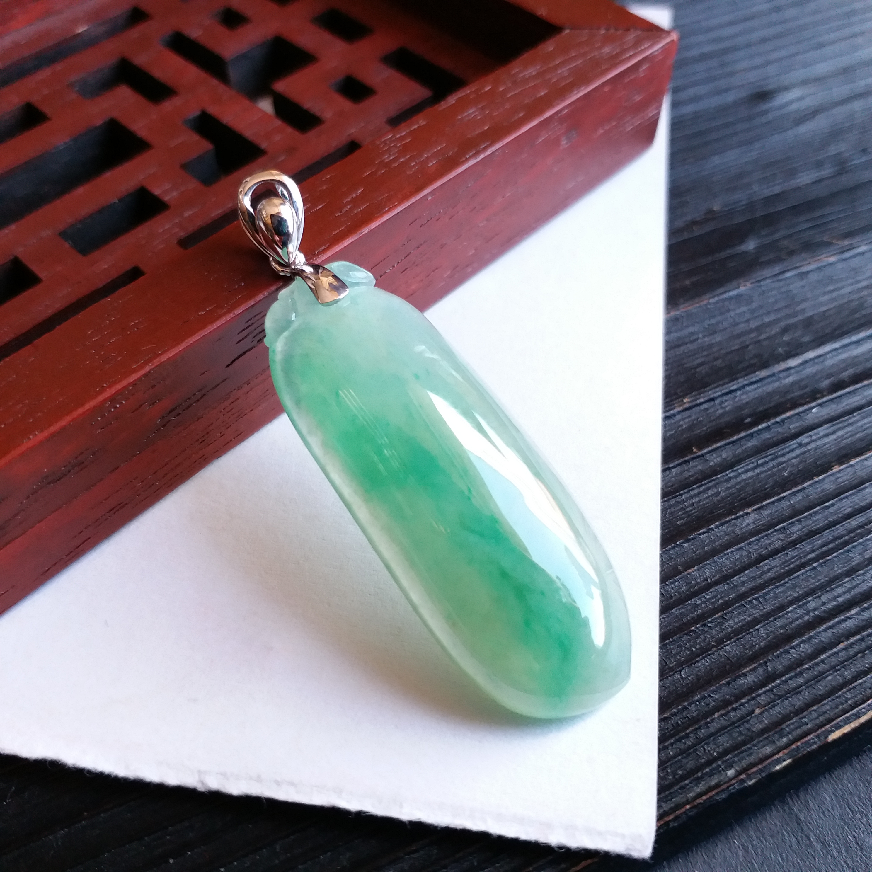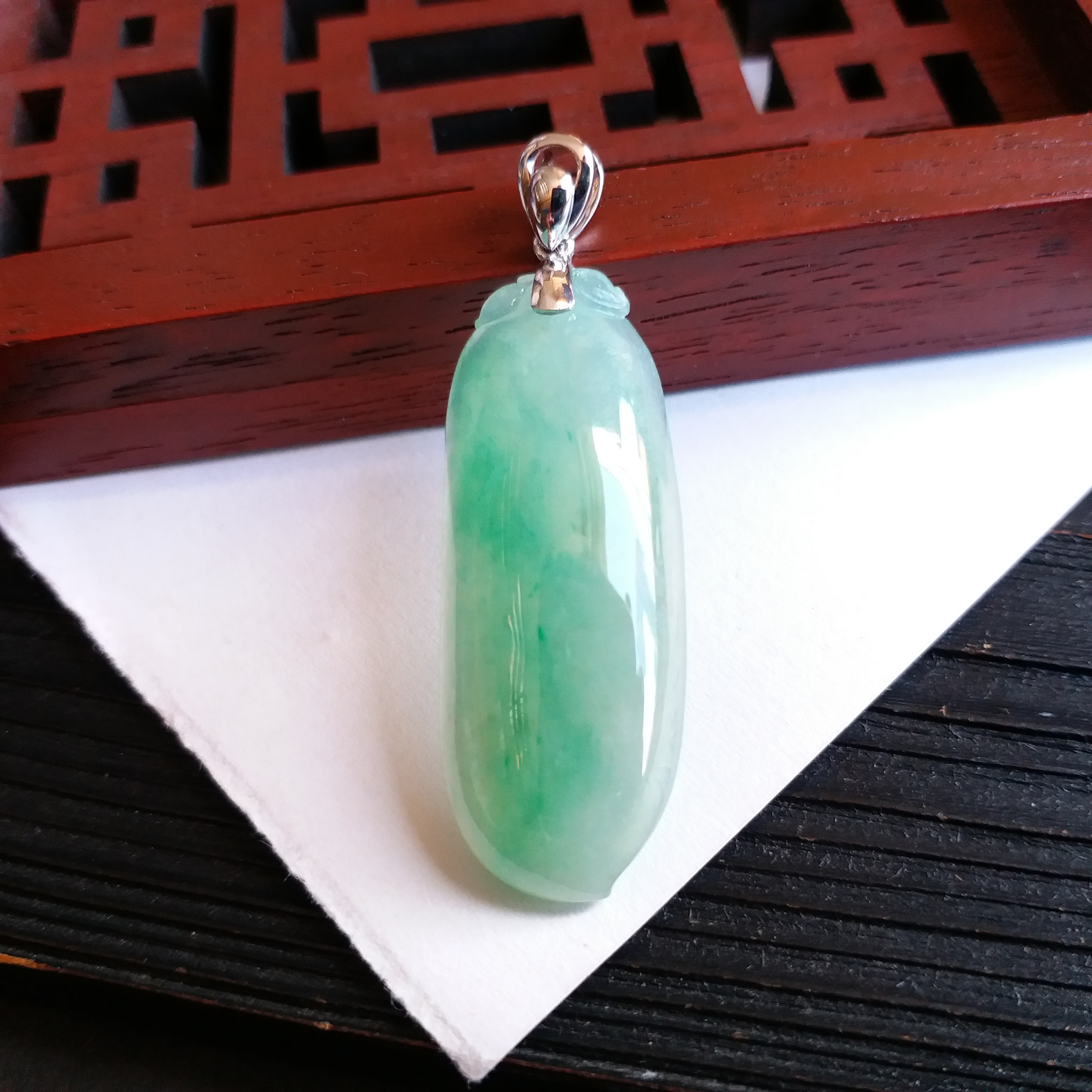 • 冰種飄綠福瓜+18K金扣吊墜, 天然翡翠A玉, 緬甸玉, Jade, Jadeite