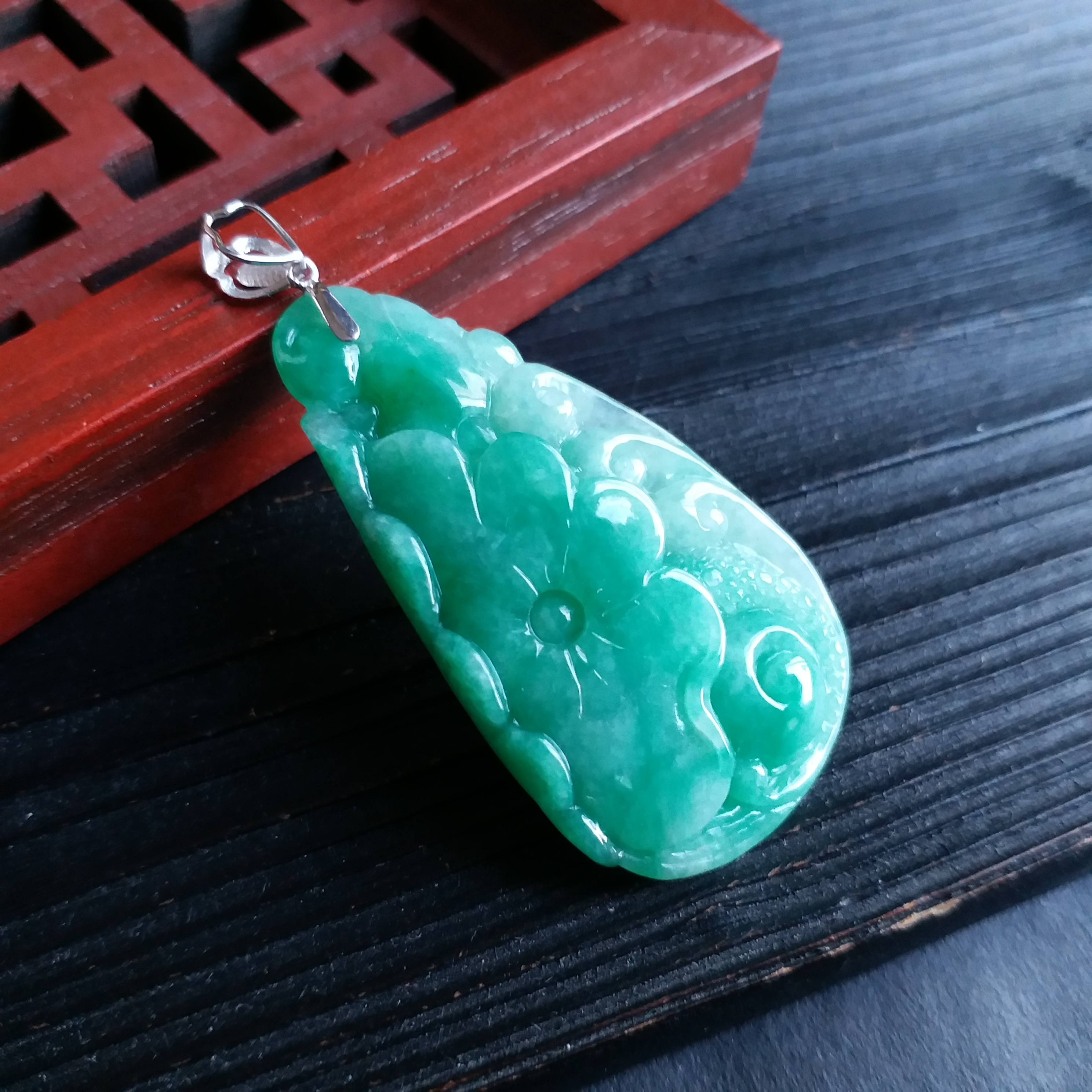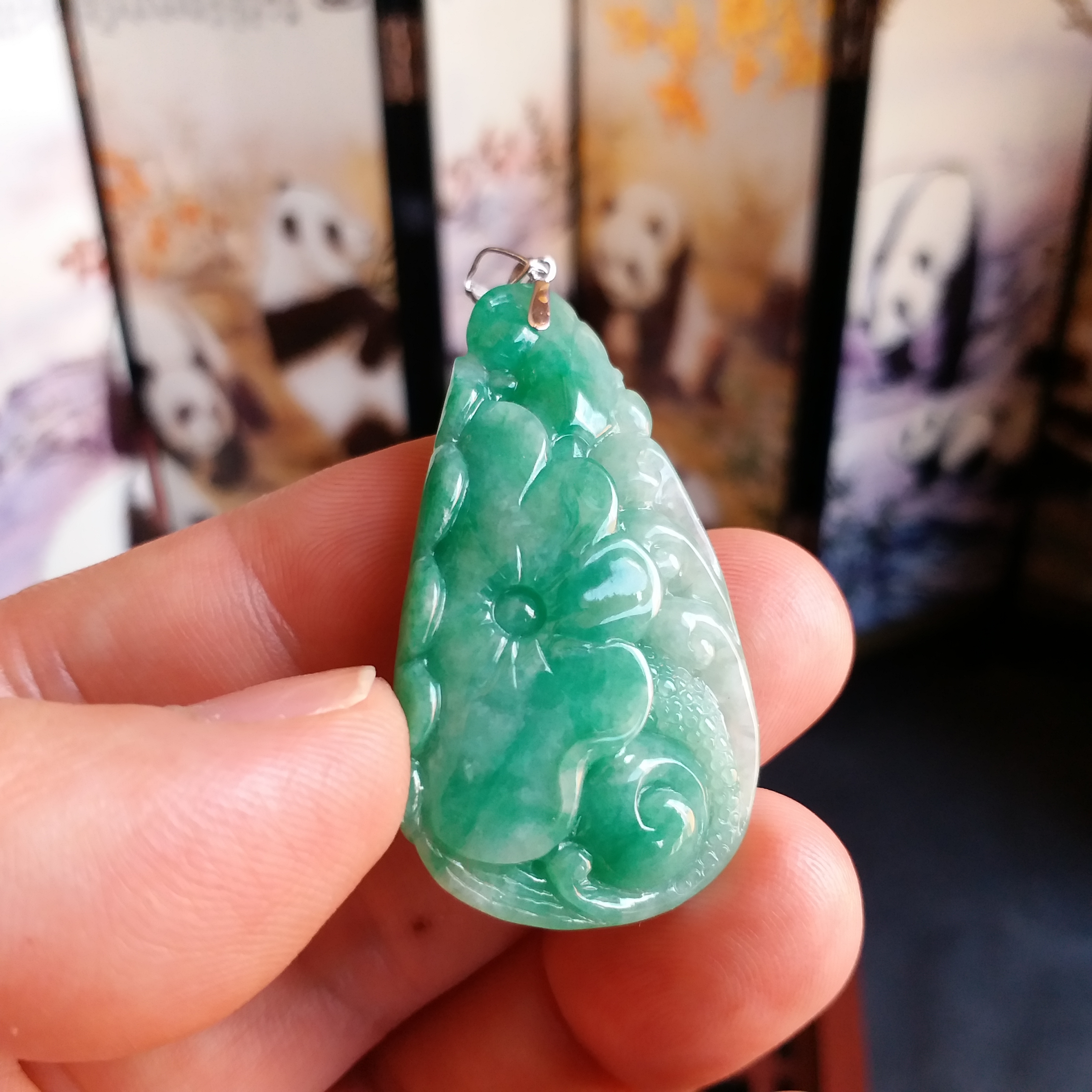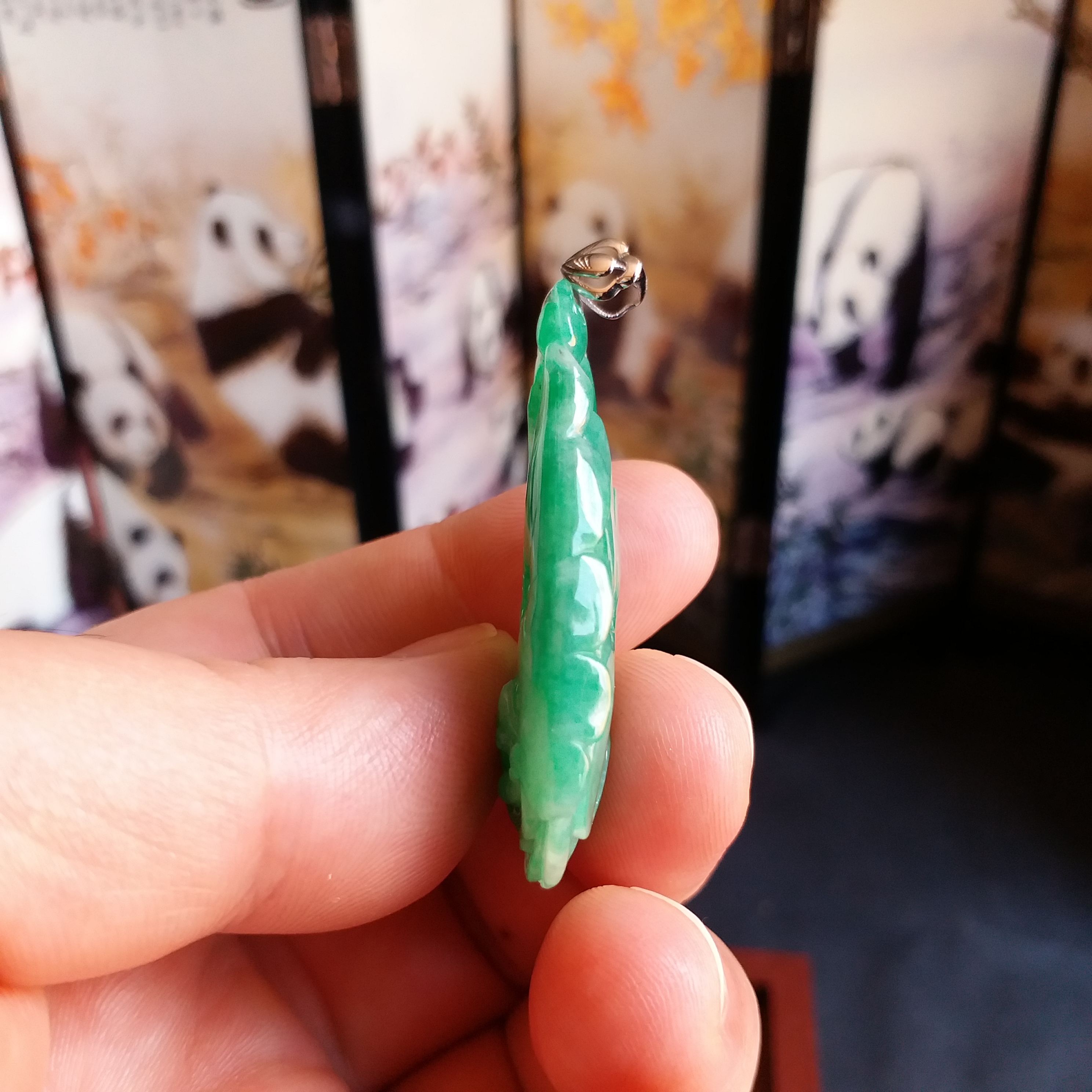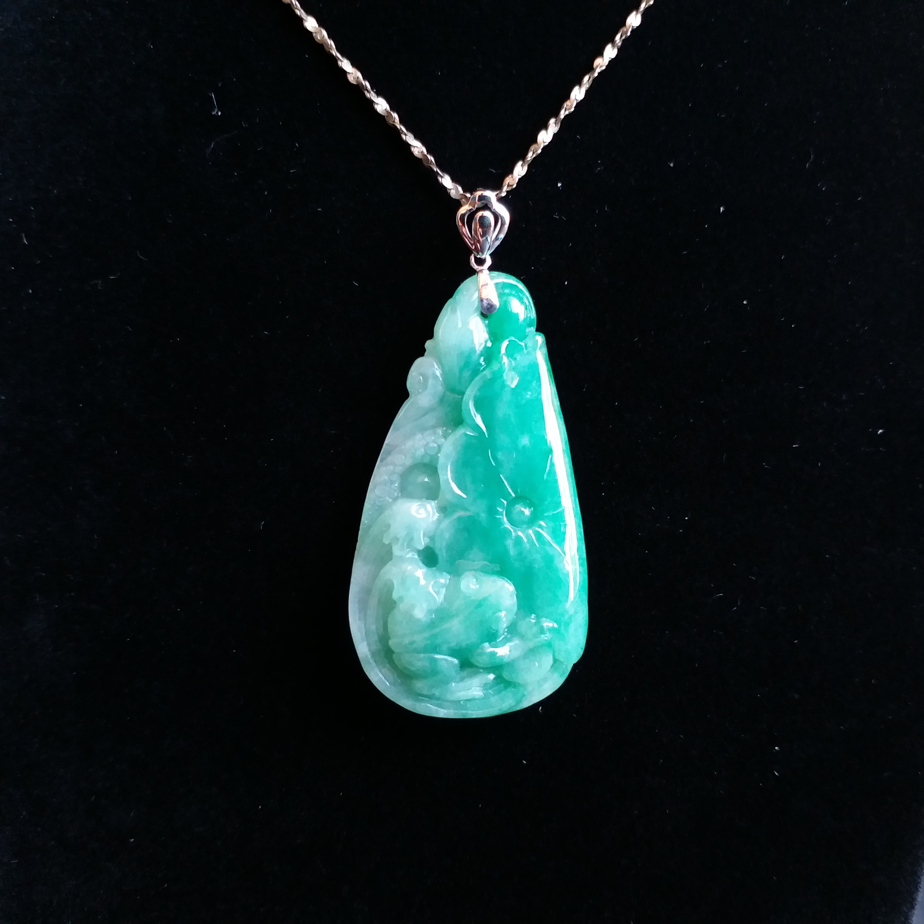 • 冰糯陽綠蓮葉金蟾+18K金扣吊墜, 天然翡翠A玉, 緬甸玉, Jade, Jadeite