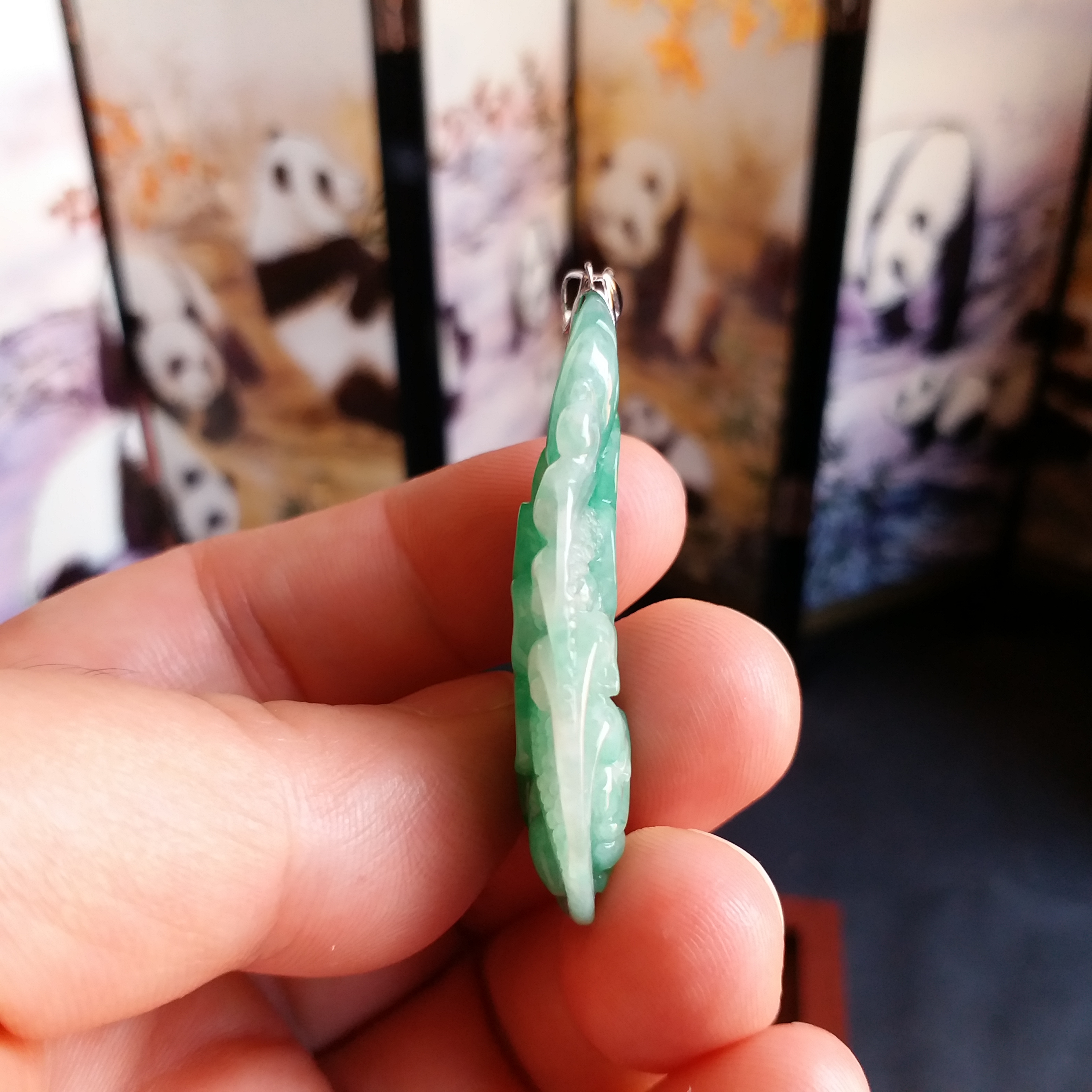 J1599 冰糯陽綠蓮葉金蟾+18K金扣吊墜