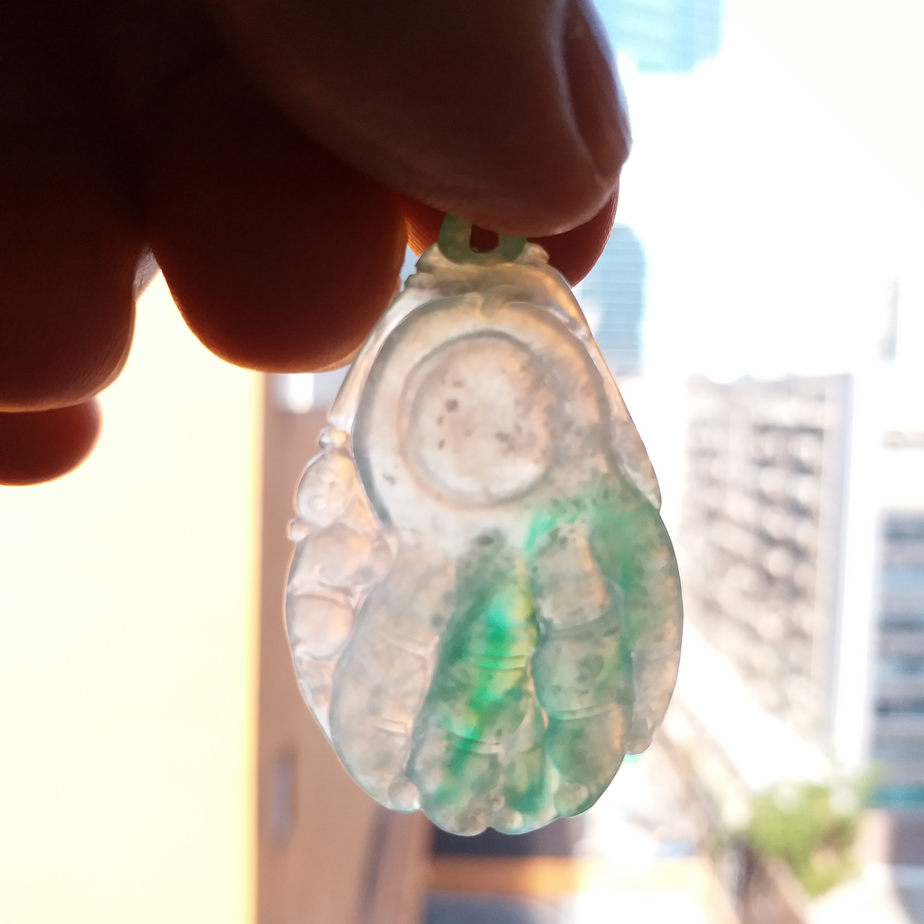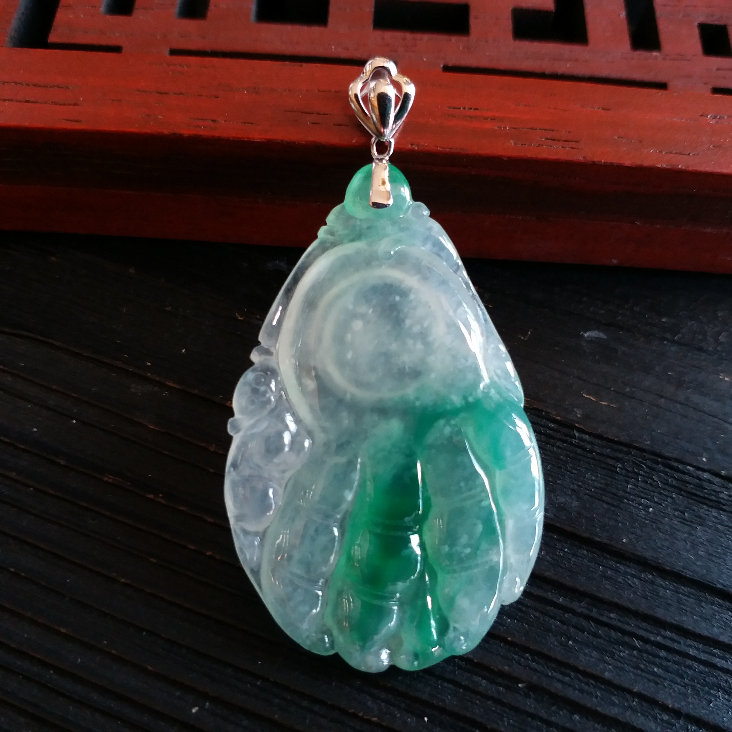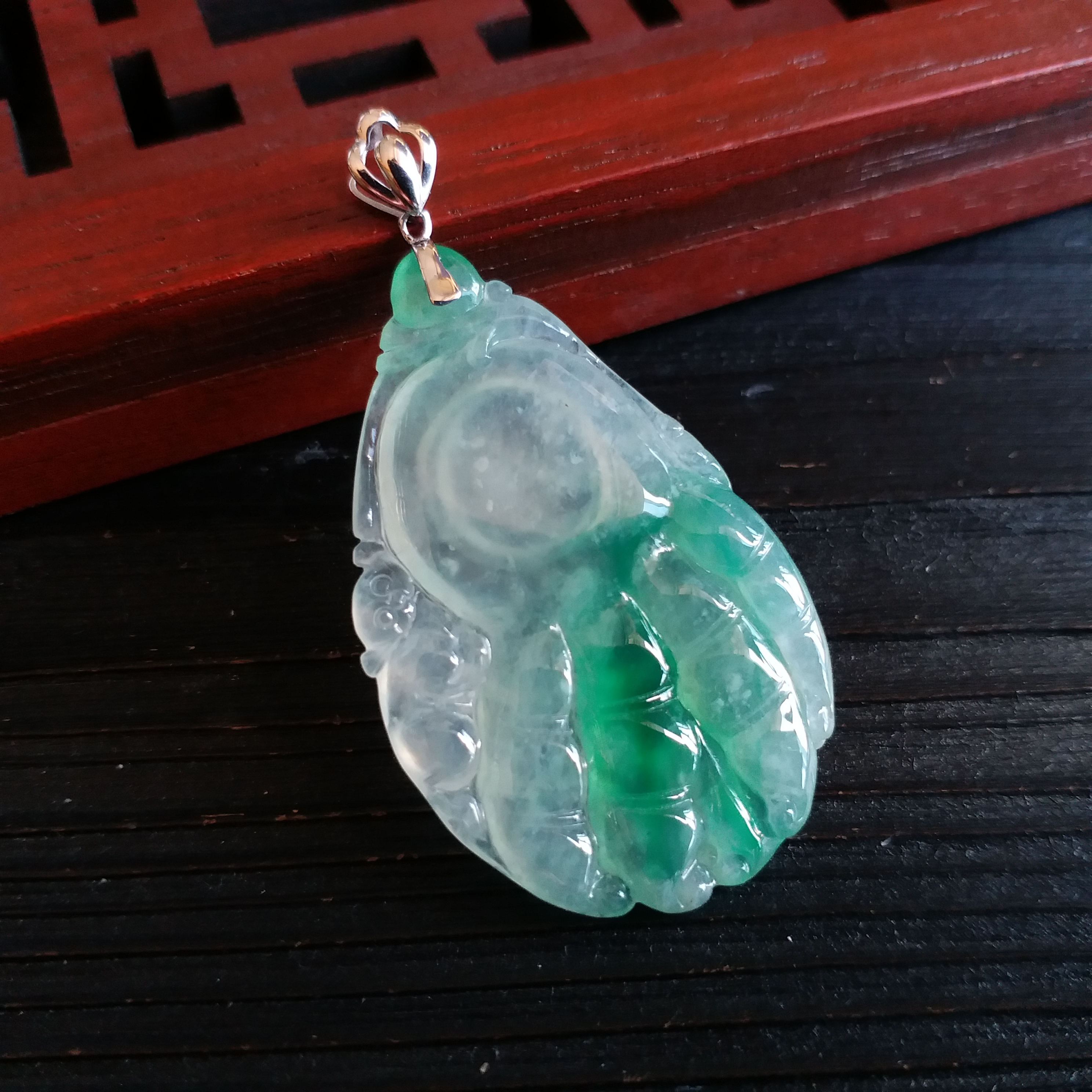 J1603 冰種佛手福瓜+18K金扣吊墜