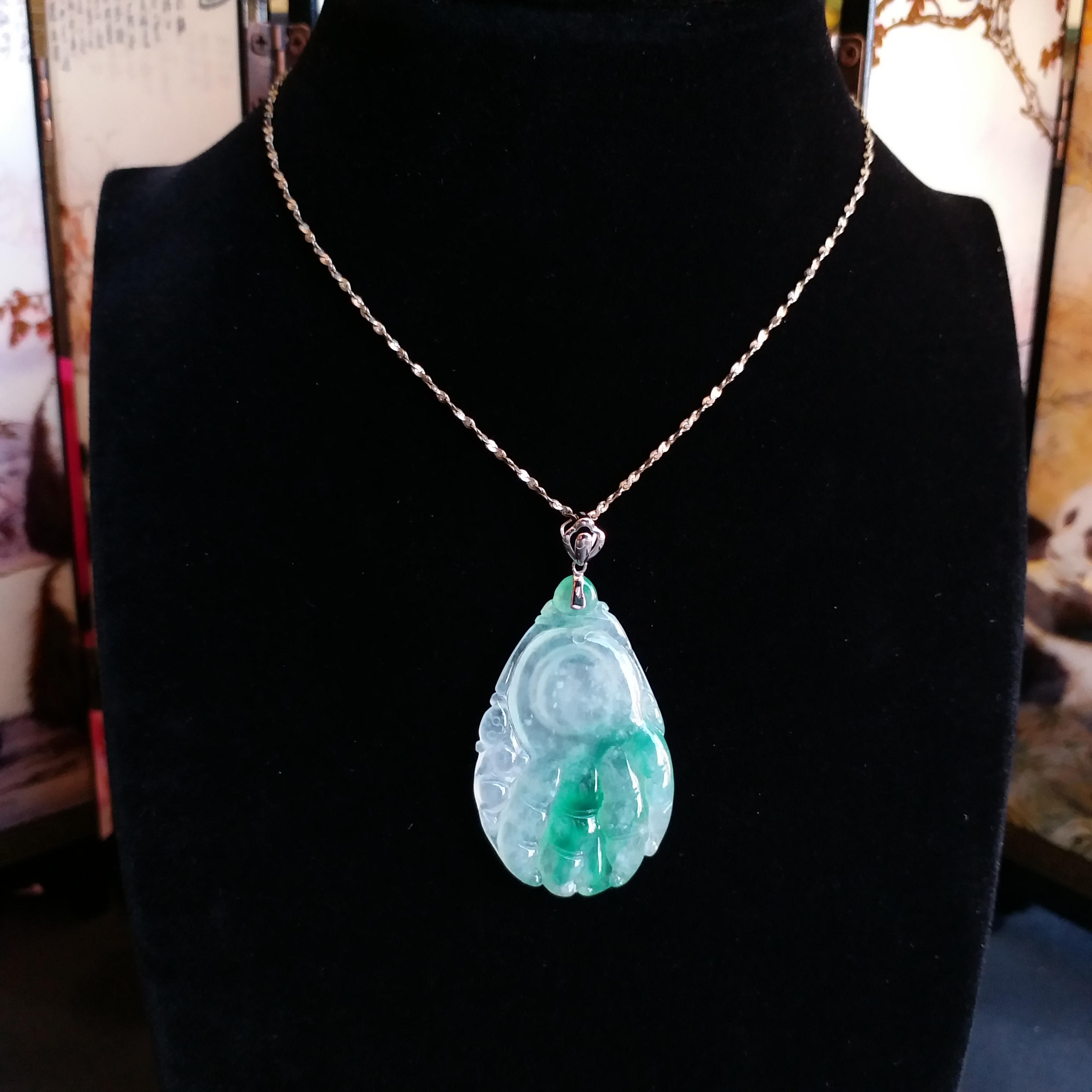 - 天然玉石在不同光線下,會呈現出不同的顏色變化;
