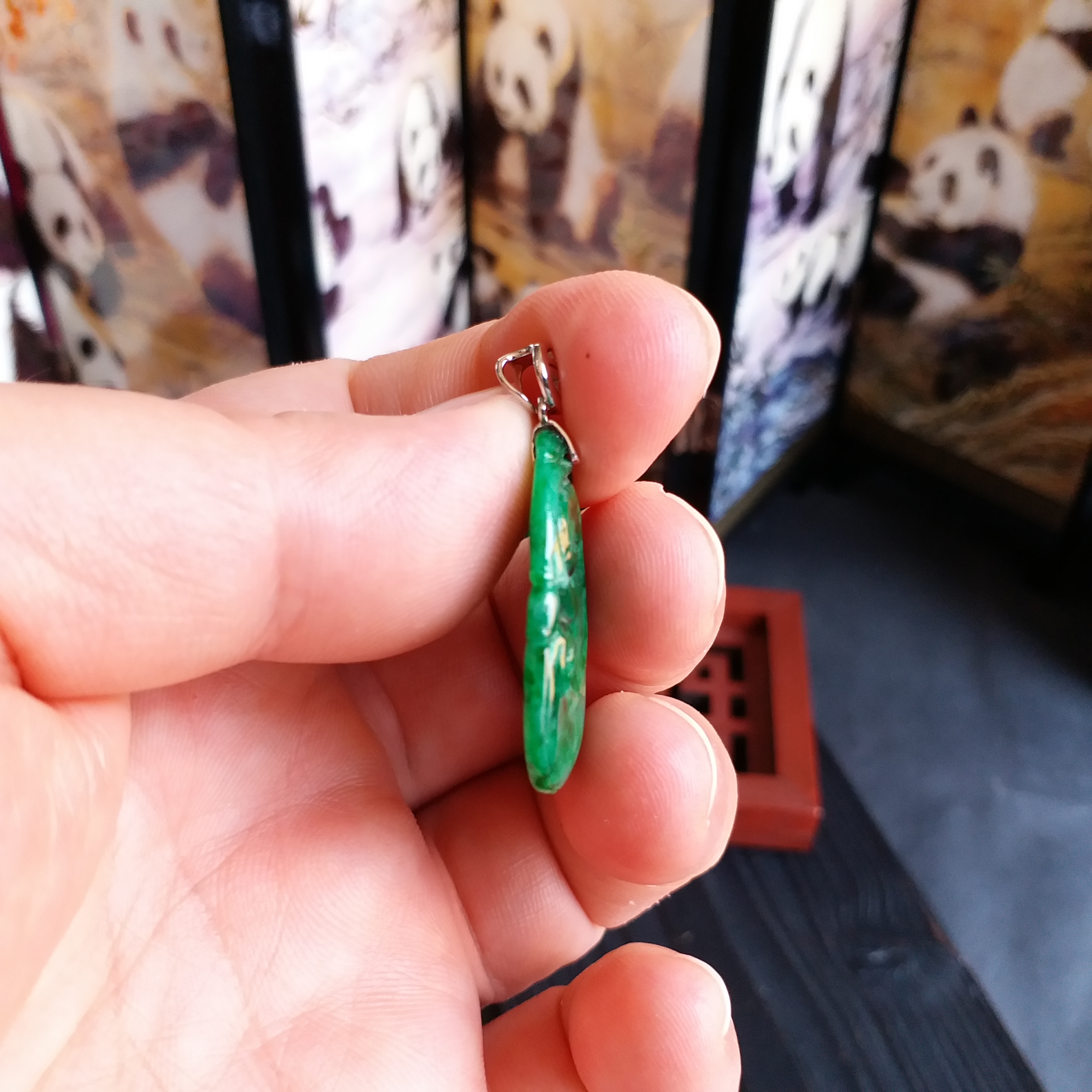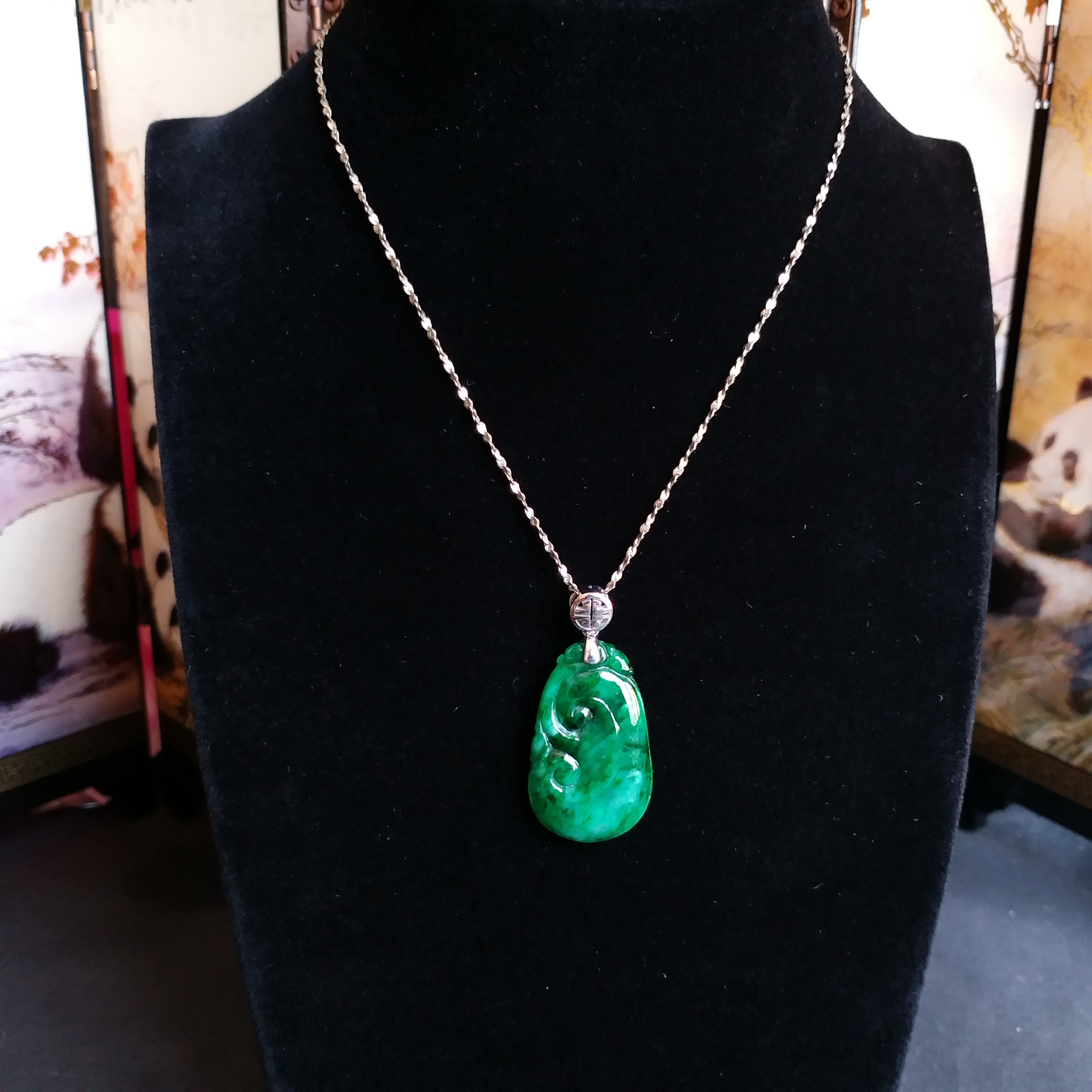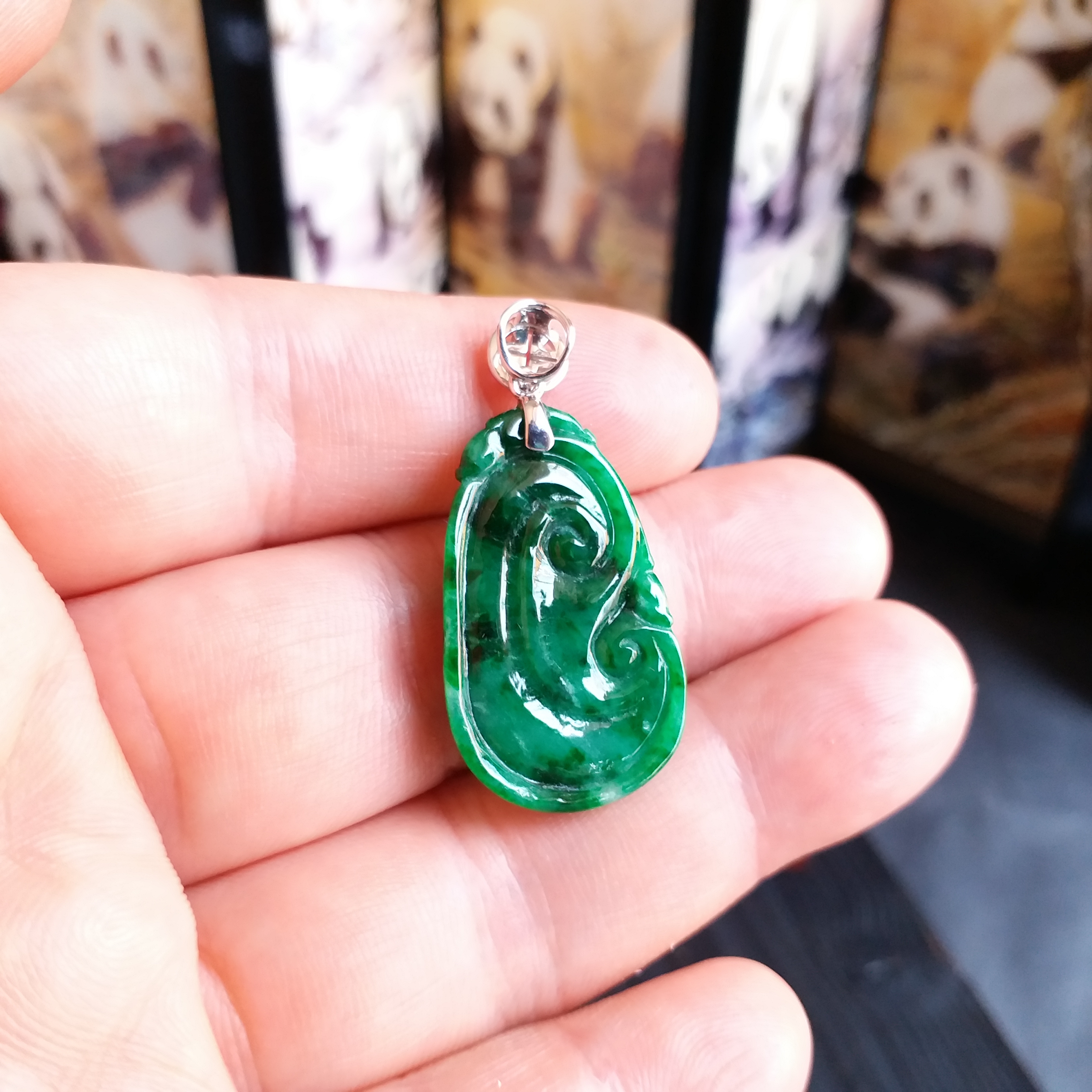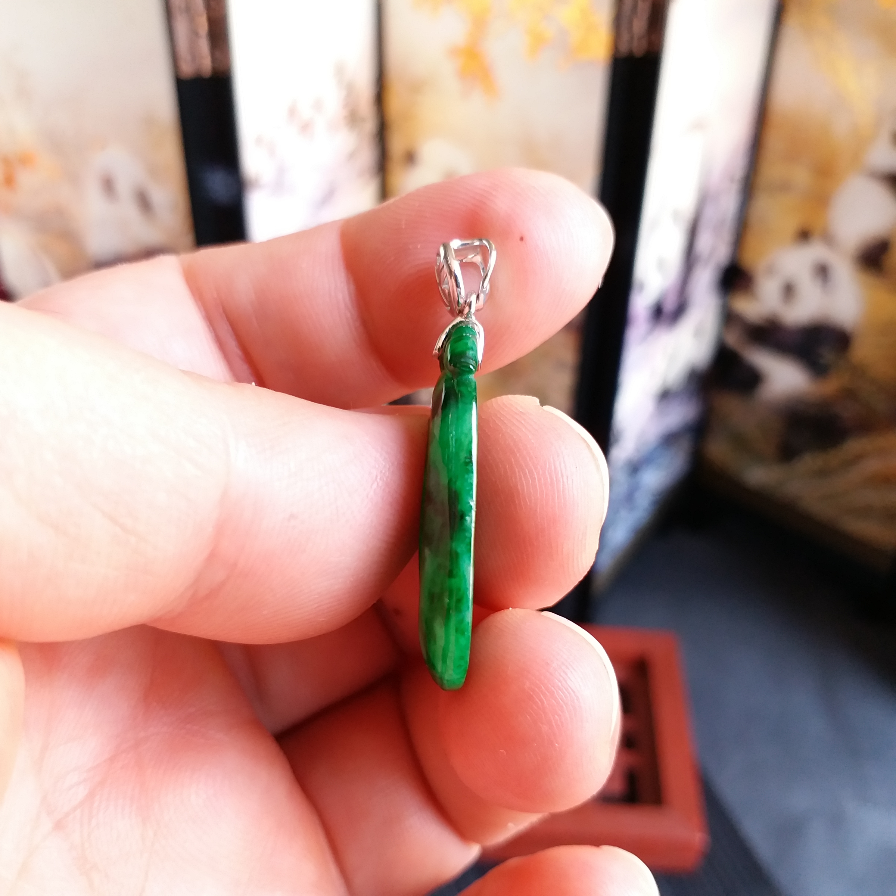 • 老坑冰糯滿綠如意+18K金扣吊墜, 天然翡翠A玉, 緬甸玉, Jade, Jadeite