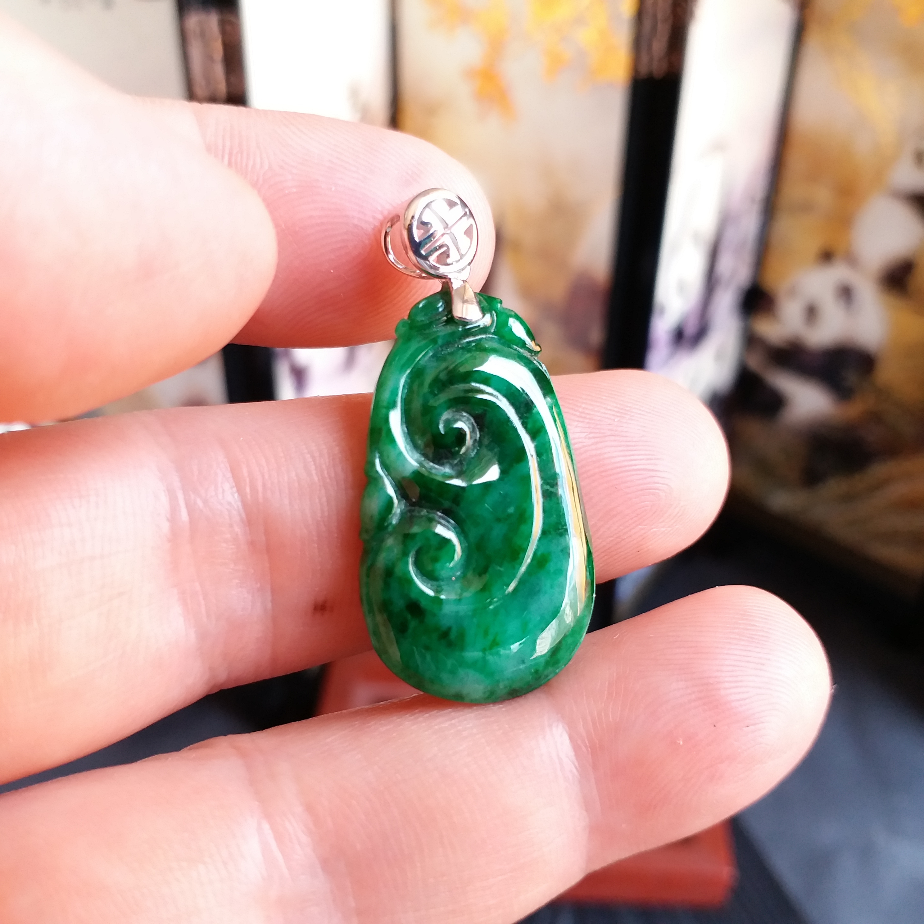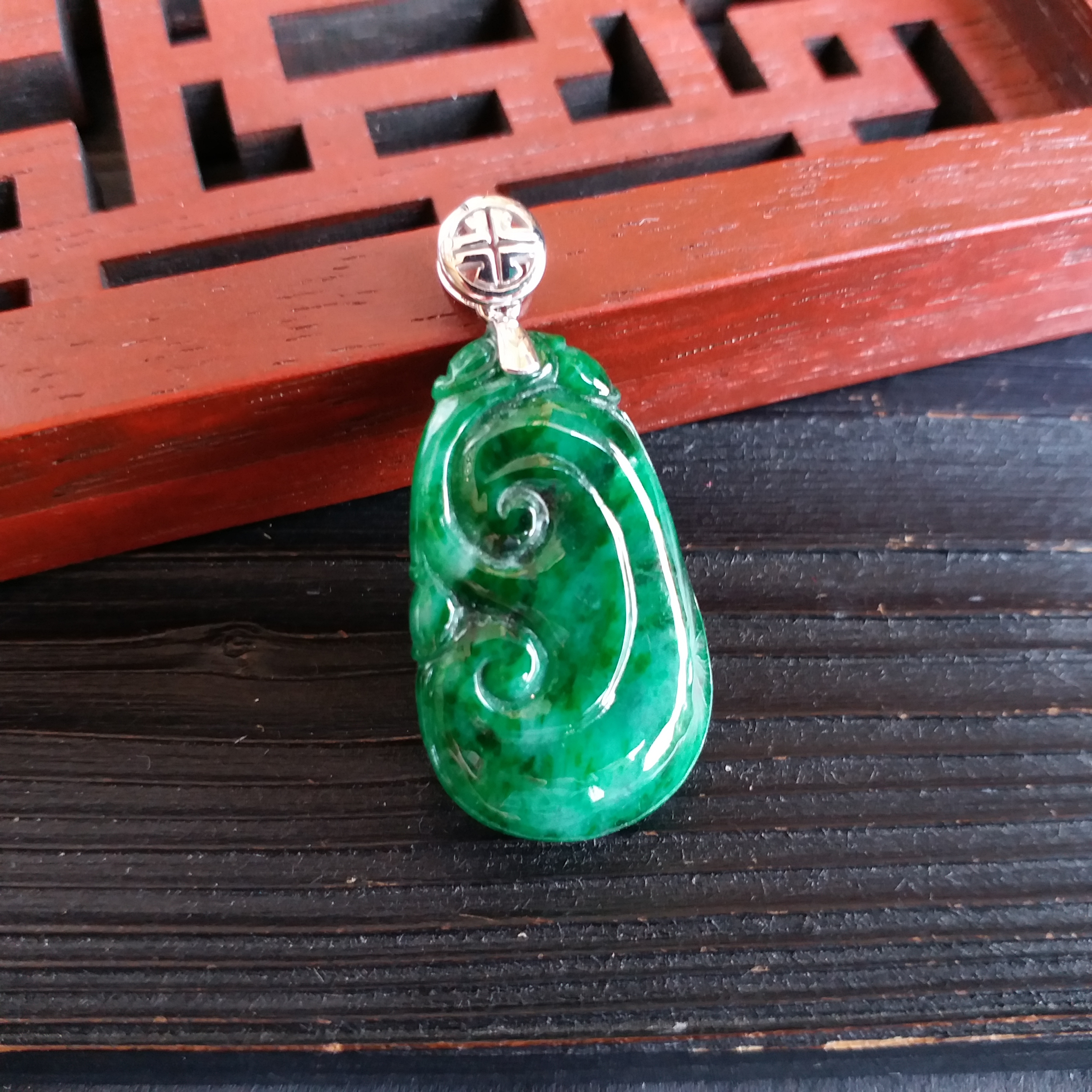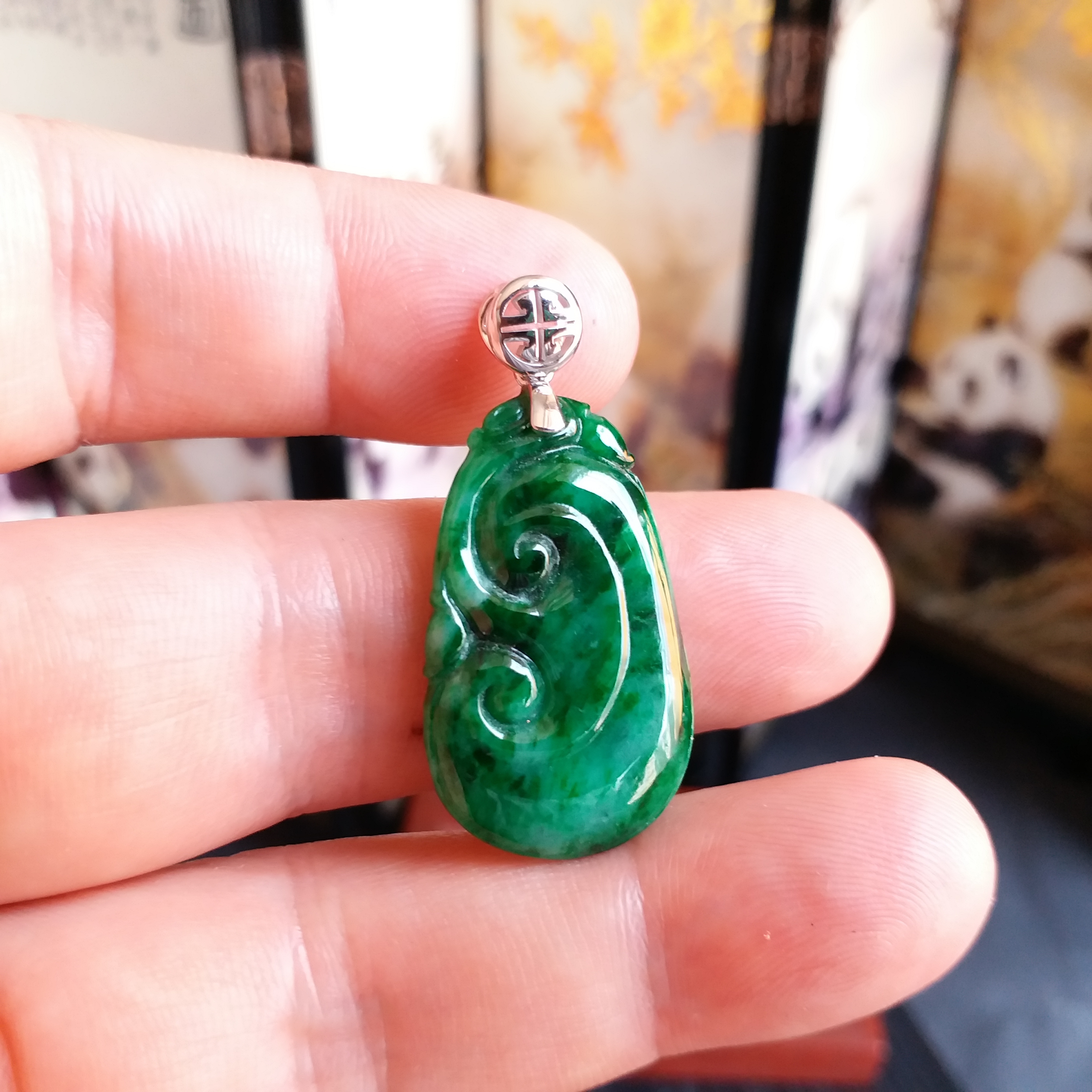 J1609 老坑冰糯滿綠如意+18K金扣吊墜