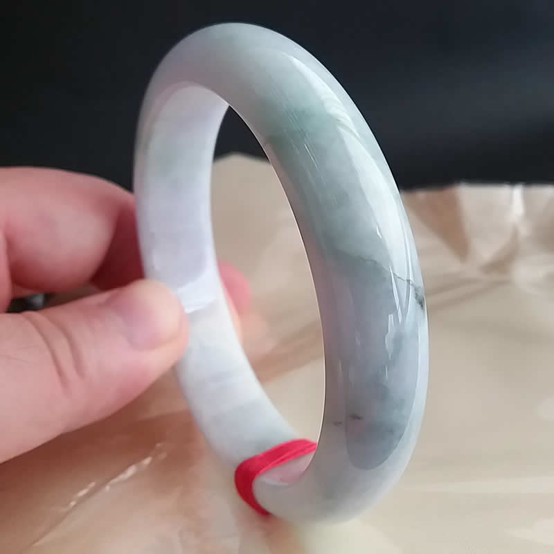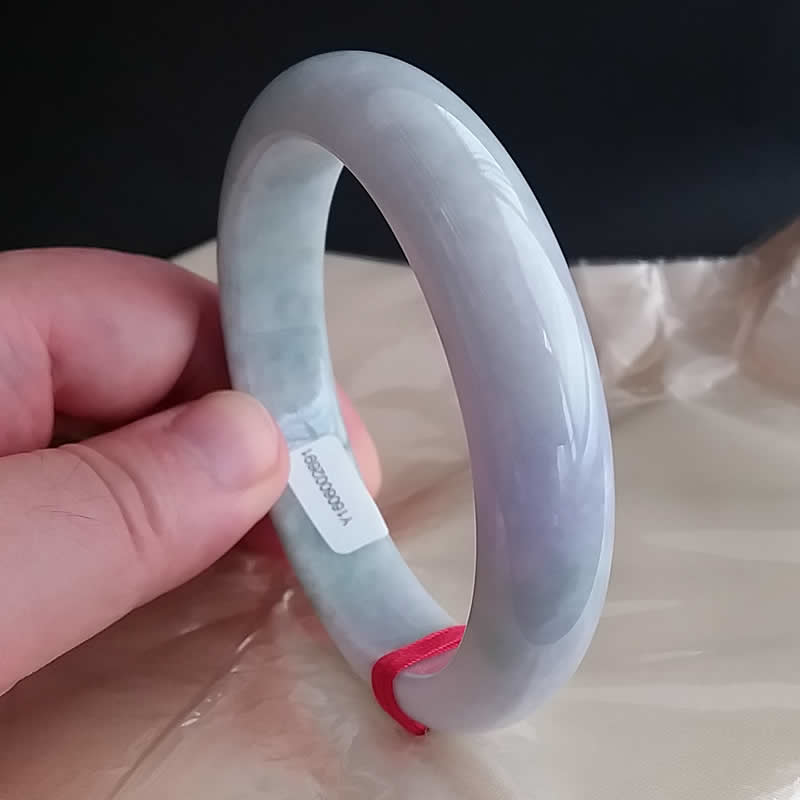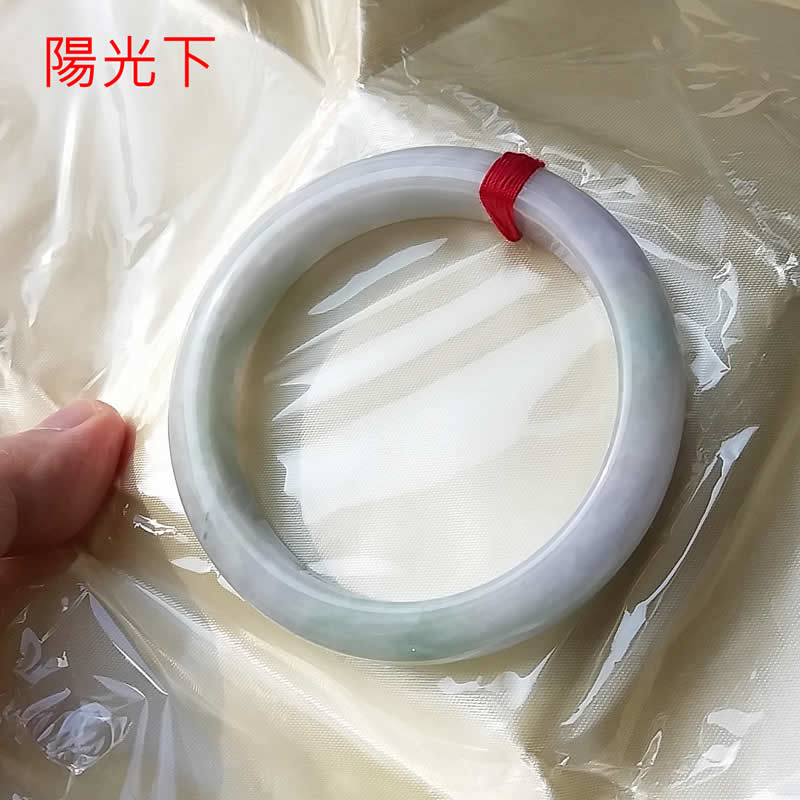 • 冰糯春彩帶淡紫玉鐲 57.3mm, 天然翡翠A玉, 緬甸玉, Jade, Jadeite
