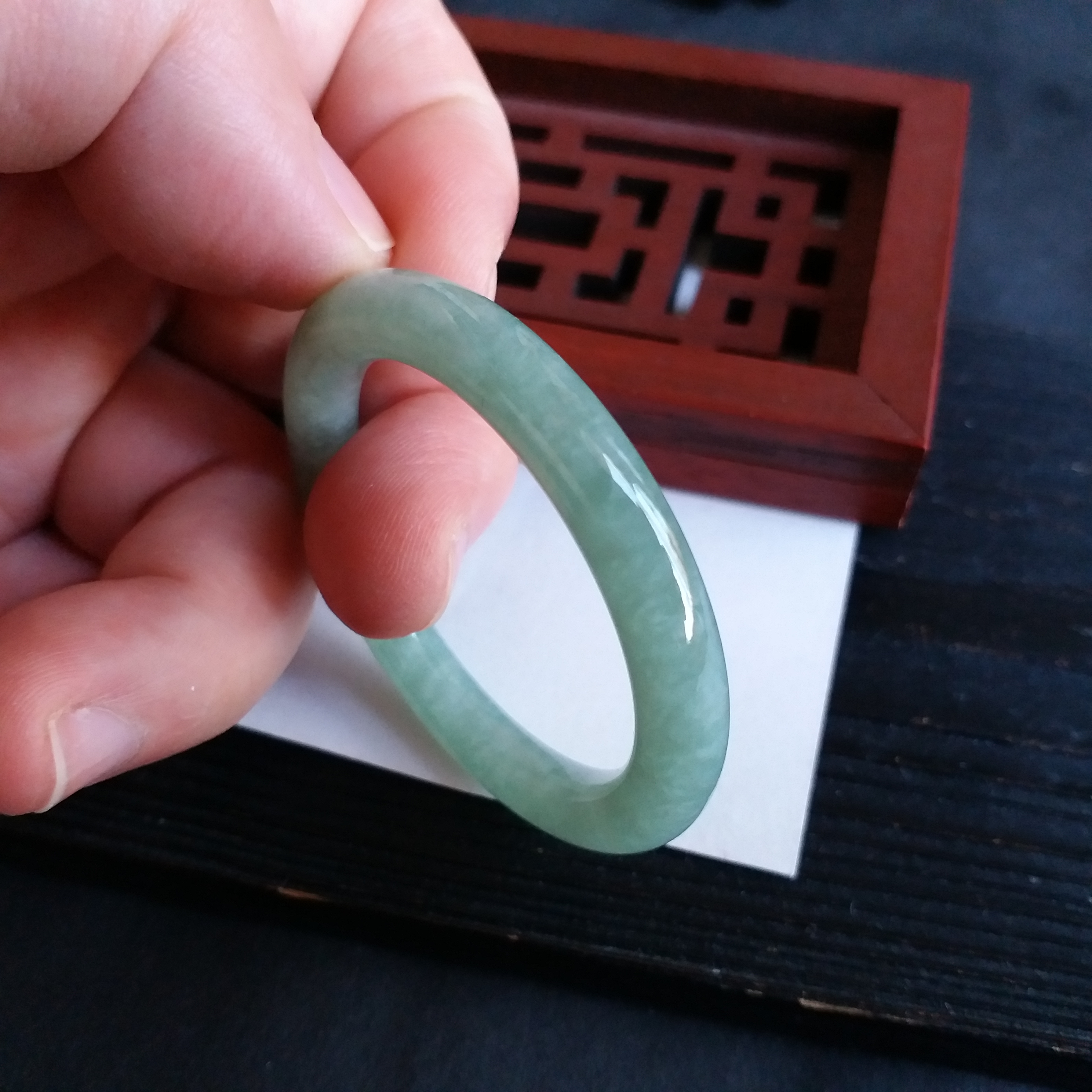 J1633-1 冰糯豆綠BB玉鐲 39mm