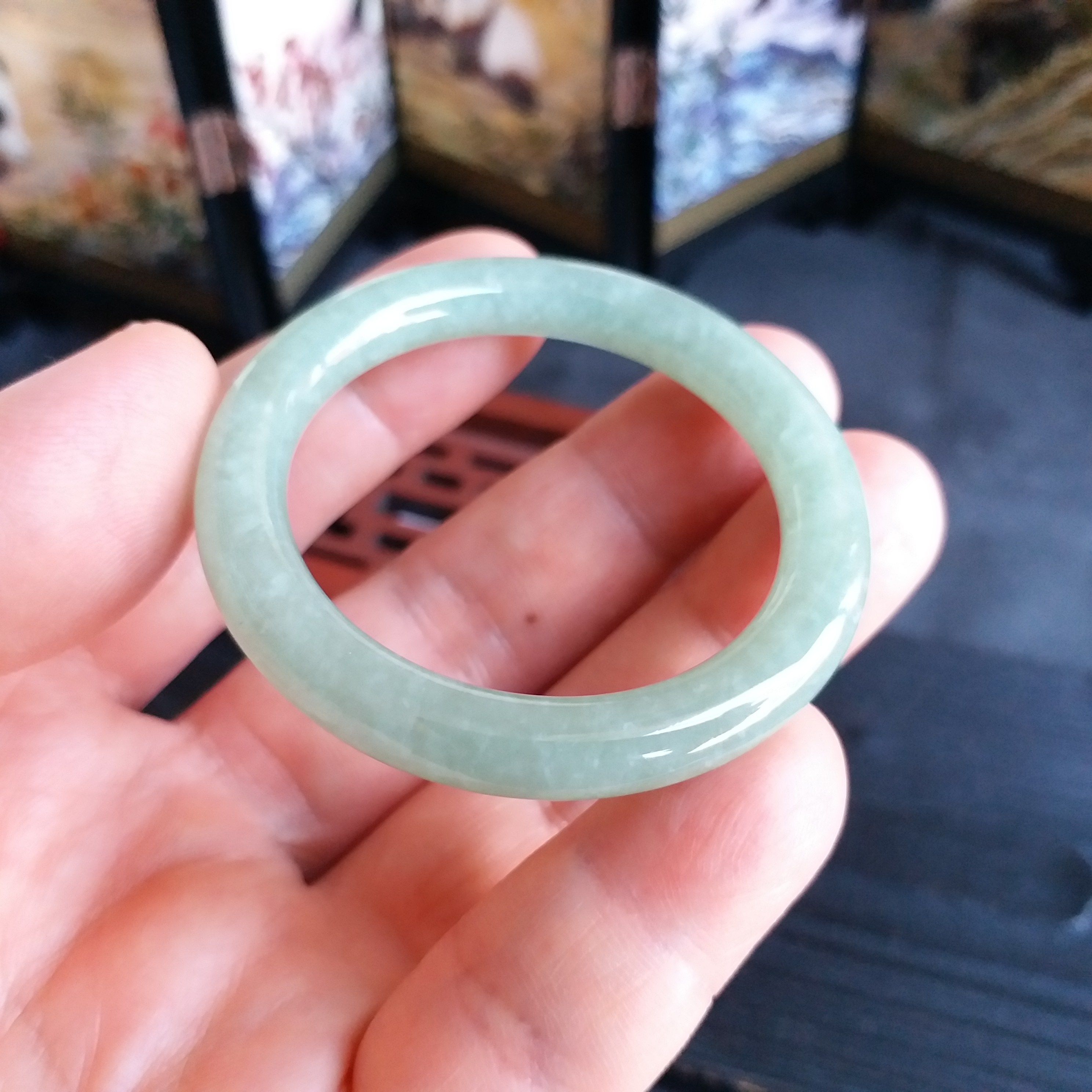 • 冰糯豆綠BB玉鐲 39mm, 天然翡翠A玉, 緬甸玉, Jade, Jadeite