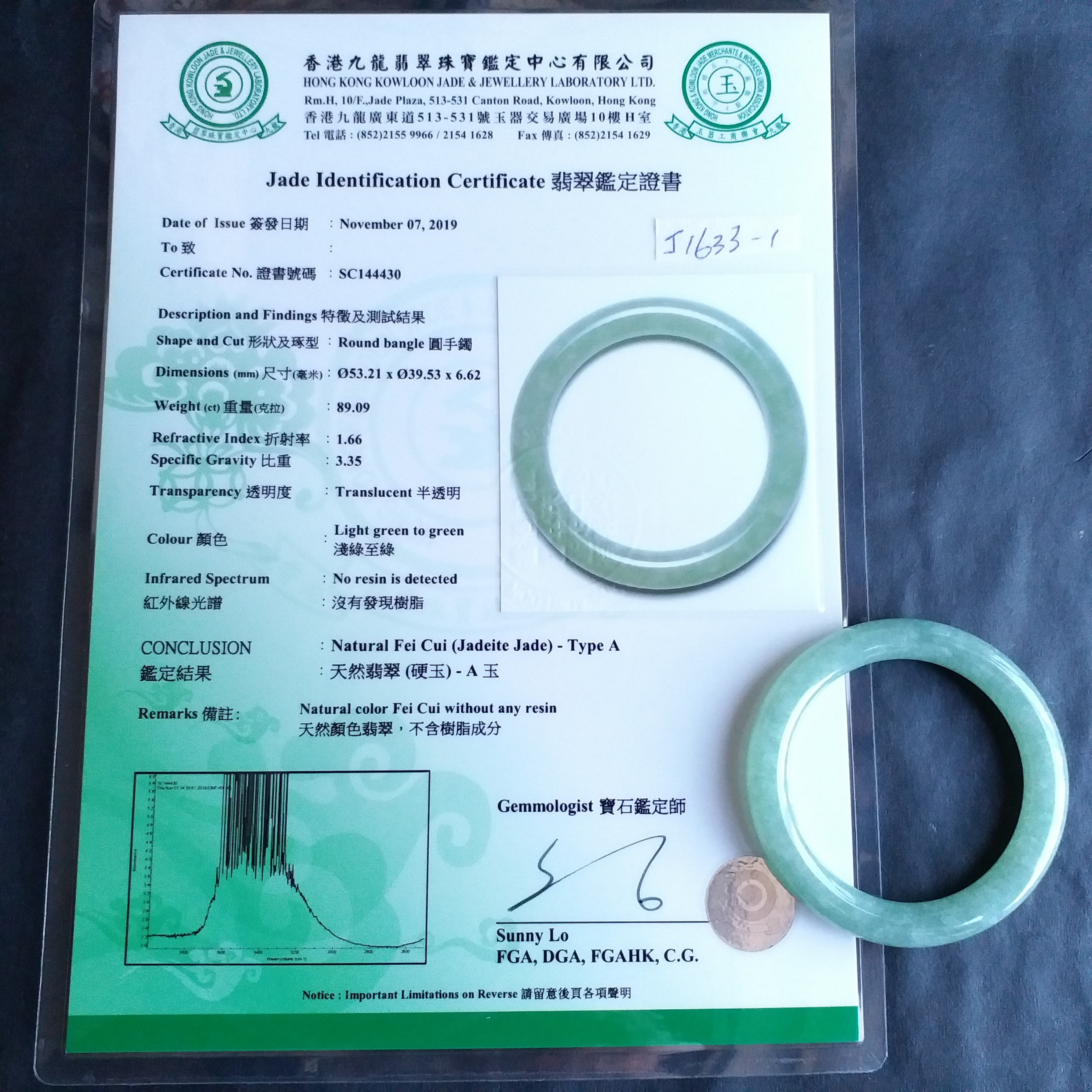 超過$1萬的貨品均包香港翡翠鑑定証書;