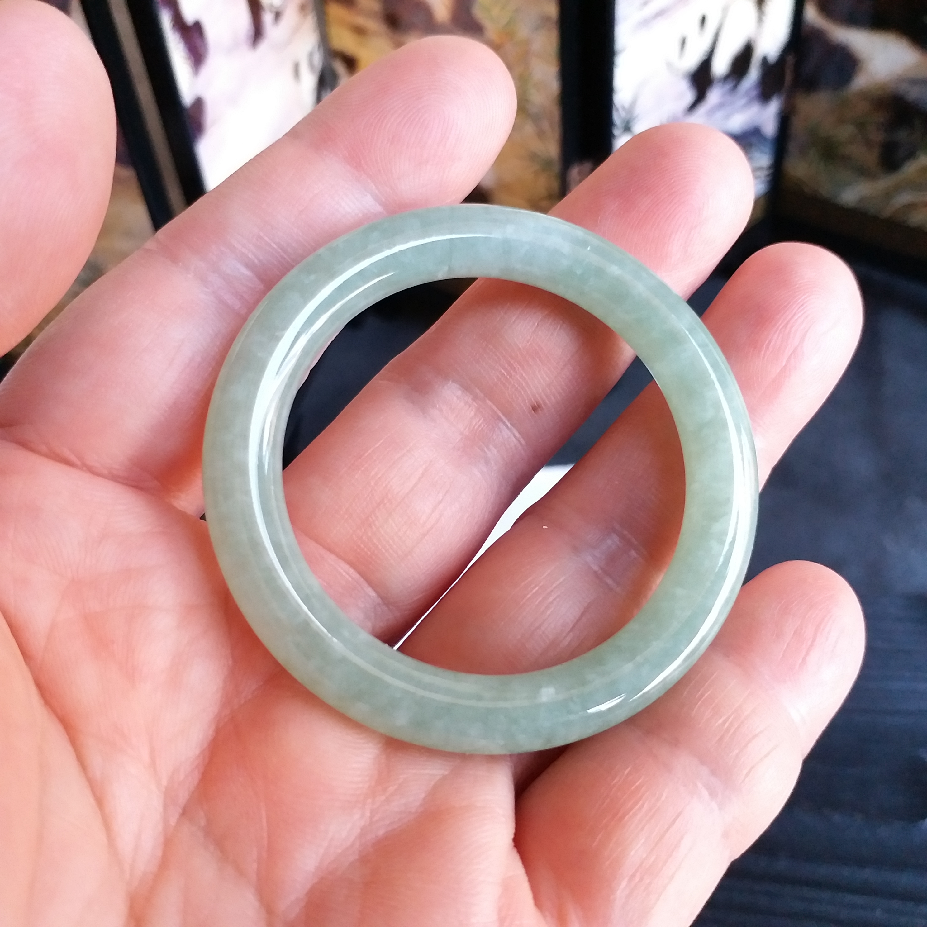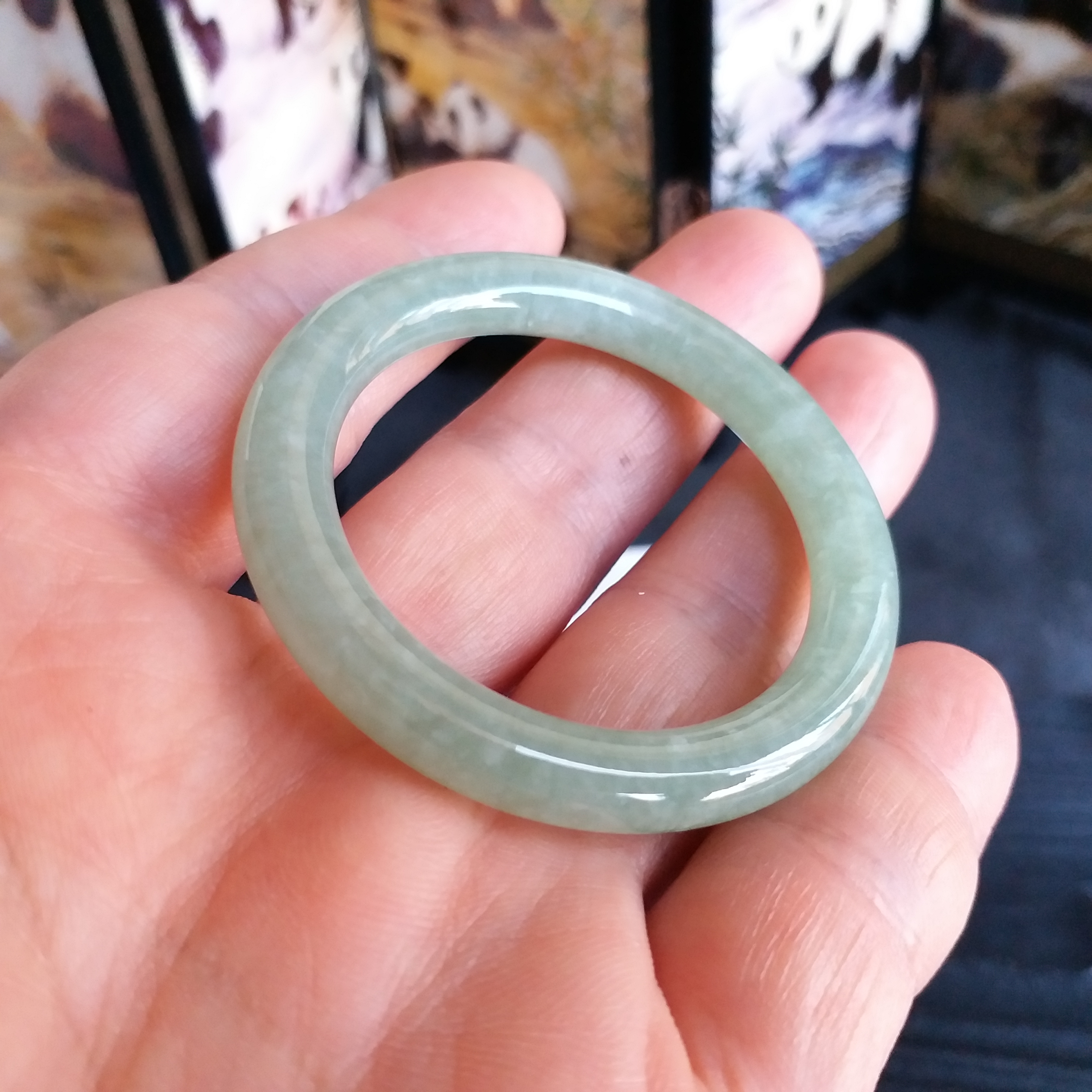 J1633-2 冰糯豆綠BB玉鐲 39mm