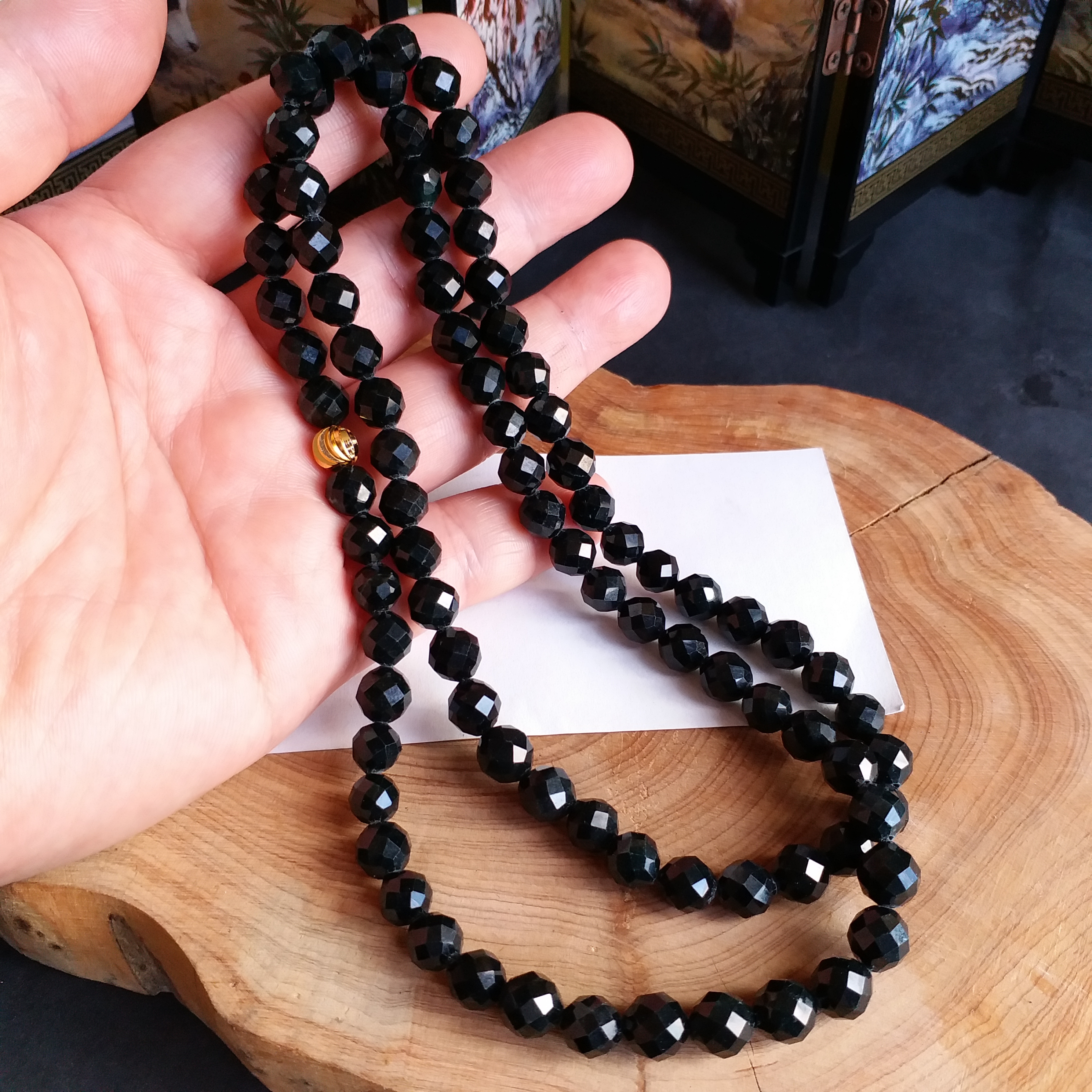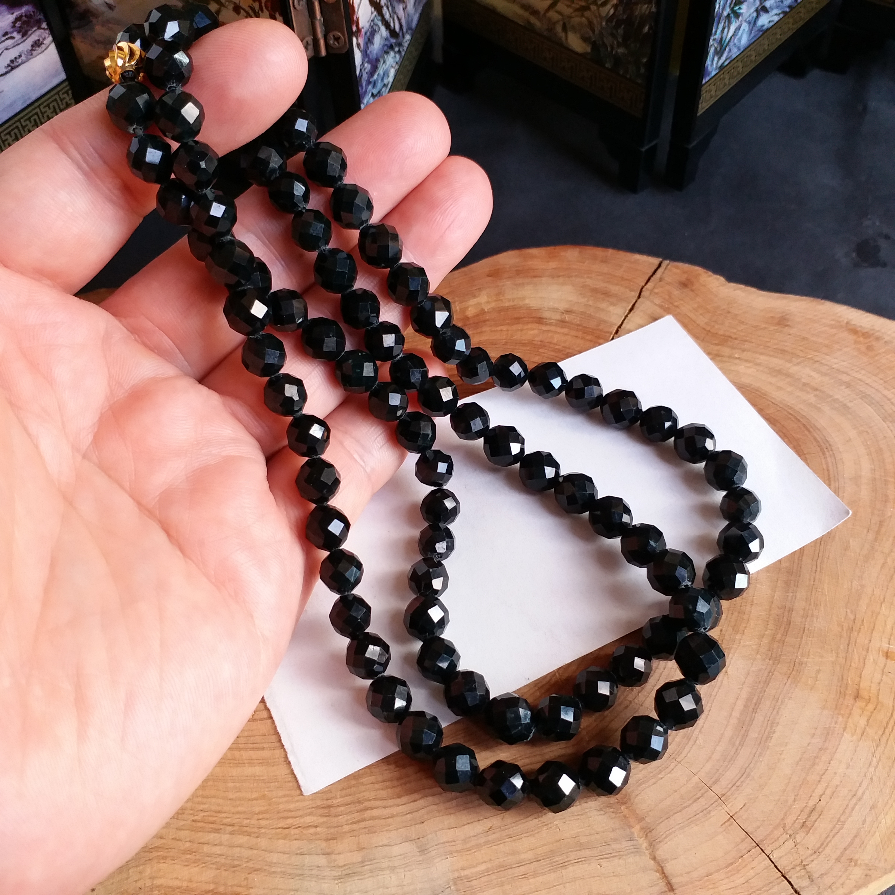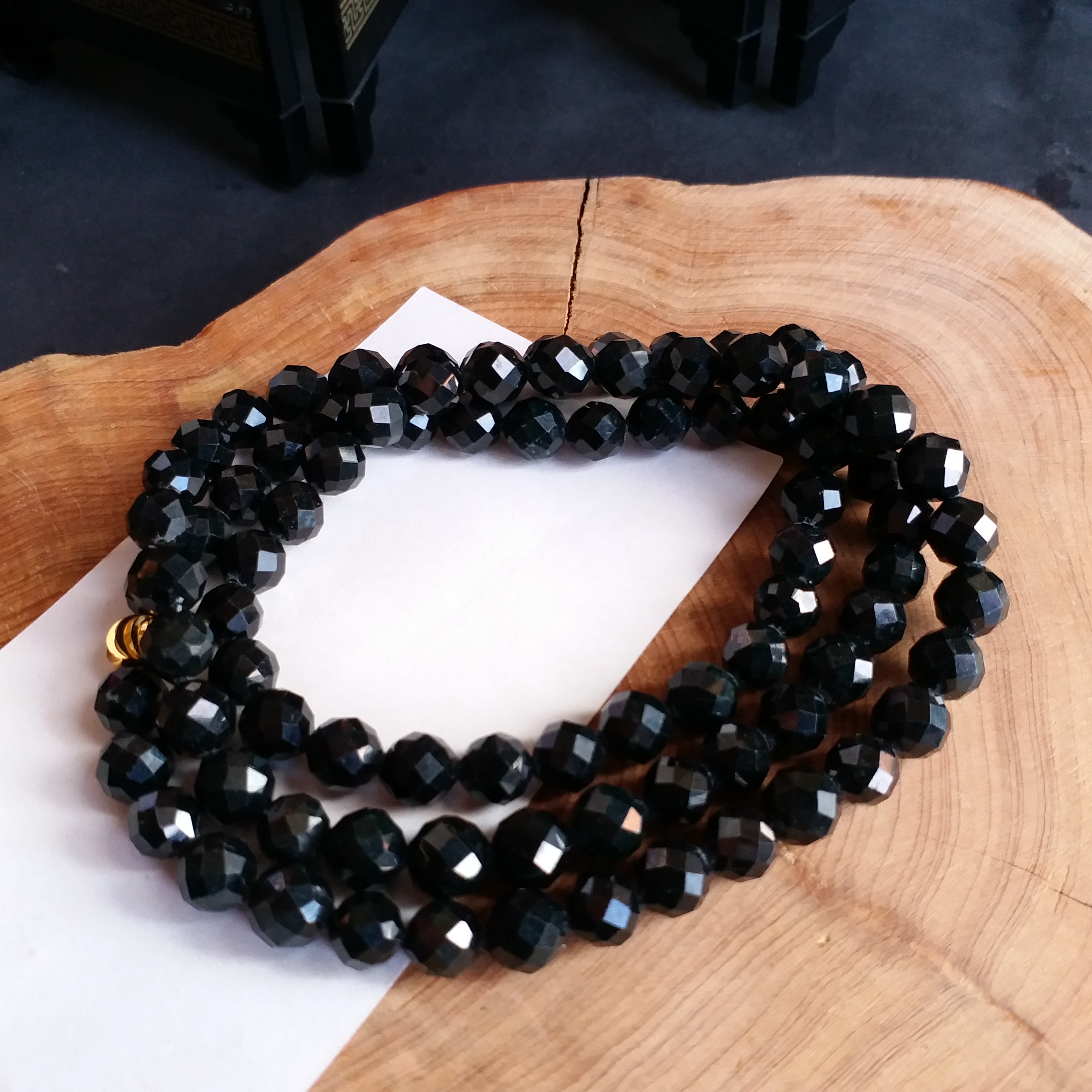 • 墨翠珠鍊108顆鑽石面 (7.5mm直徑), 天然翡翠A玉, 緬甸玉, Jade, Jadeite