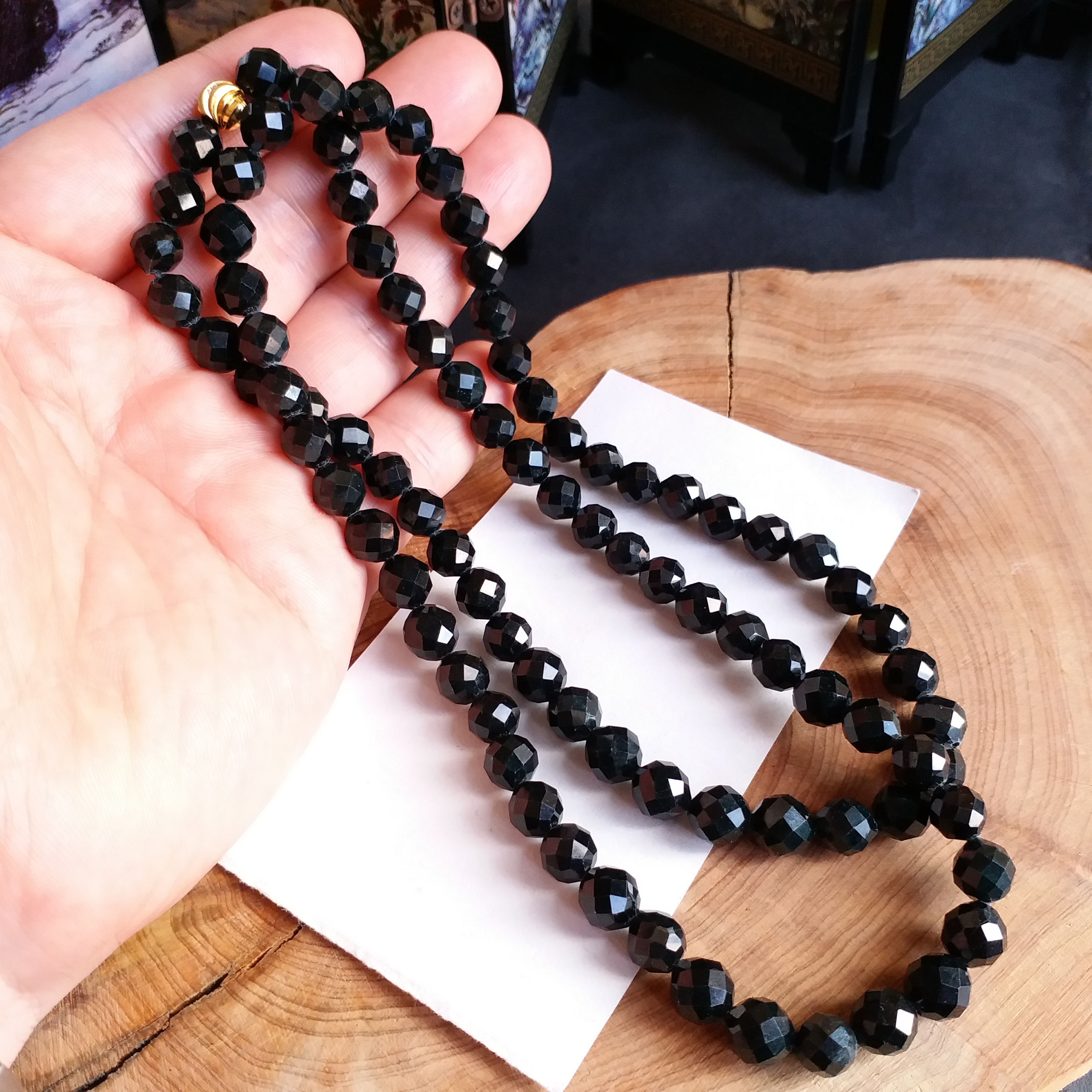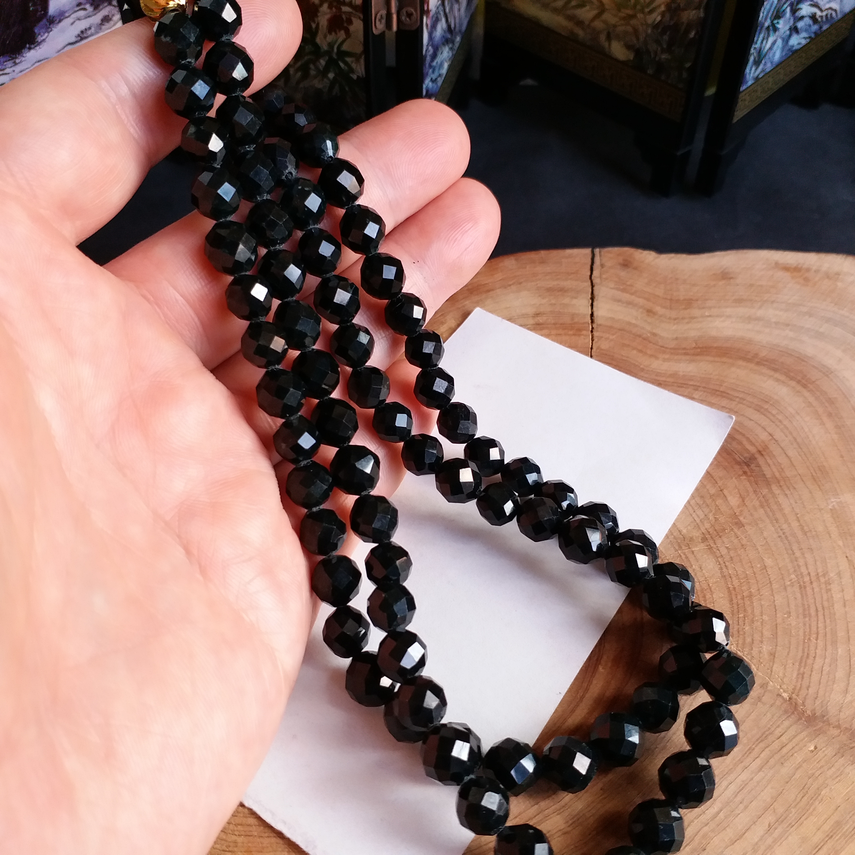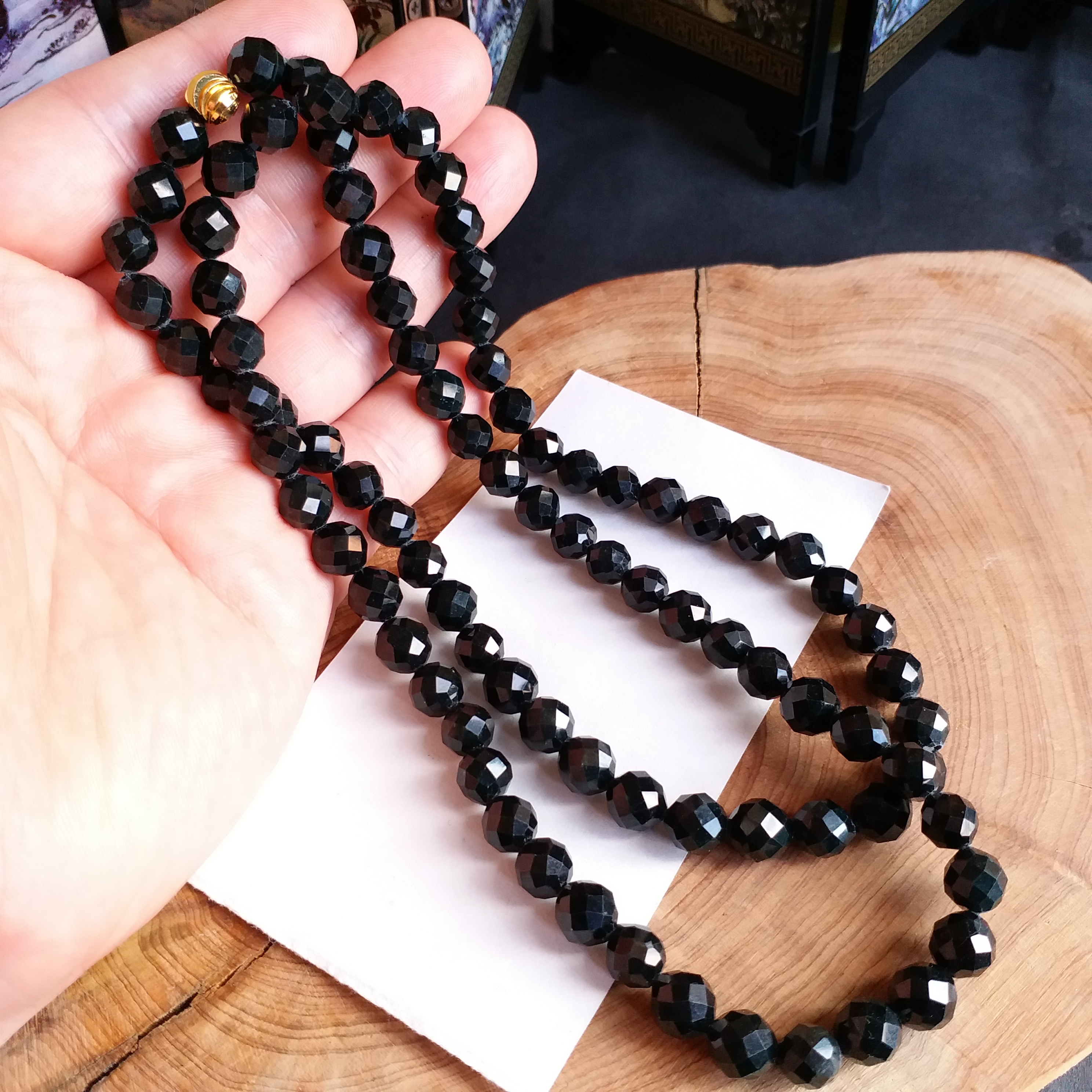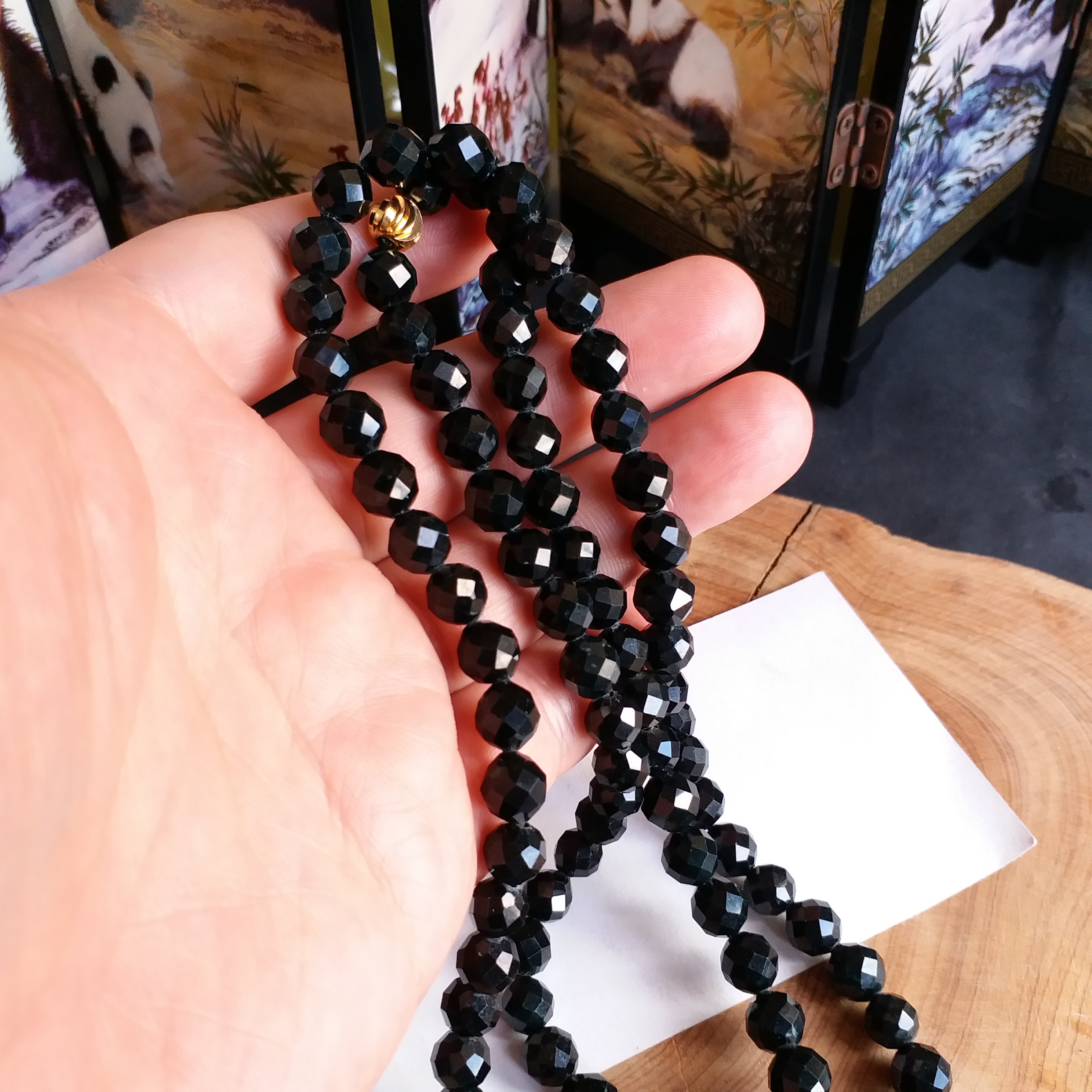 • 墨翠珠鍊108顆鑽石面 (7.5mm直徑), 天然翡翠A玉, 緬甸玉, Jade, Jadeite