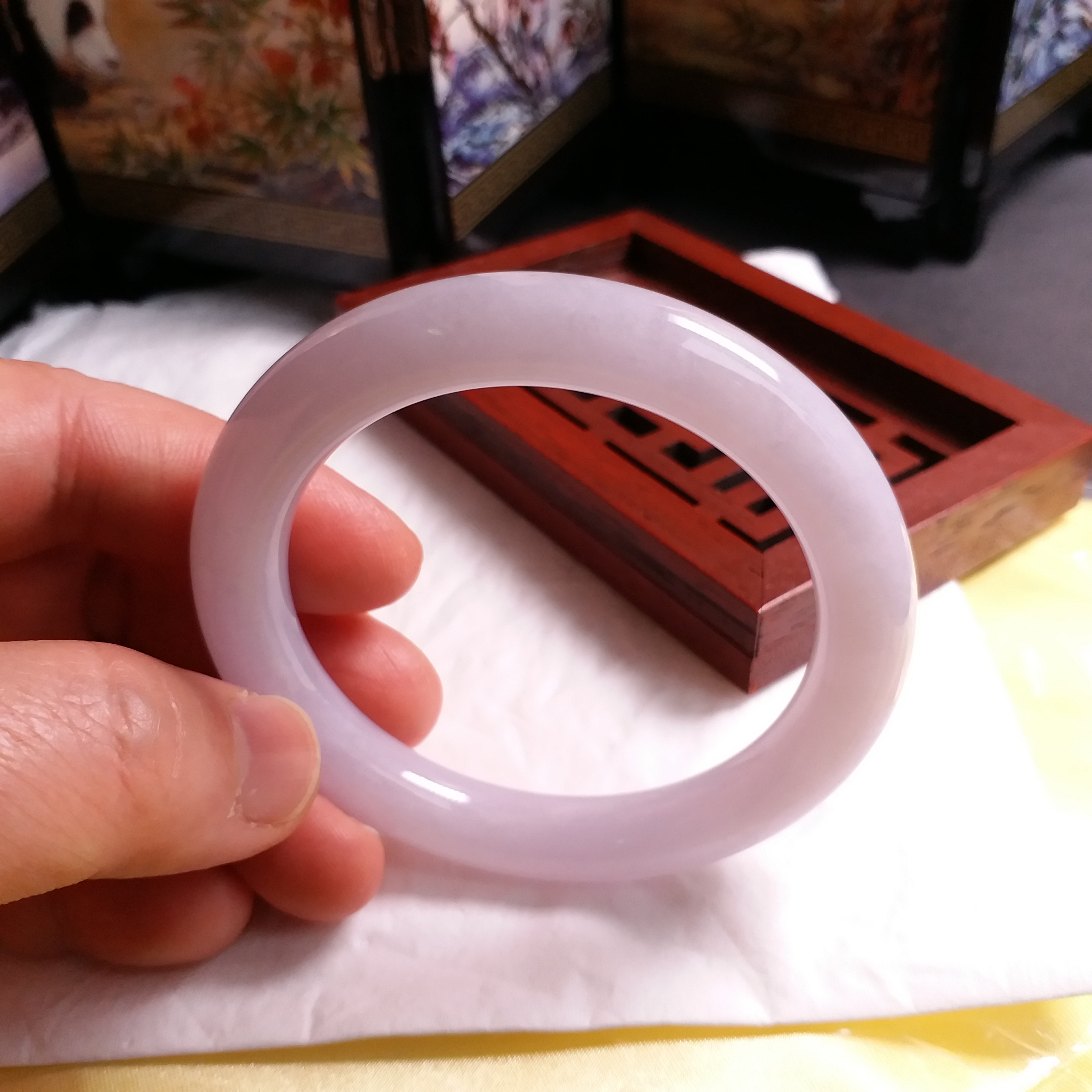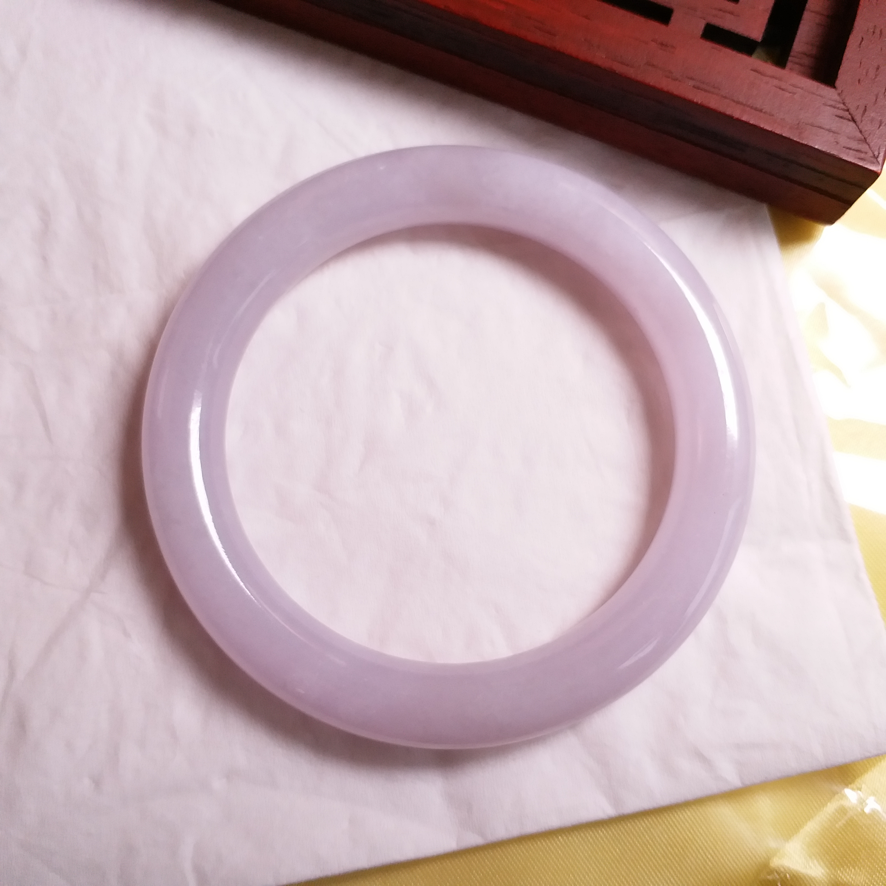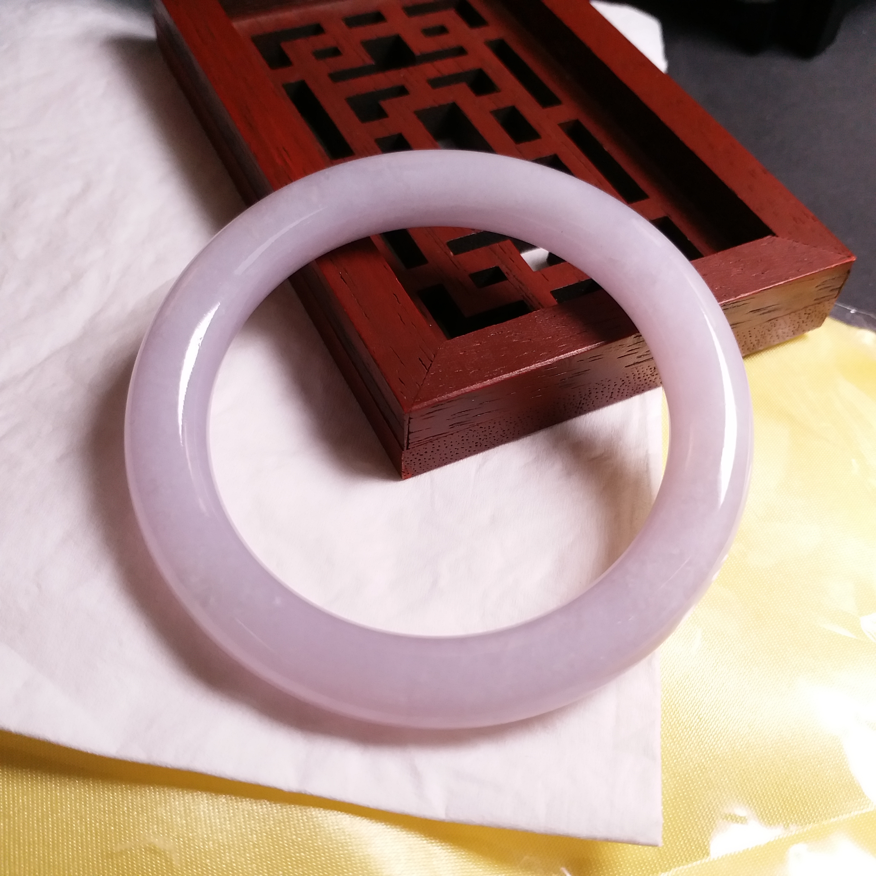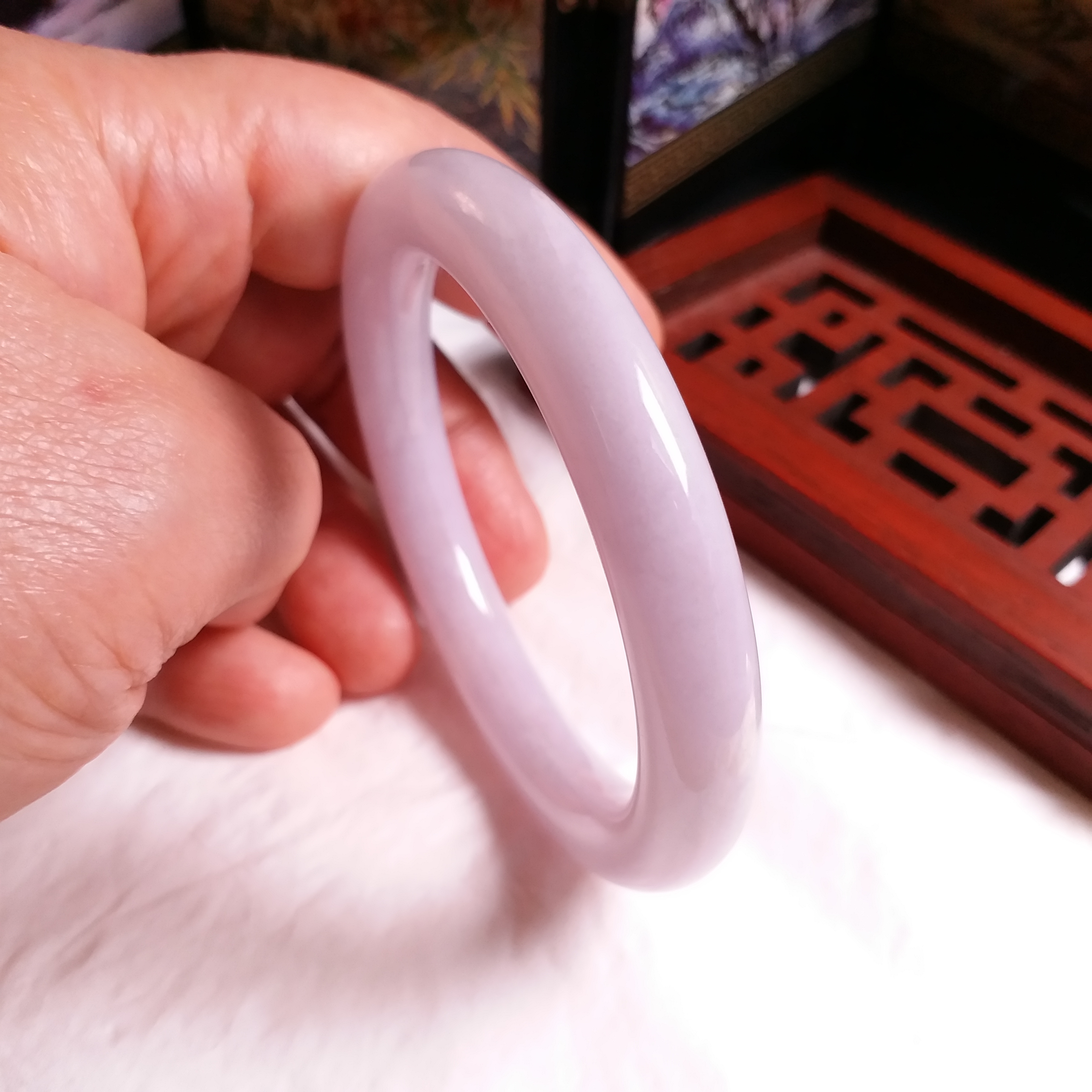 • 冰糯粉紫圓條玉鐲 55mm, 天然翡翠A玉, 緬甸玉, Jade, Jadeite