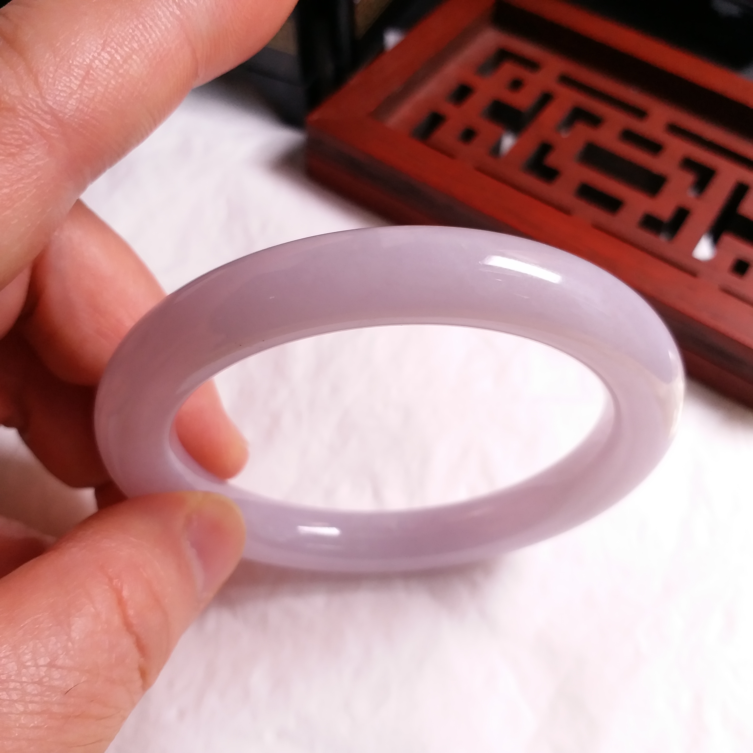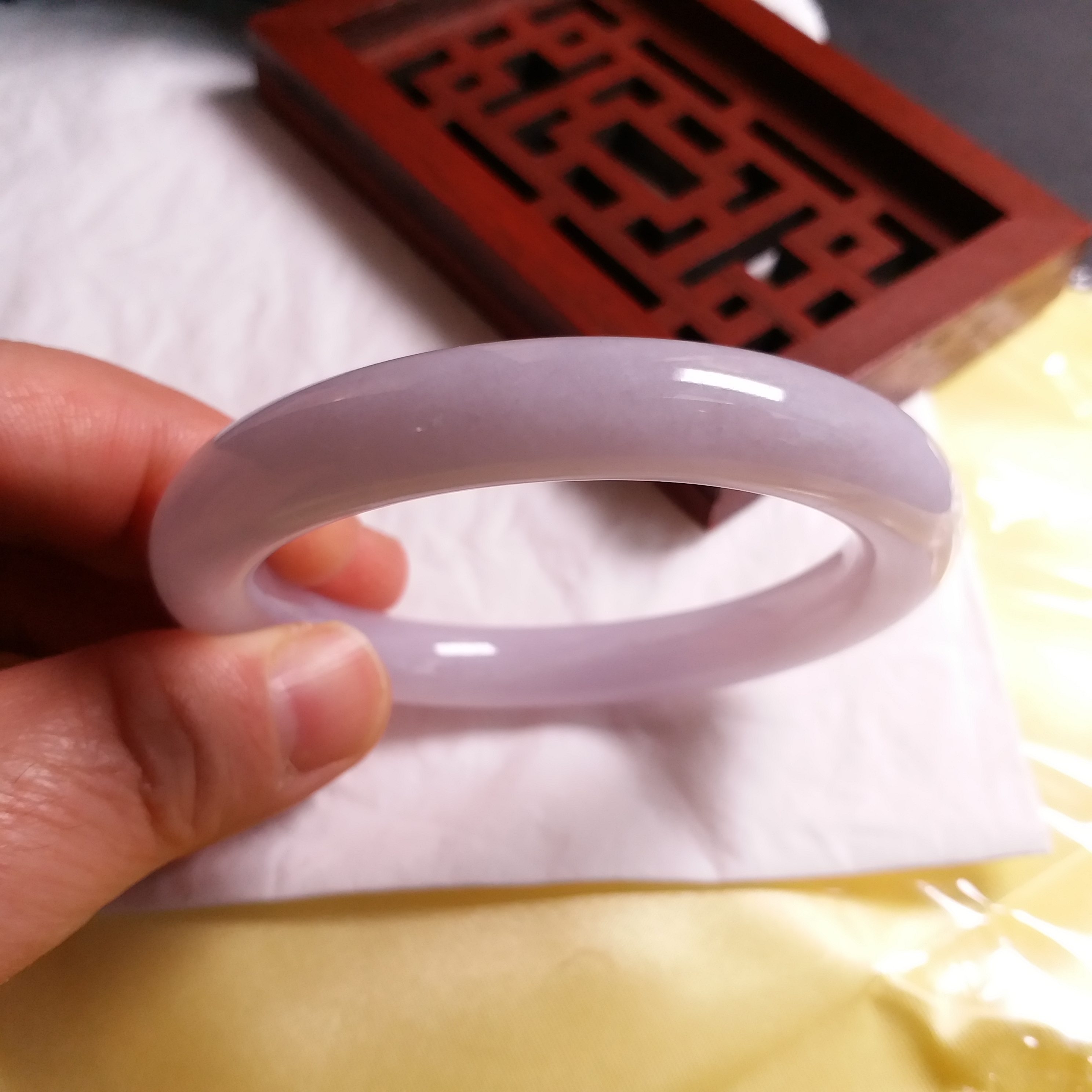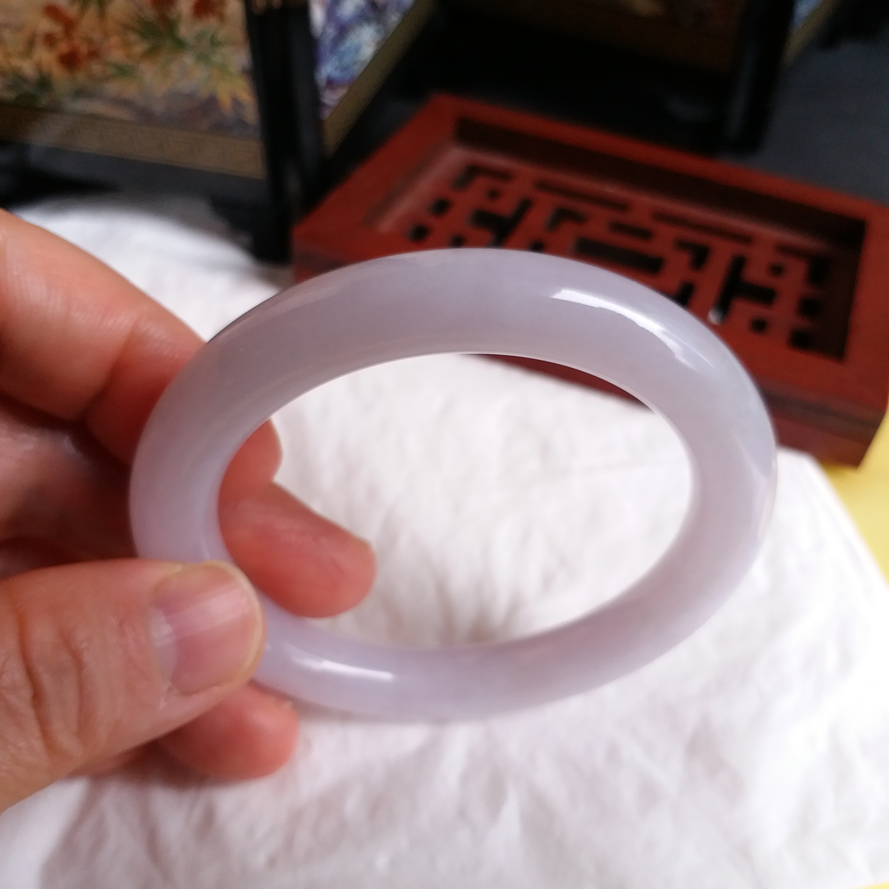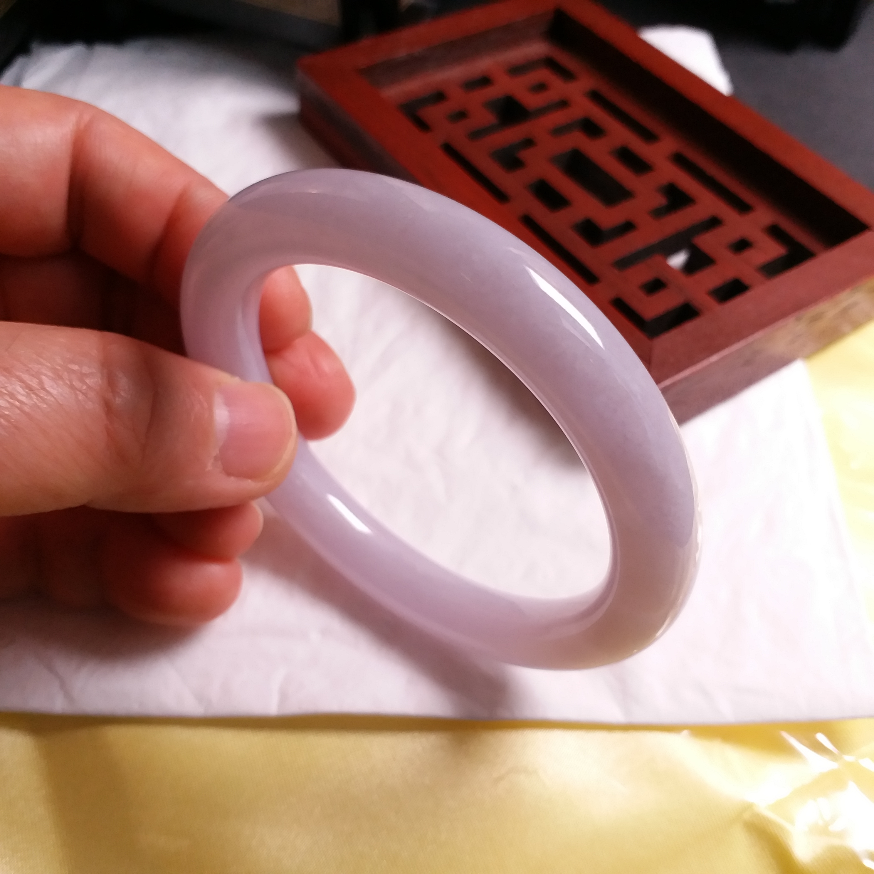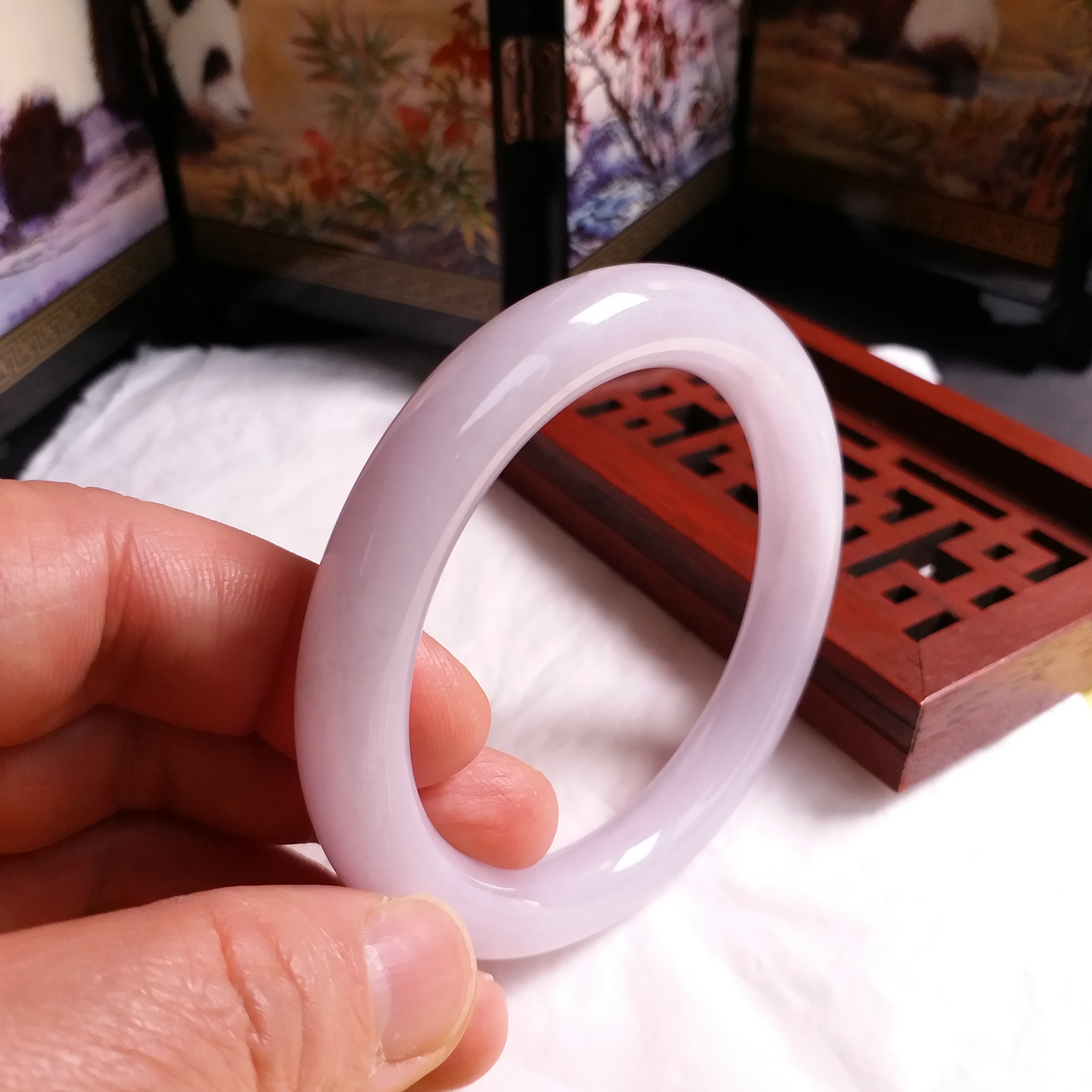 • 冰糯粉紫圓條玉鐲 55mm, 天然翡翠A玉, 緬甸玉, Jade, Jadeite