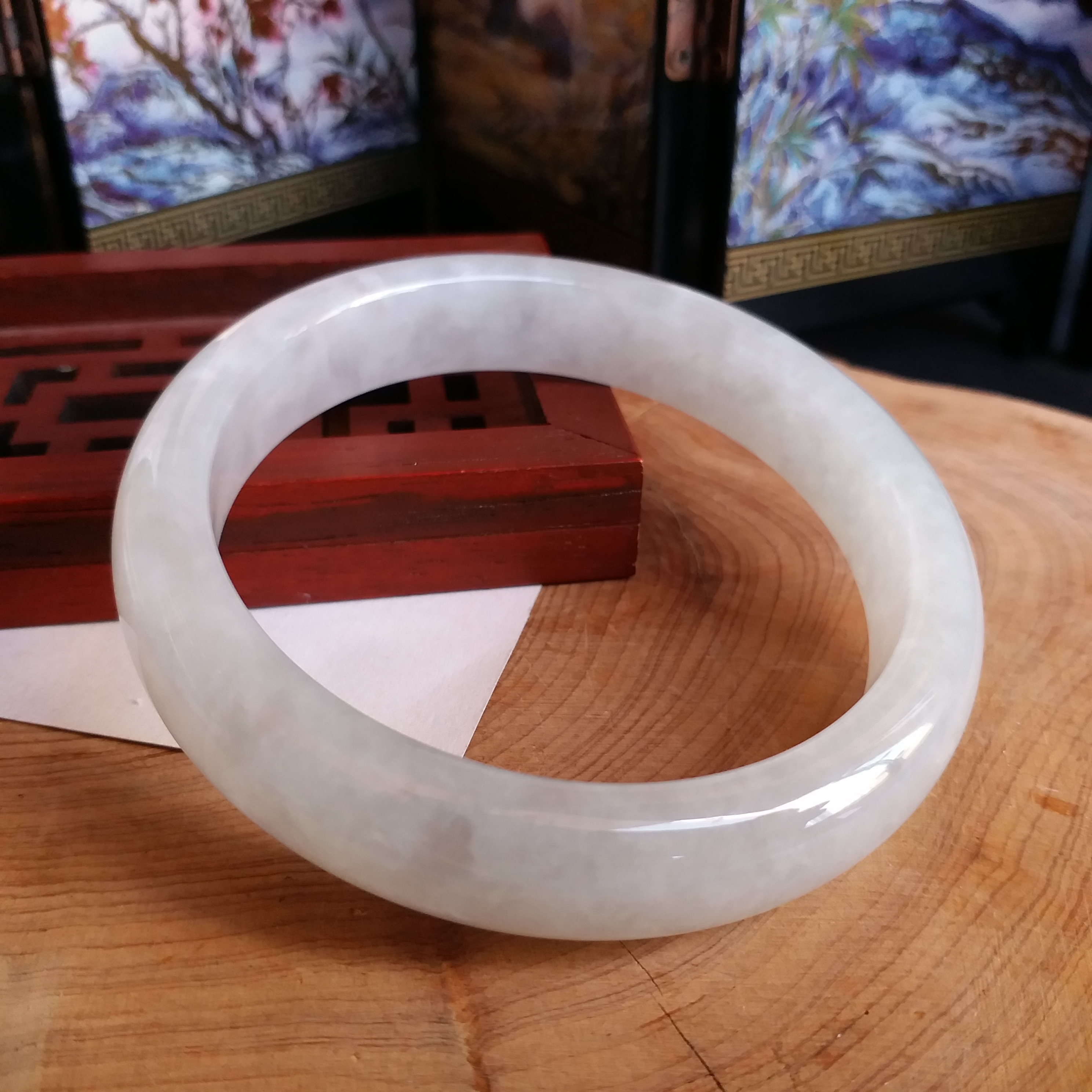 • 冰晴水綠福鐲 60.75mm, 天然翡翠A玉, 緬甸玉, Jade, Jadeite