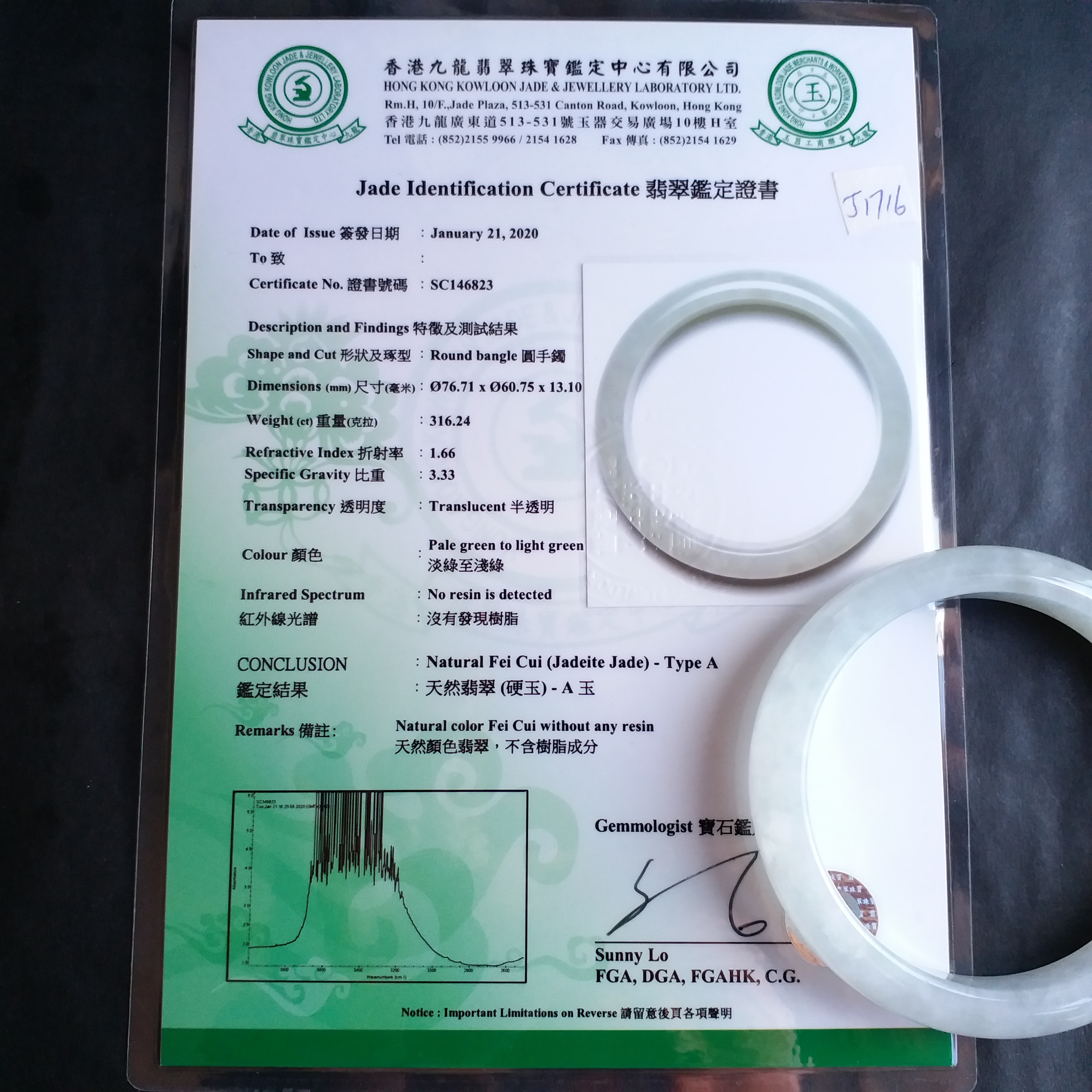 超過$1萬的貨品均包香港翡翠鑑定証書;