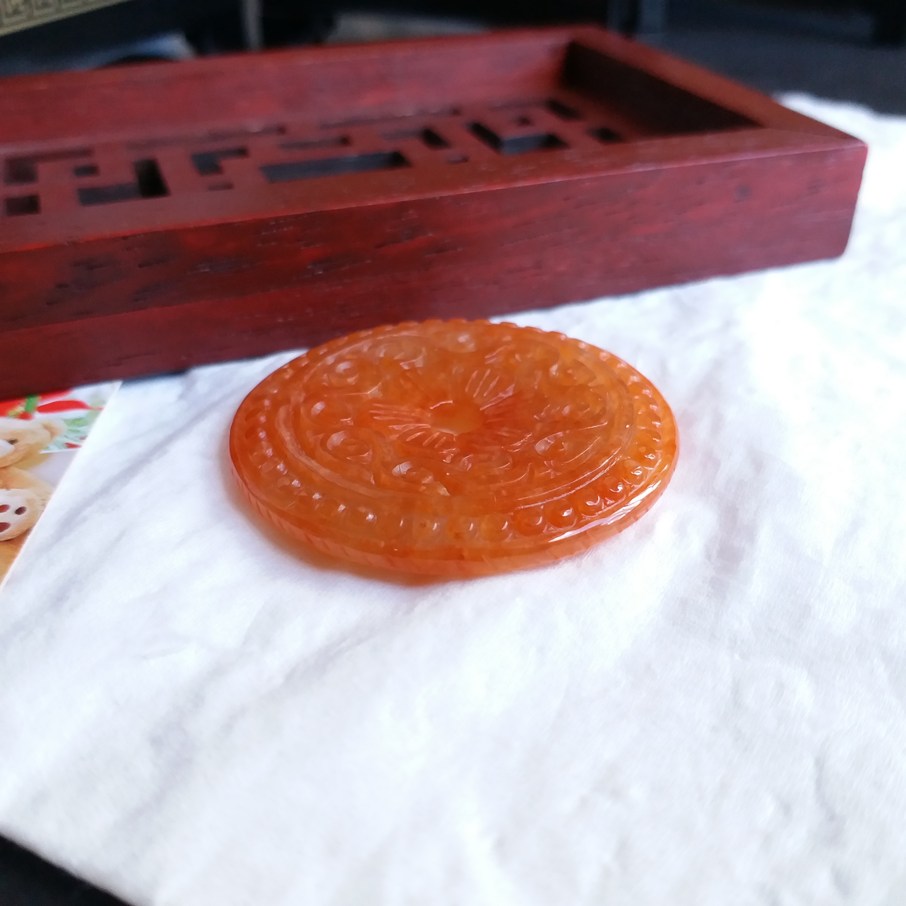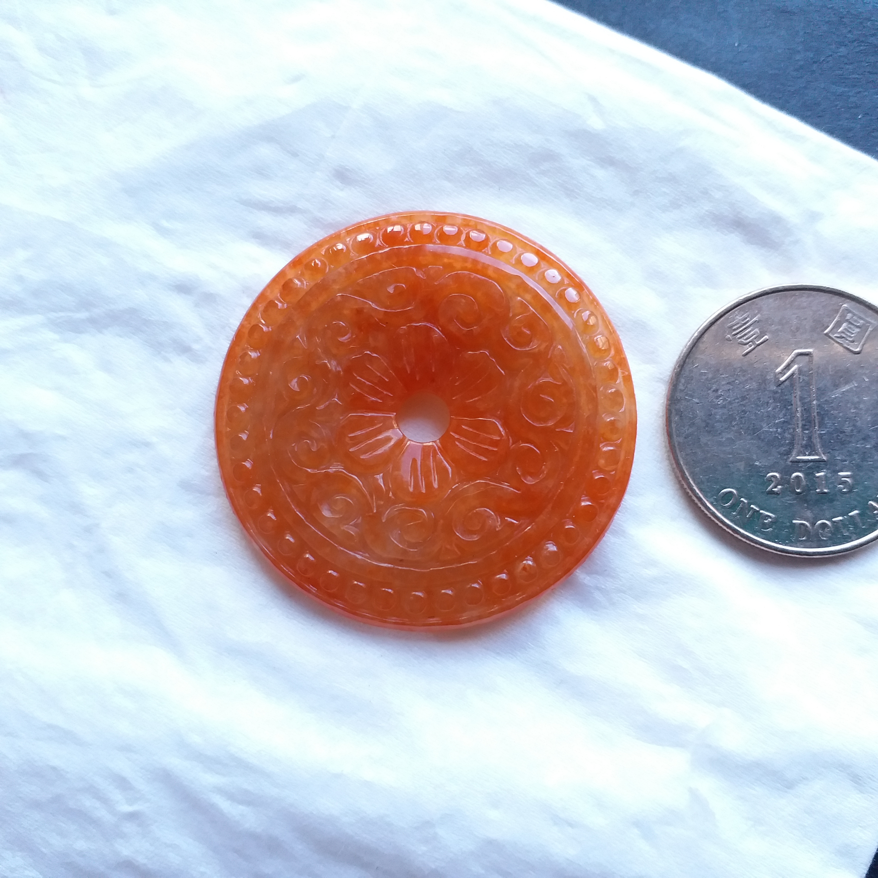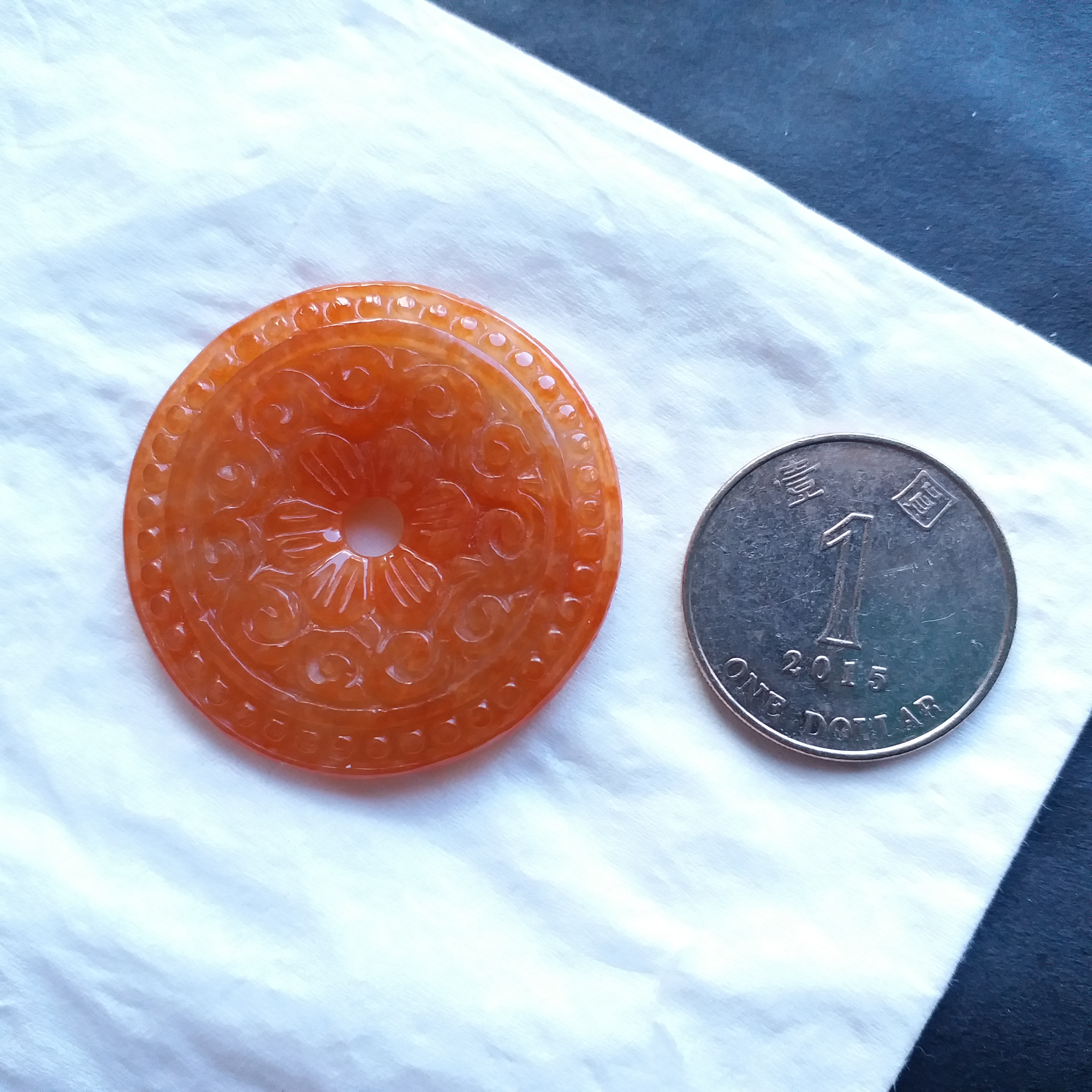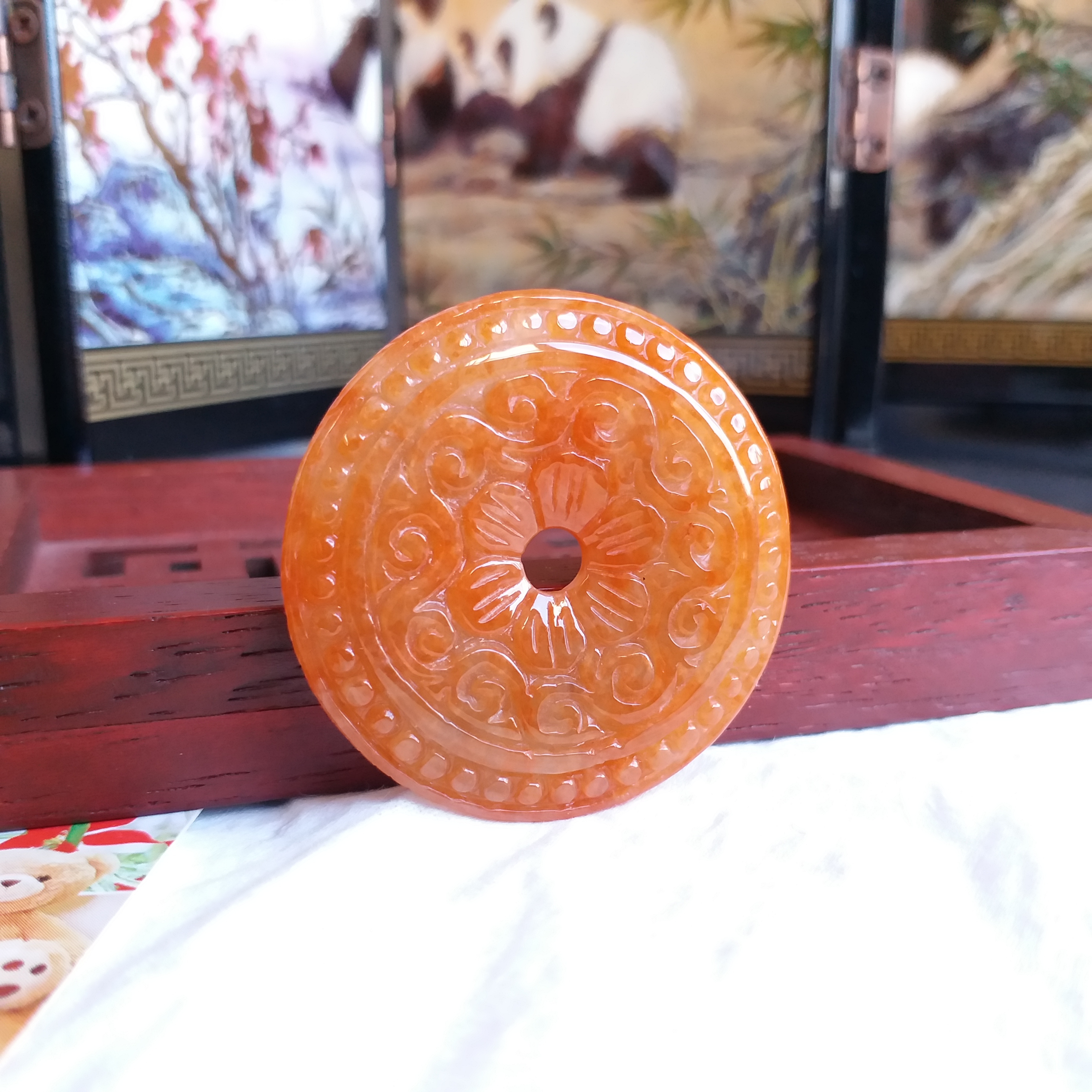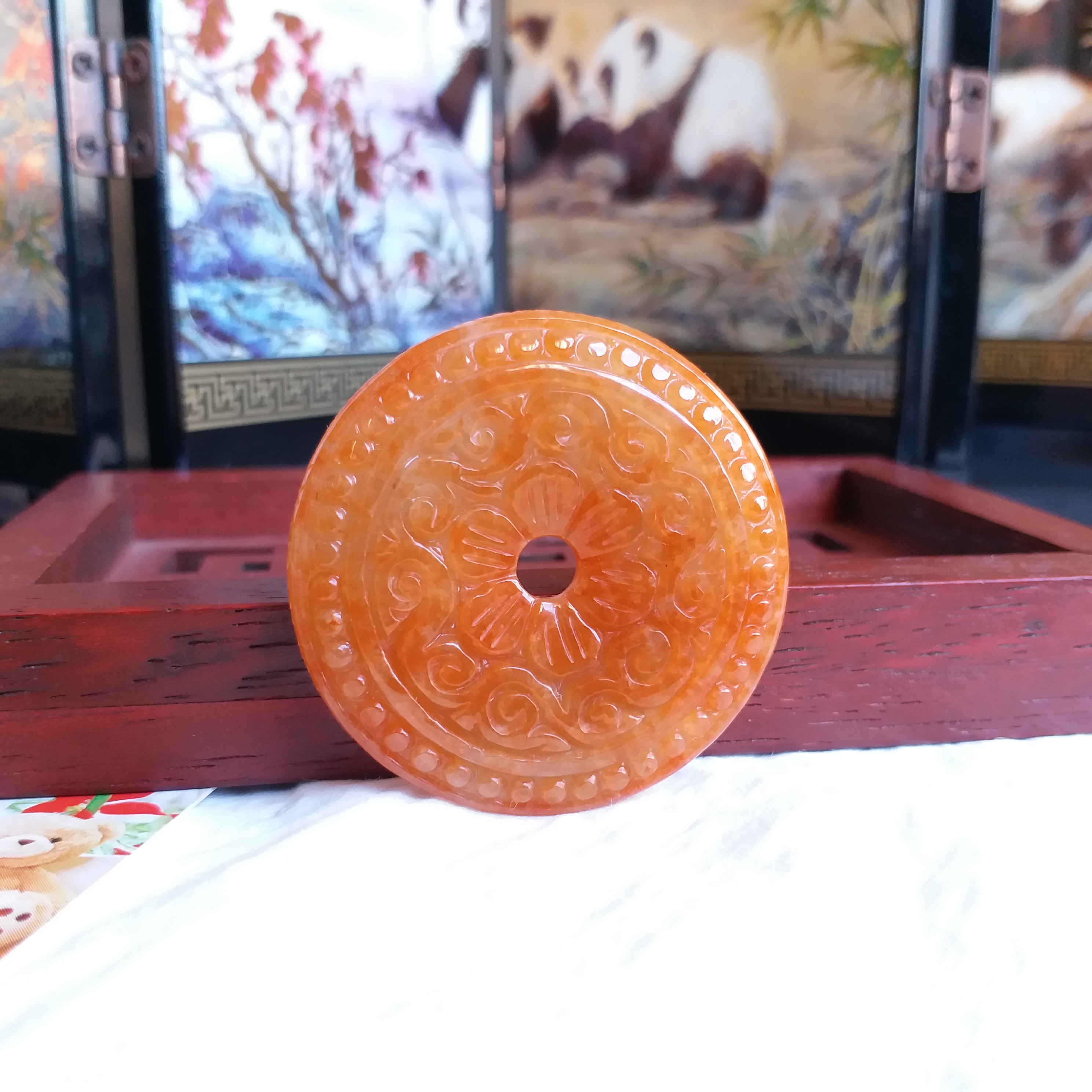 • 冰糯紅翡雕花平安扣 (38.8mm直徑), 天然翡翠A玉, 緬甸玉, Jade, Jadeite