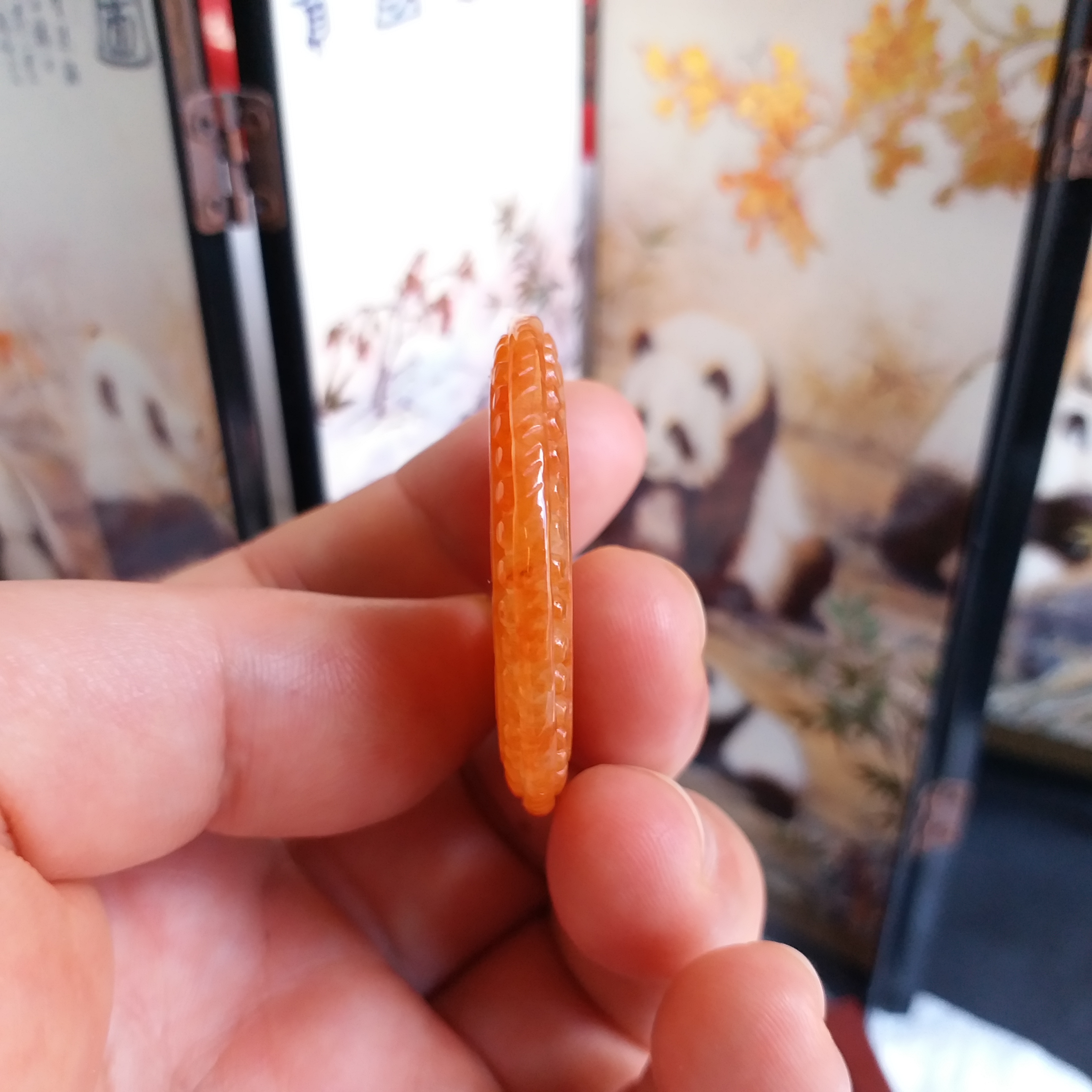 J1767 冰糯紅翡雕花平安扣