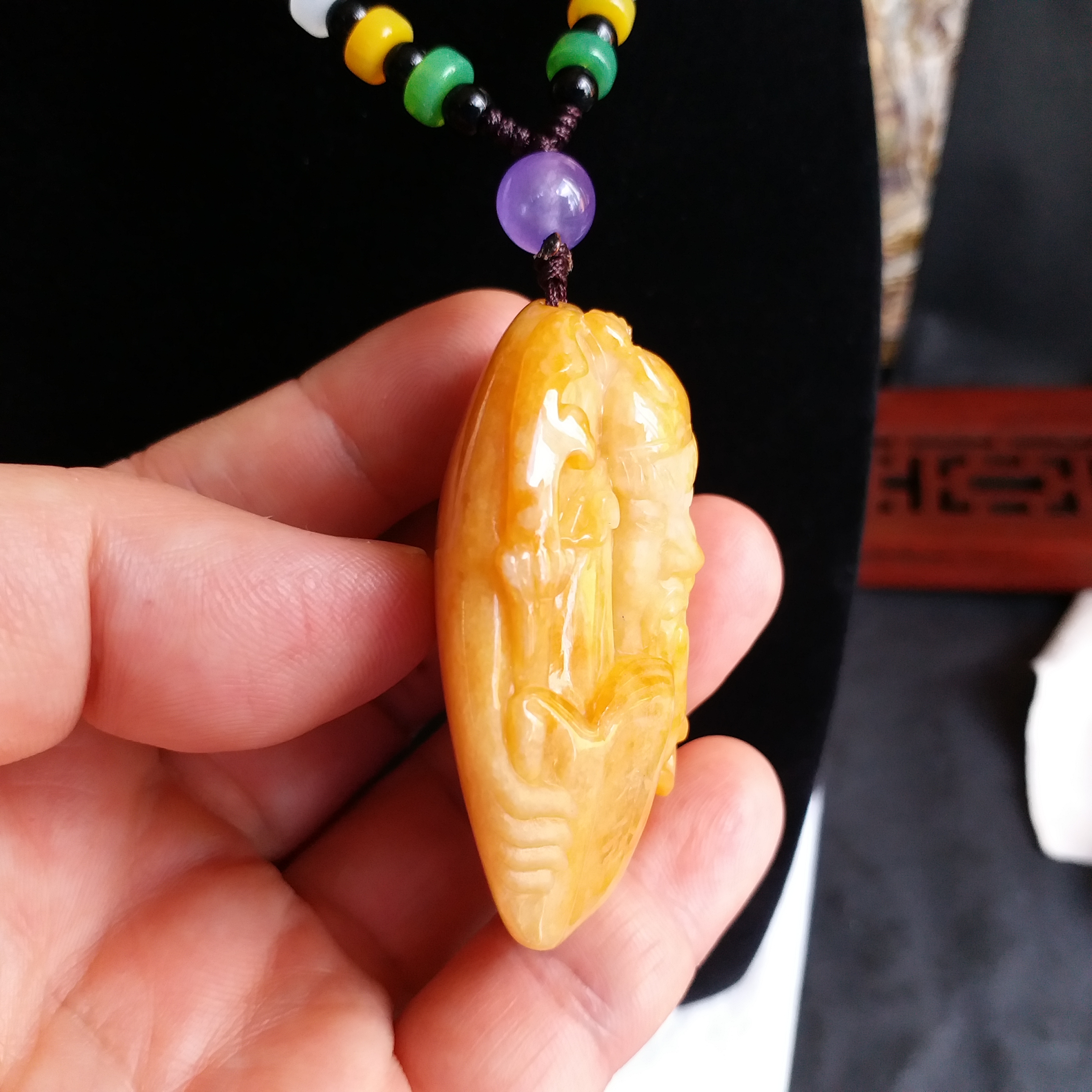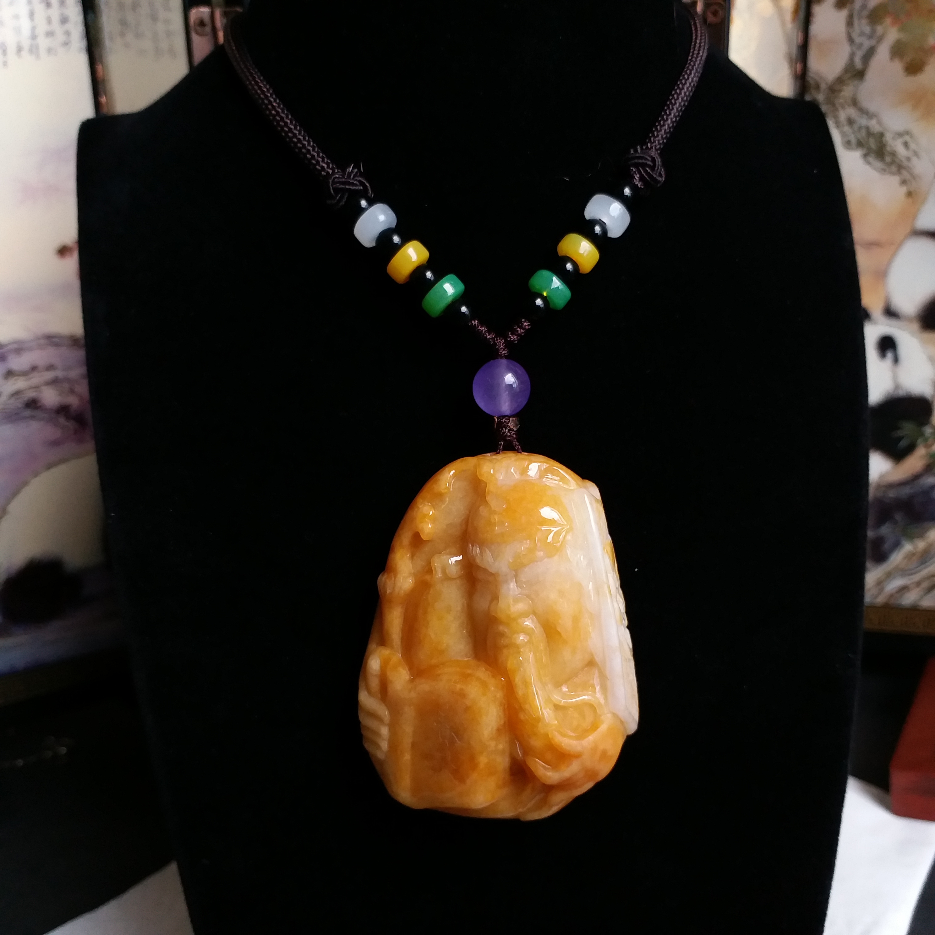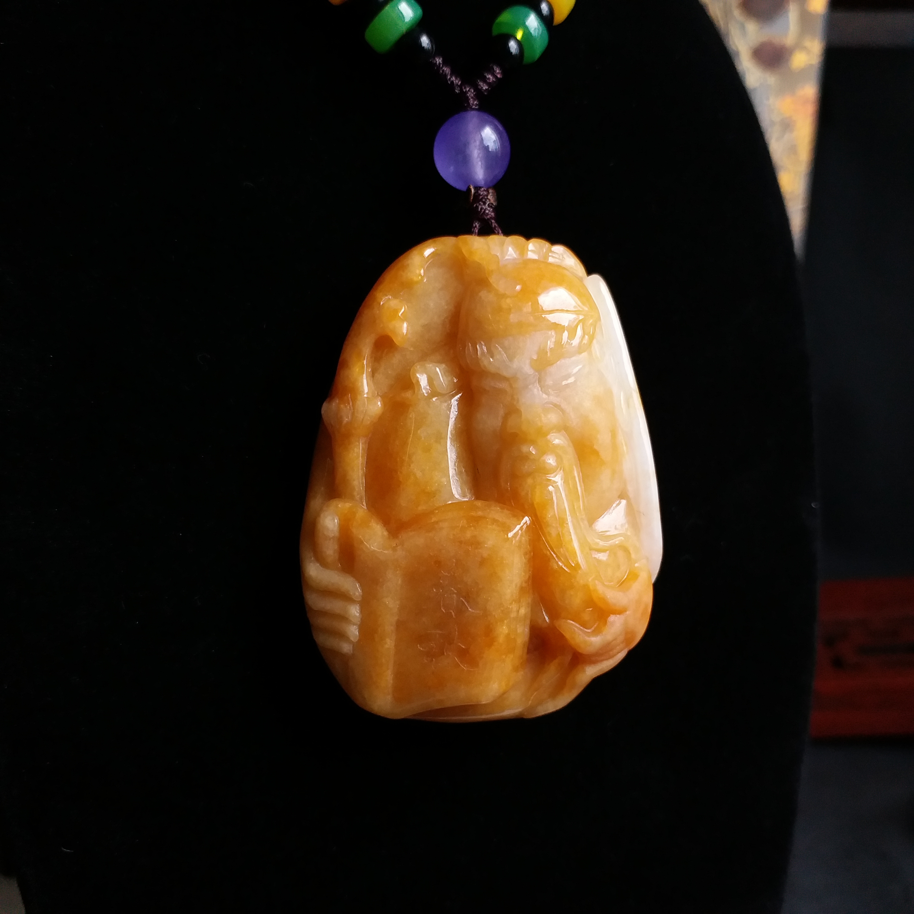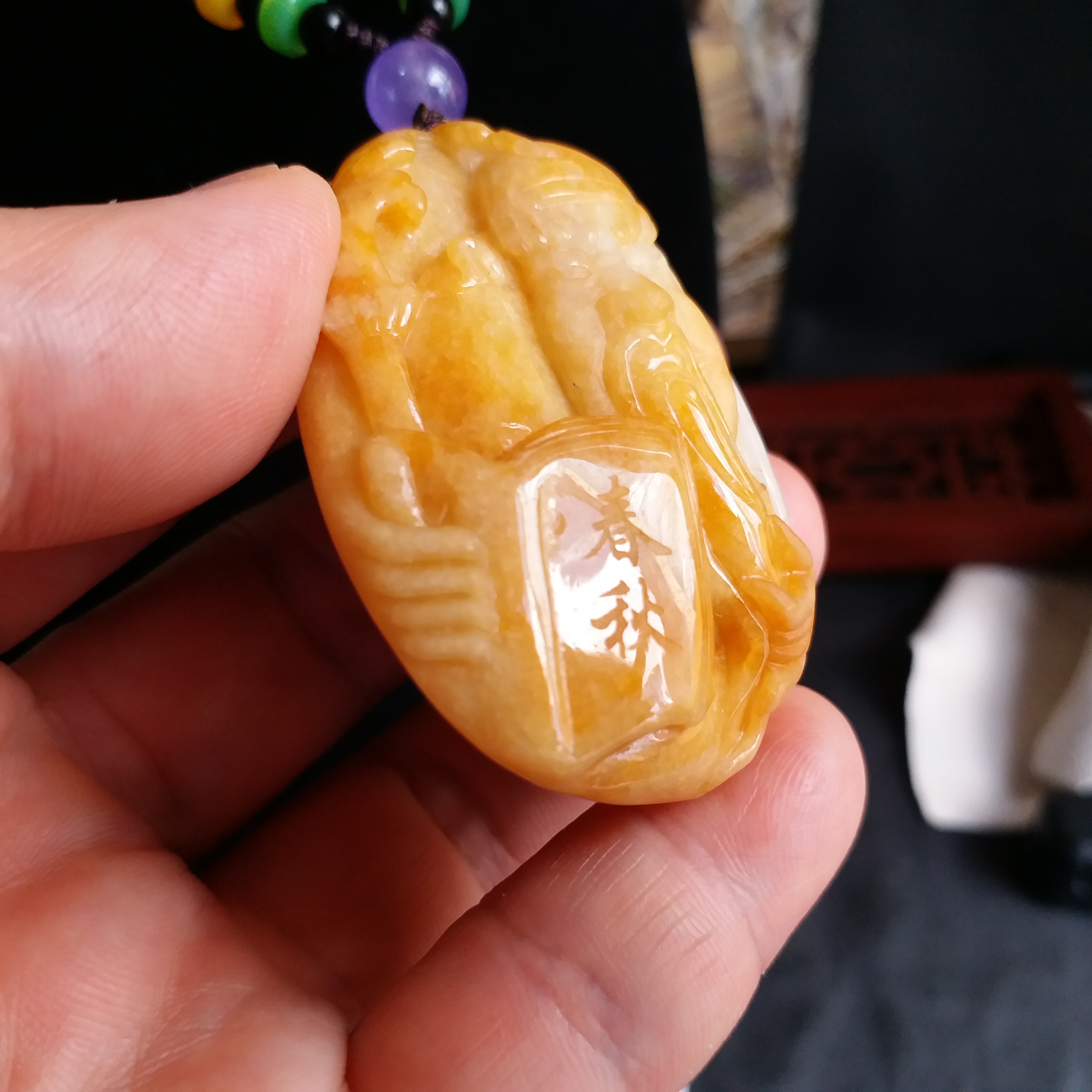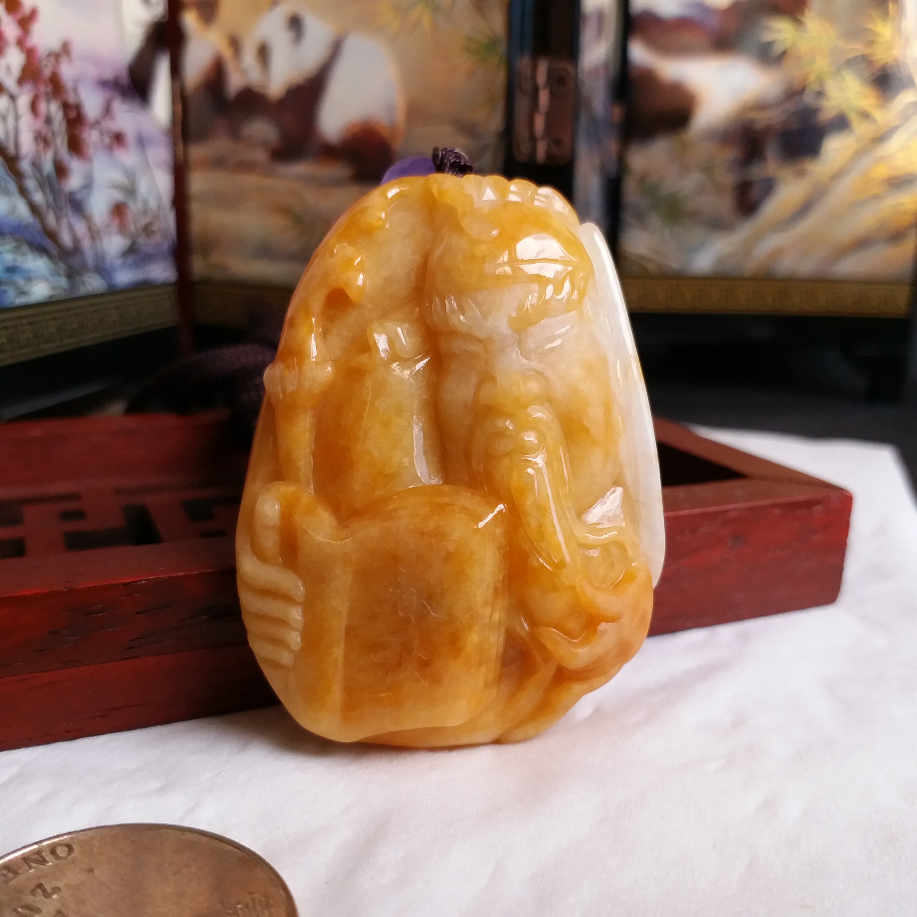 • 黃翡關羽讀春秋, 天然翡翠A玉, 緬甸玉, Jade, Jadeite