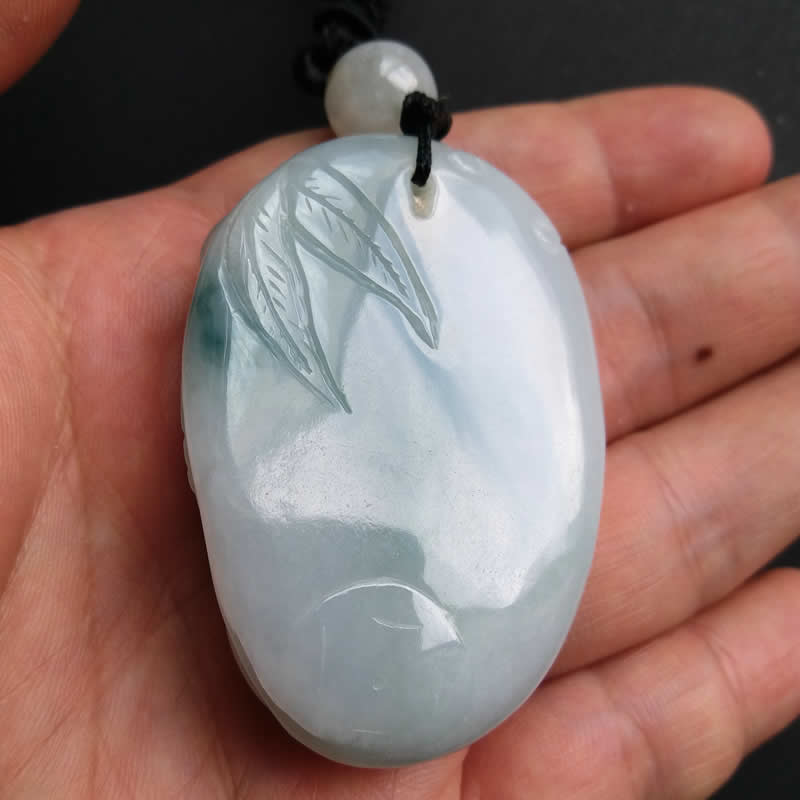 J179 冰糯白底飄綠雙魚吊墜 (翡翠A玉)
