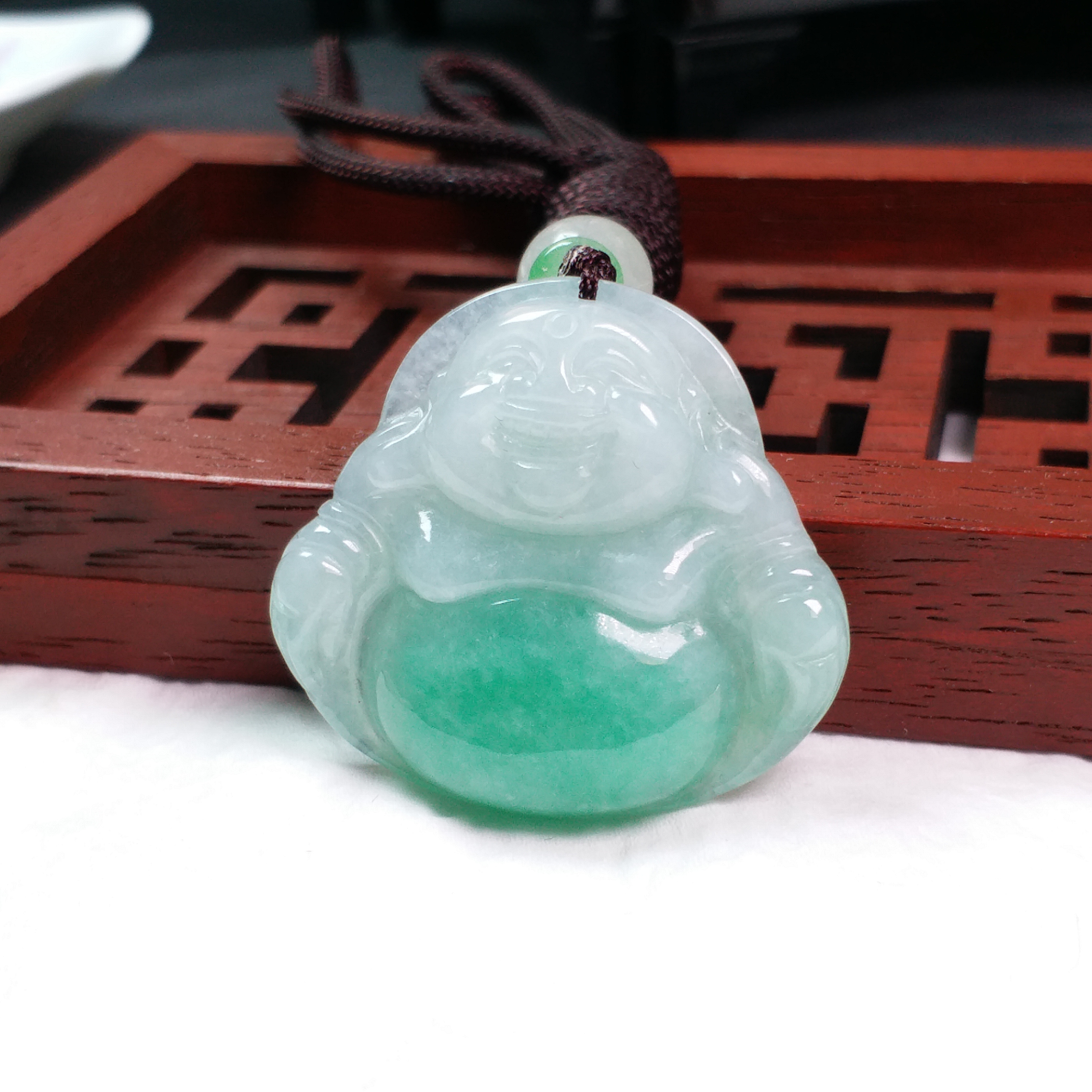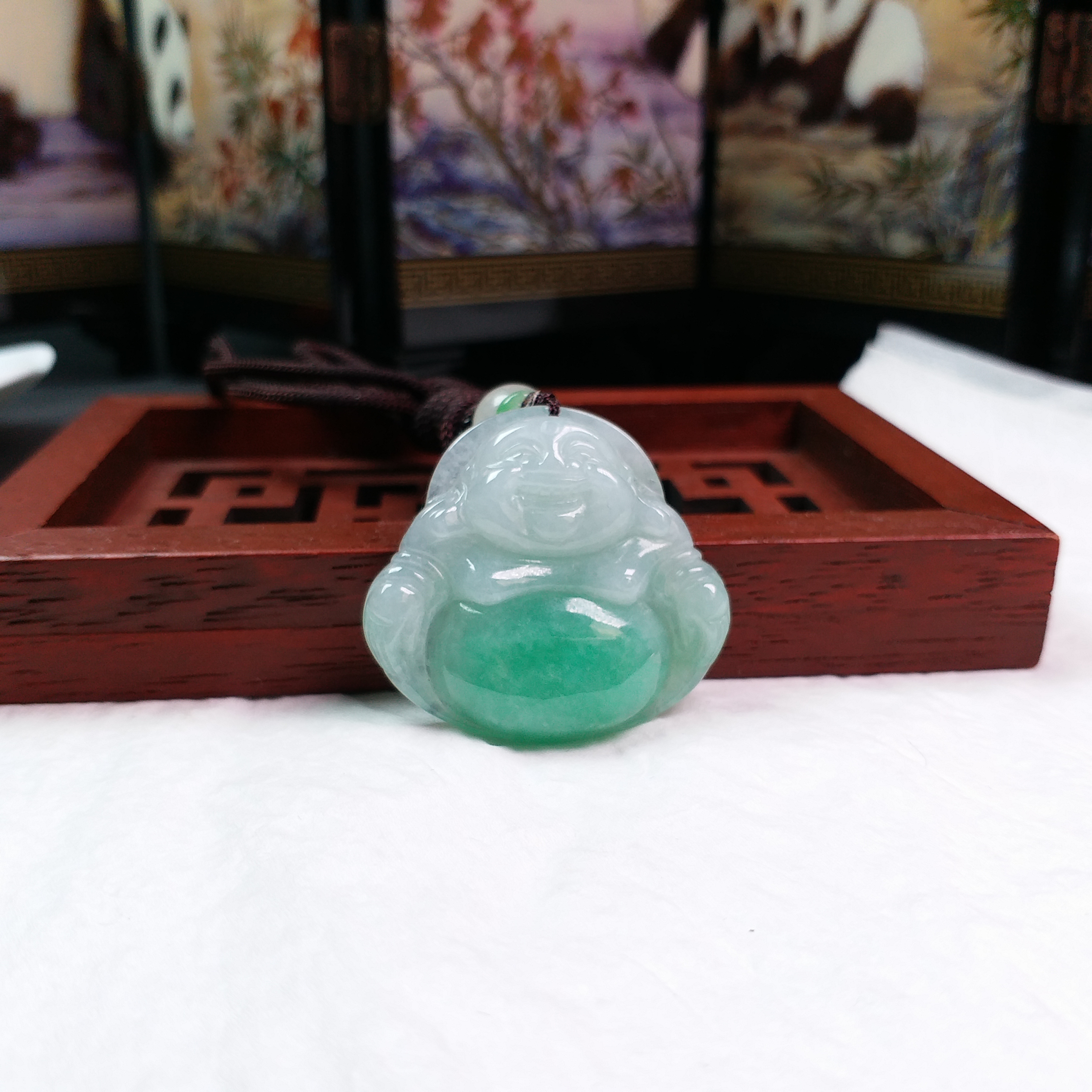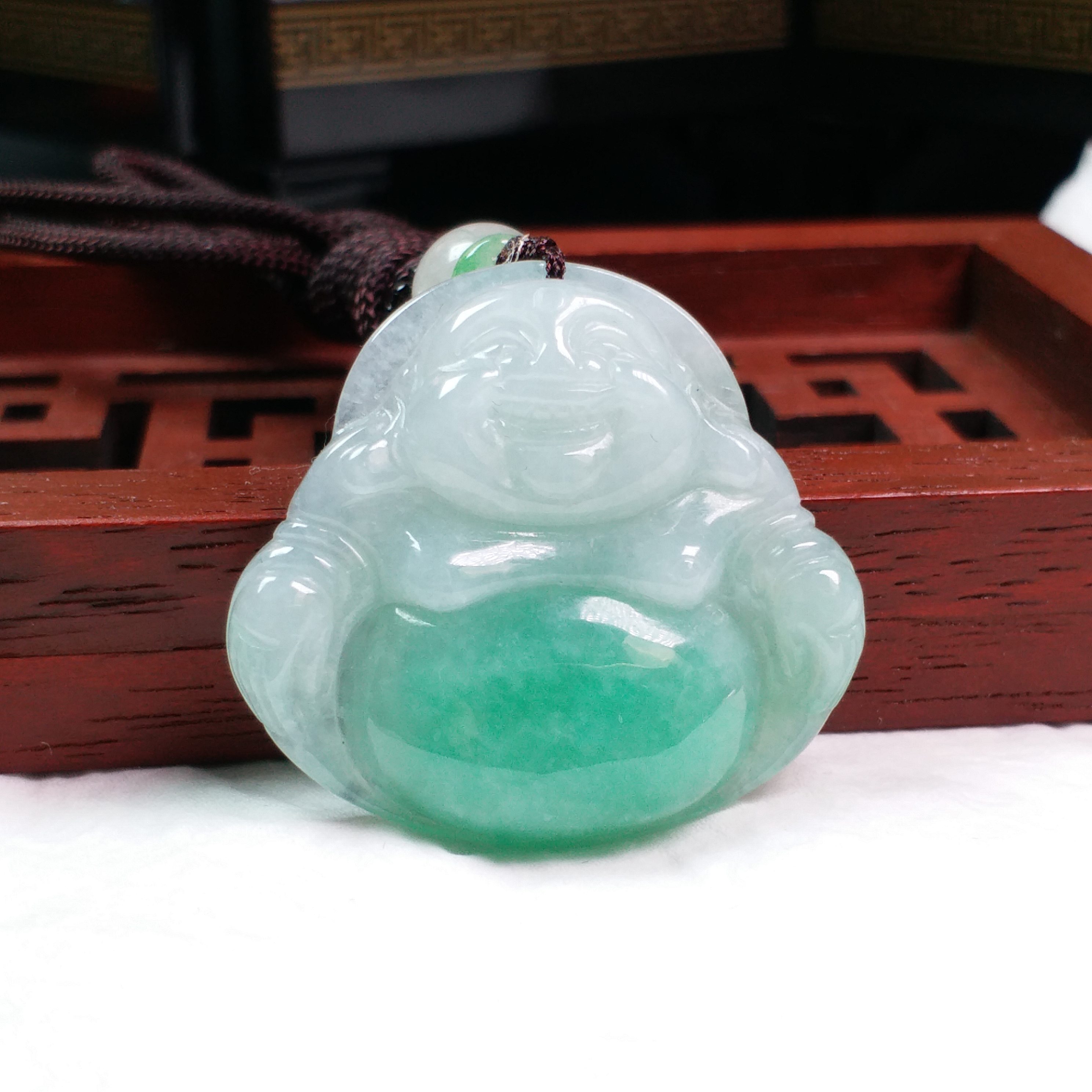 • 冰陽綠笑佛吊墜, 天然翡翠A玉, 緬甸玉, Jade, Jadeite