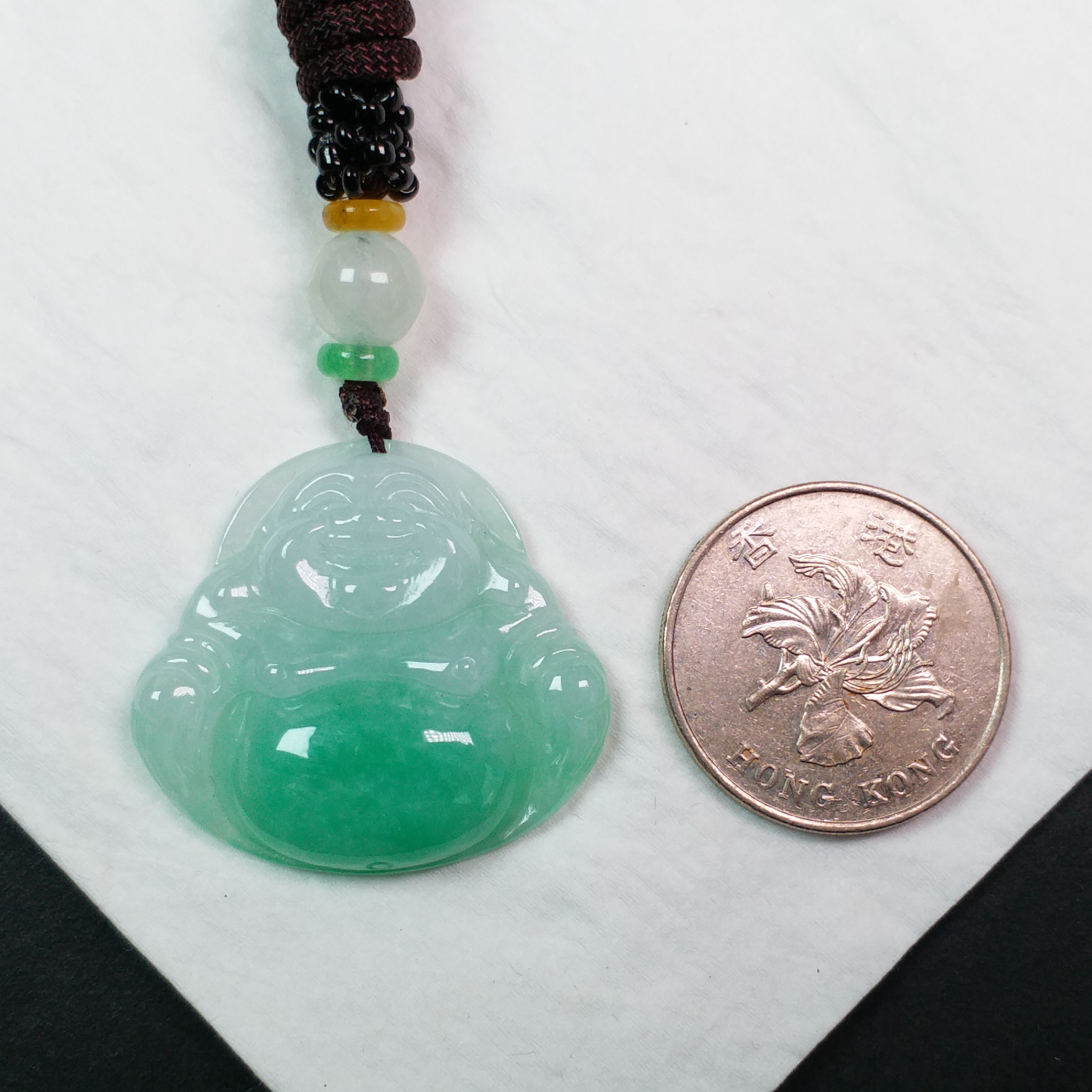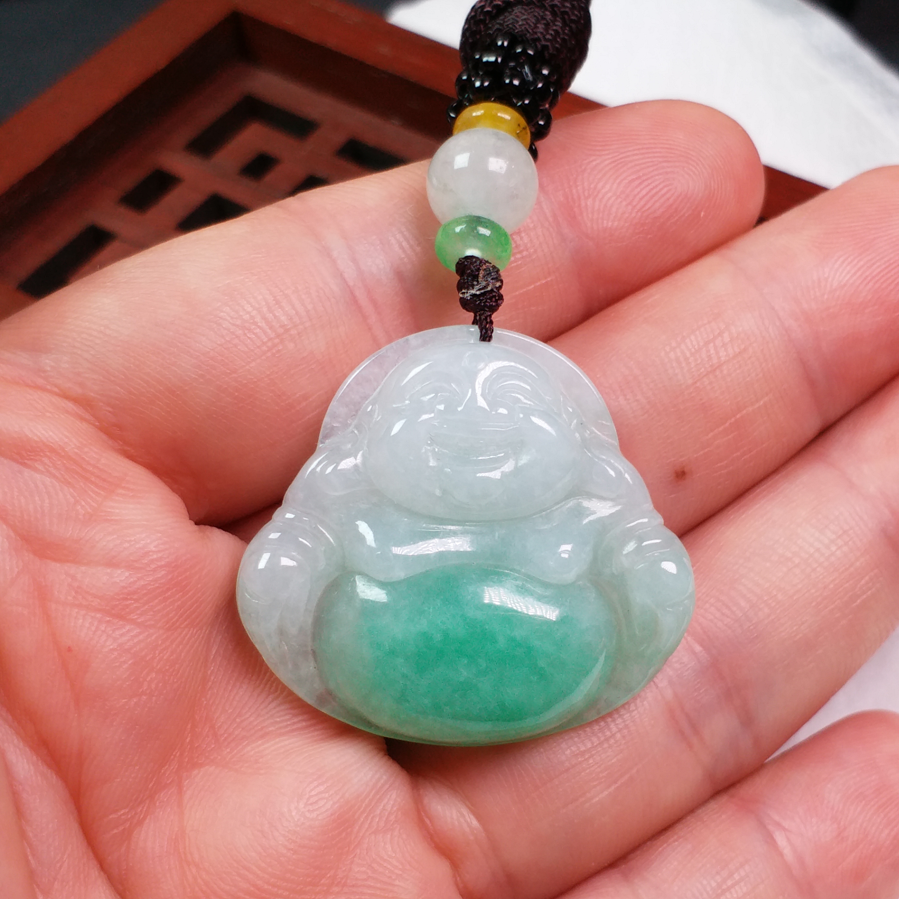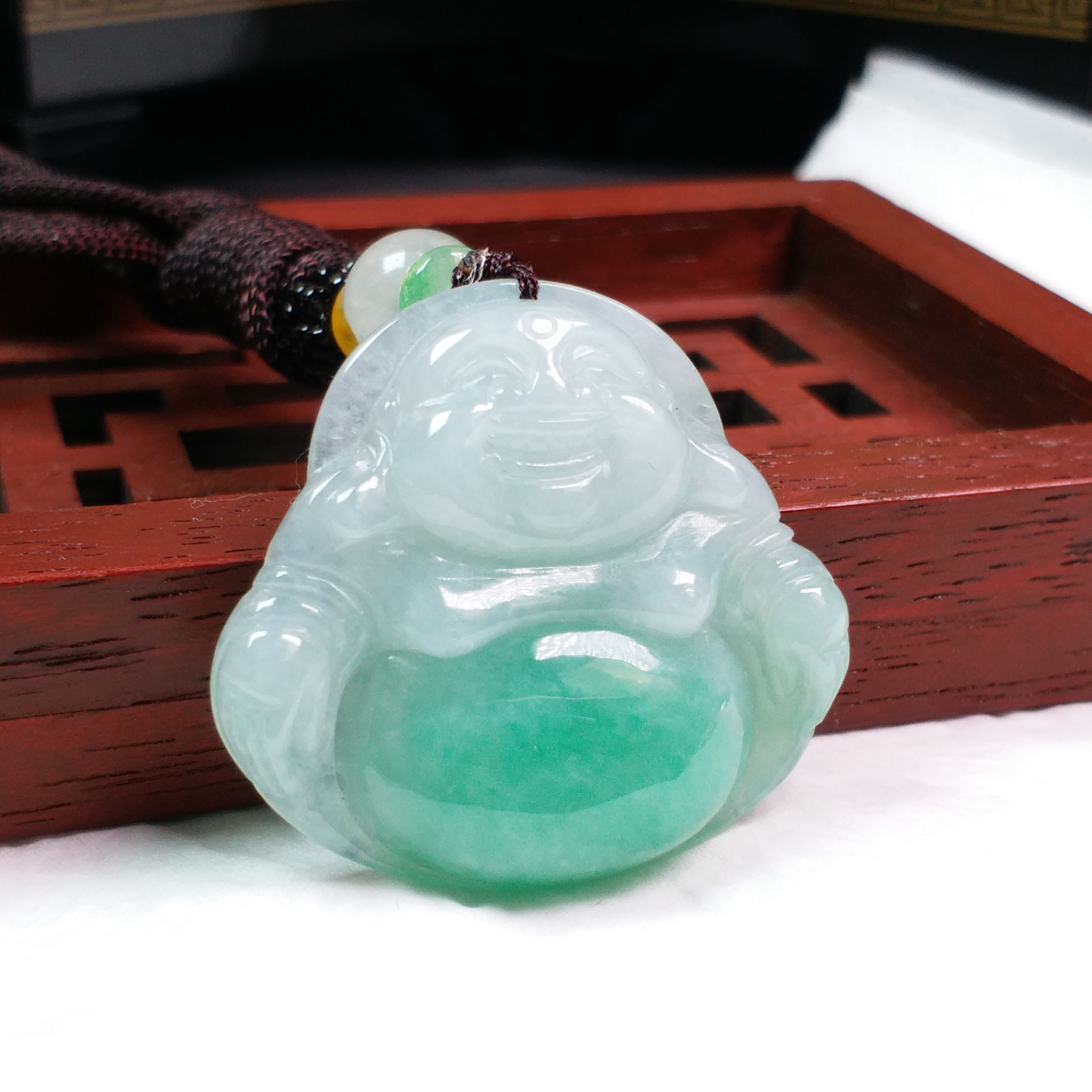 • 冰陽綠笑佛吊墜, 天然翡翠A玉, 緬甸玉, Jade, Jadeite