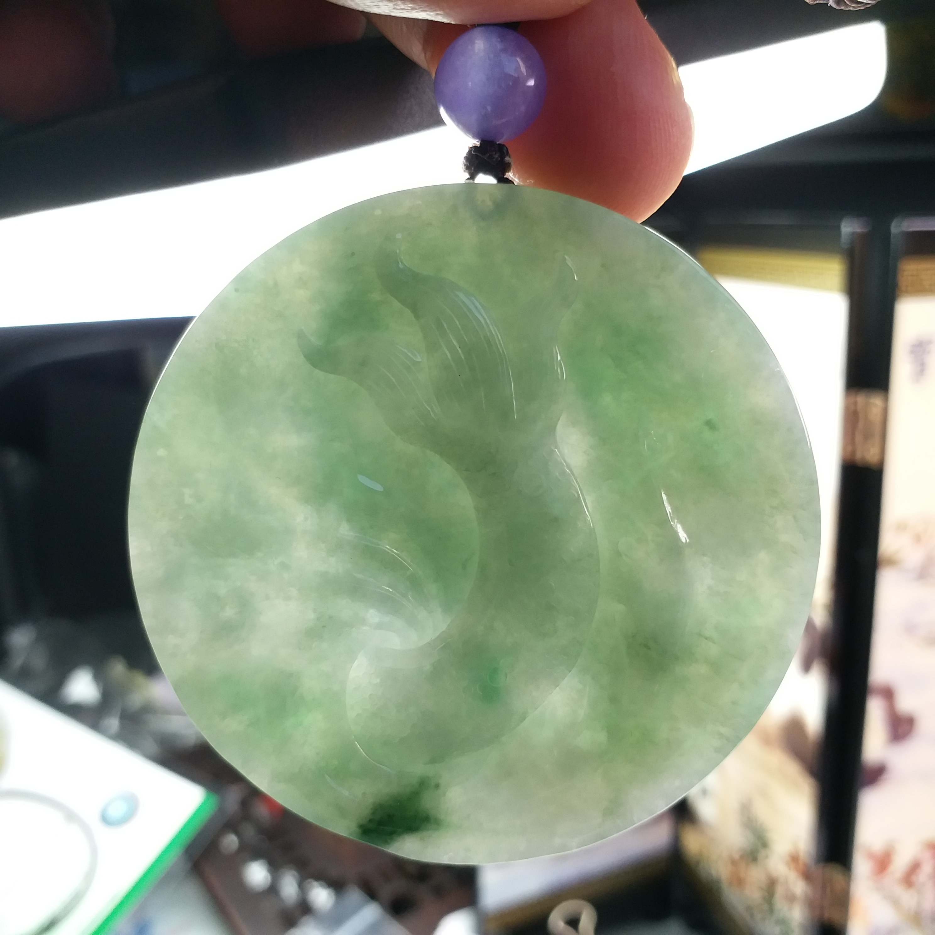 - 天然玉石在不同光線下,會呈現出不同的顏色變化;