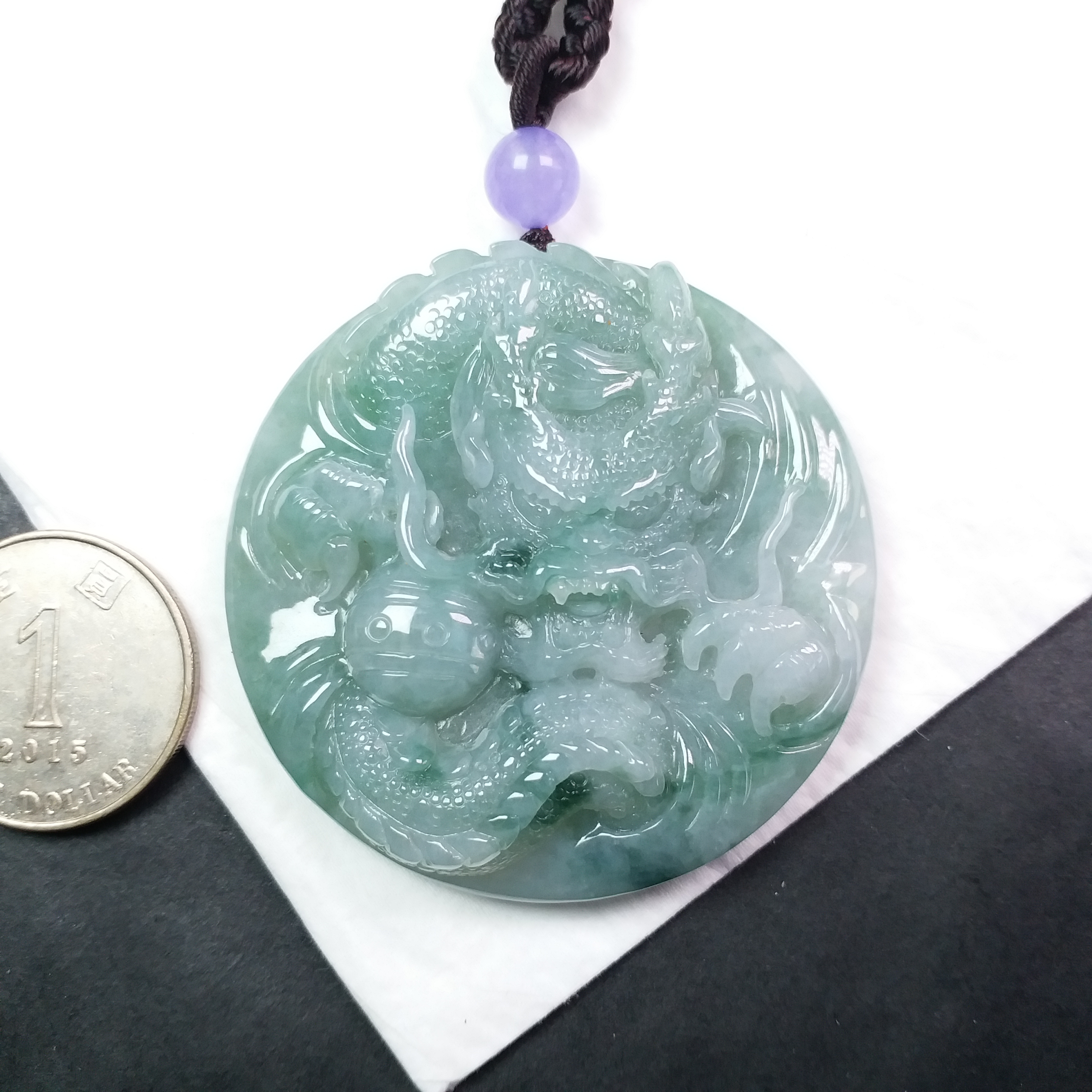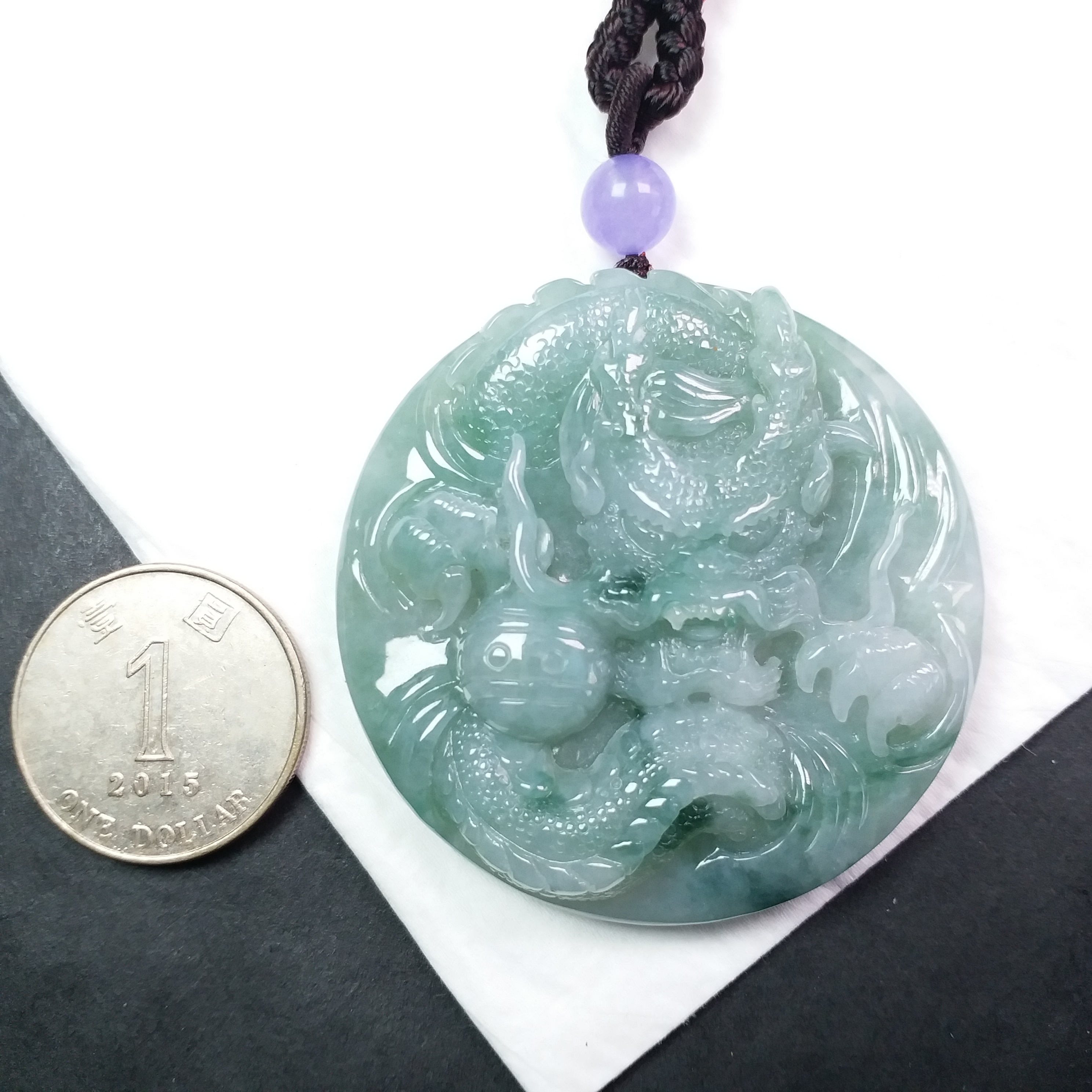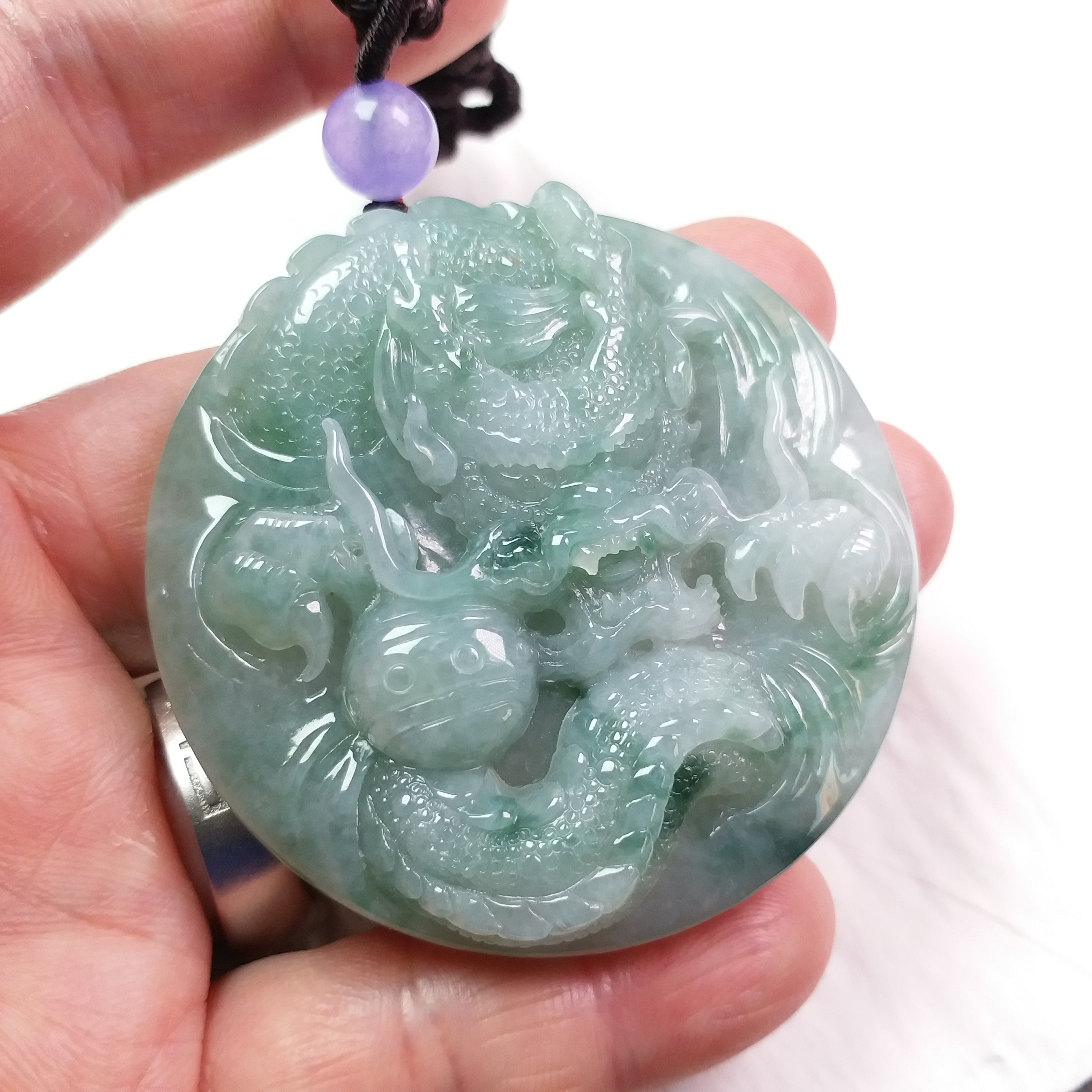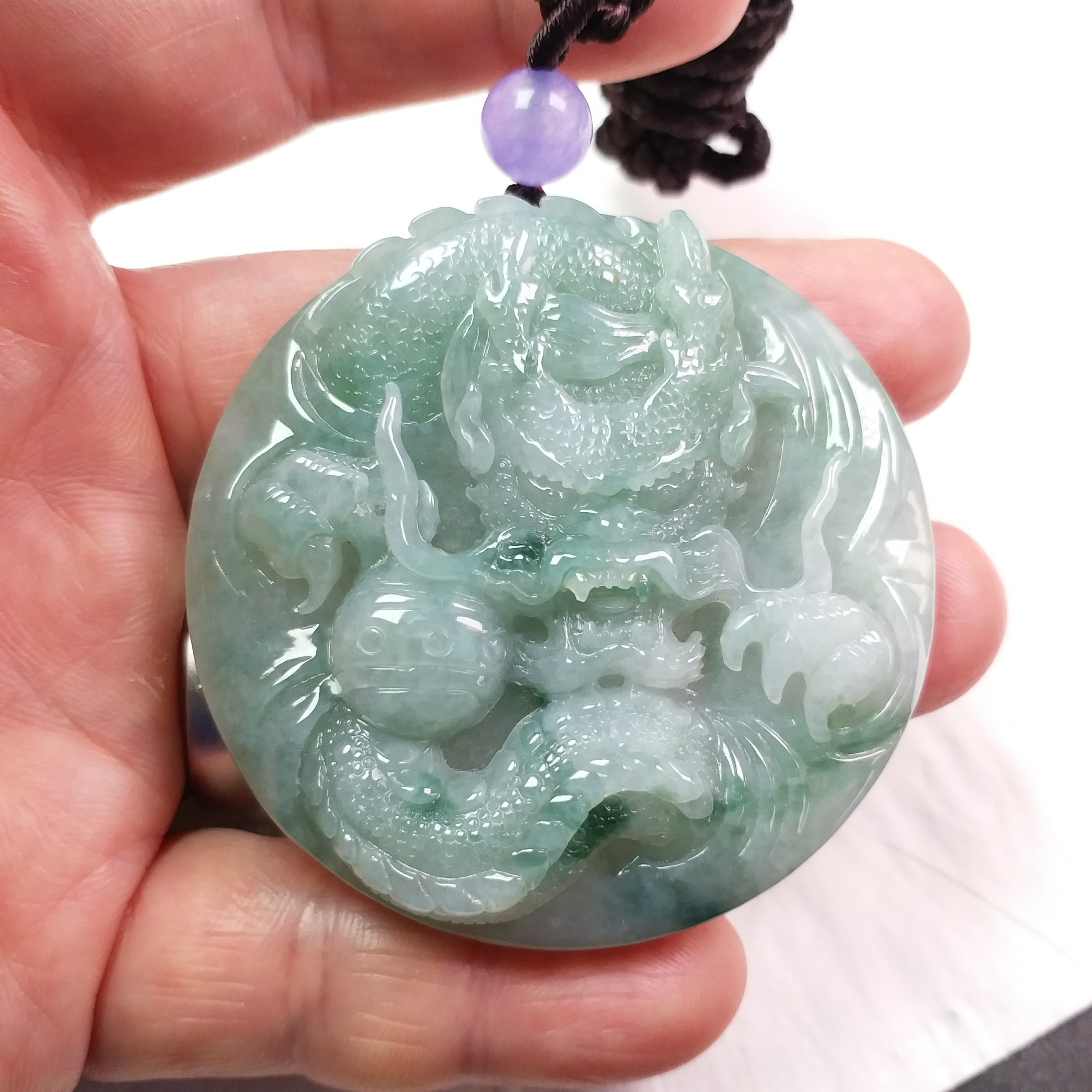 • 冰飄花霸氣龍牌 (54.3mm直徑), 天然翡翠A玉, 緬甸玉, Jade, Jadeite