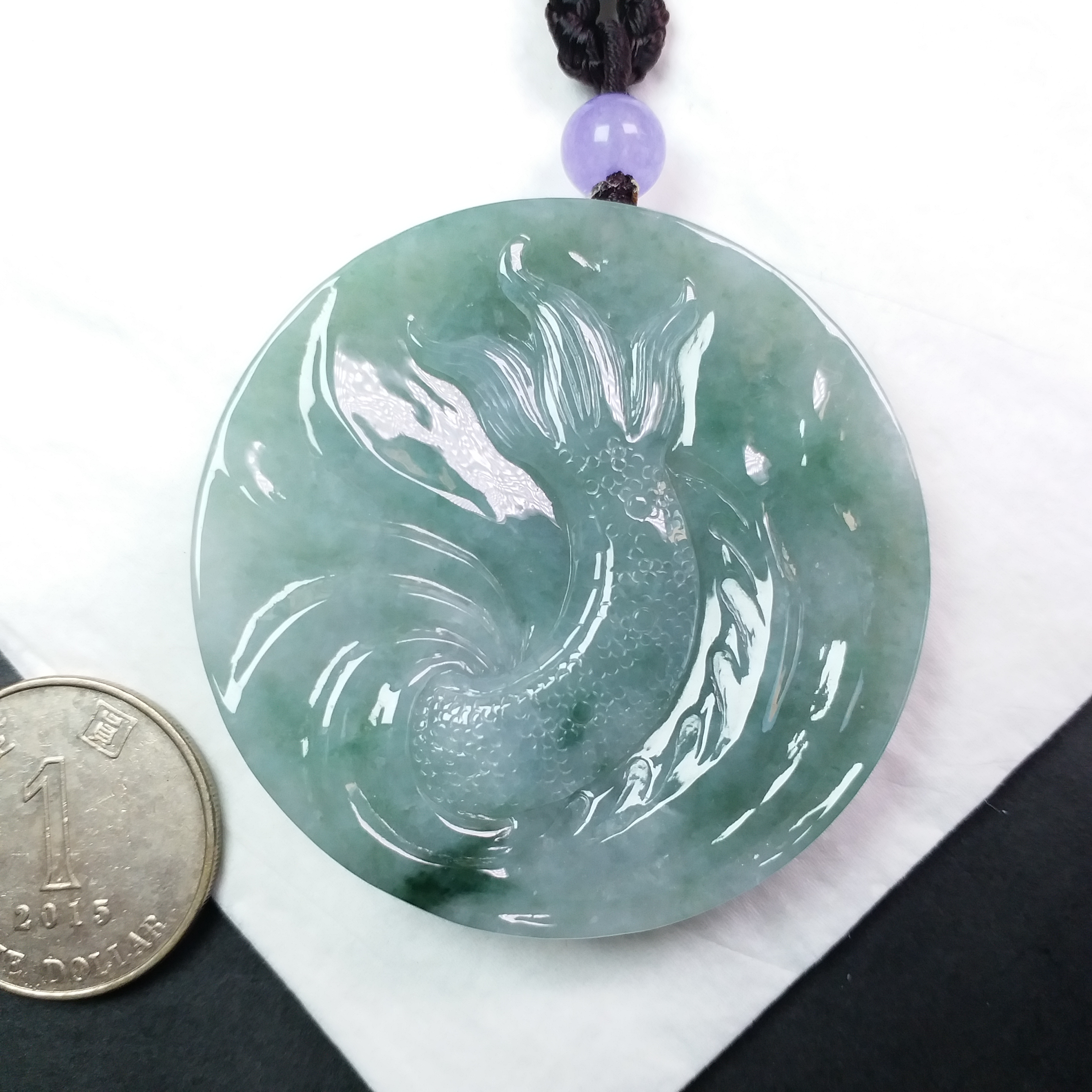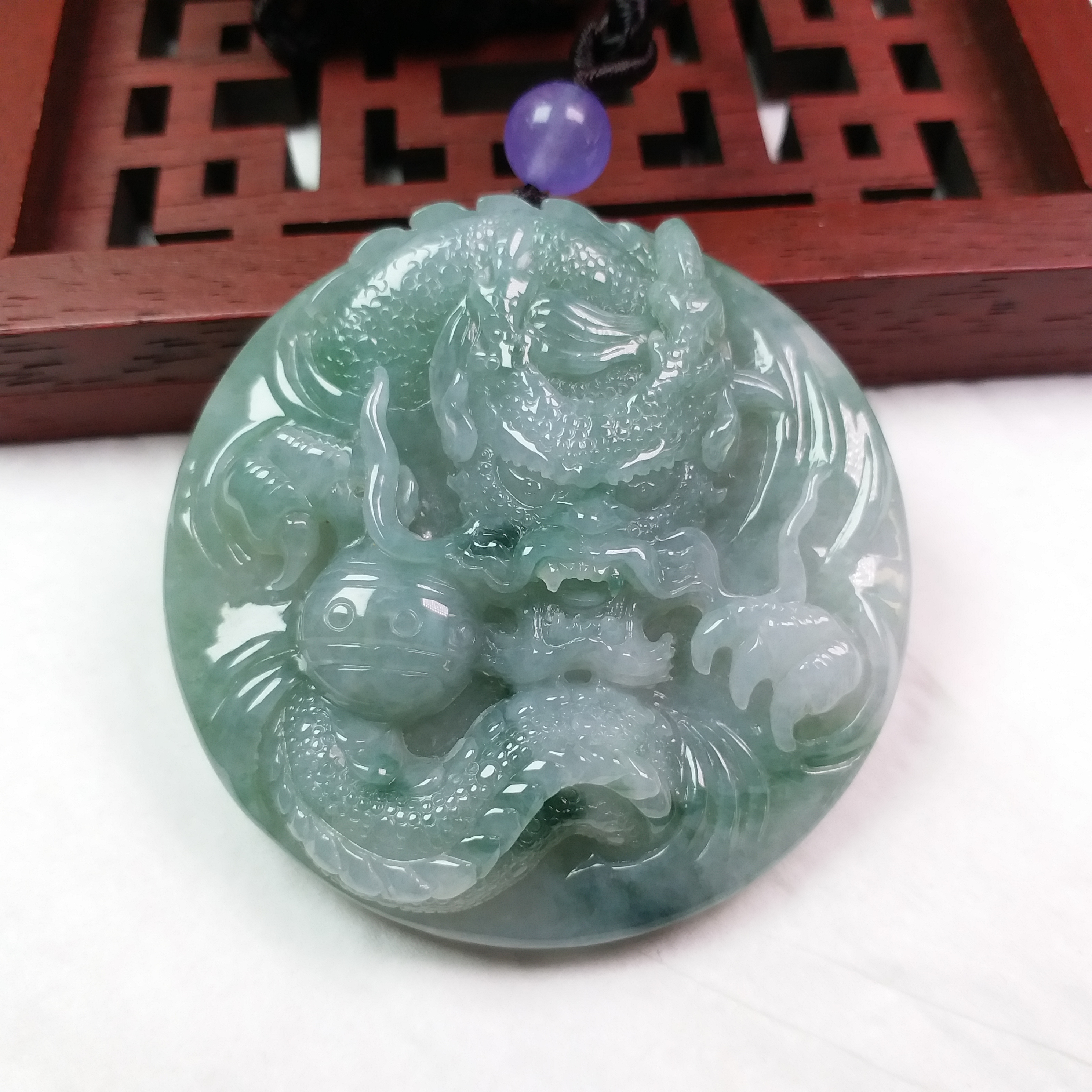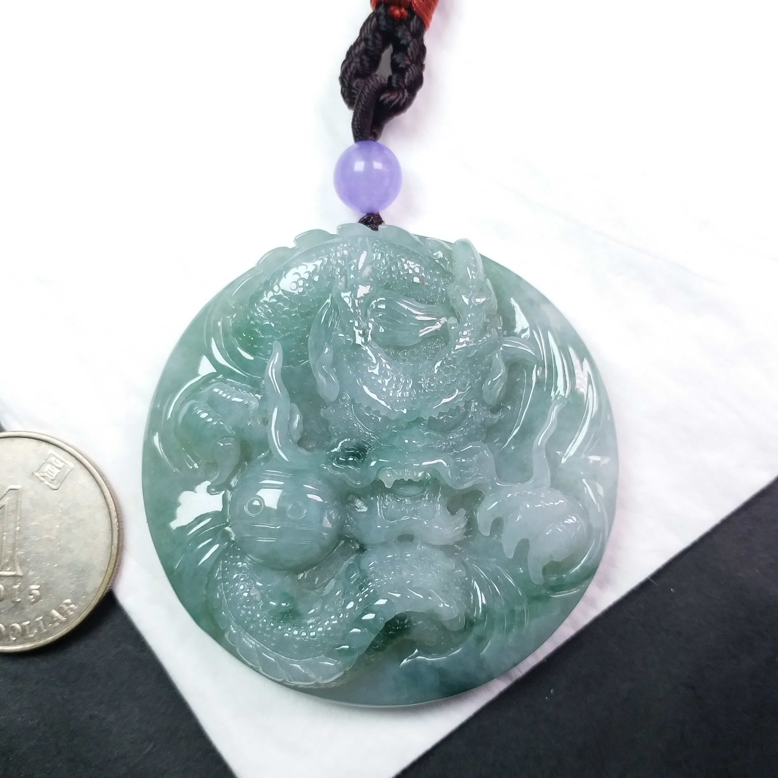 • 冰飄花霸氣龍牌 (54.3mm直徑), 天然翡翠A玉, 緬甸玉, Jade, Jadeite