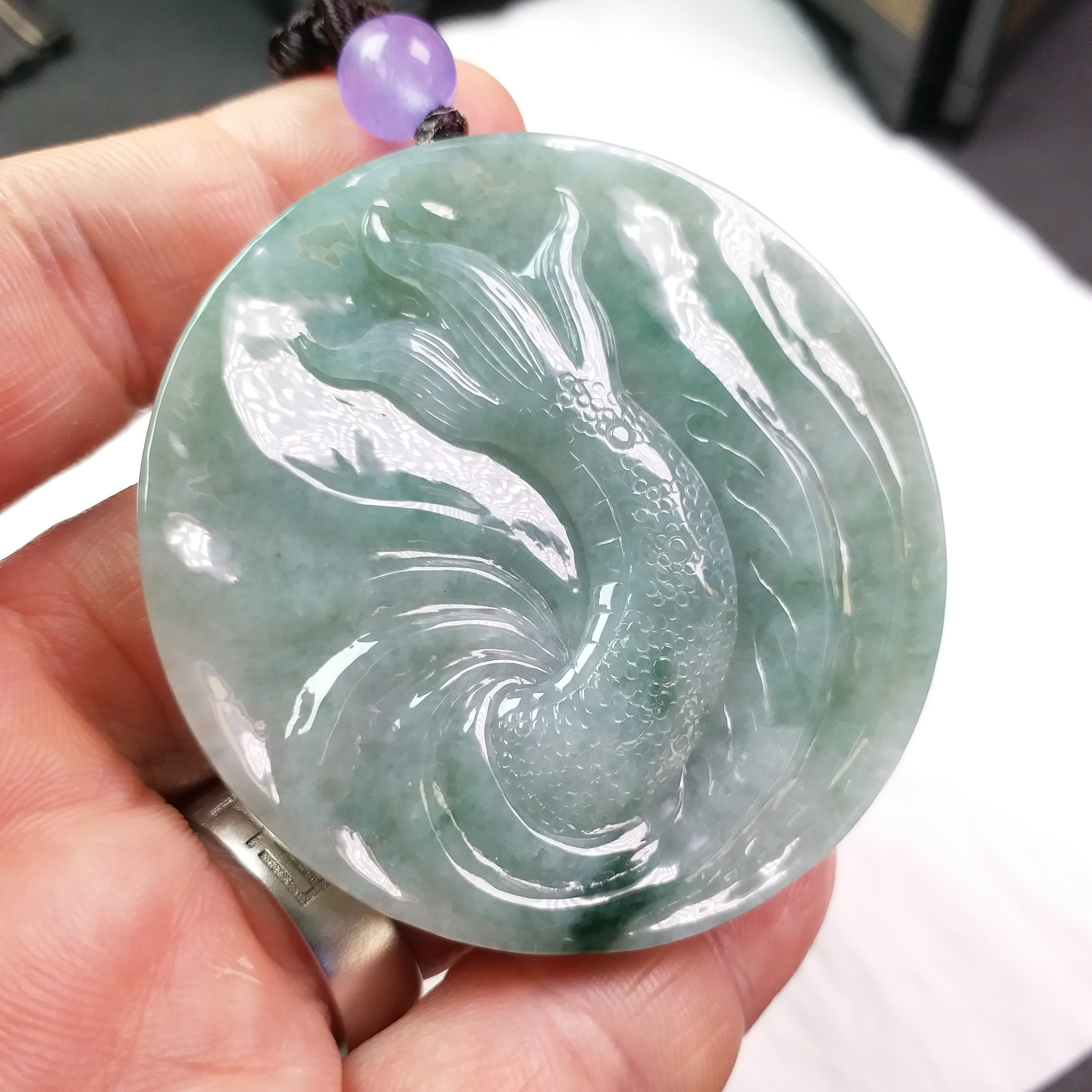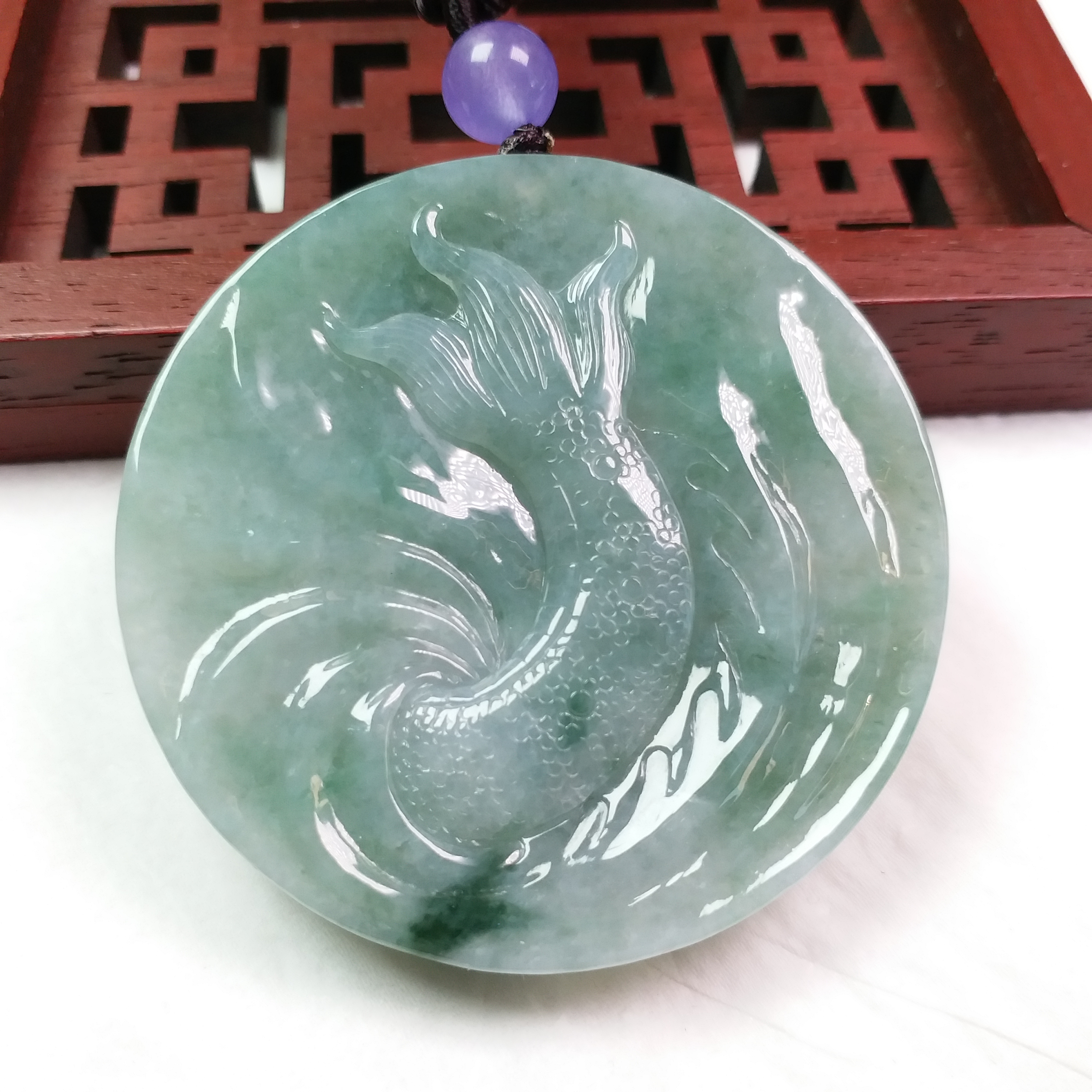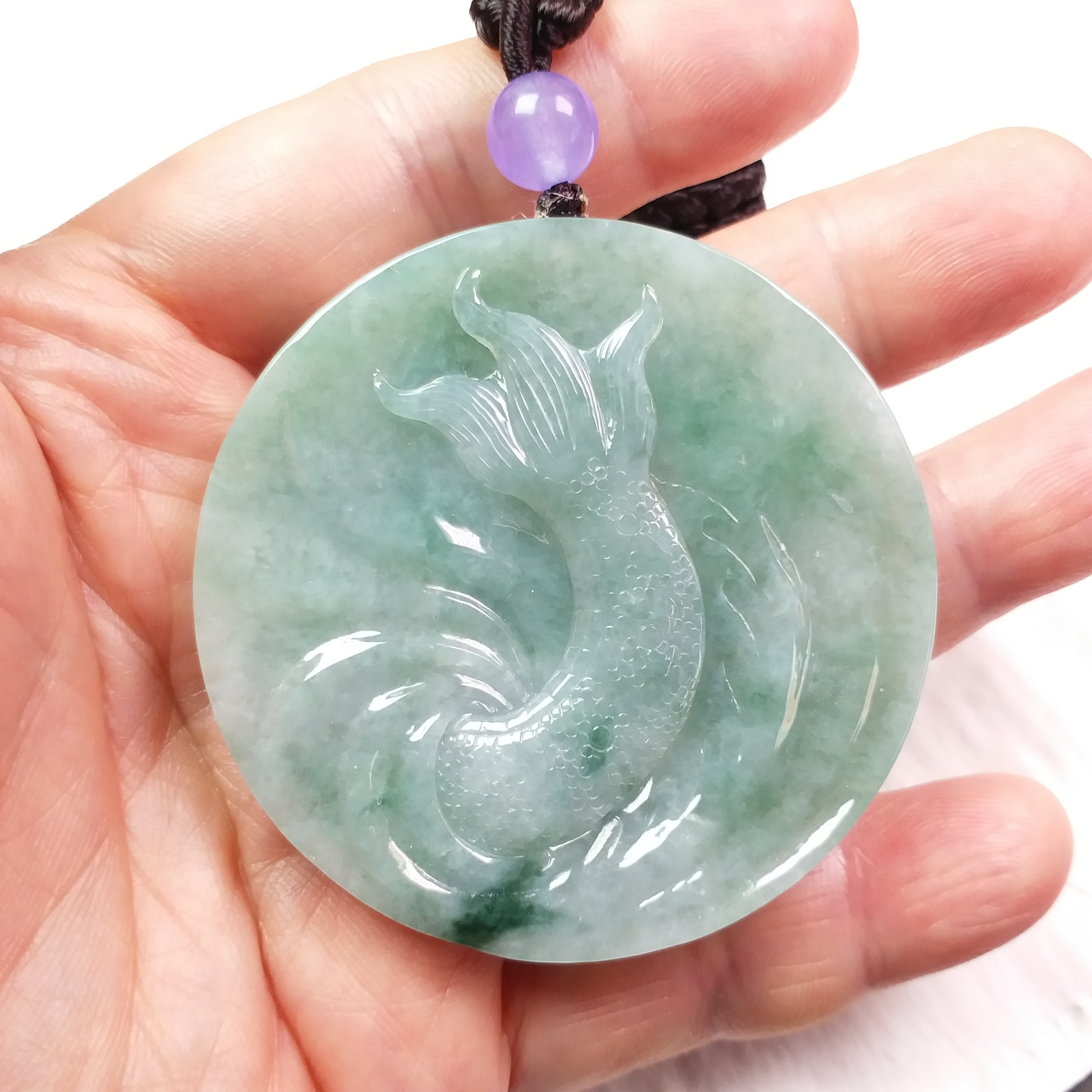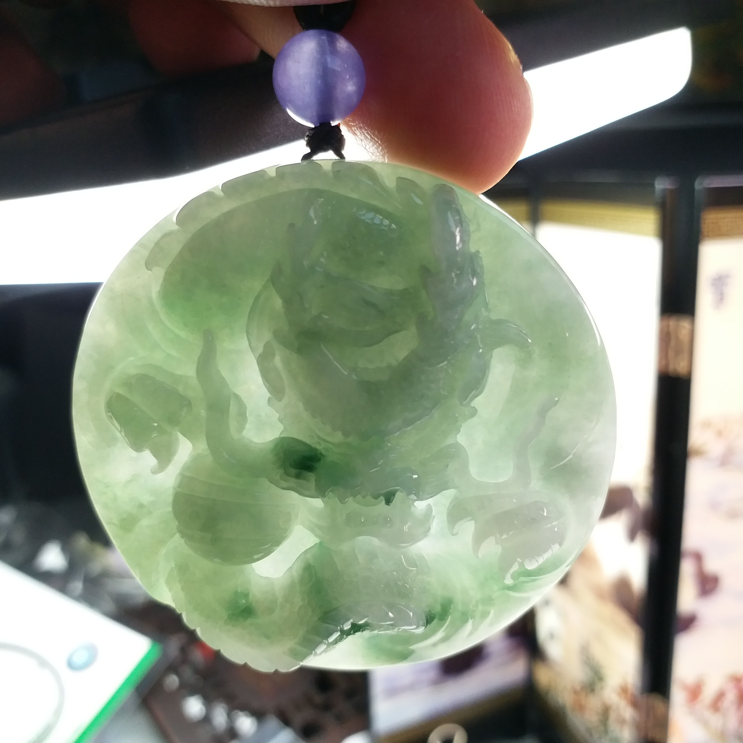 • 冰飄花霸氣龍牌 (54.3mm直徑), 天然翡翠A玉, 緬甸玉, Jade, Jadeite