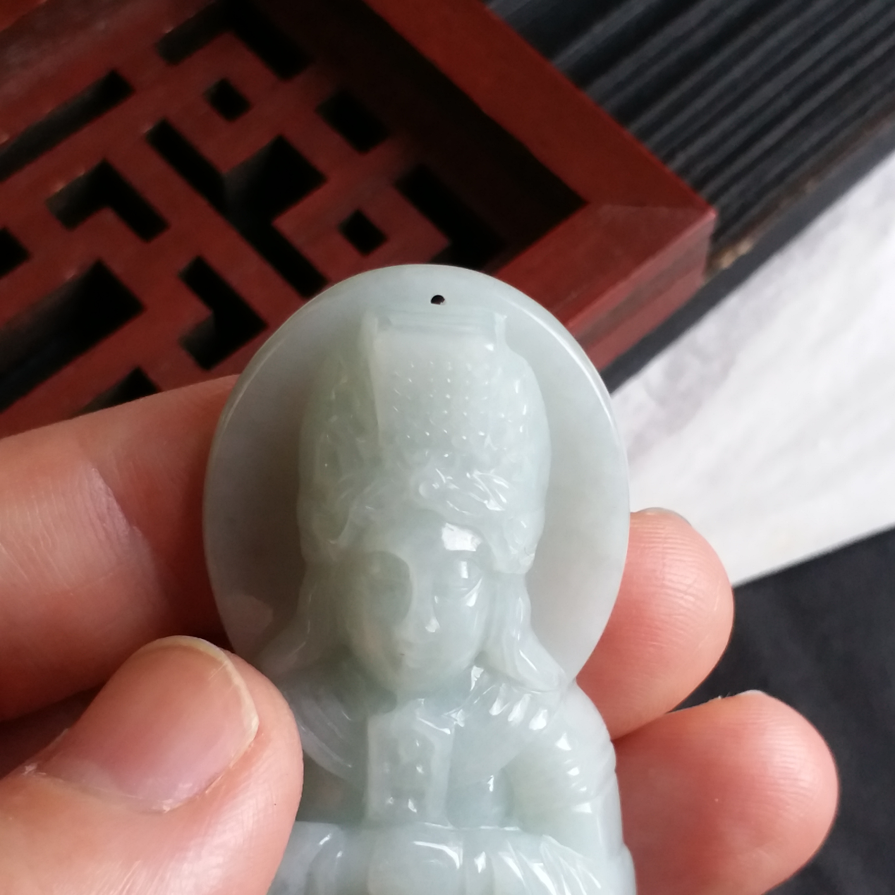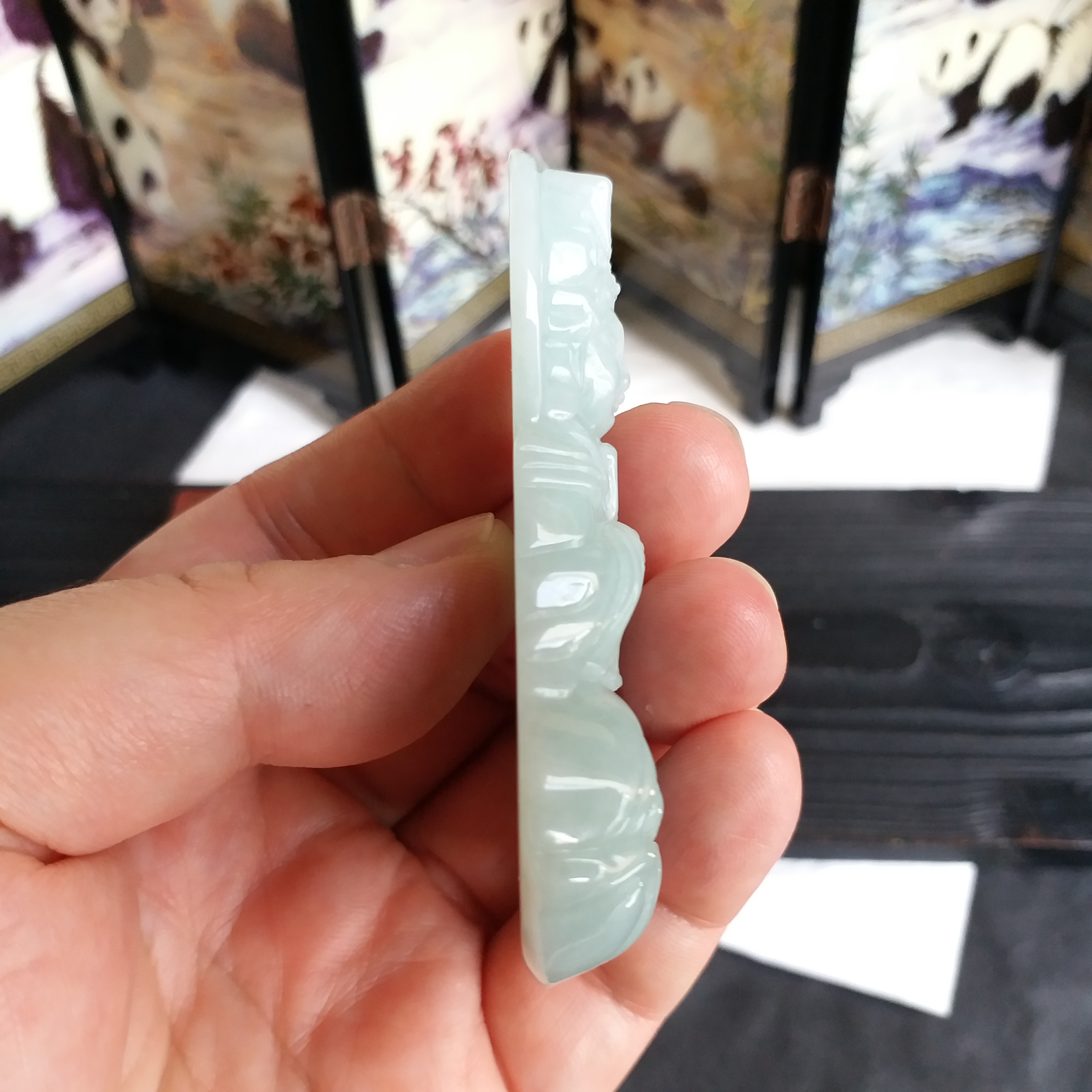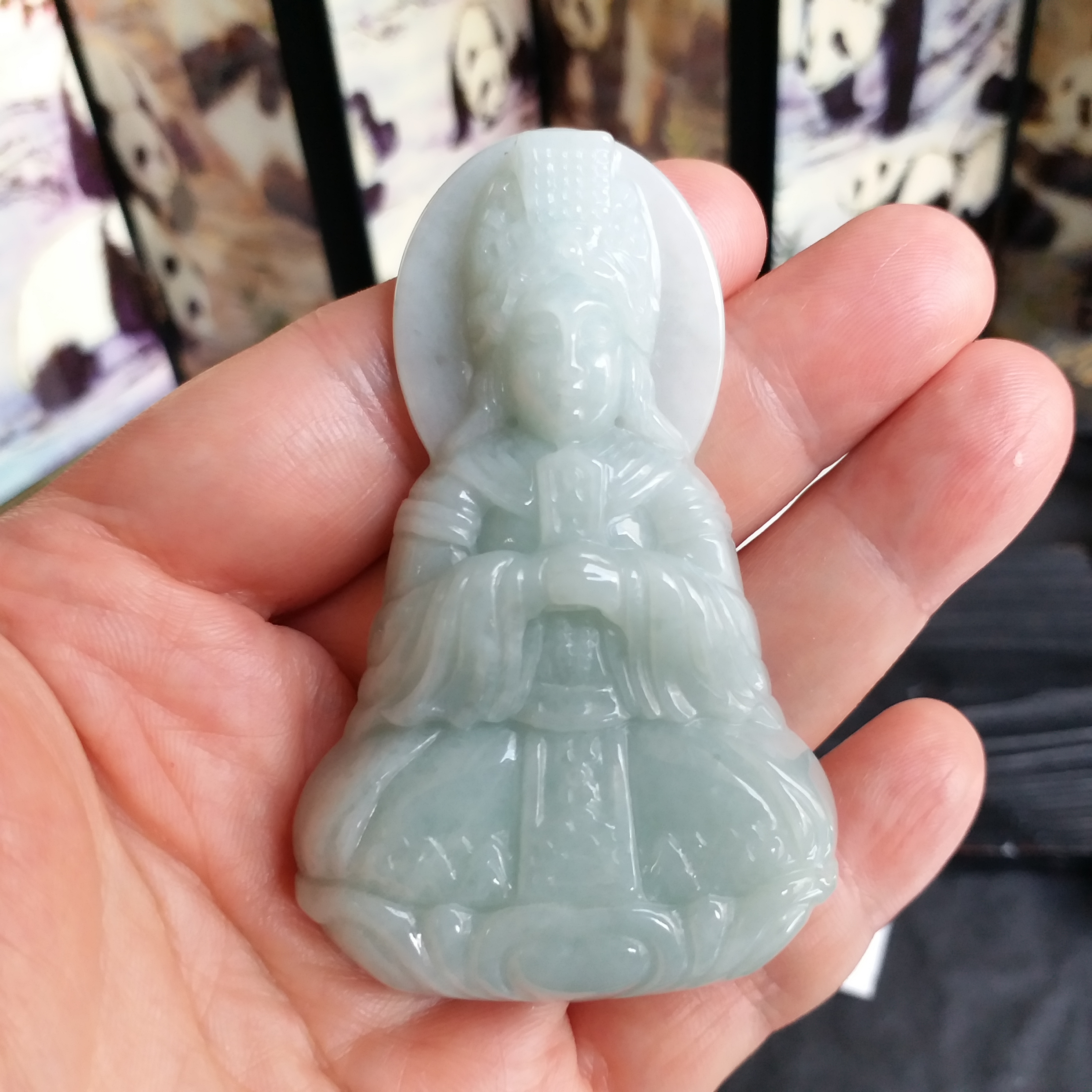 J1809 冰糯淺綠厚庄媽姐吊墜
