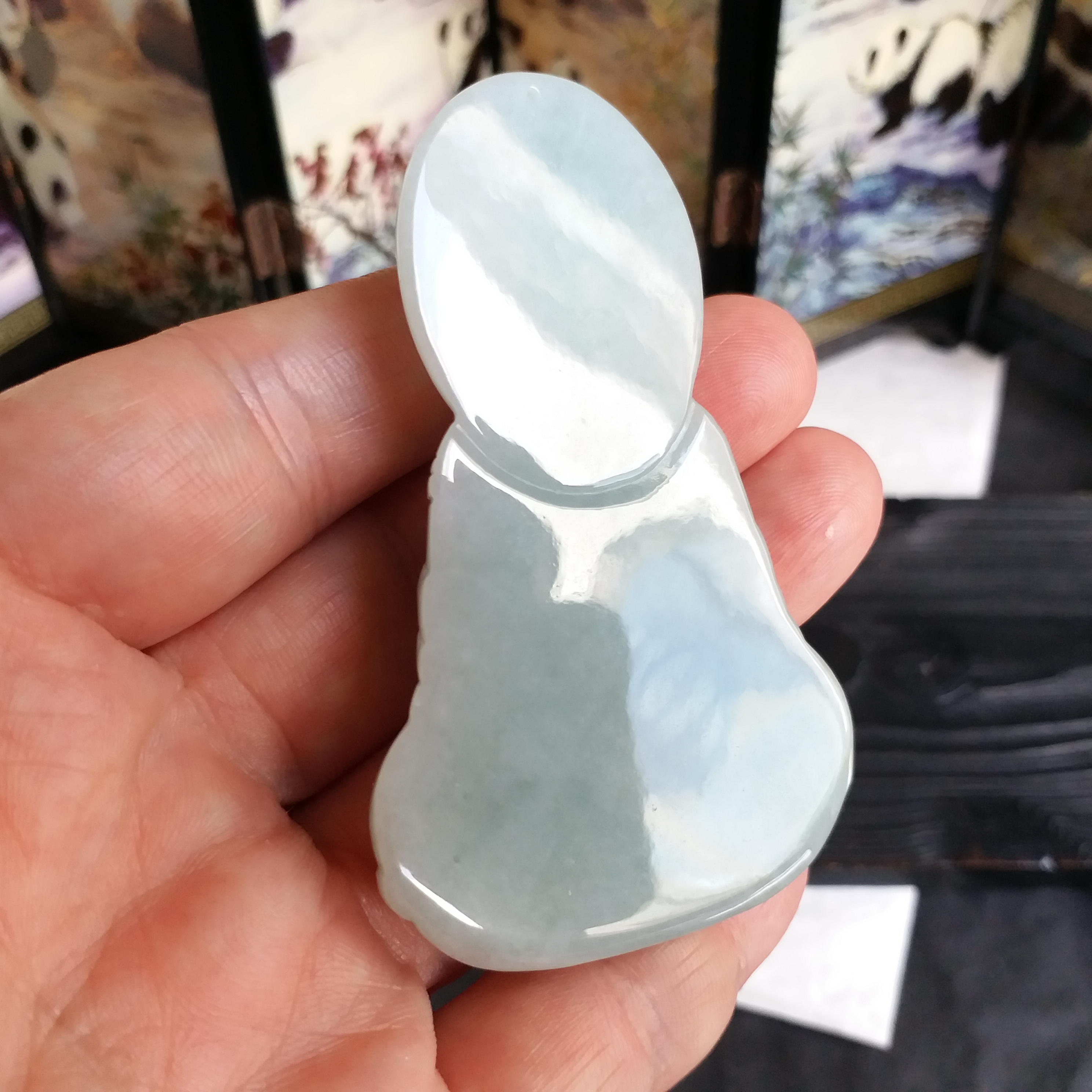 • 冰糯淺綠厚庄媽姐吊墜, 天然翡翠A玉, 緬甸玉, Jade, Jadeite