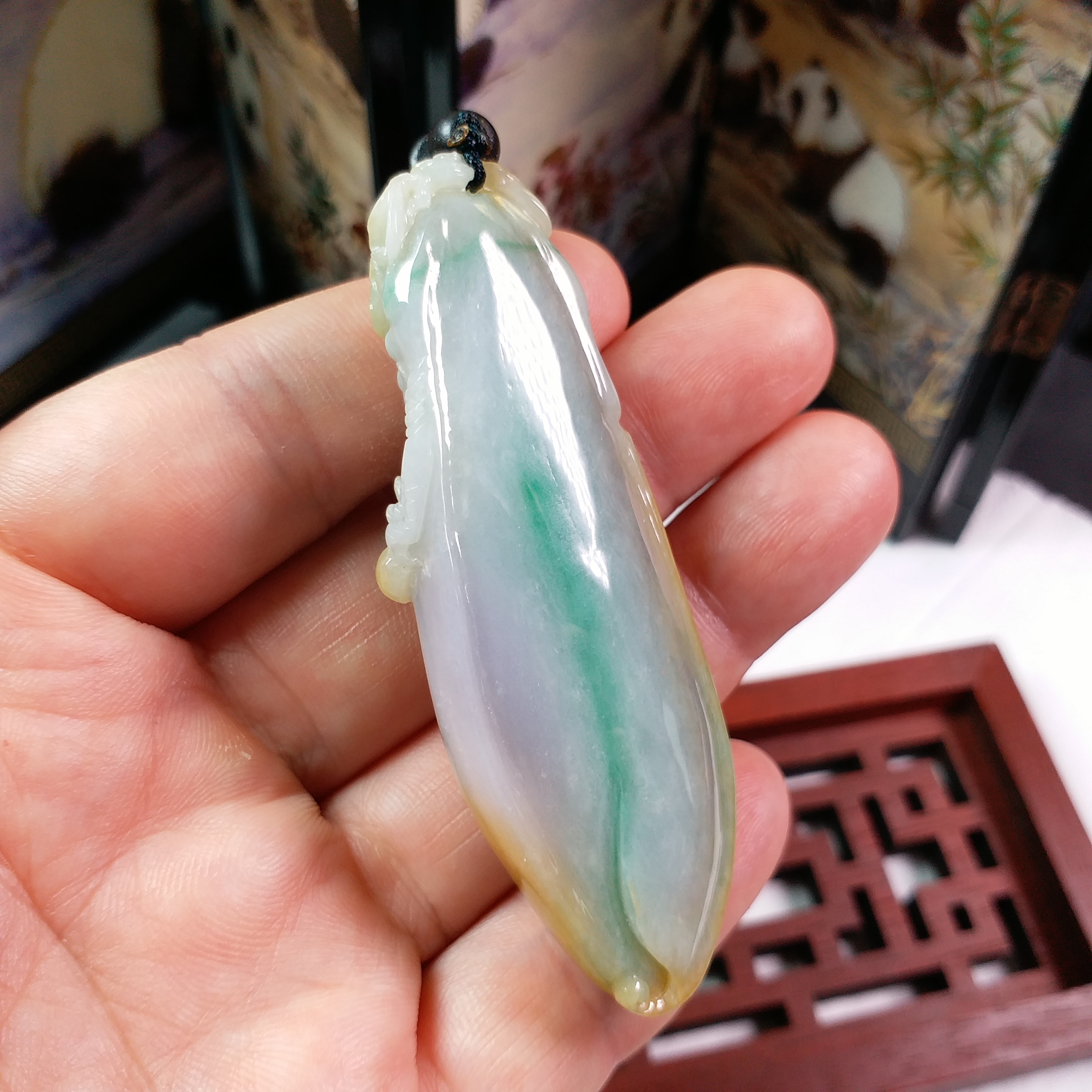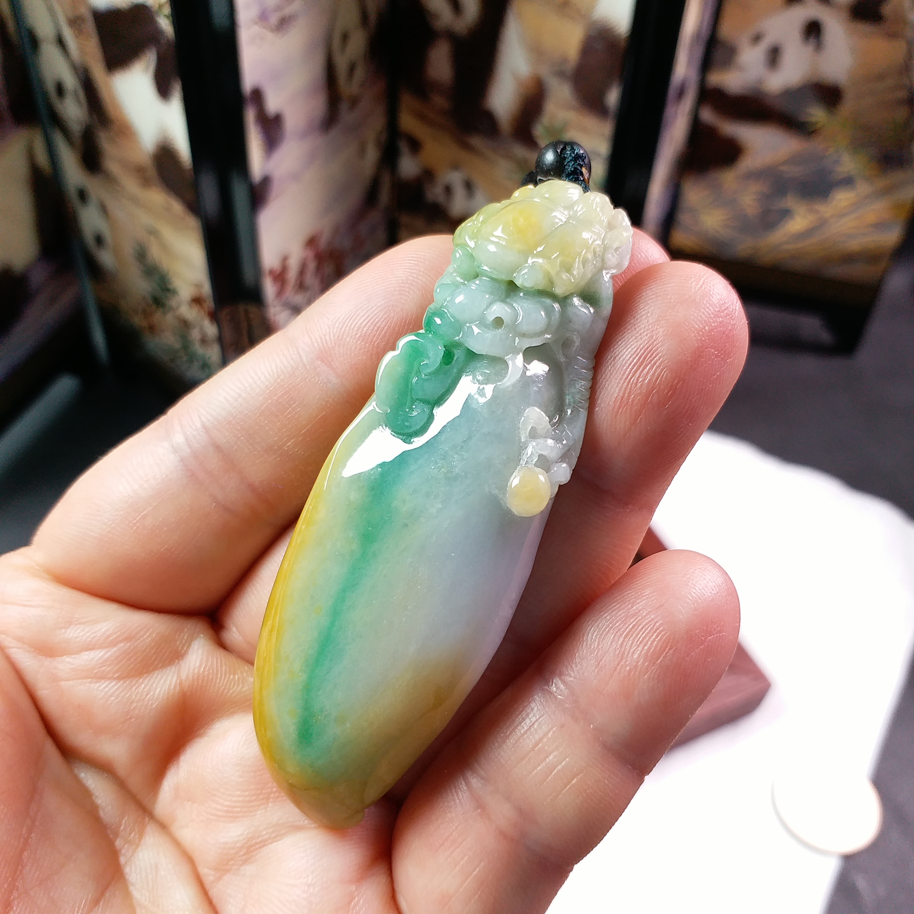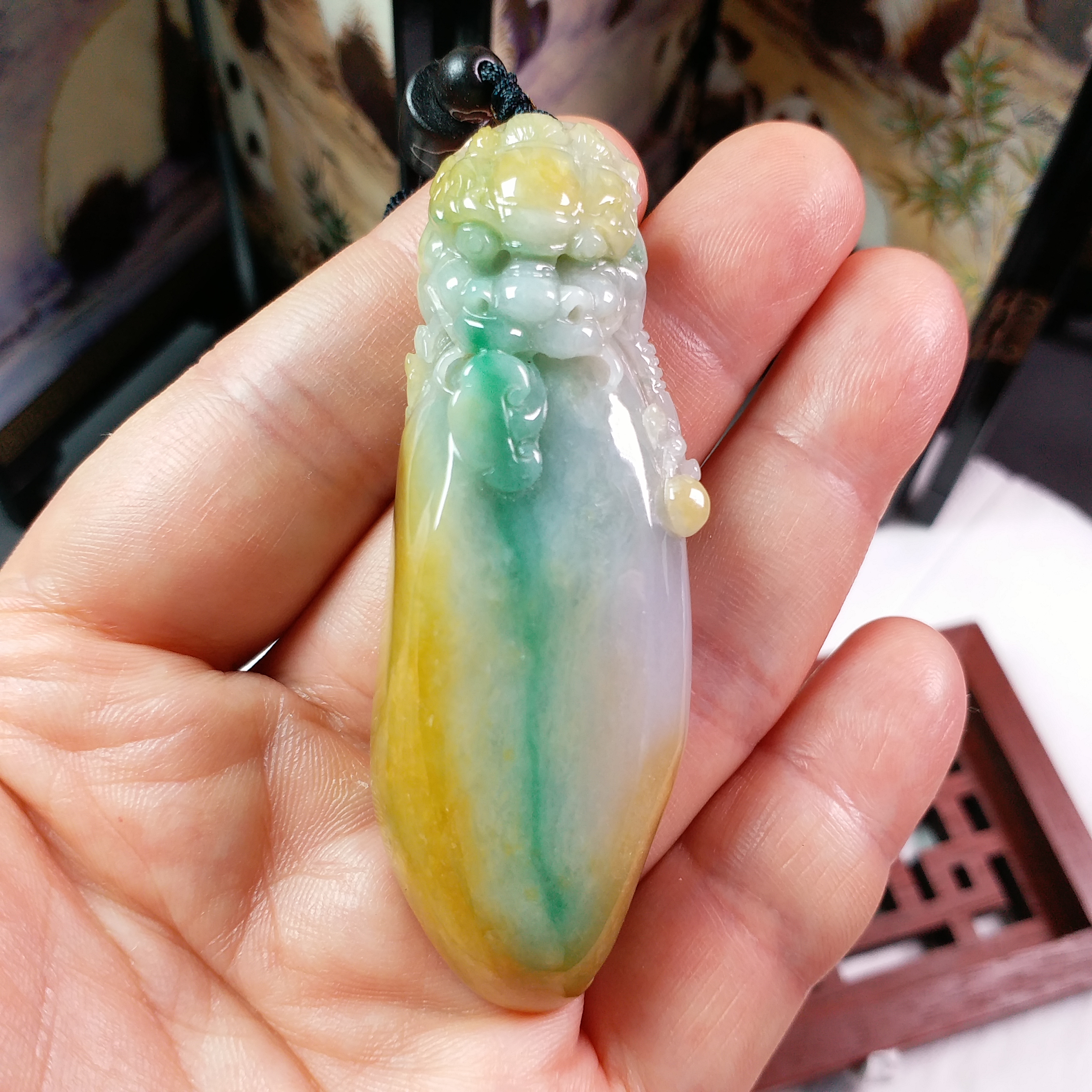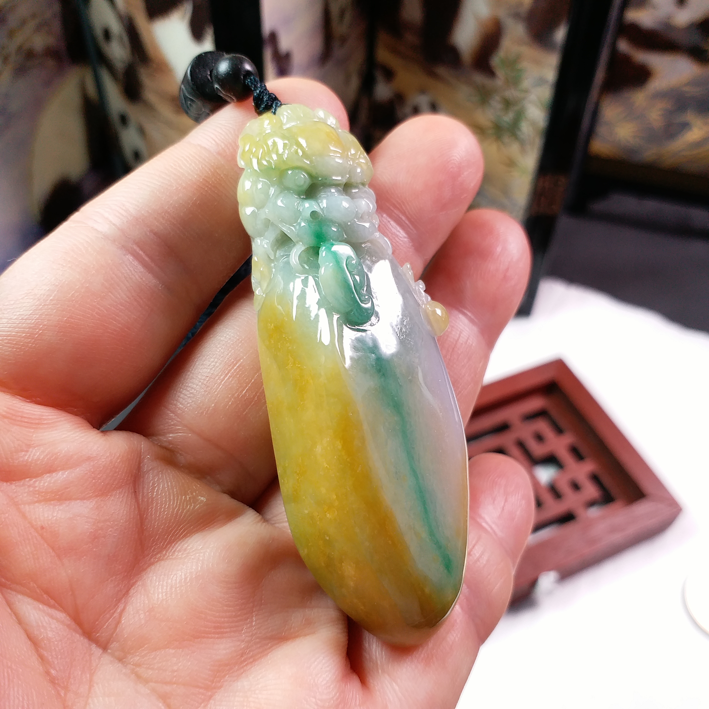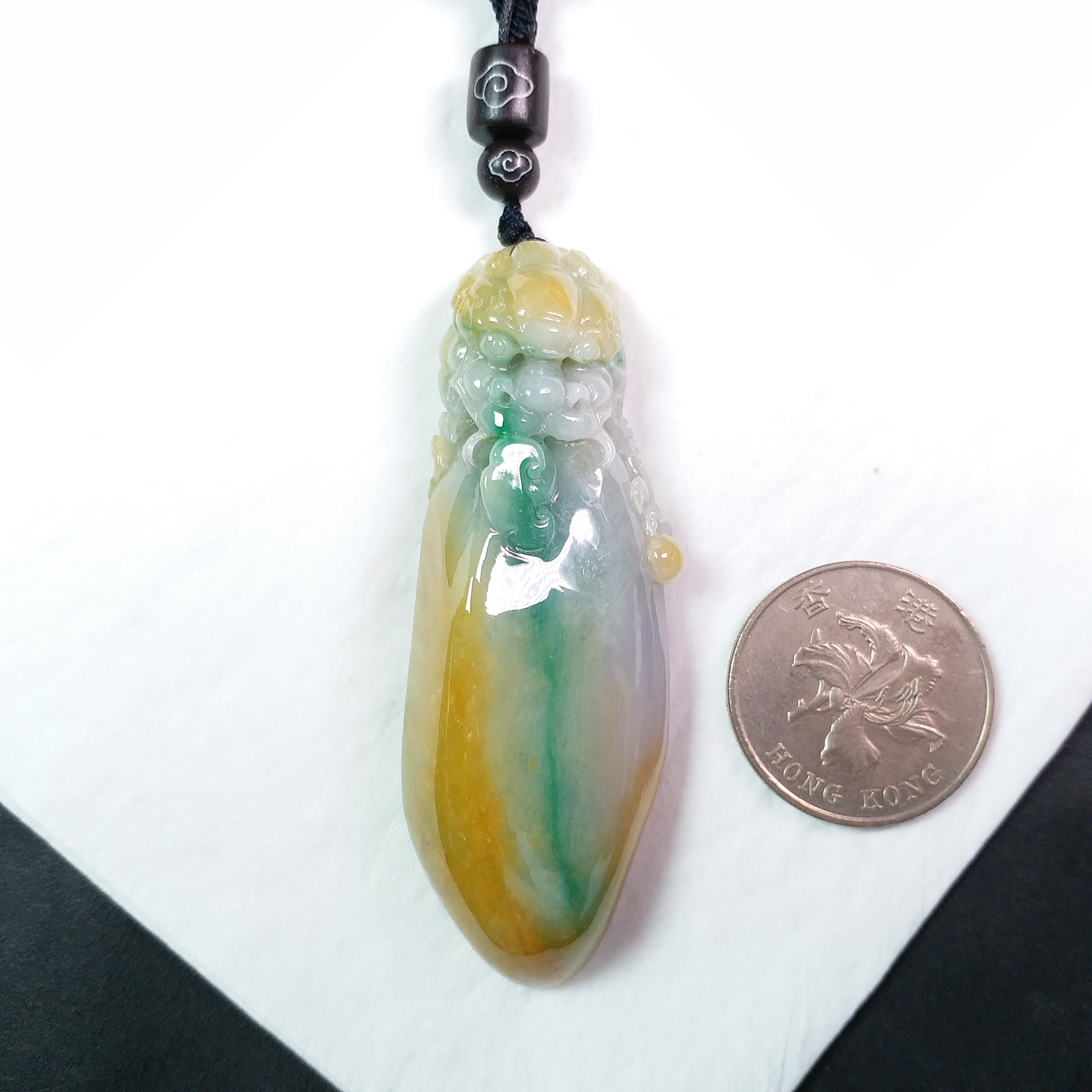 J1815 冰糯三彩厚庄龍頭如意吊墜