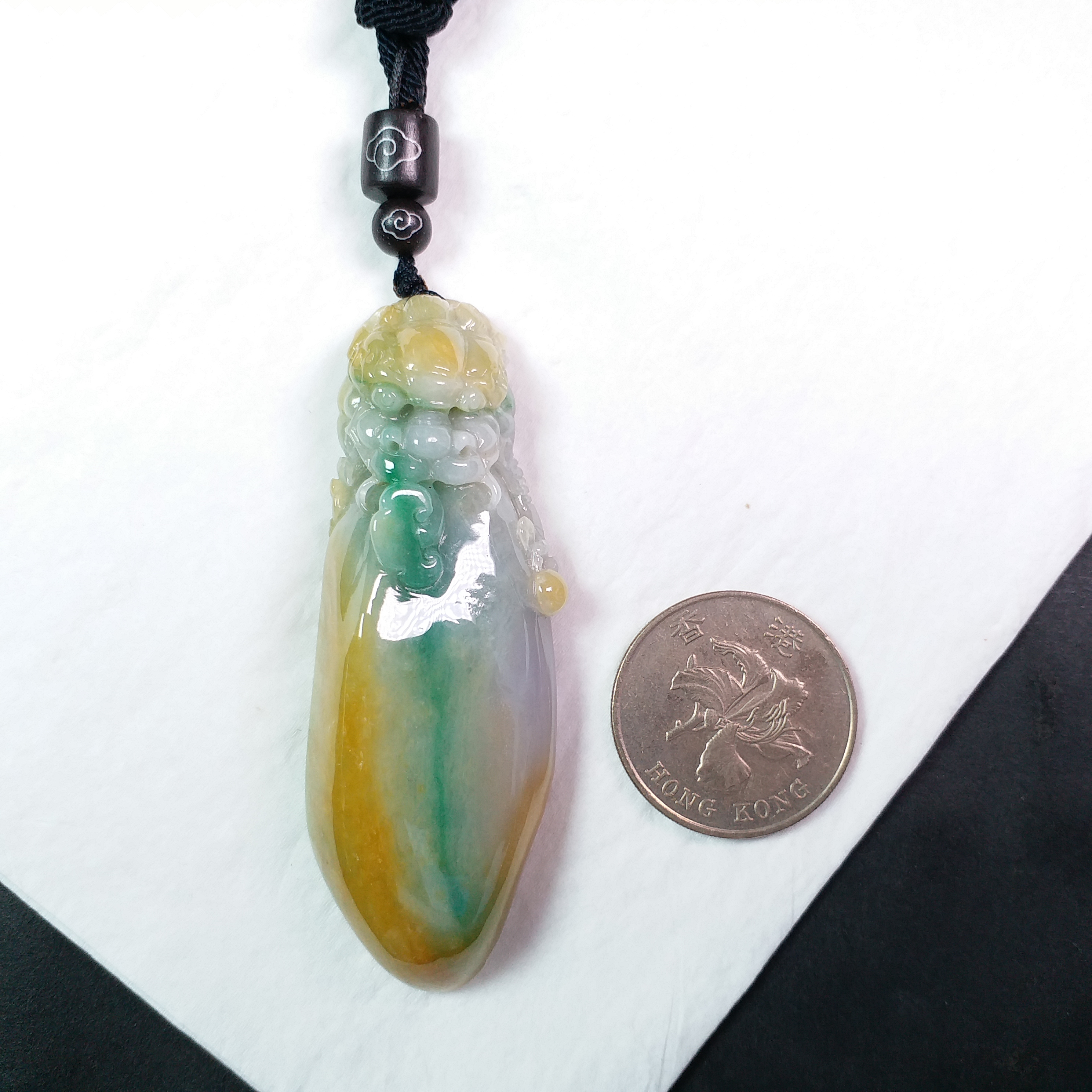 • 冰糯三彩厚庄龍頭如意吊墜, 天然翡翠A玉, 緬甸玉, Jade, Jadeite