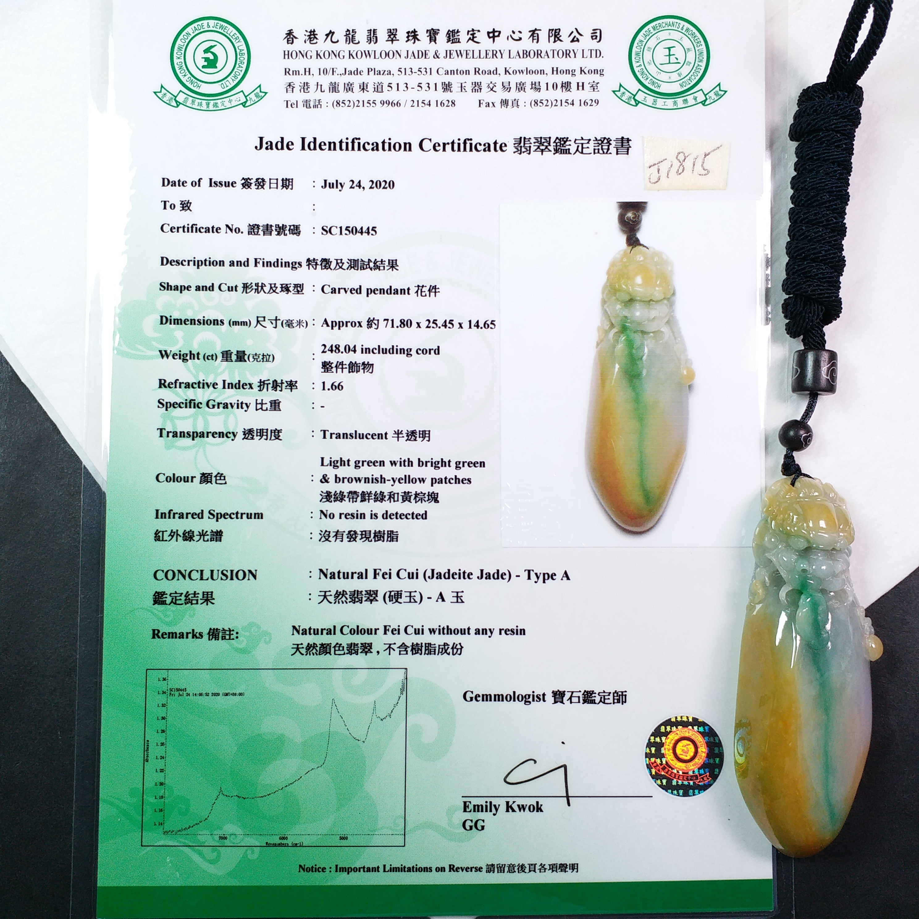超過$1萬的貨品均包香港翡翠鑑定証書;