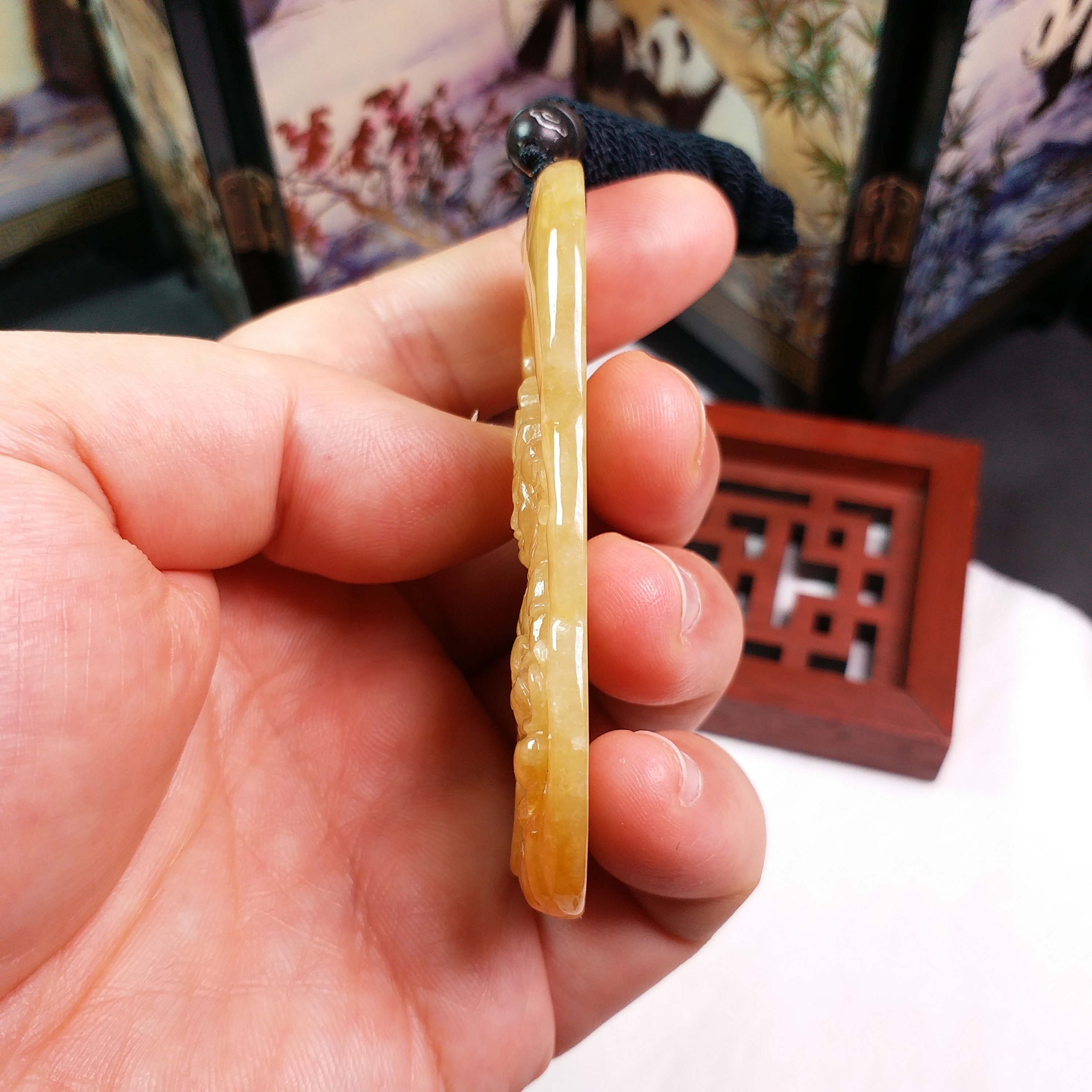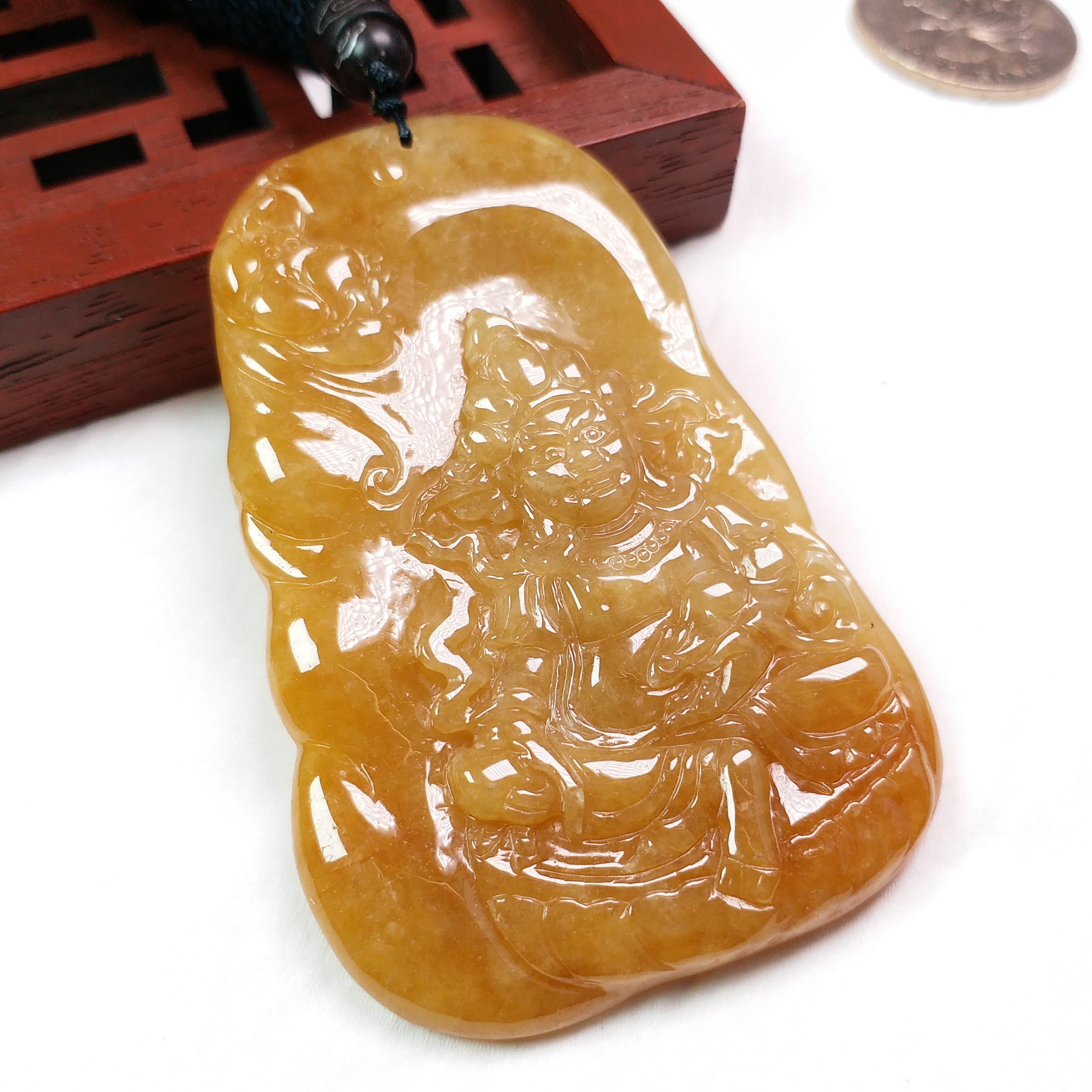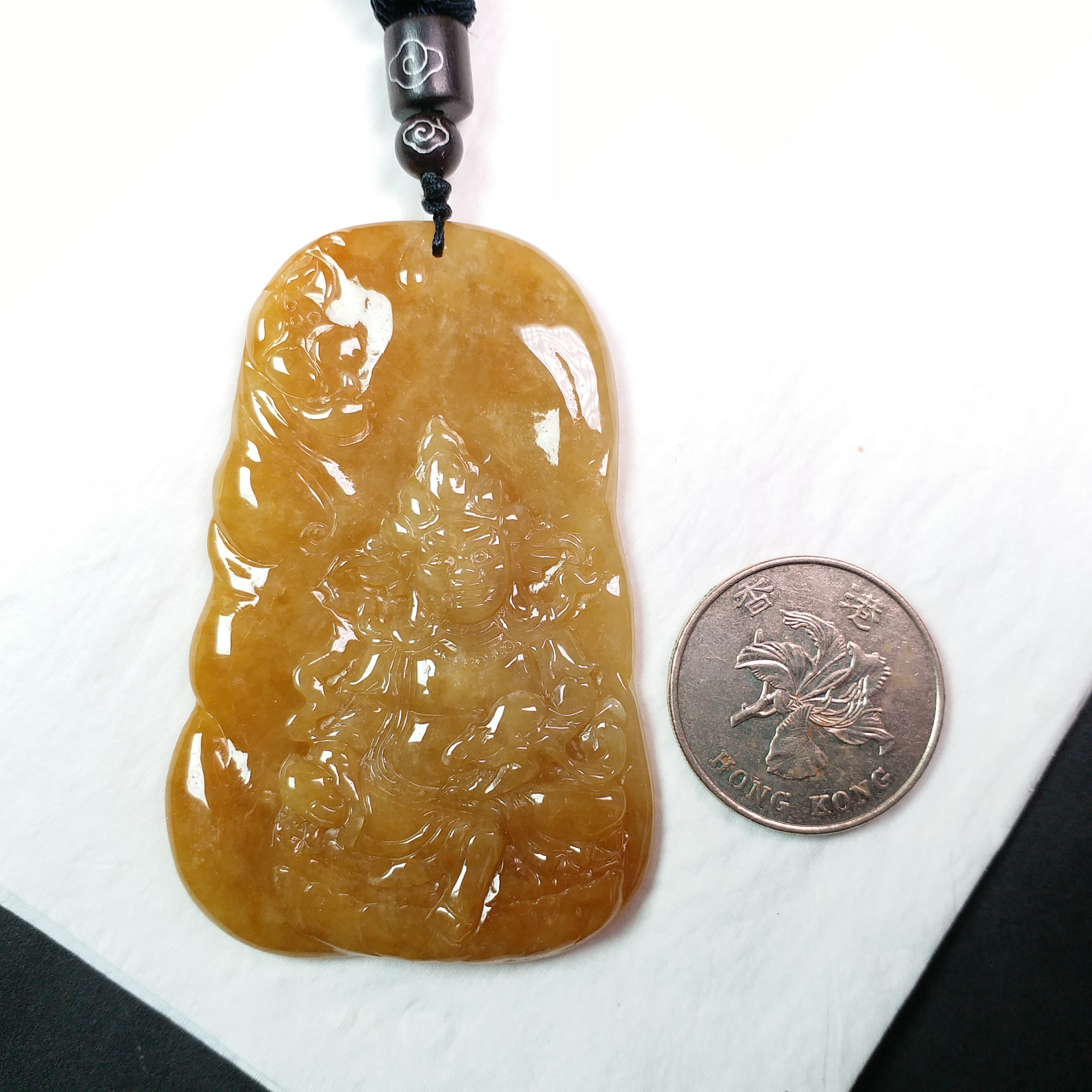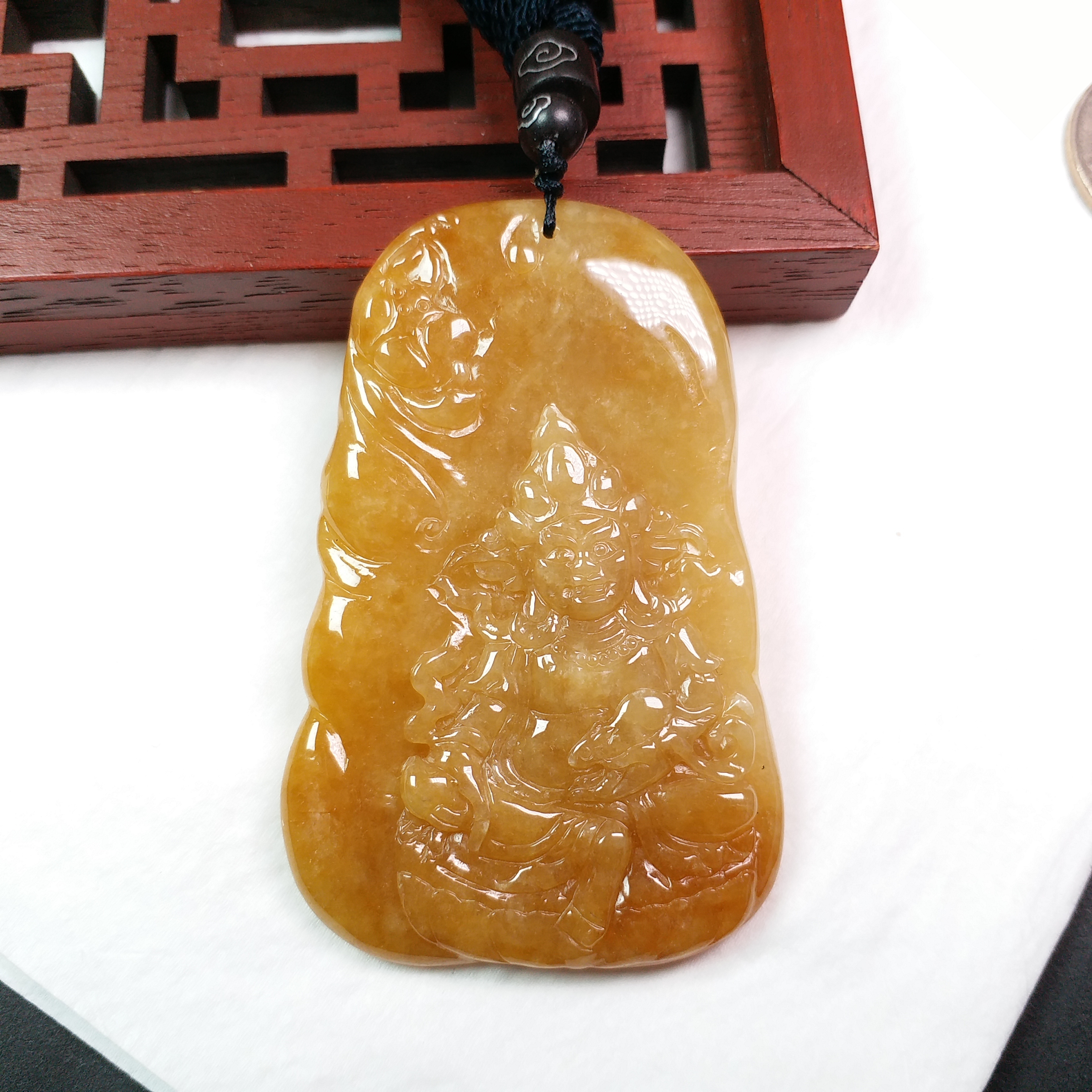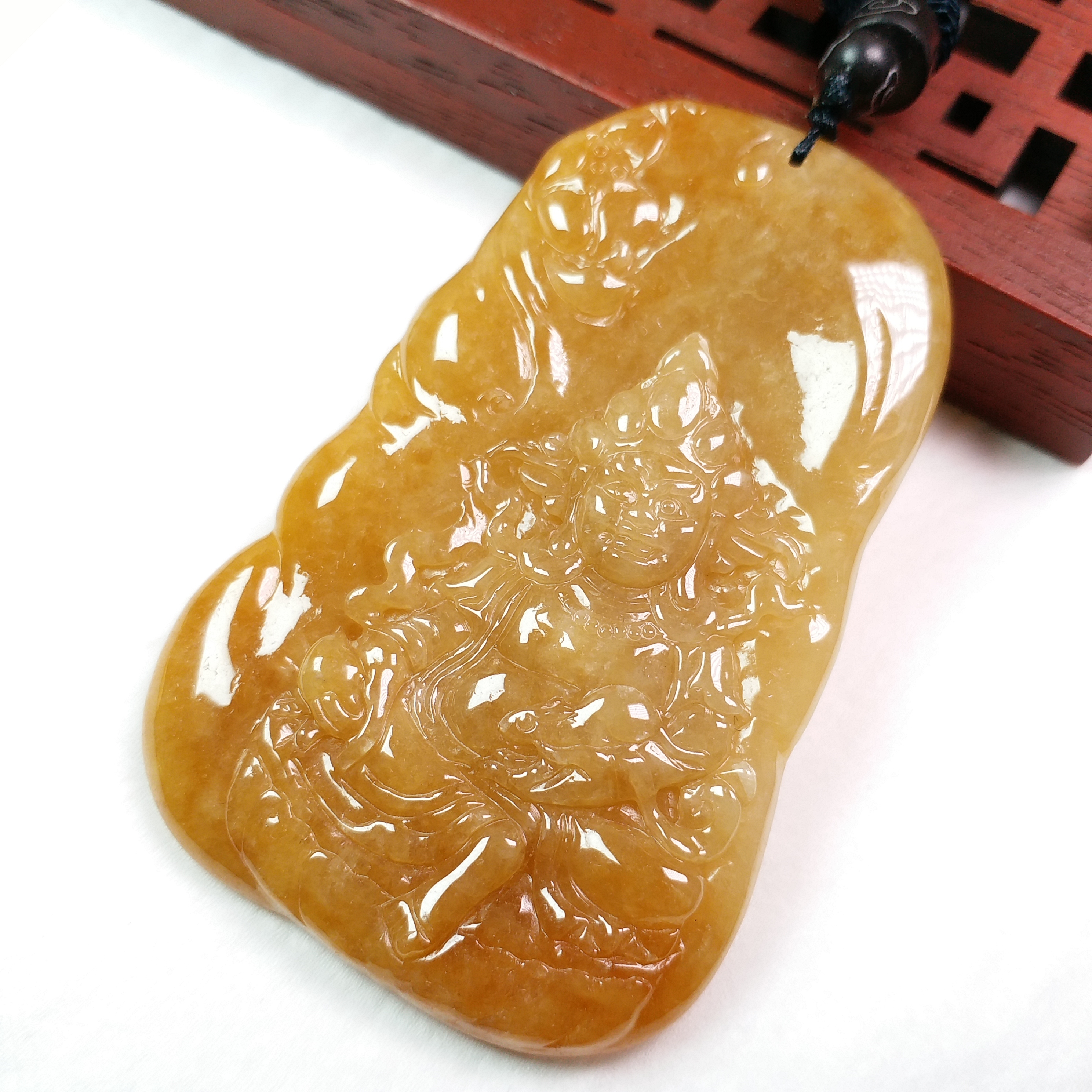 • 冰黃翡黃財神玉牌, 天然翡翠A玉, 緬甸玉, Jade, Jadeite