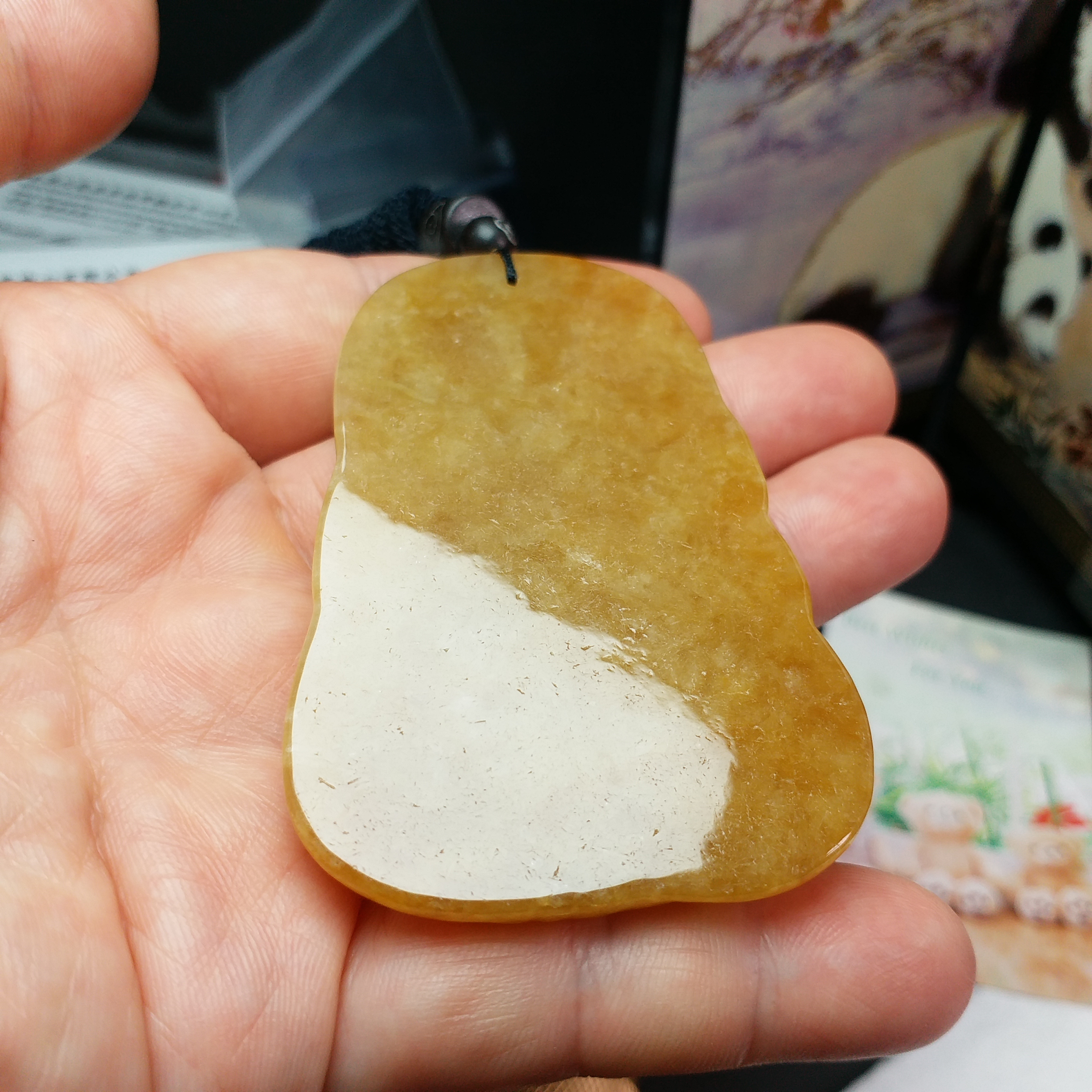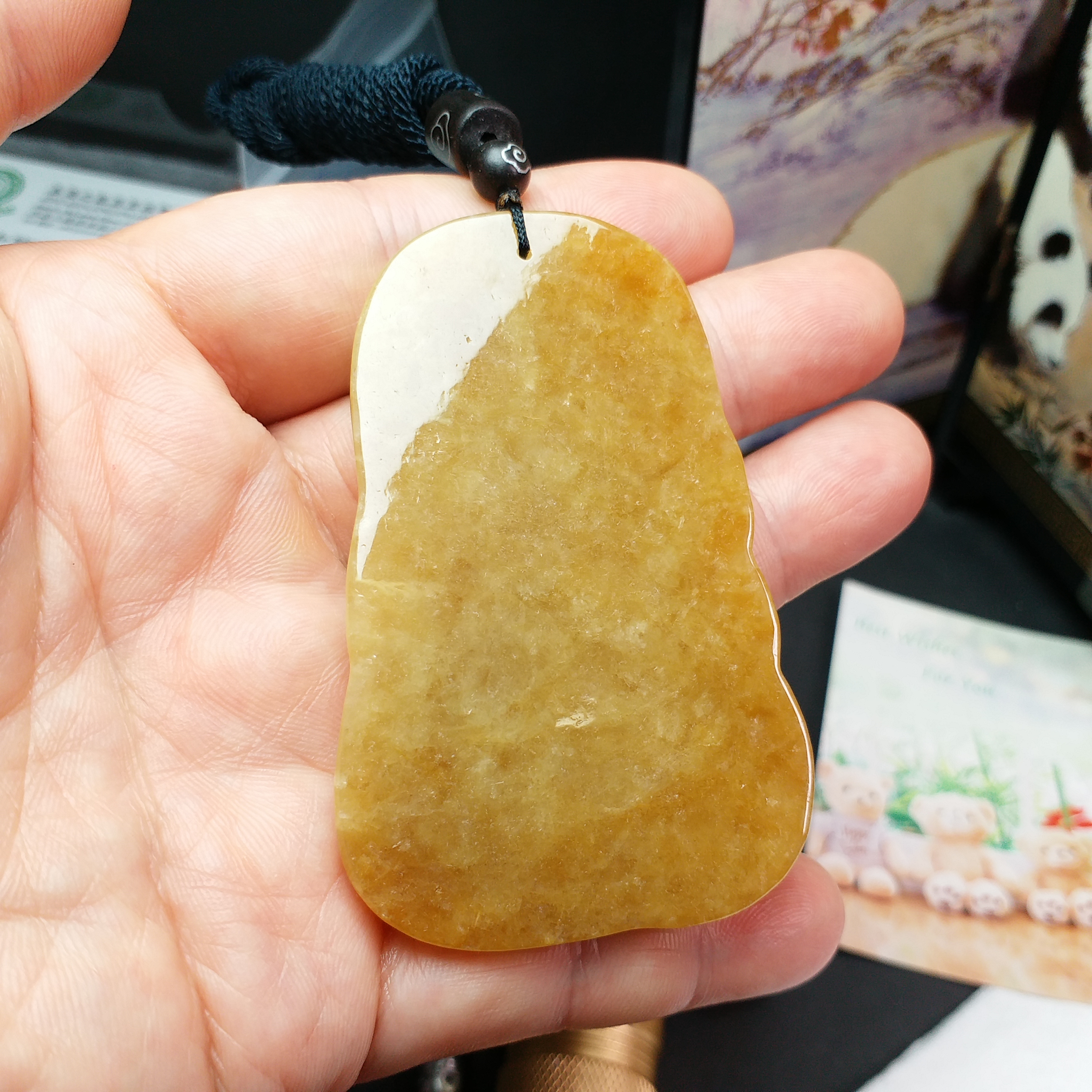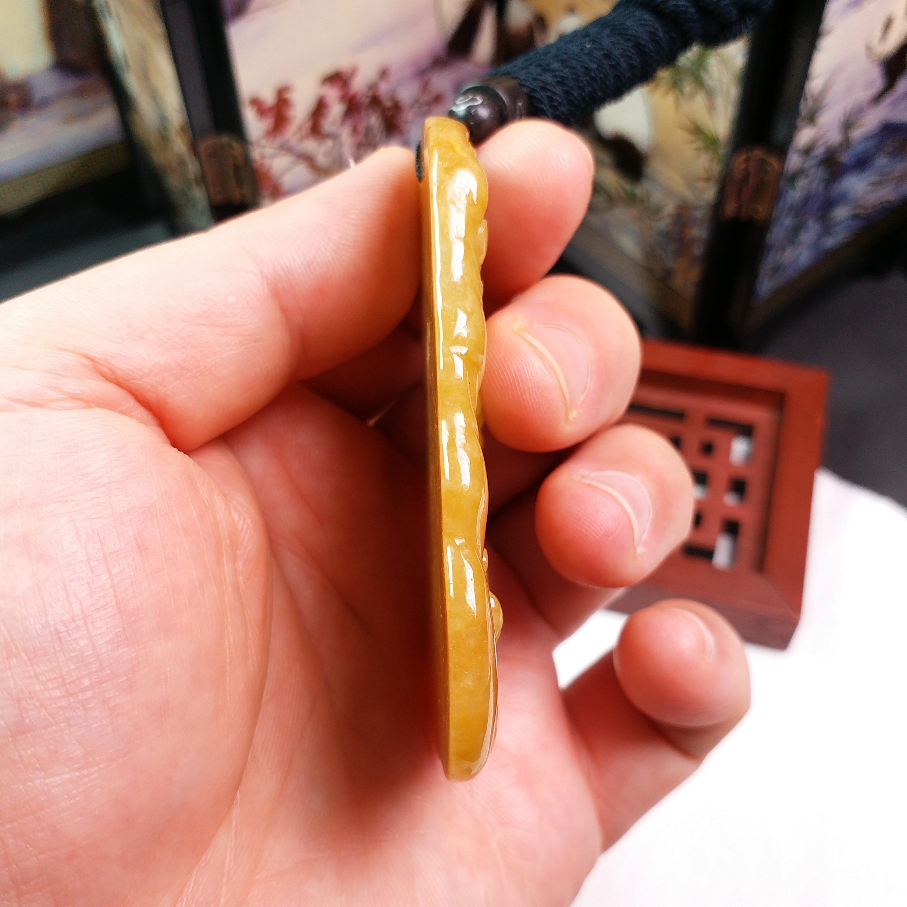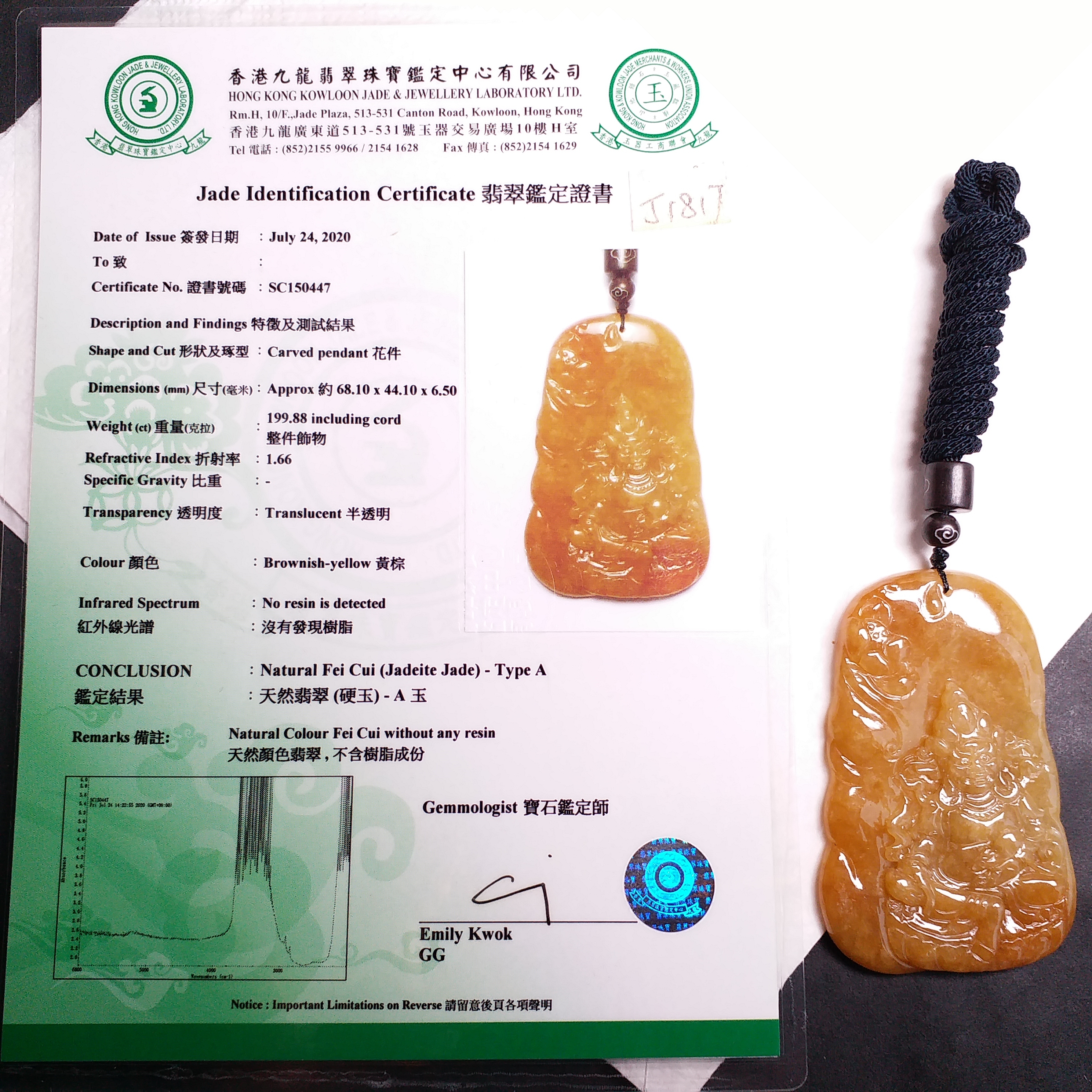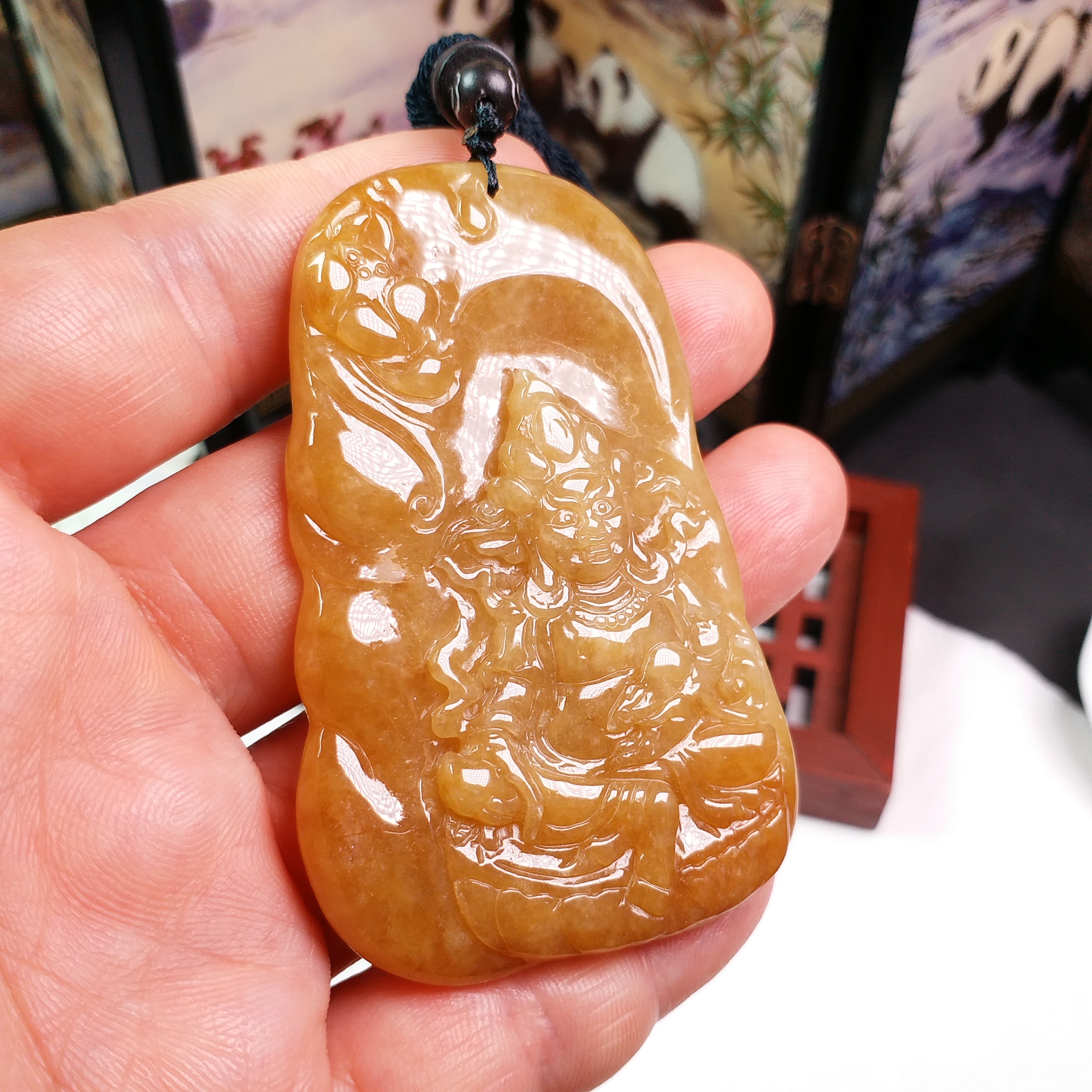 • 冰黃翡黃財神玉牌, 天然翡翠A玉, 緬甸玉, Jade, Jadeite
