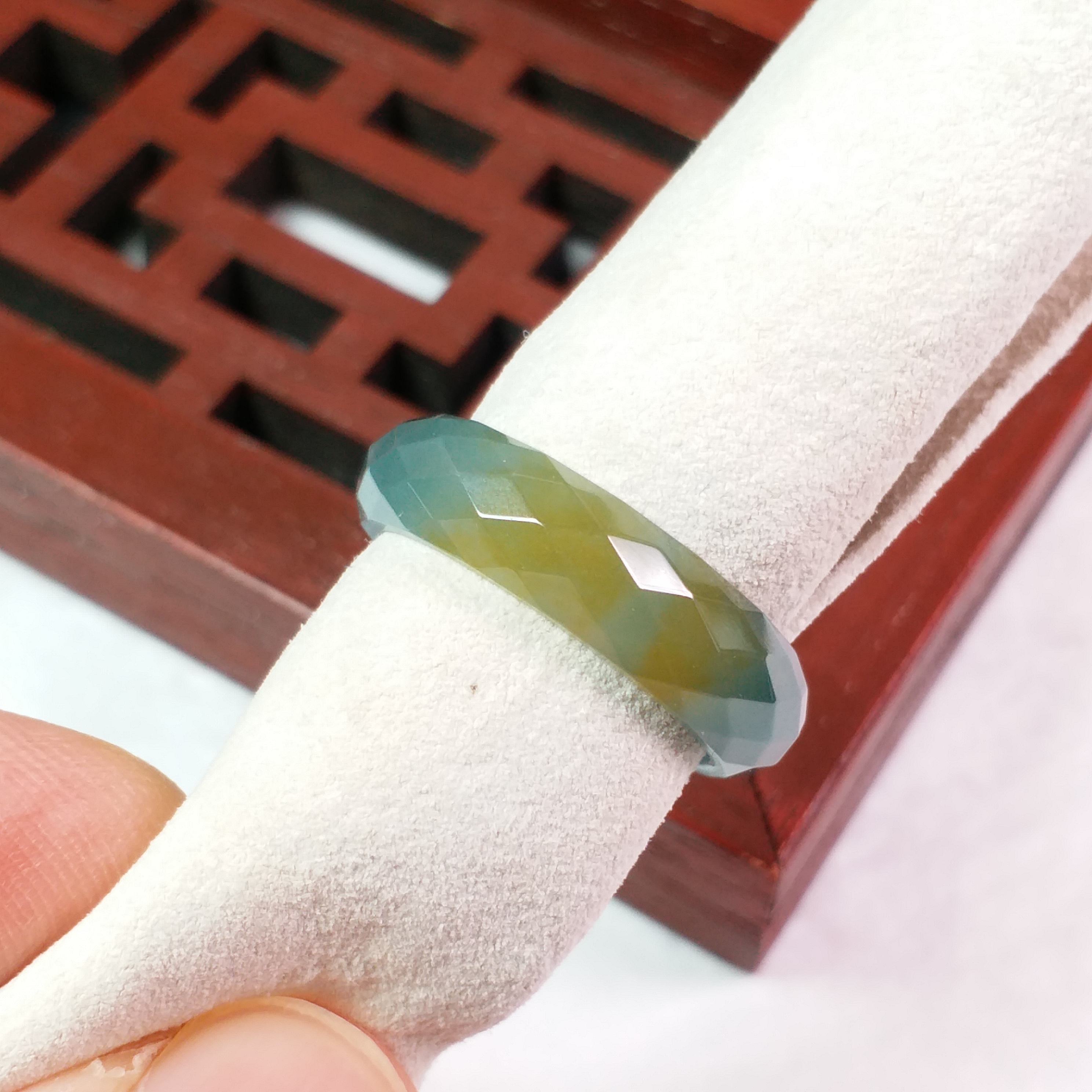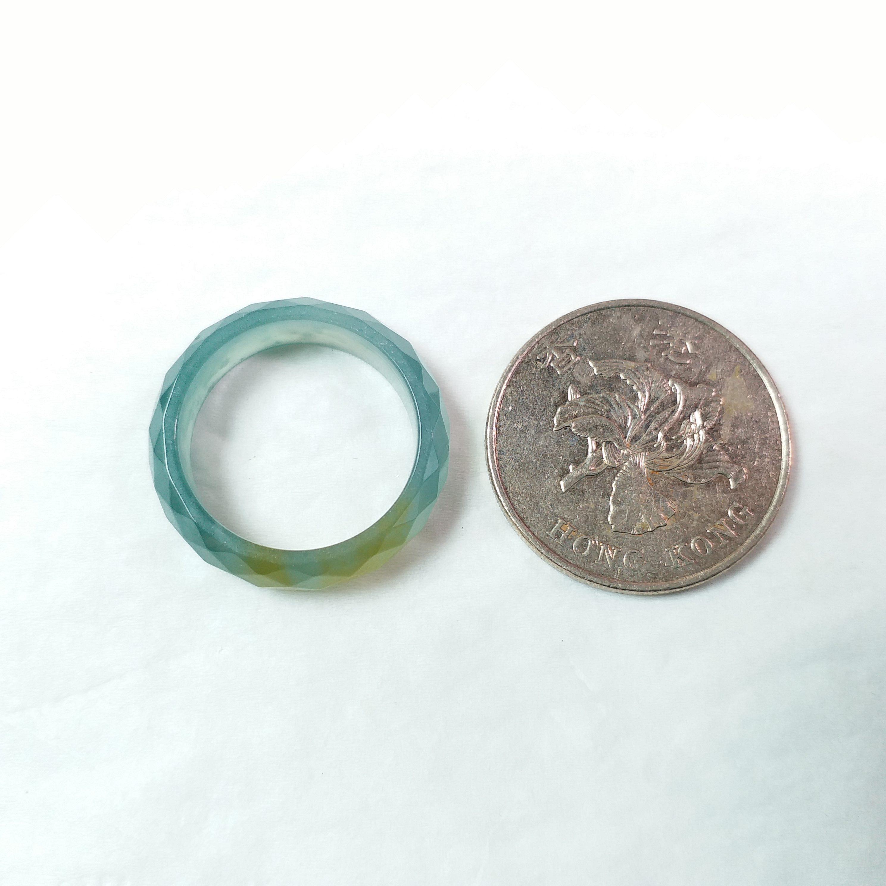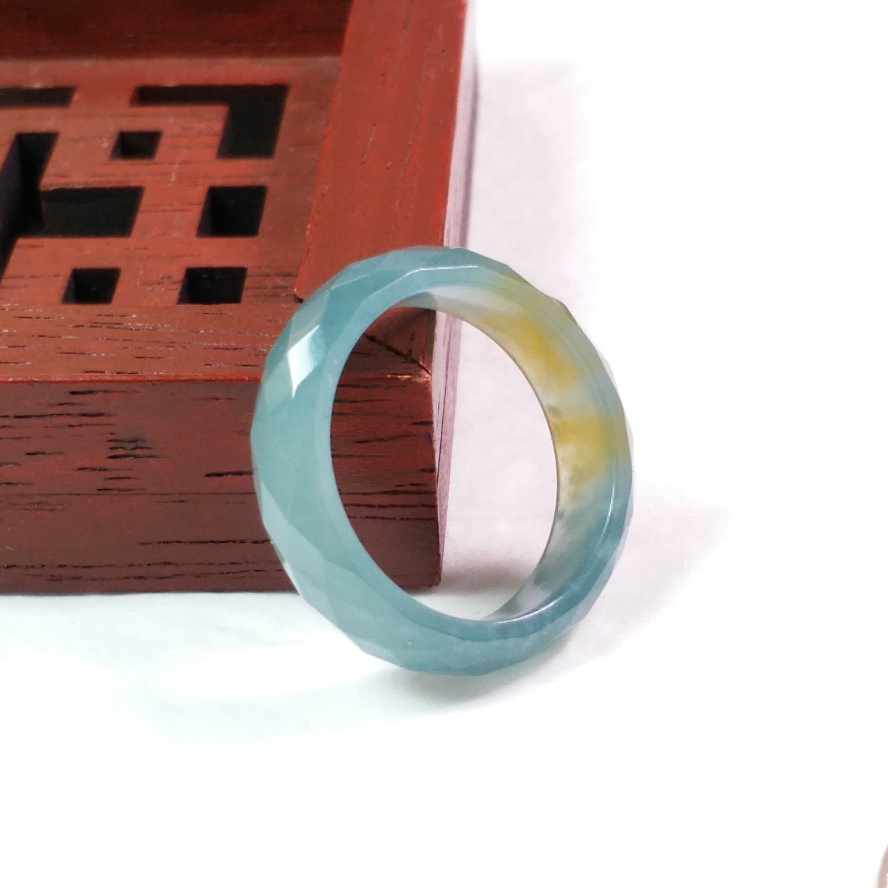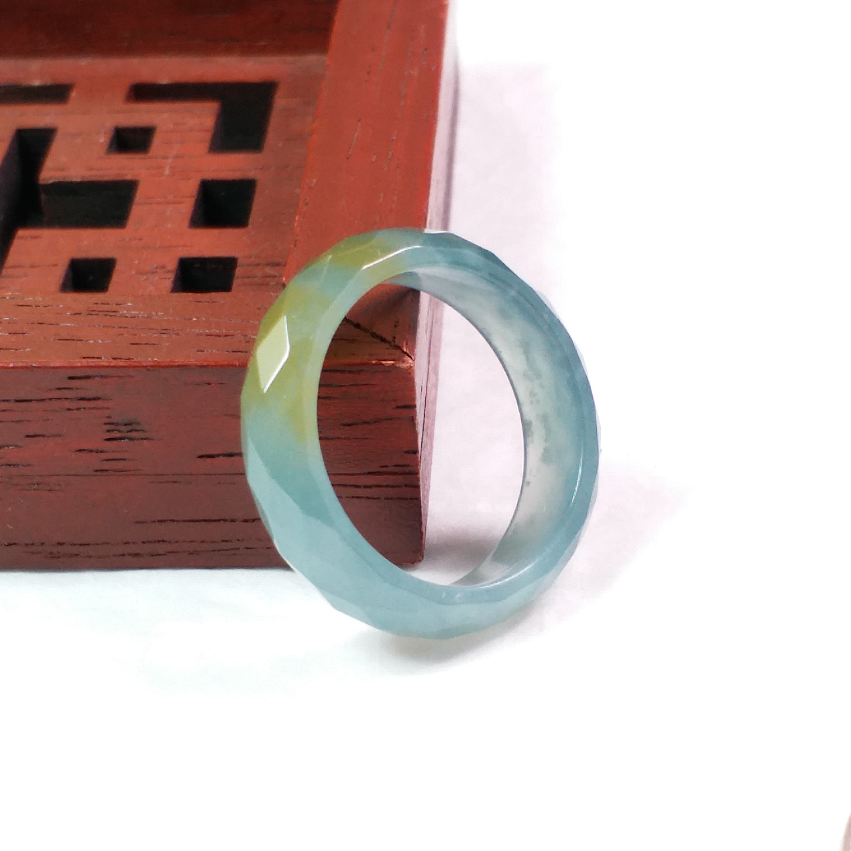 • 冰雙彩鑽石切面介圈, 天然翡翠A玉, 緬甸玉, Jade, Jadeite