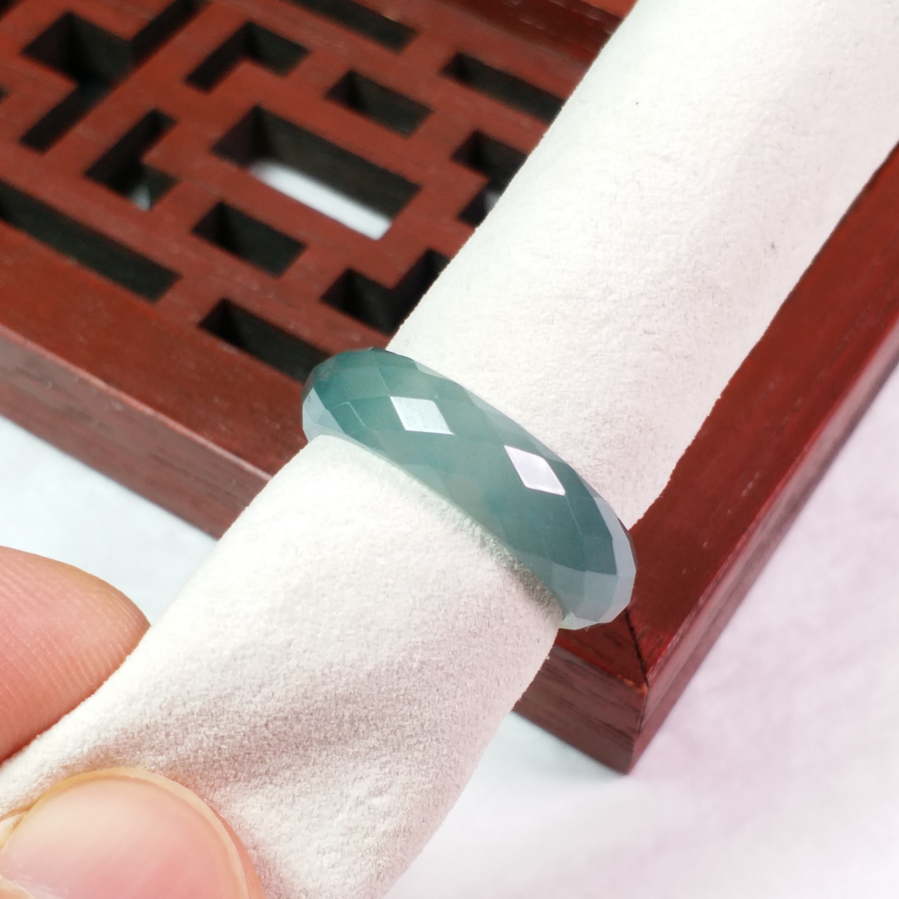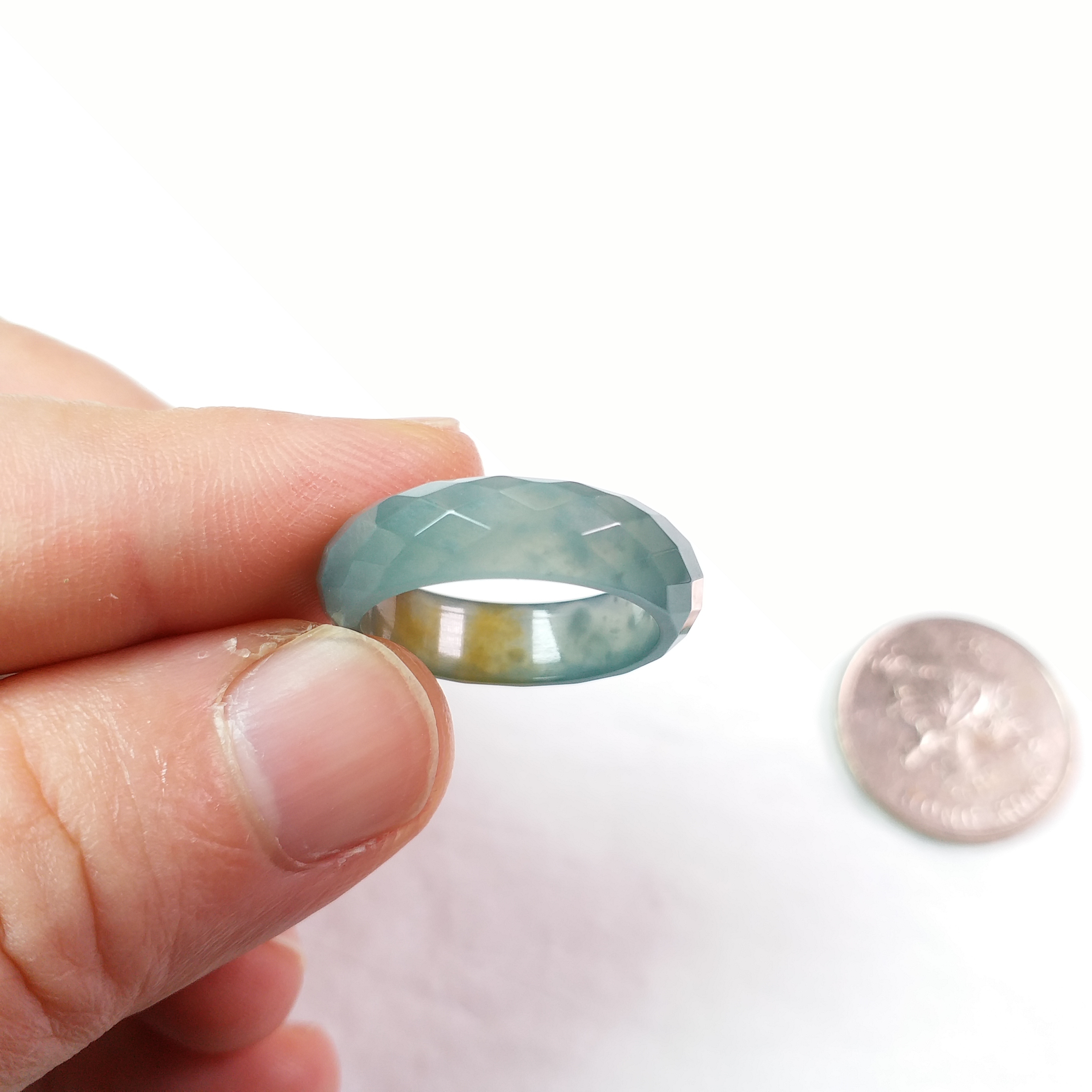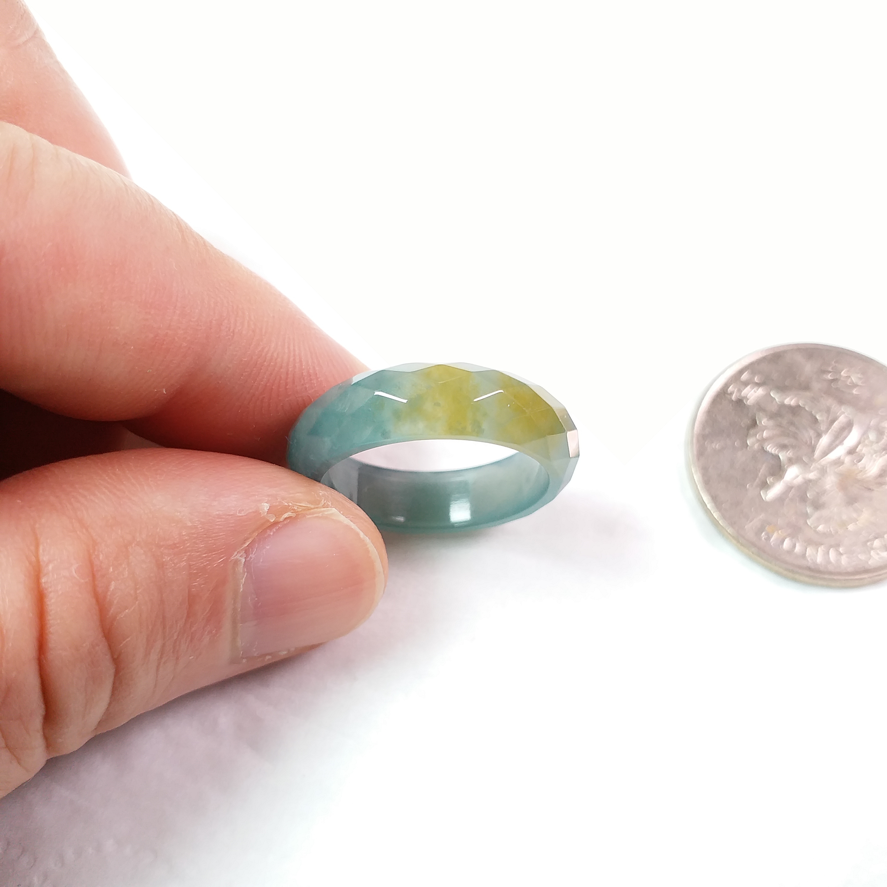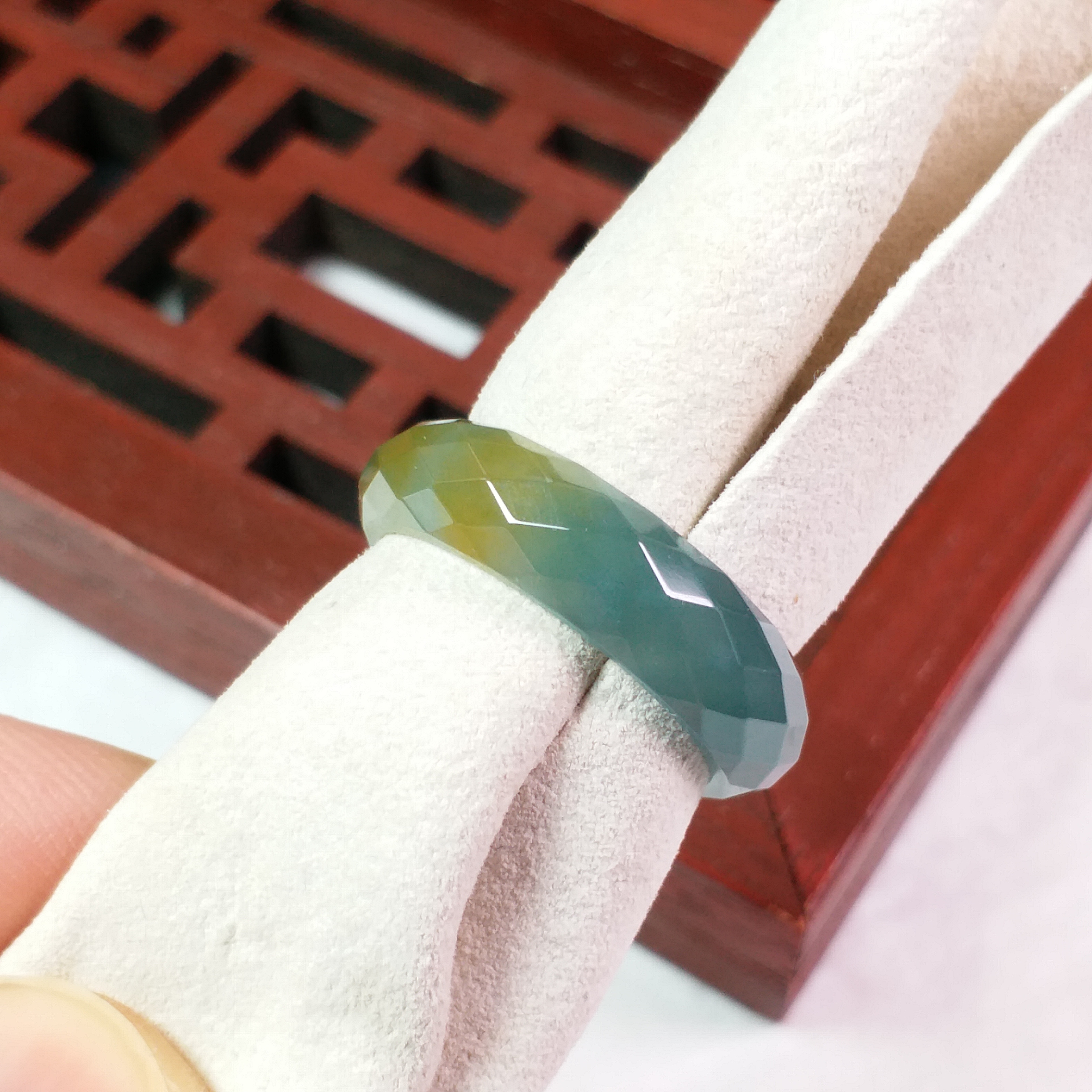 • 冰雙彩鑽石切面介圈, 天然翡翠A玉, 緬甸玉, Jade, Jadeite