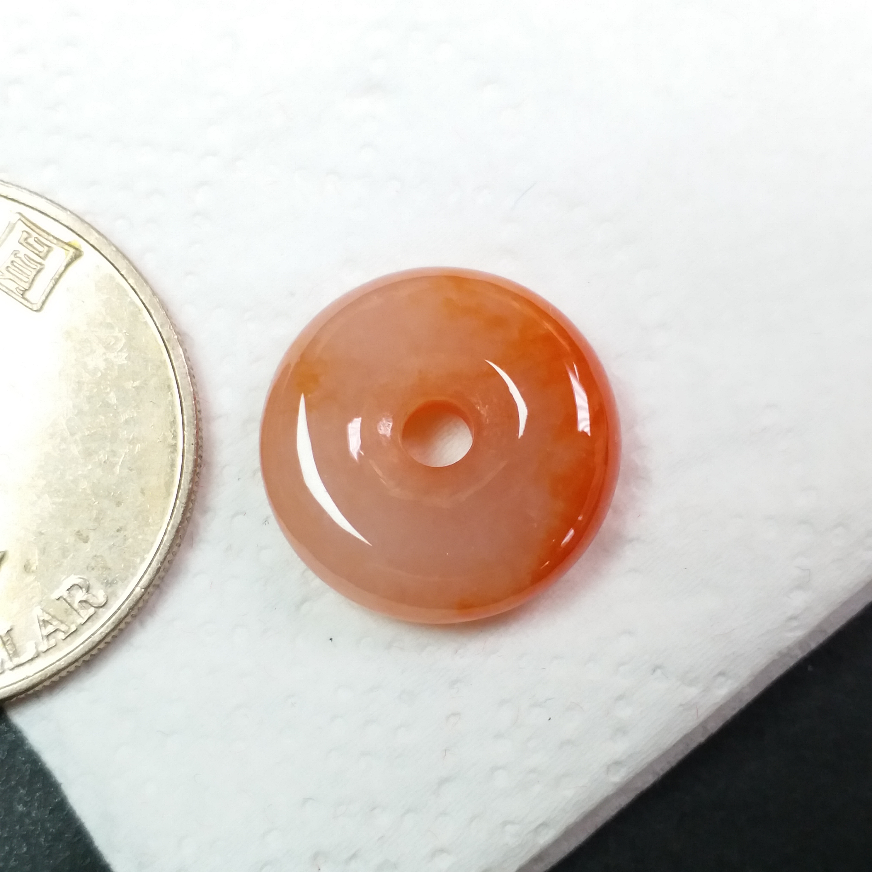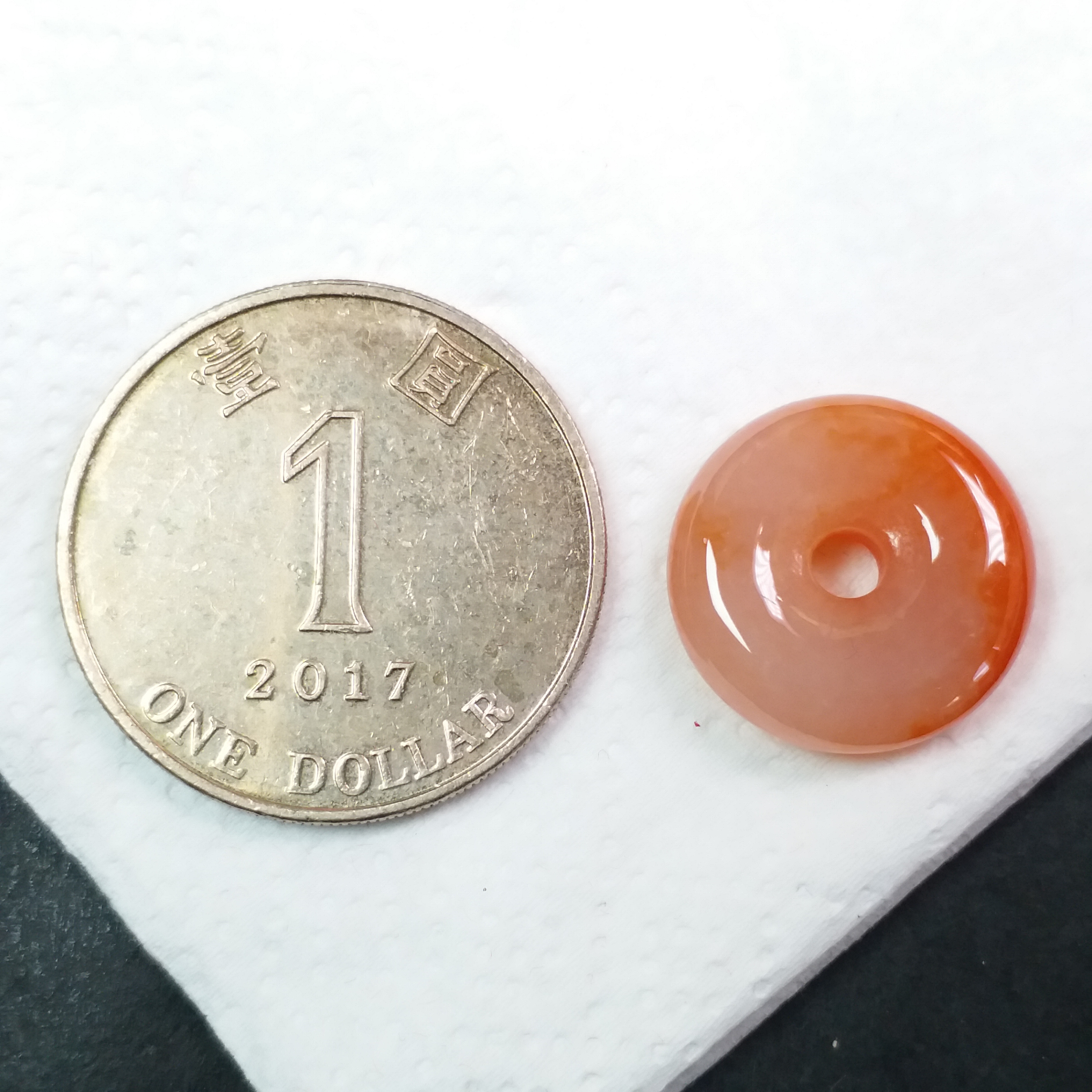• 冰紅白平安扣 (16.7mm直徑), 天然翡翠A玉, 緬甸玉, Jade, Jadeite