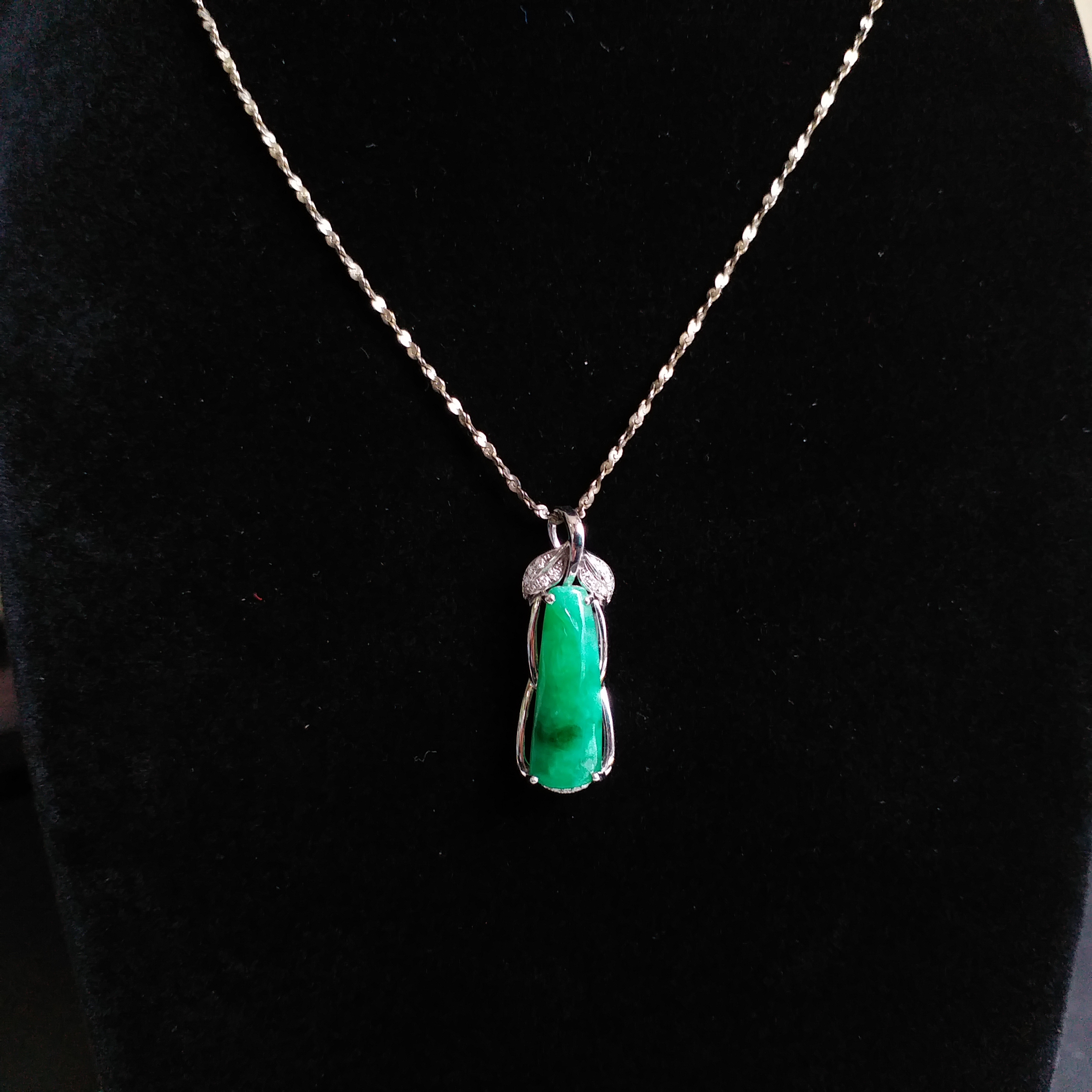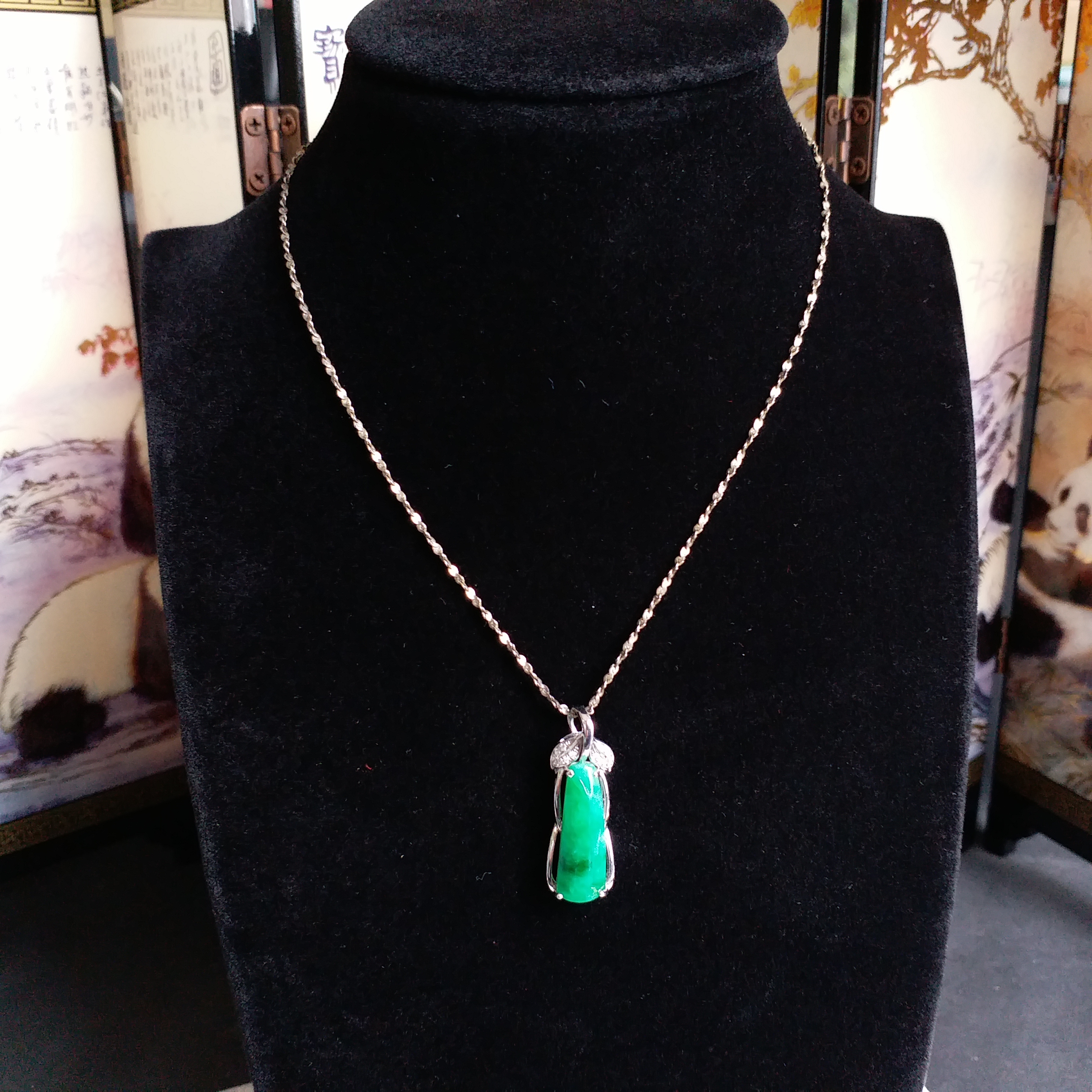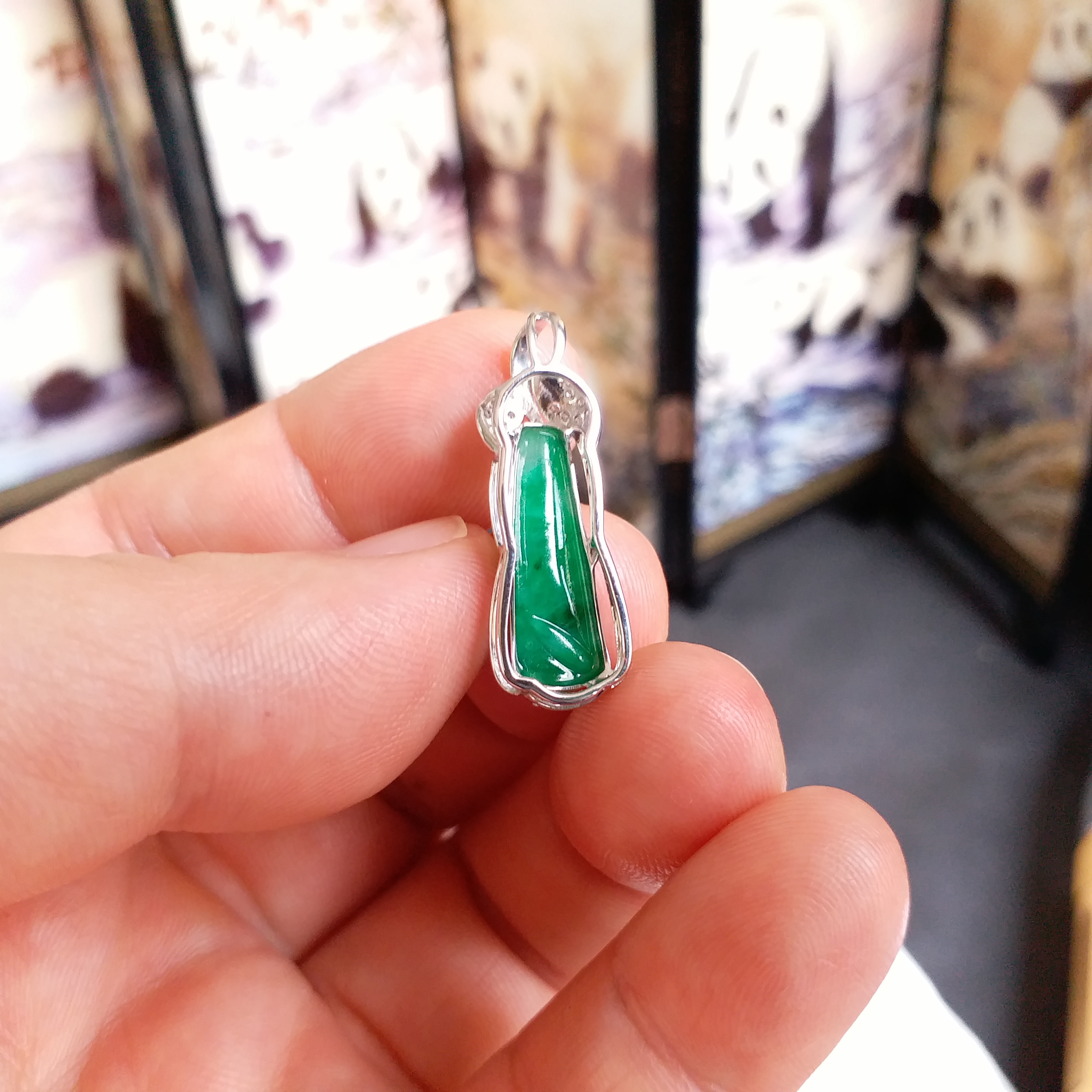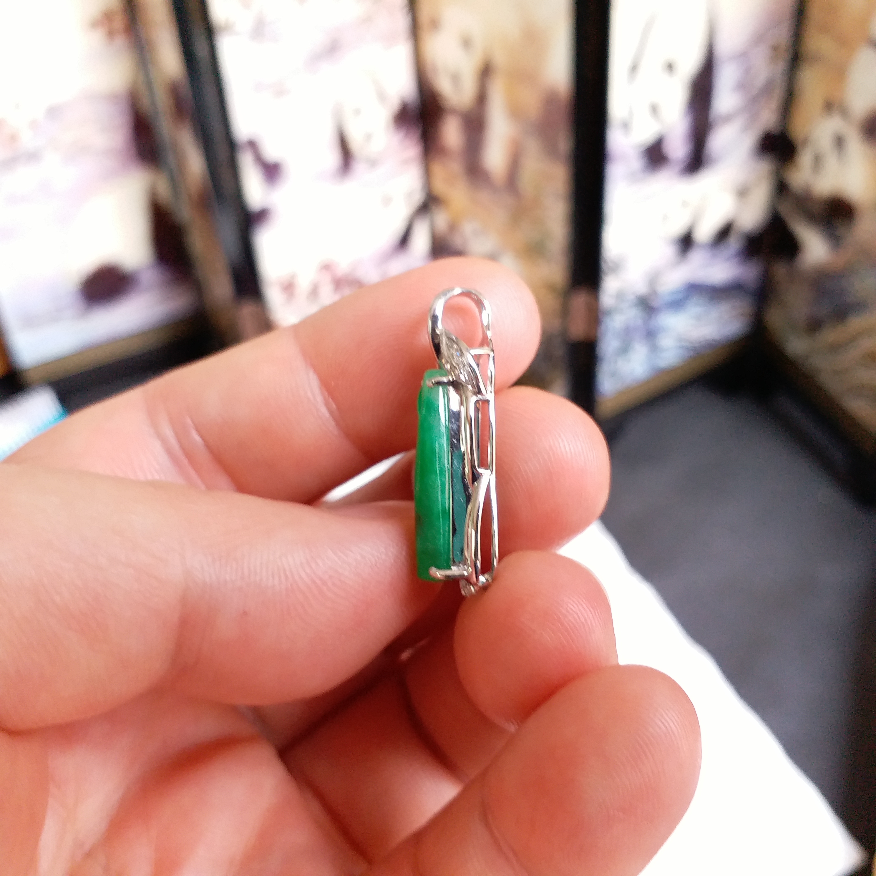 • 冰陽綠節節高昇鑲18K金真鑽小吊墜, 天然翡翠A玉, 緬甸玉, Jade, Jadeite