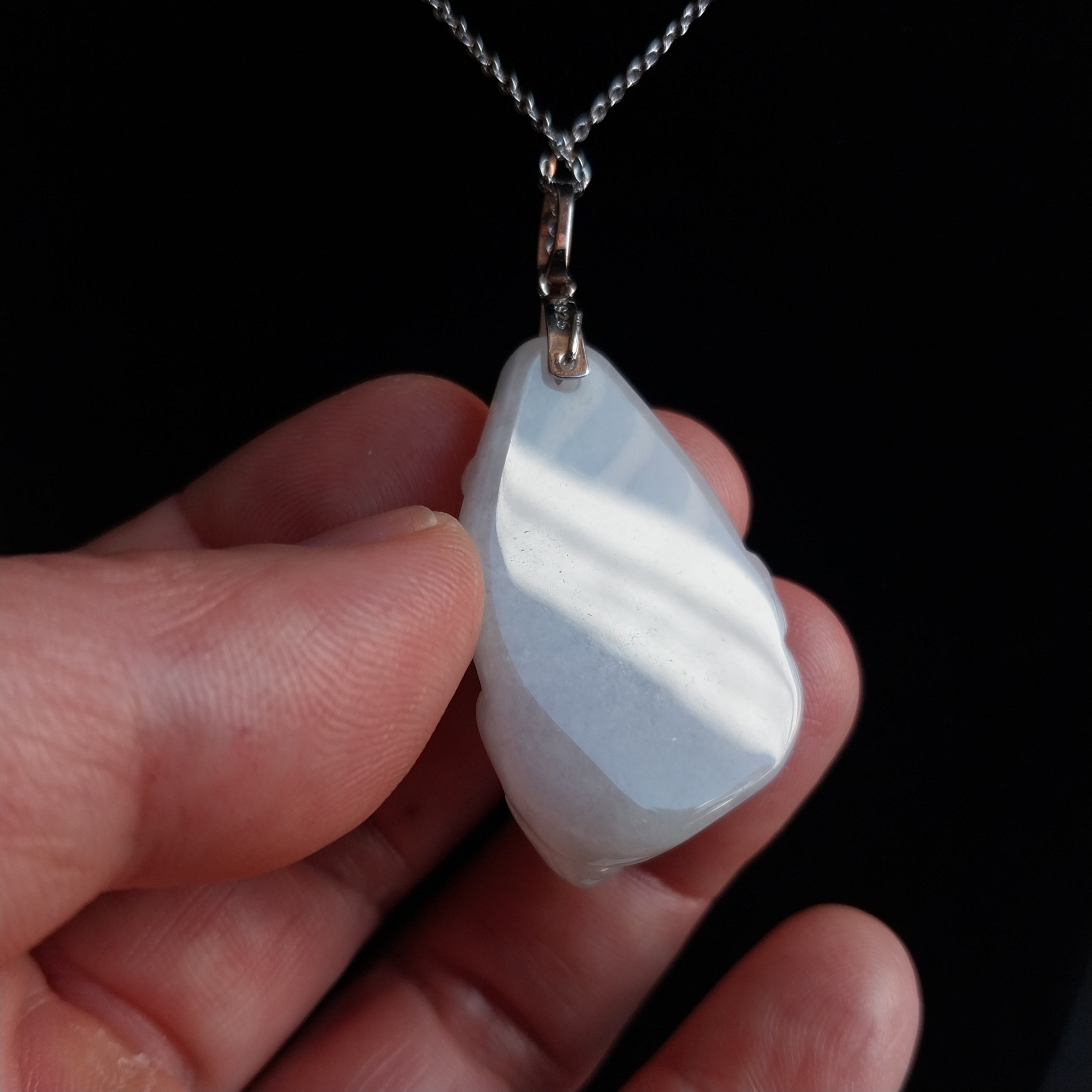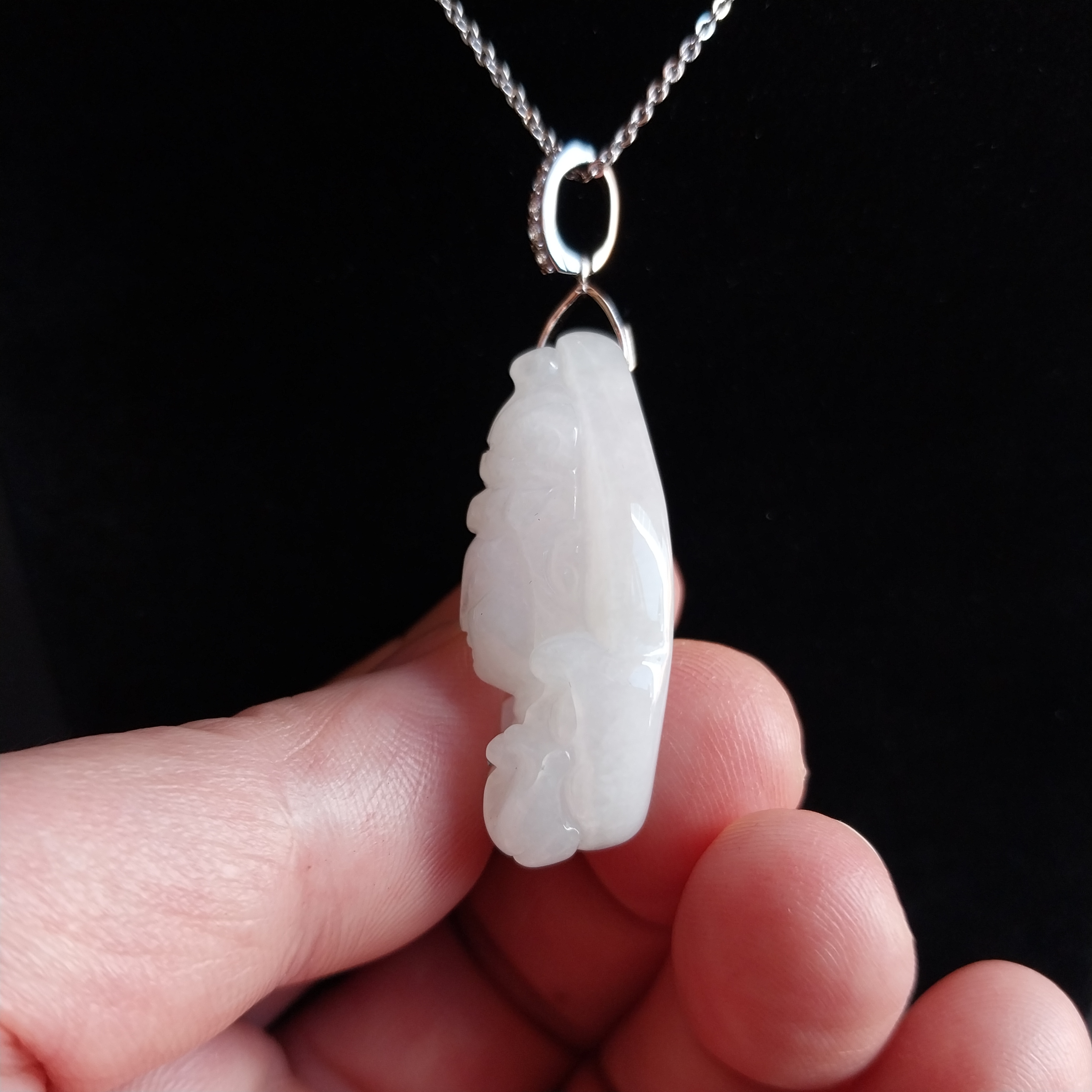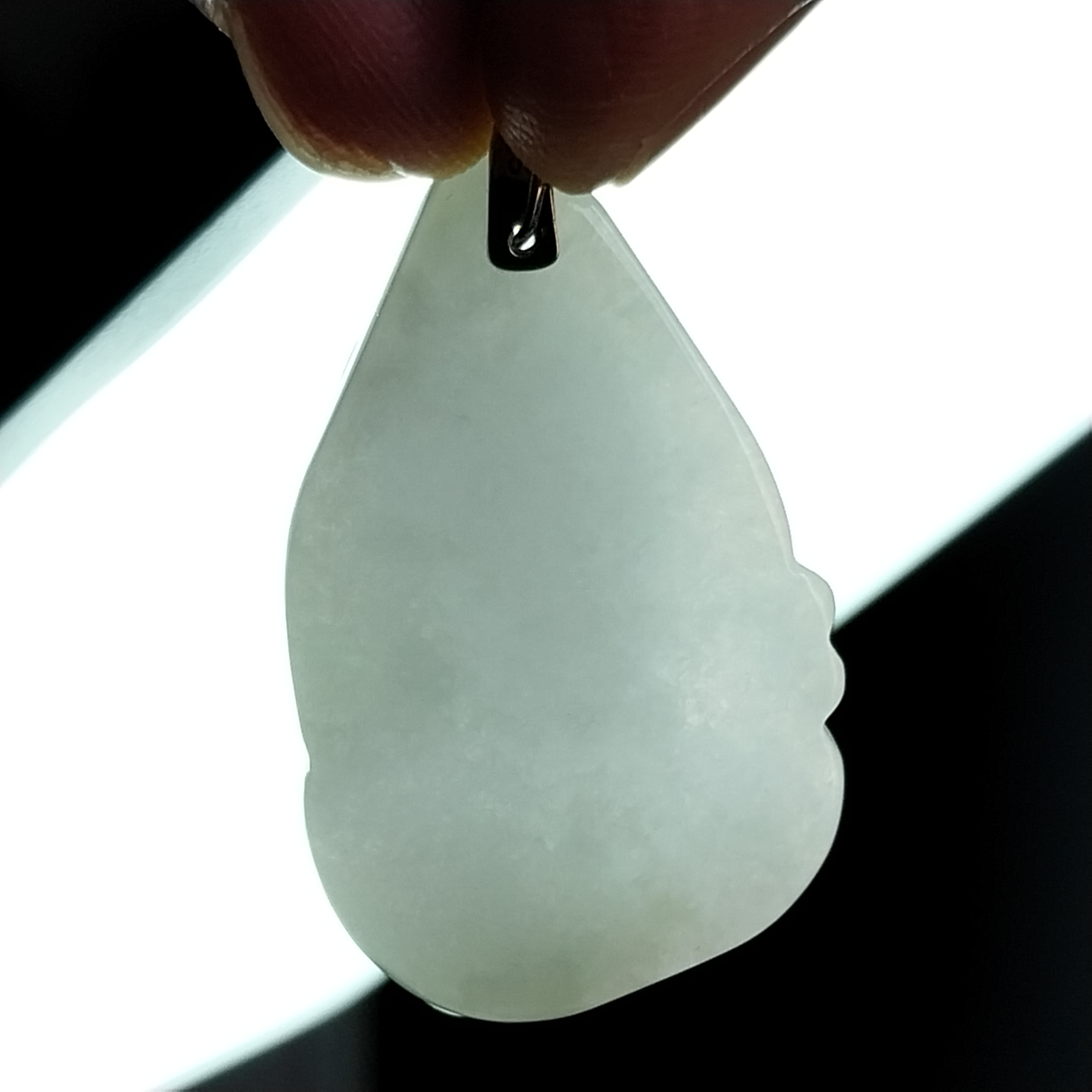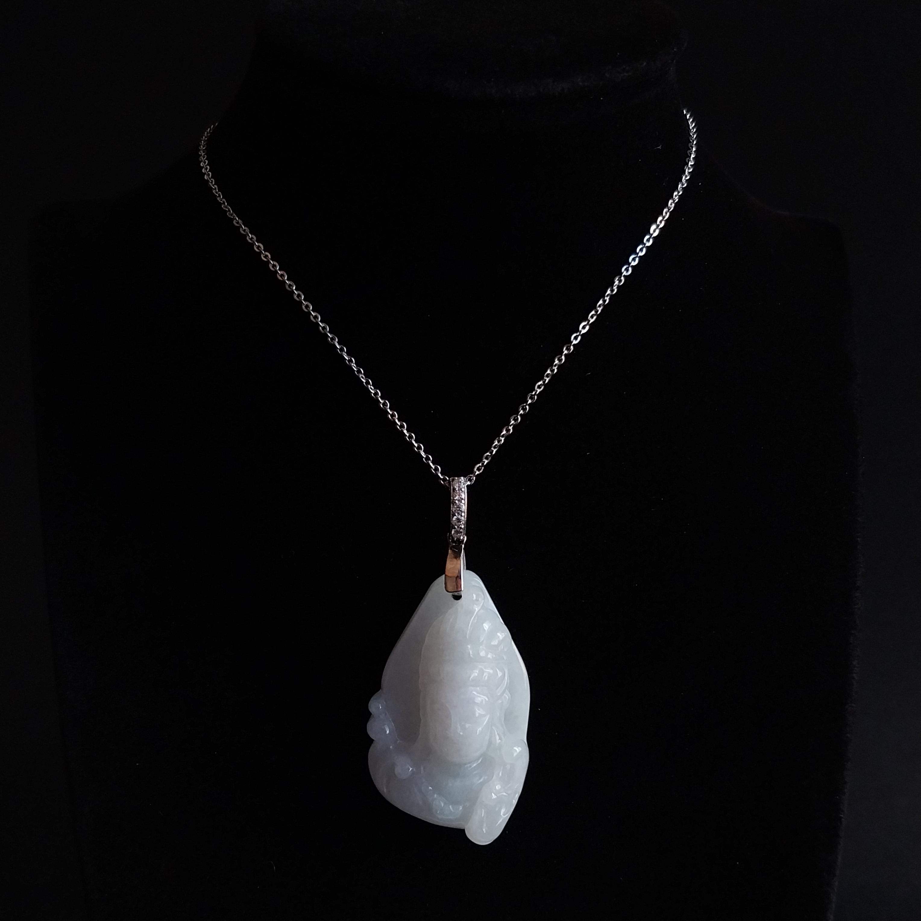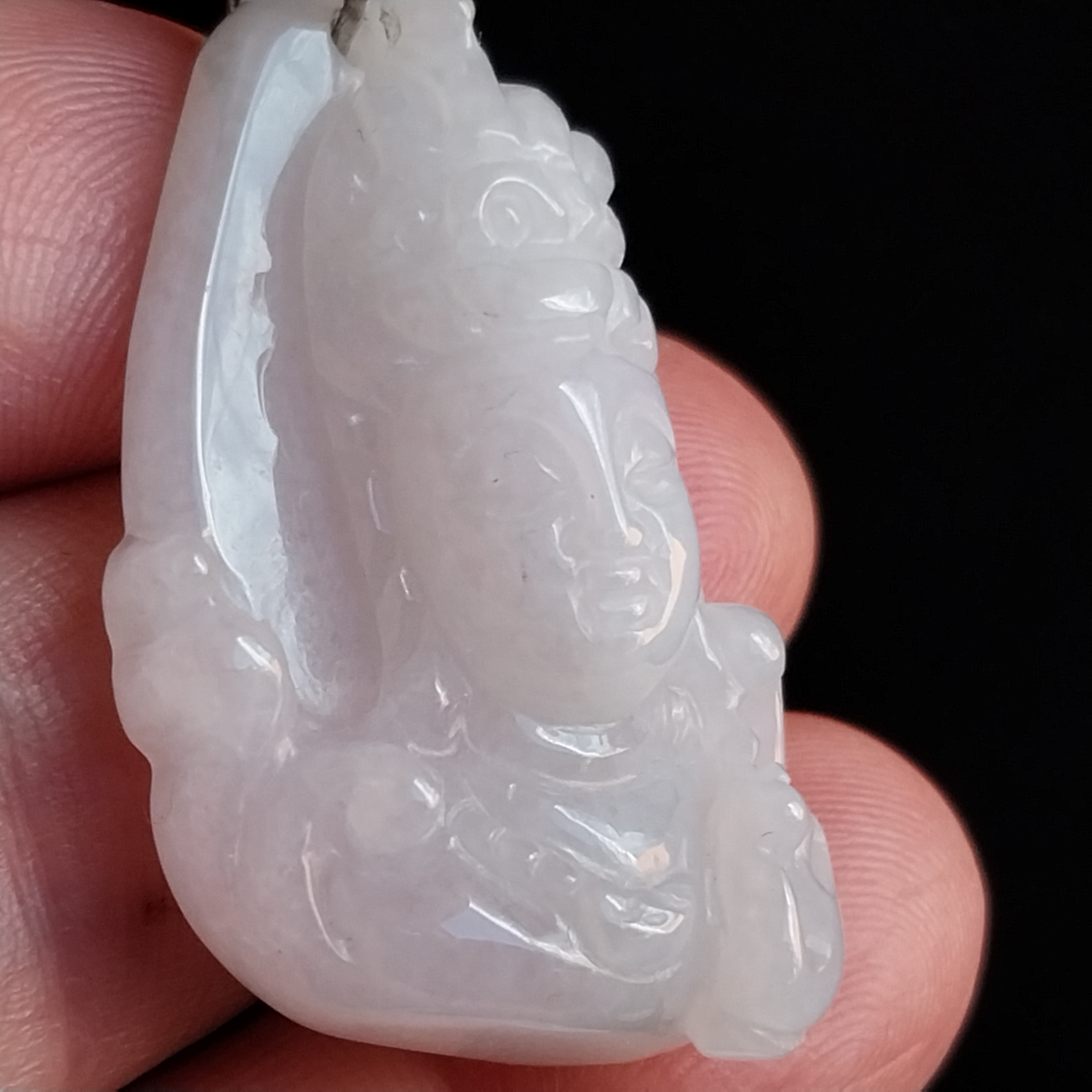• 冰糯白翡觀音像吊墜, 天然翡翠A玉, 緬甸玉, Jade, Jadeite