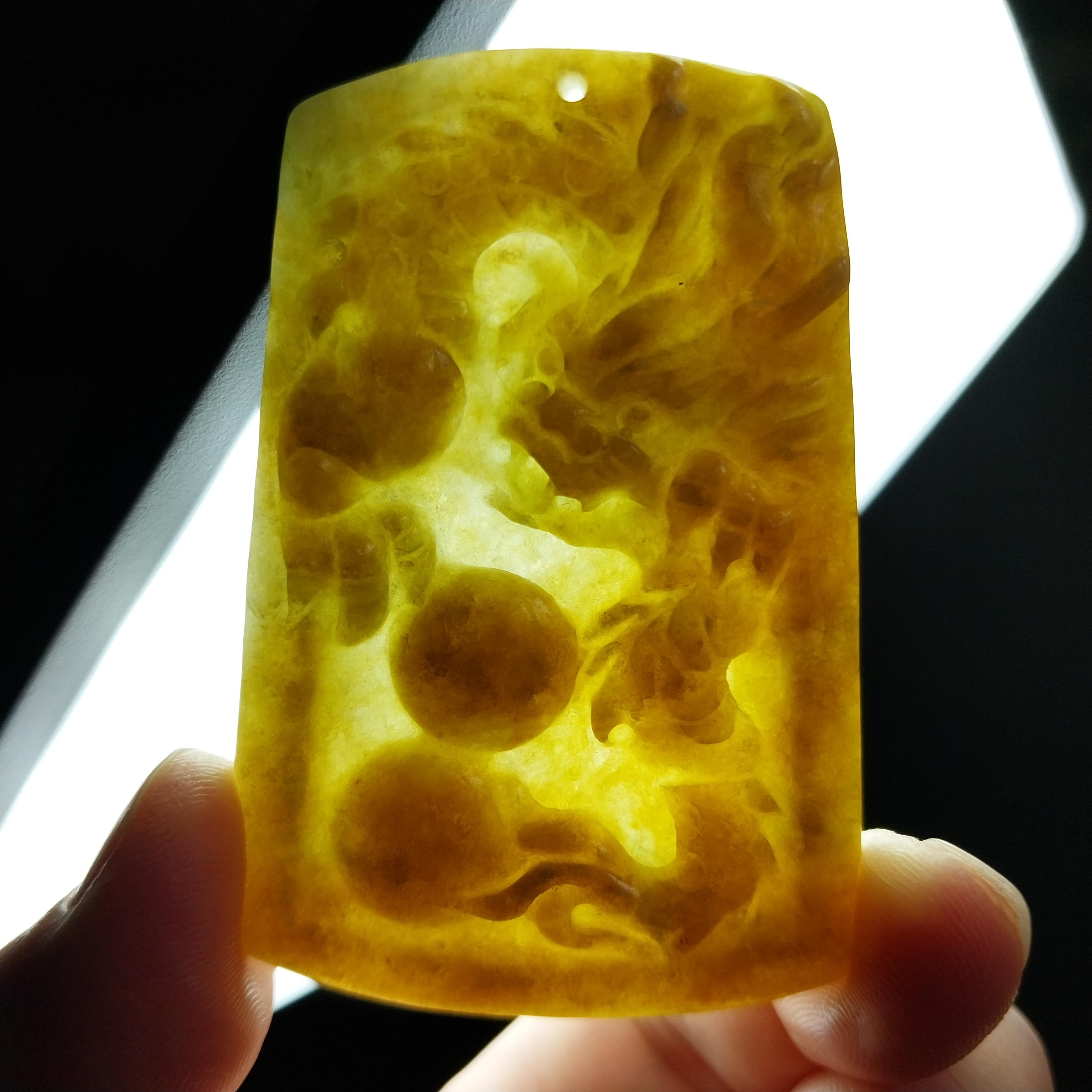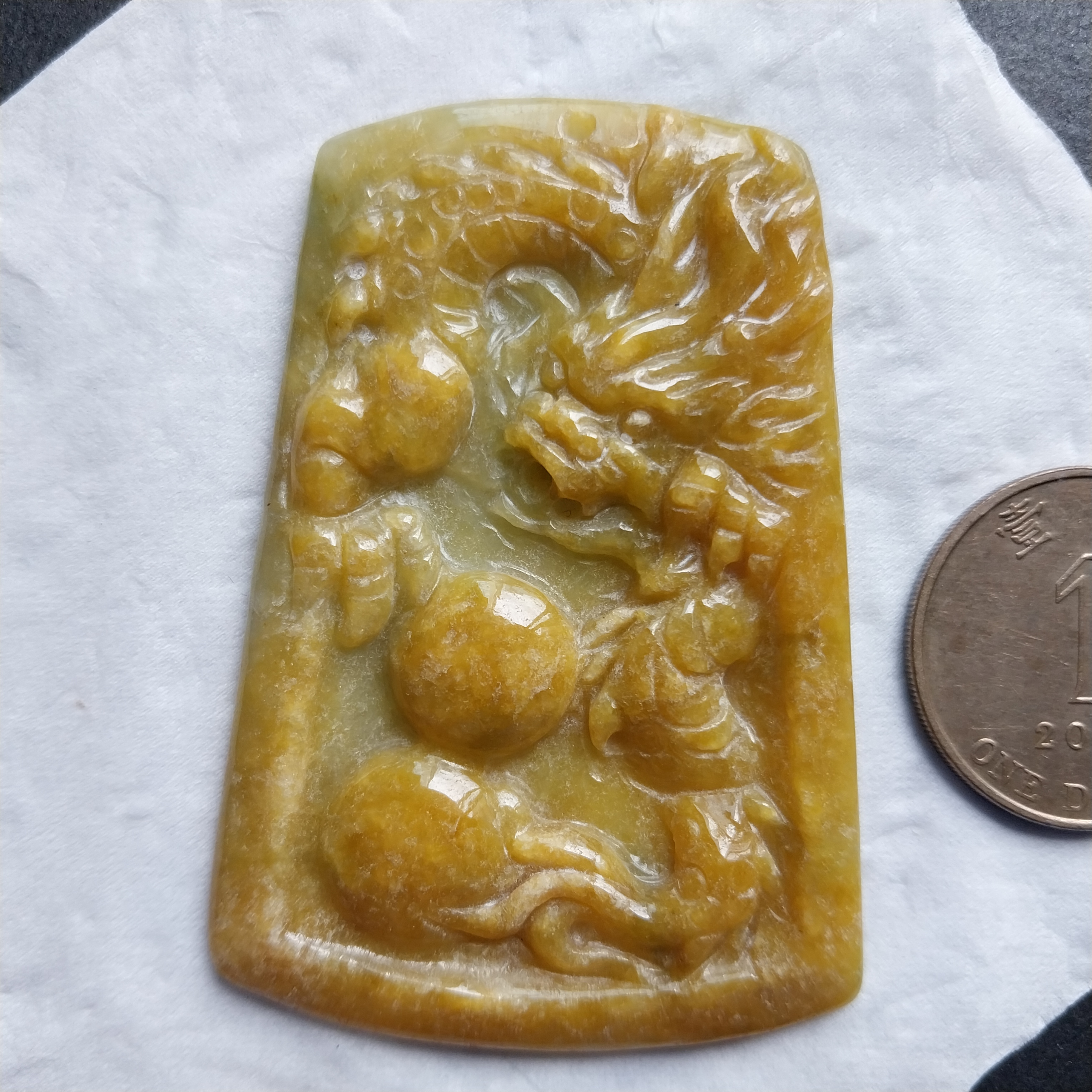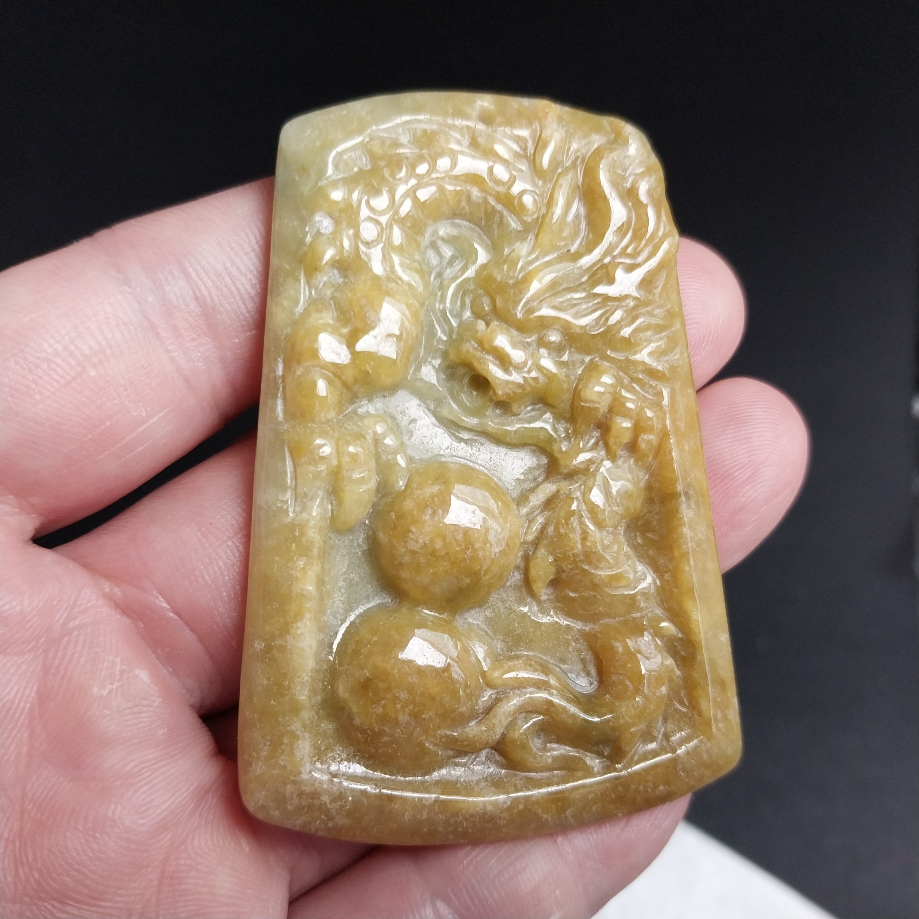 J1846 冰糯黃翡龍戲珠吊牌