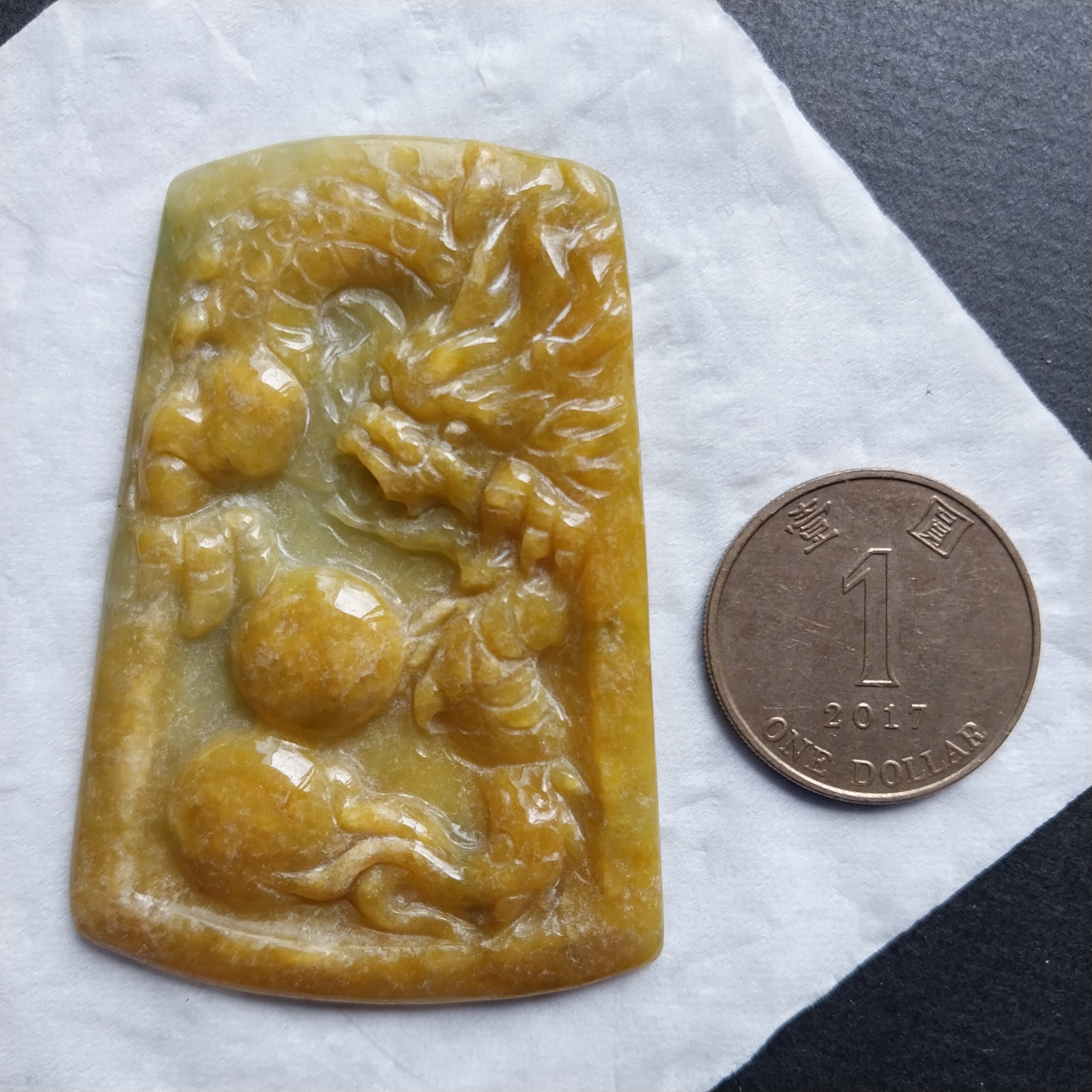 • 冰糯黃翡龍戲珠吊牌, 天然翡翠A玉, 緬甸玉, Jade, Jadeite