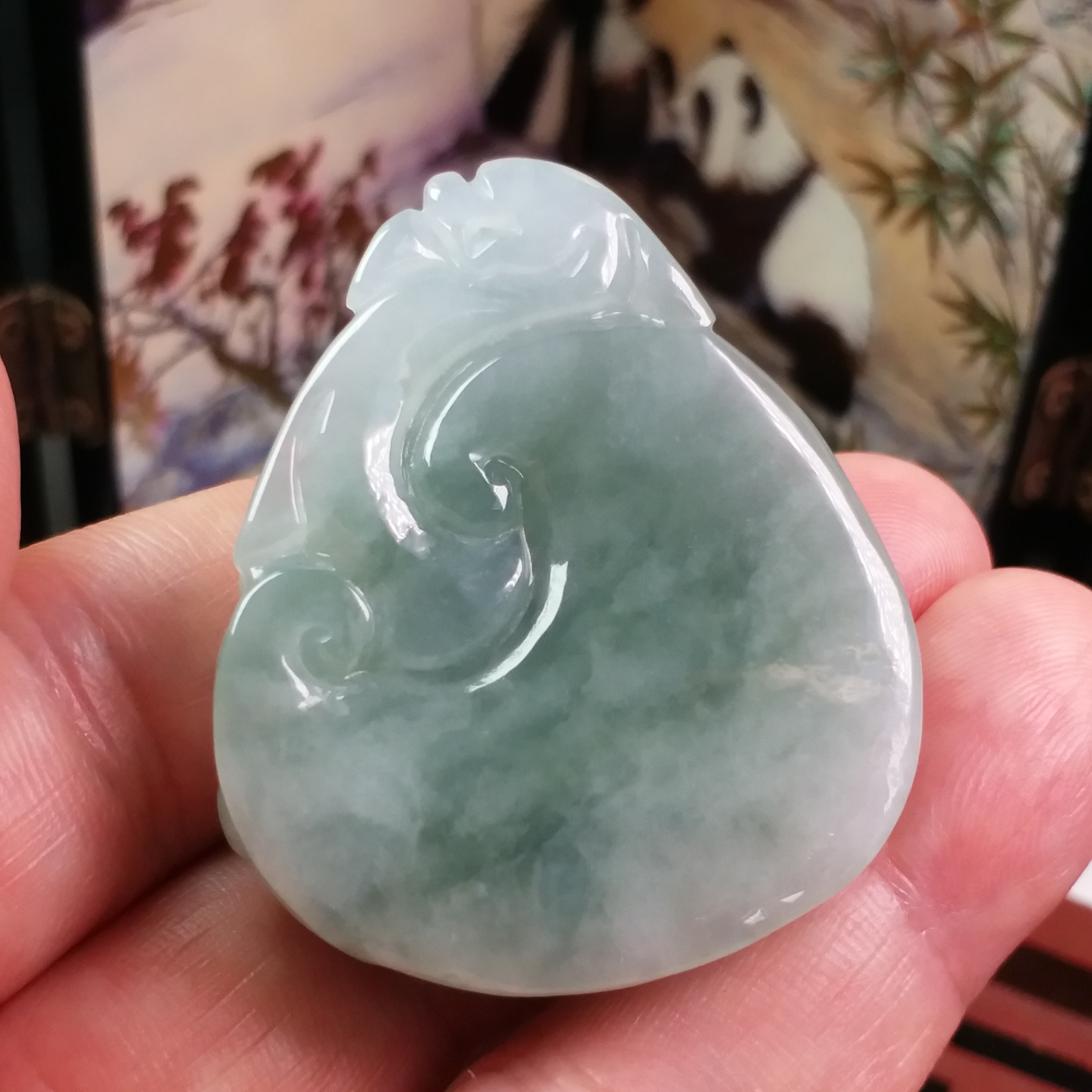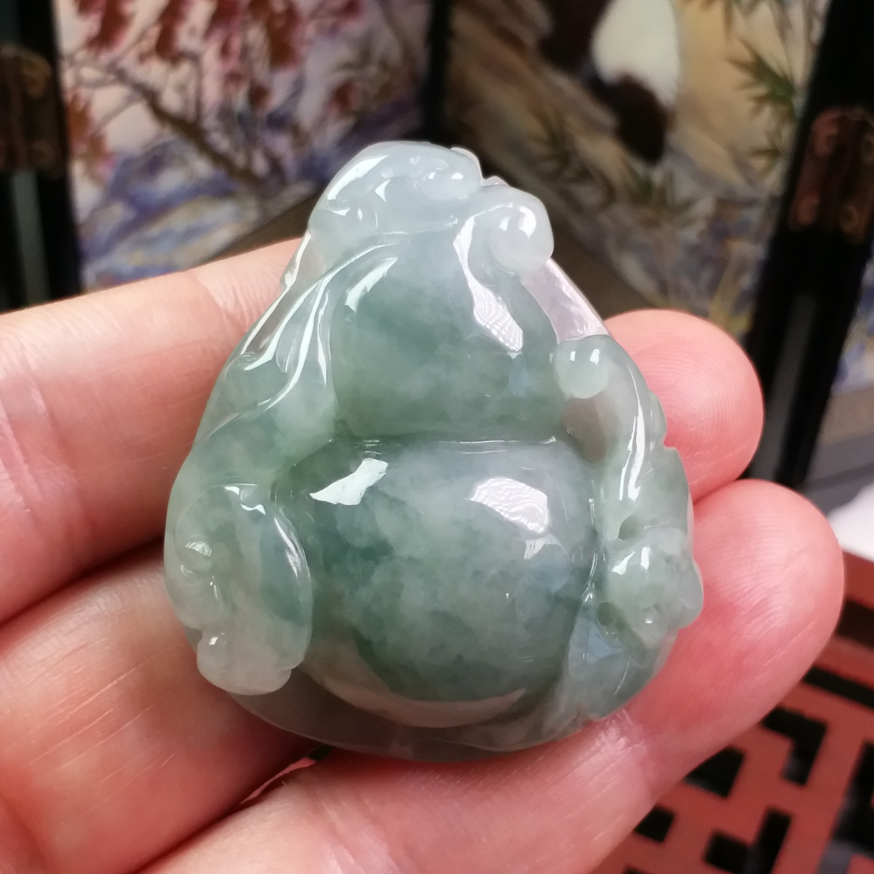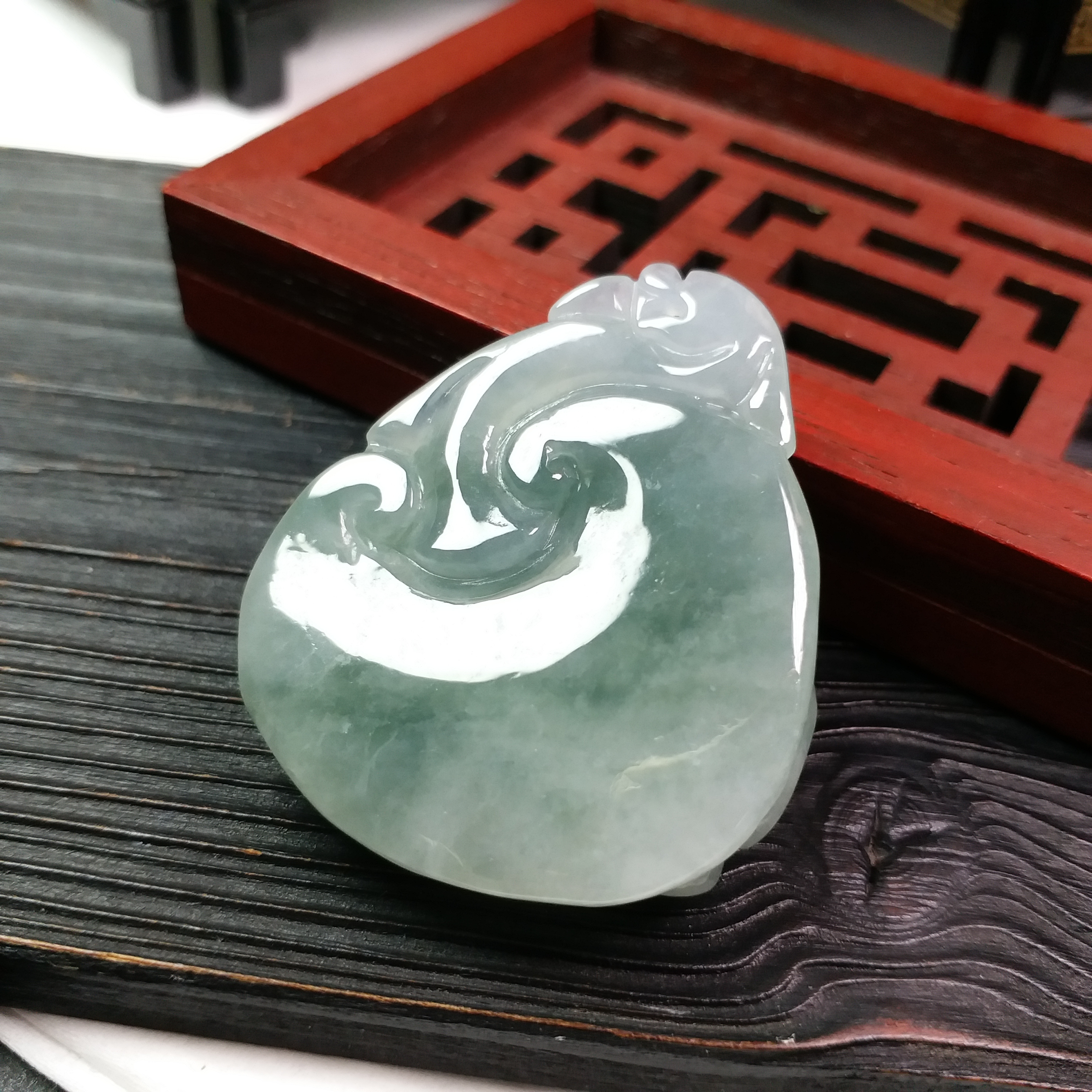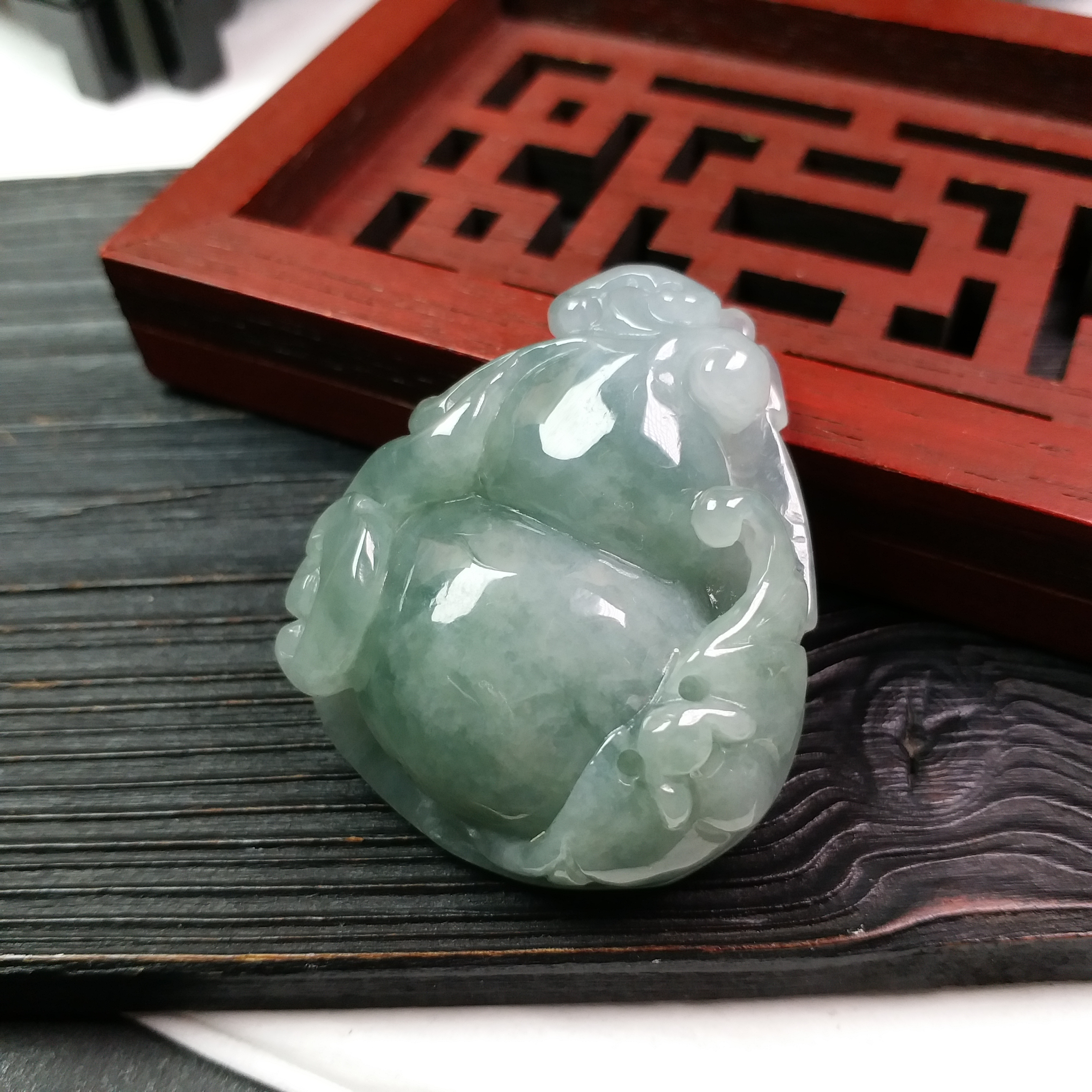• 冰綠飄花有福葫蘆吊墜, 天然翡翠A玉, 緬甸玉, Jade, Jadeite