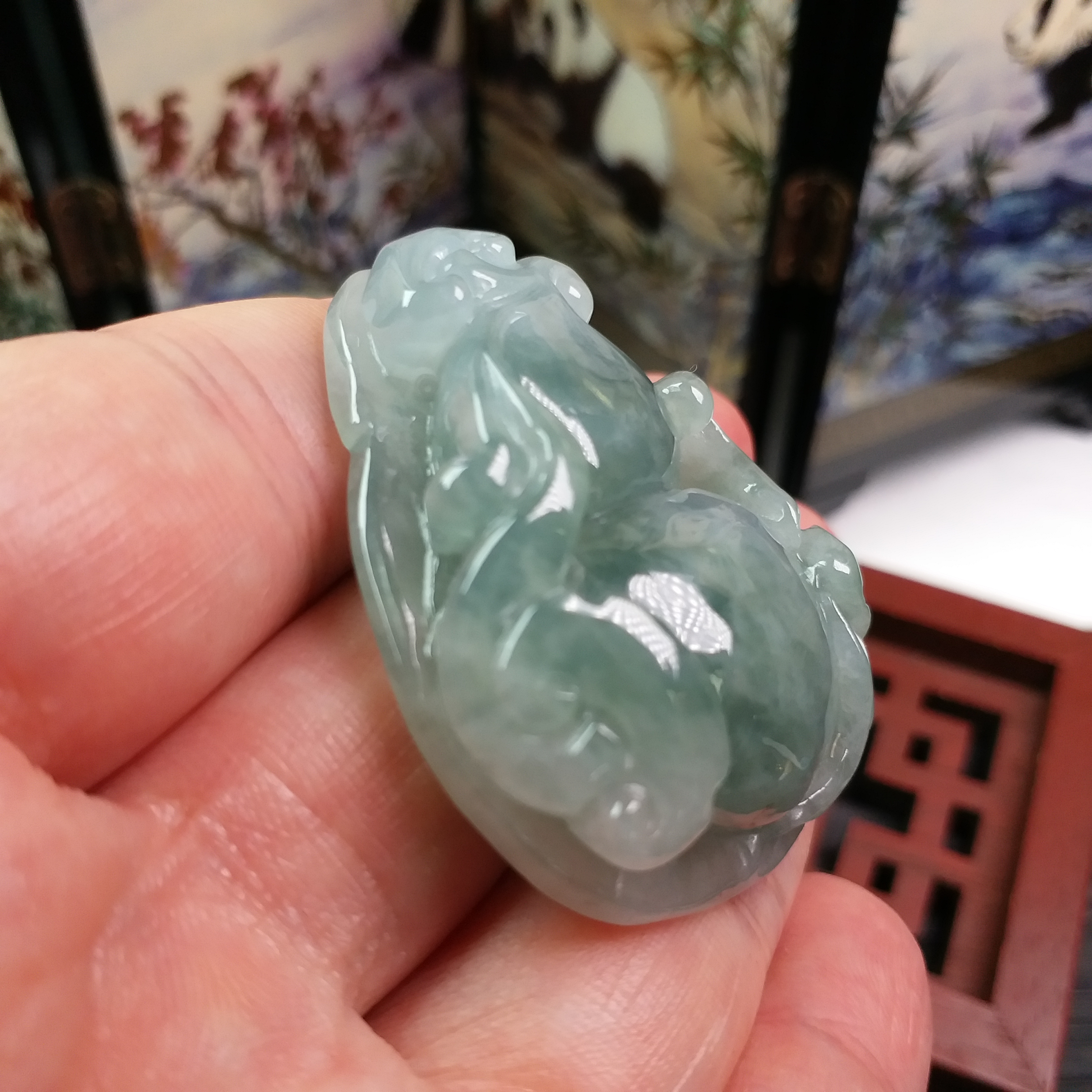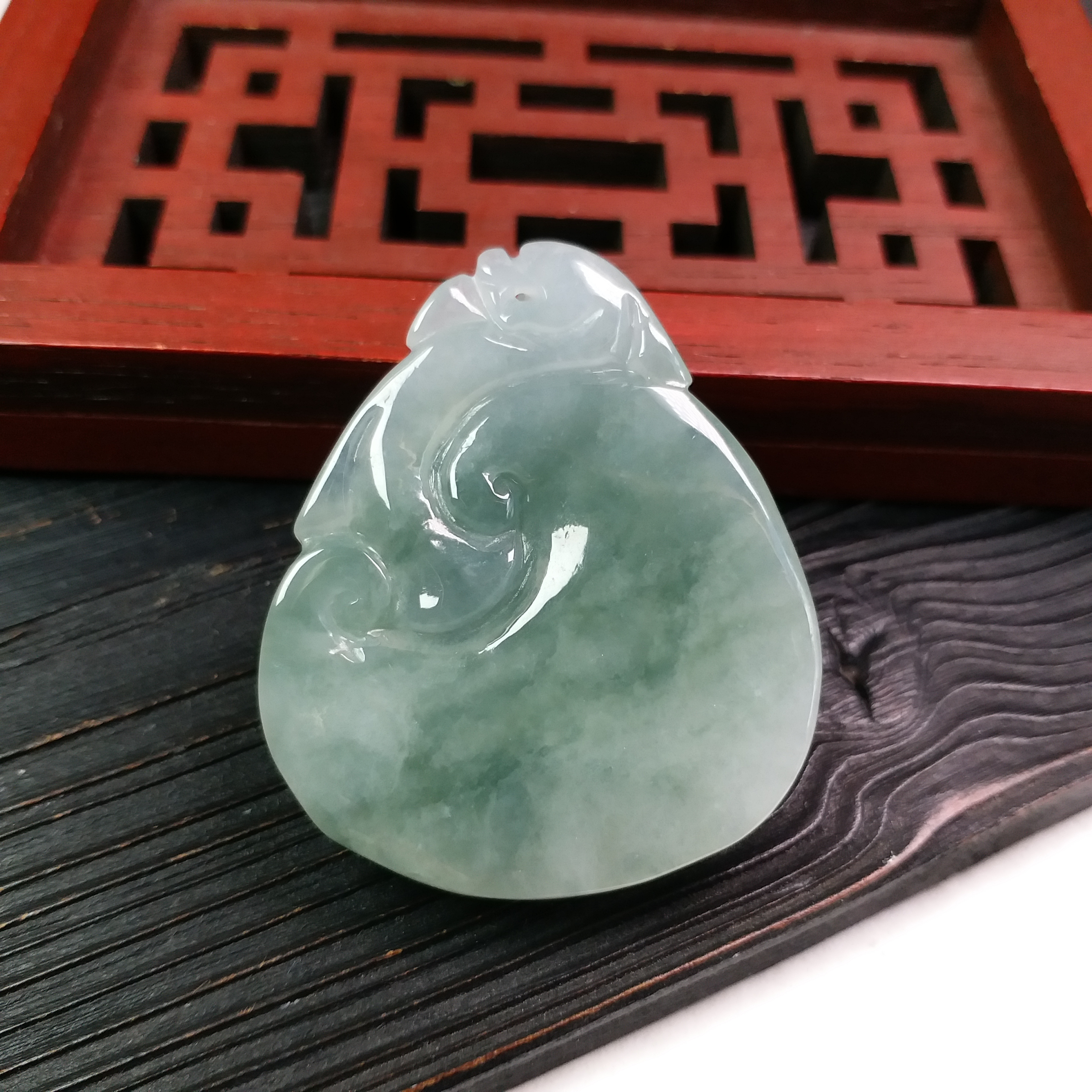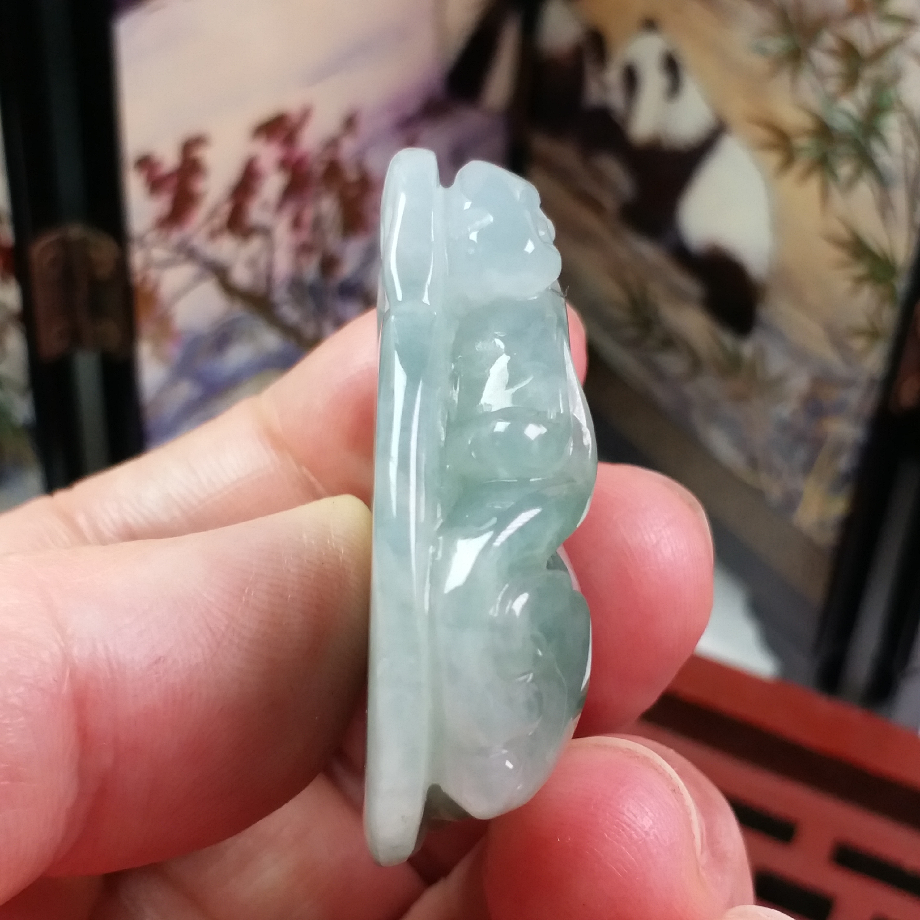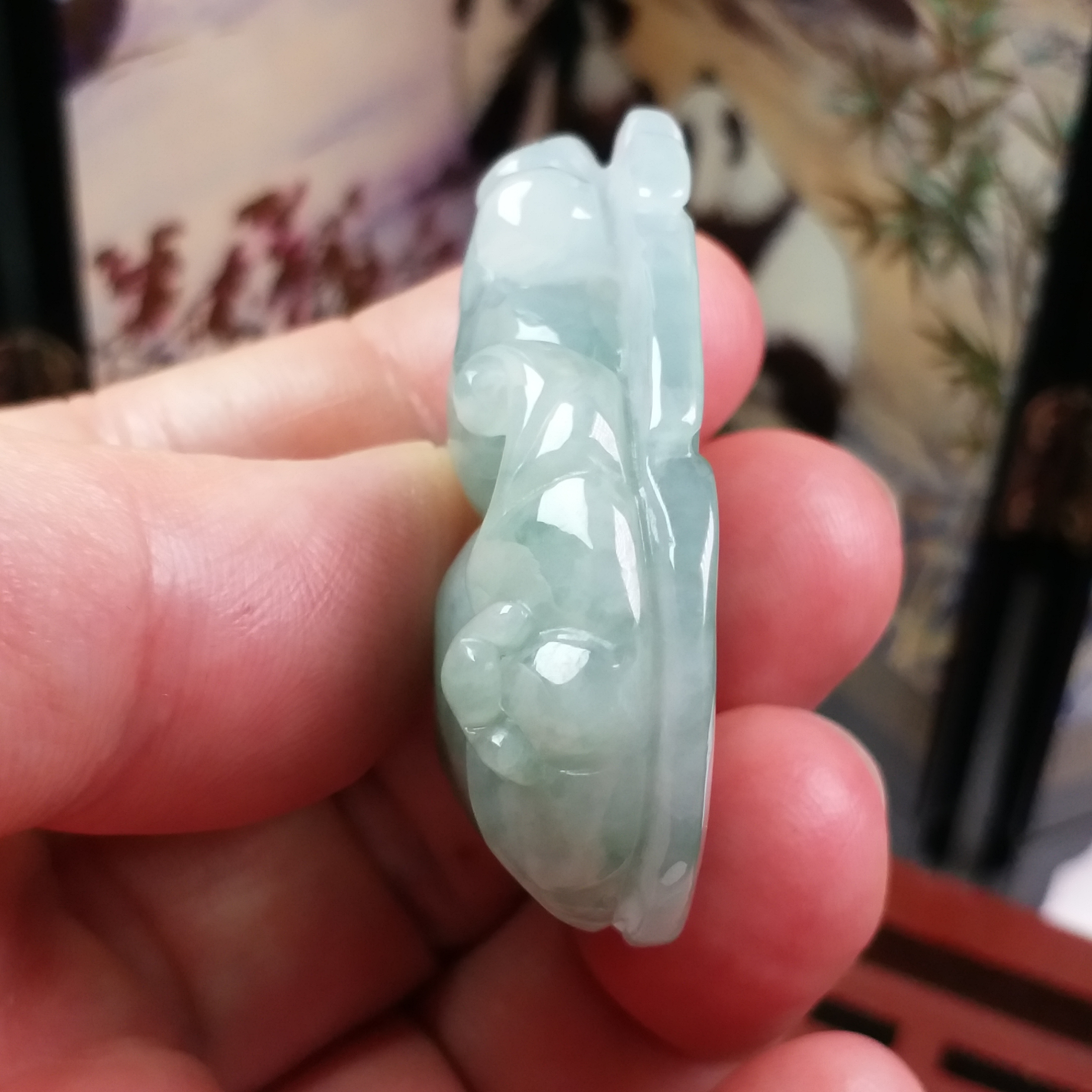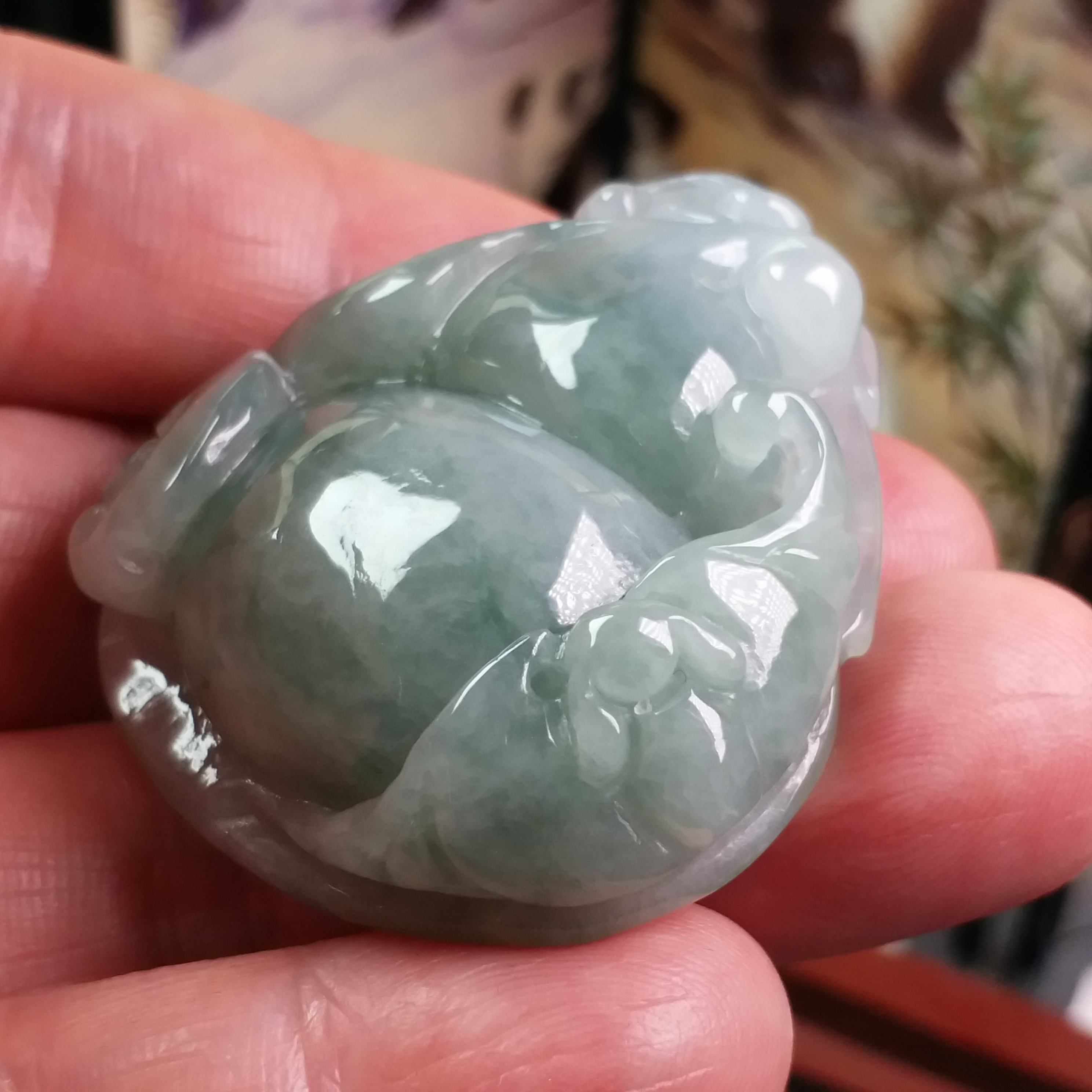 • 冰綠飄花有福葫蘆吊墜, 天然翡翠A玉, 緬甸玉, Jade, Jadeite