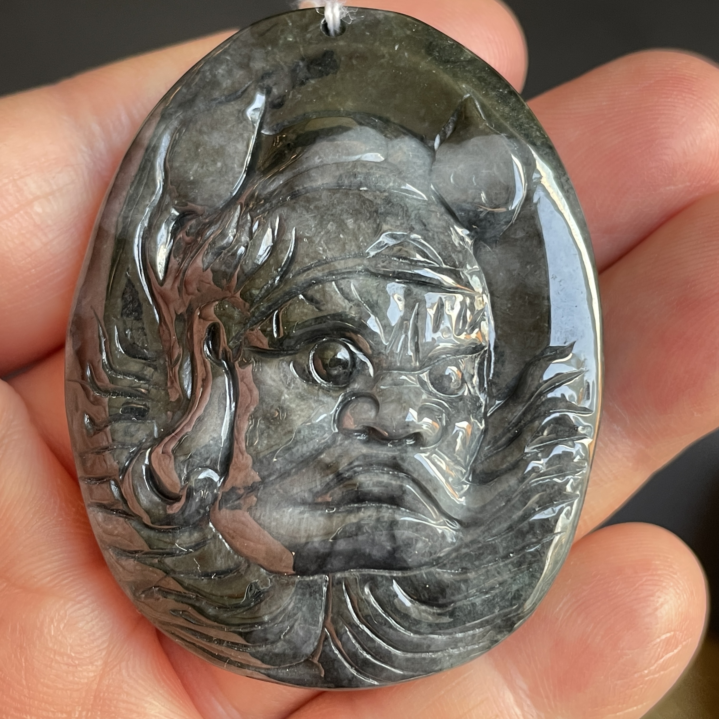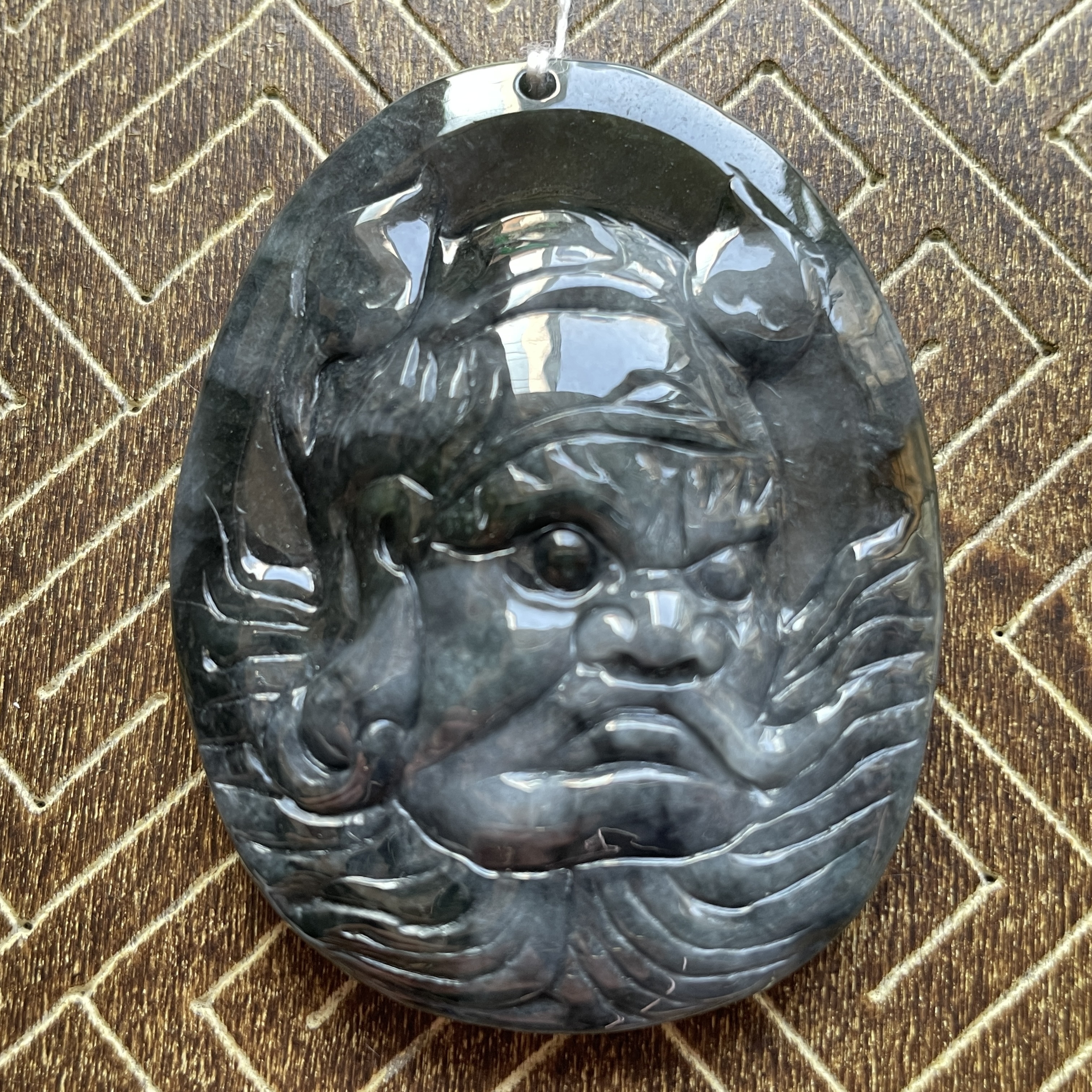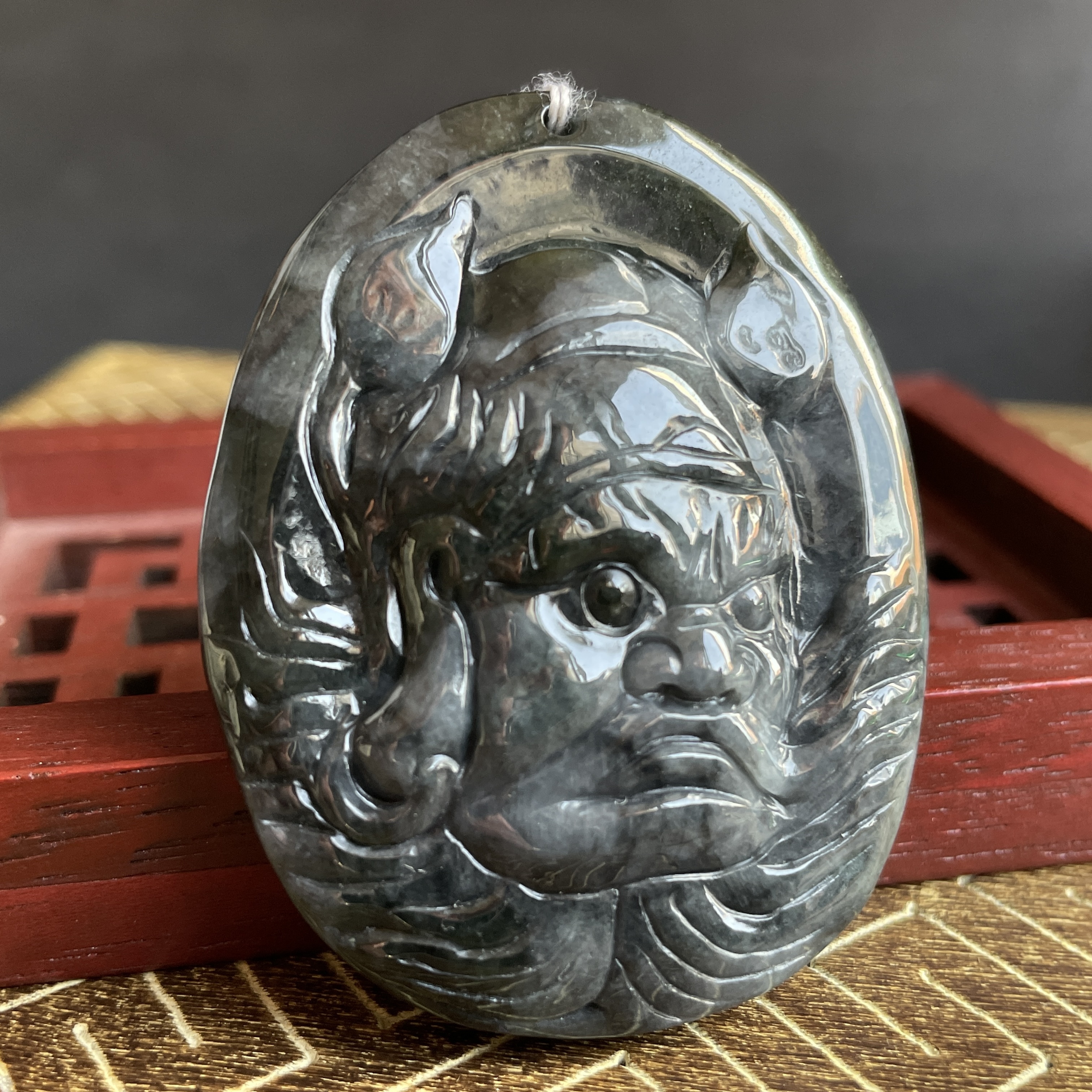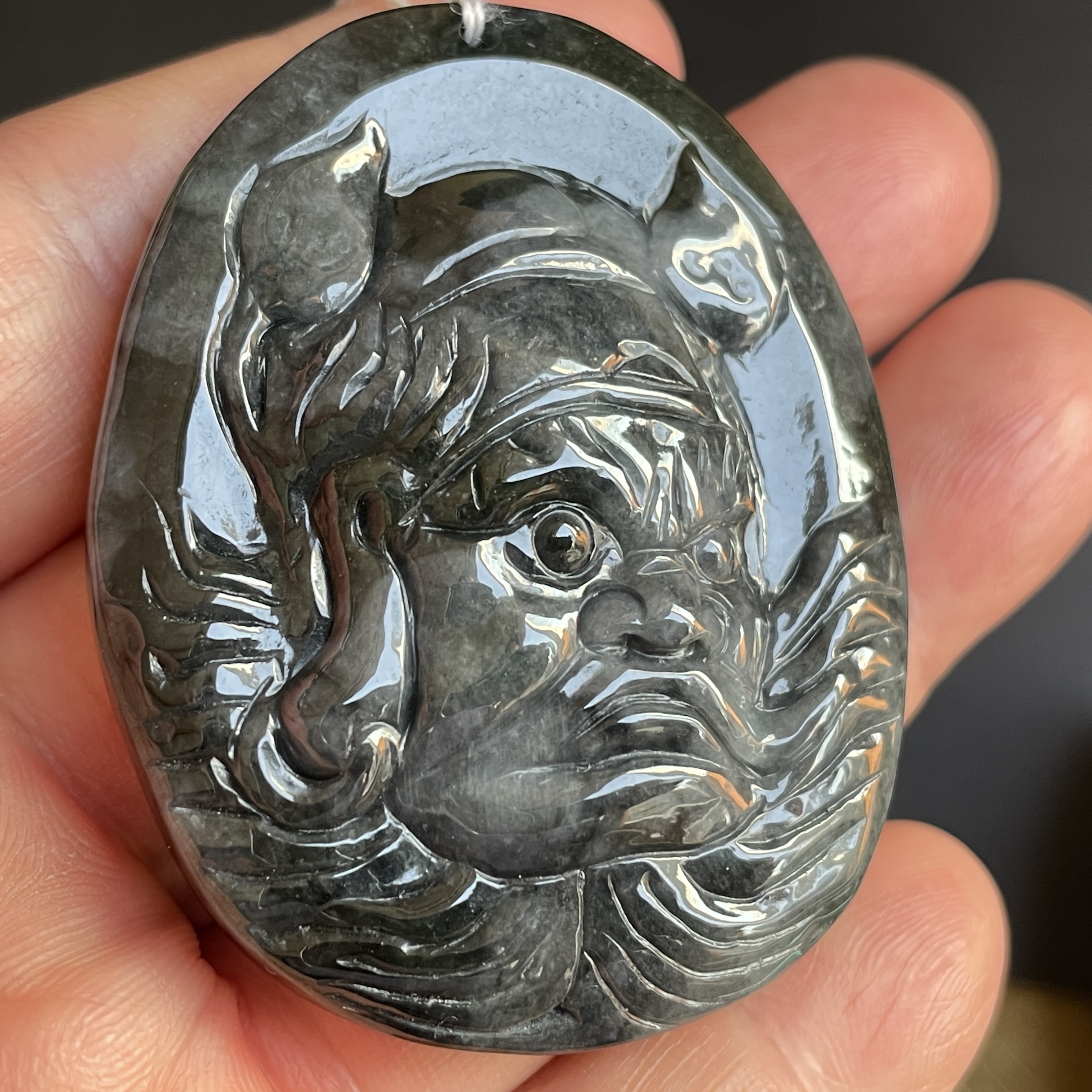 • 翡翠冰烏雞鍾馗像吊牌,天然翡翠A玉, 緬甸玉, Jade, Jadeite