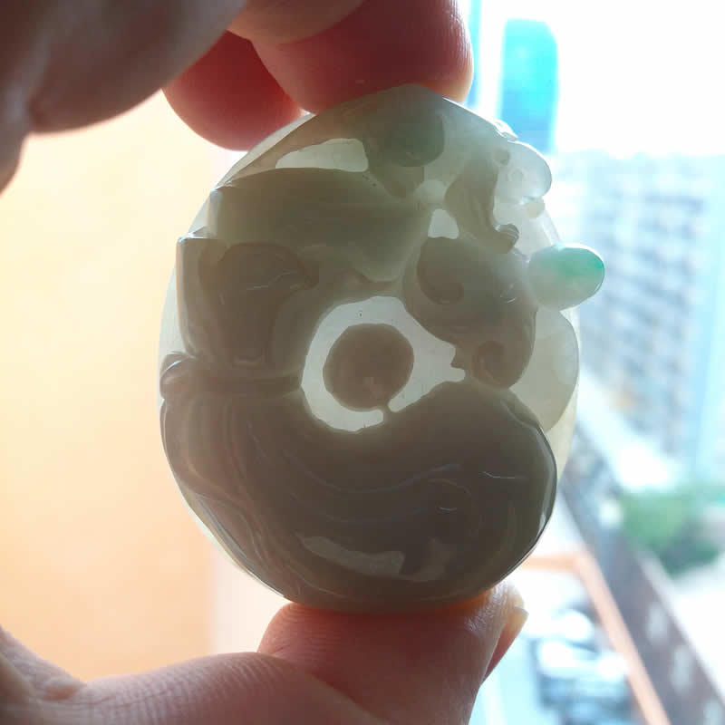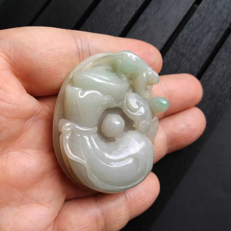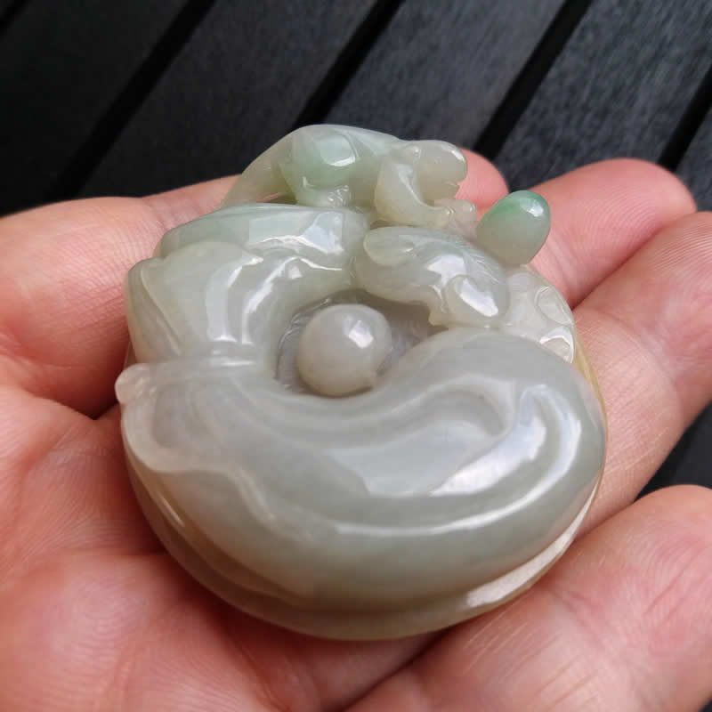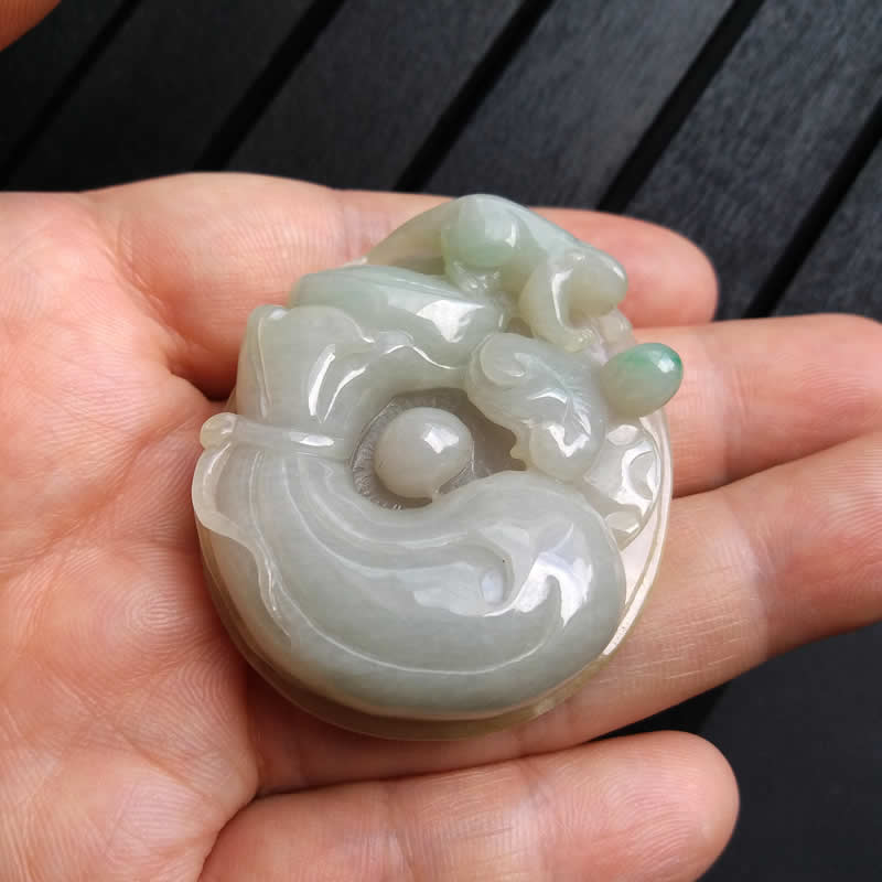 J185 冰糯淡綠底福鼠運財吊墜 (翡翠A玉)